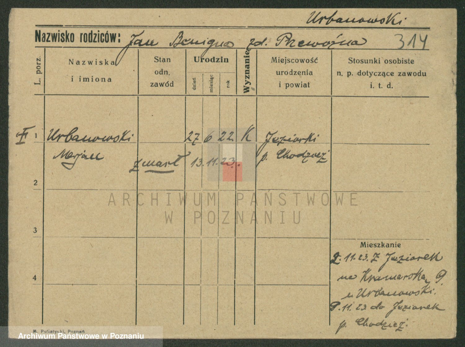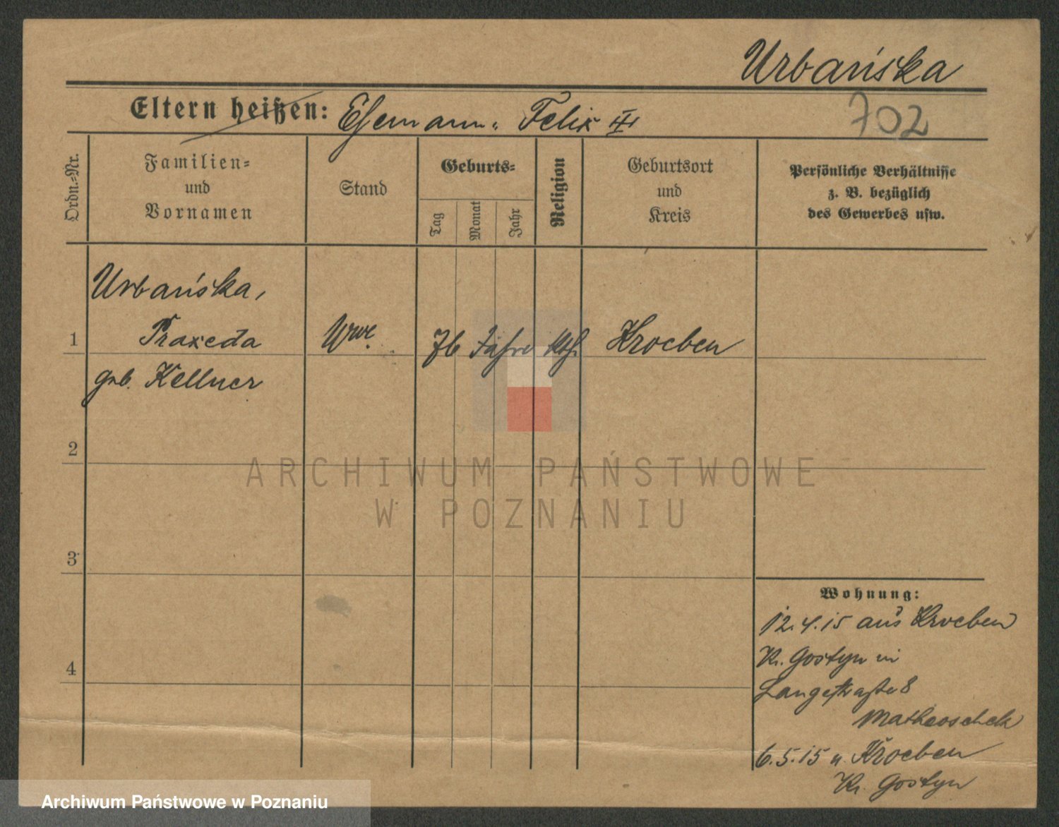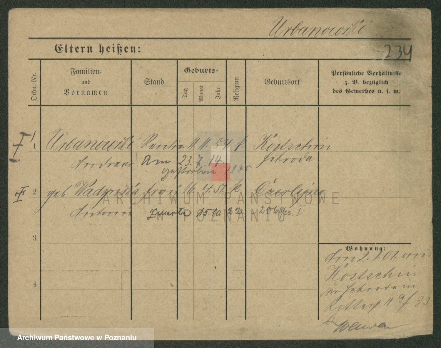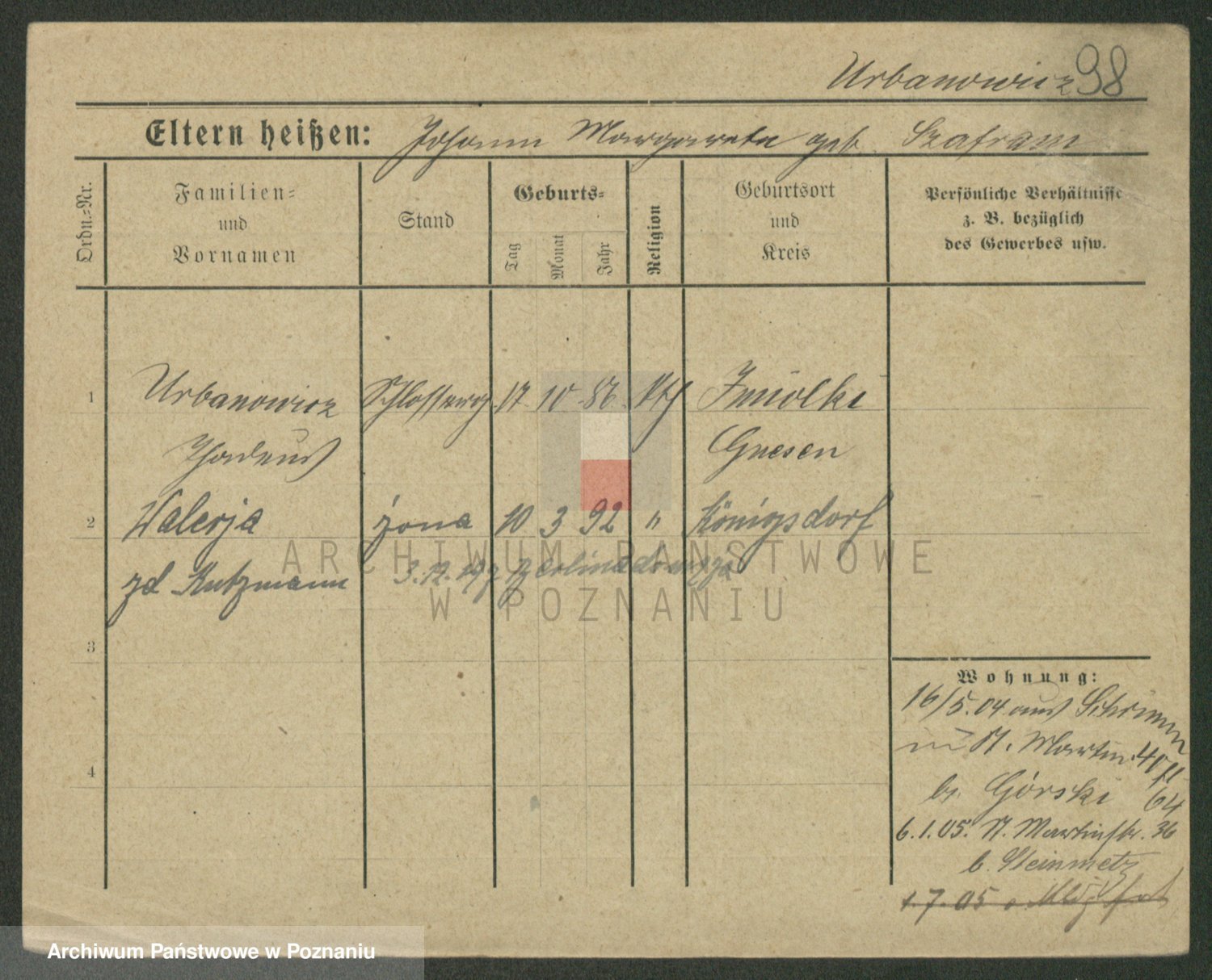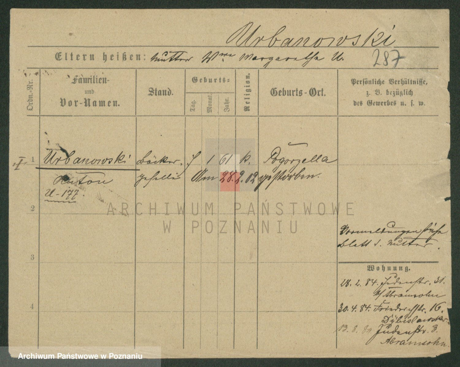 Urbanski z d. Nadolna II voto Wozniak, Josefa