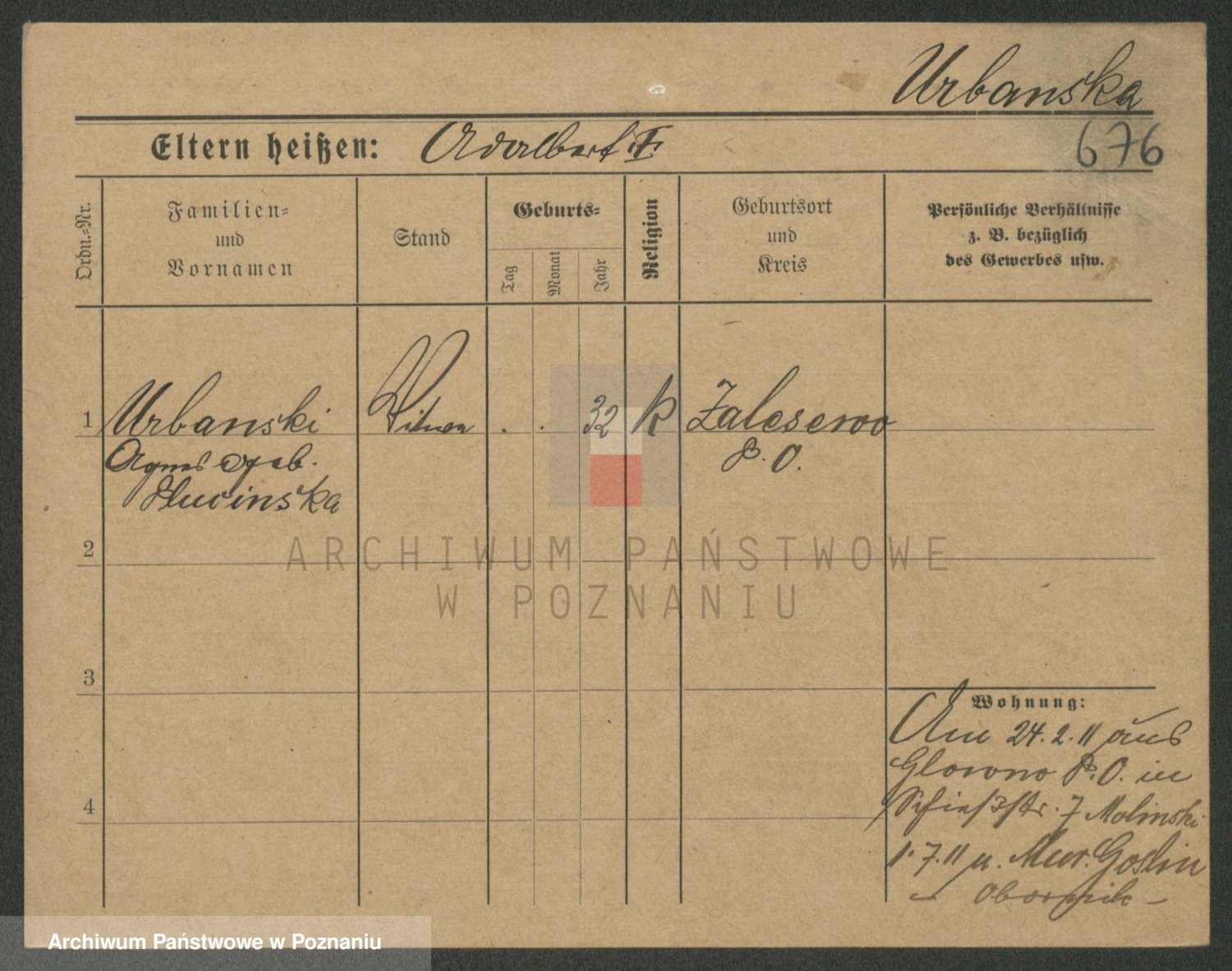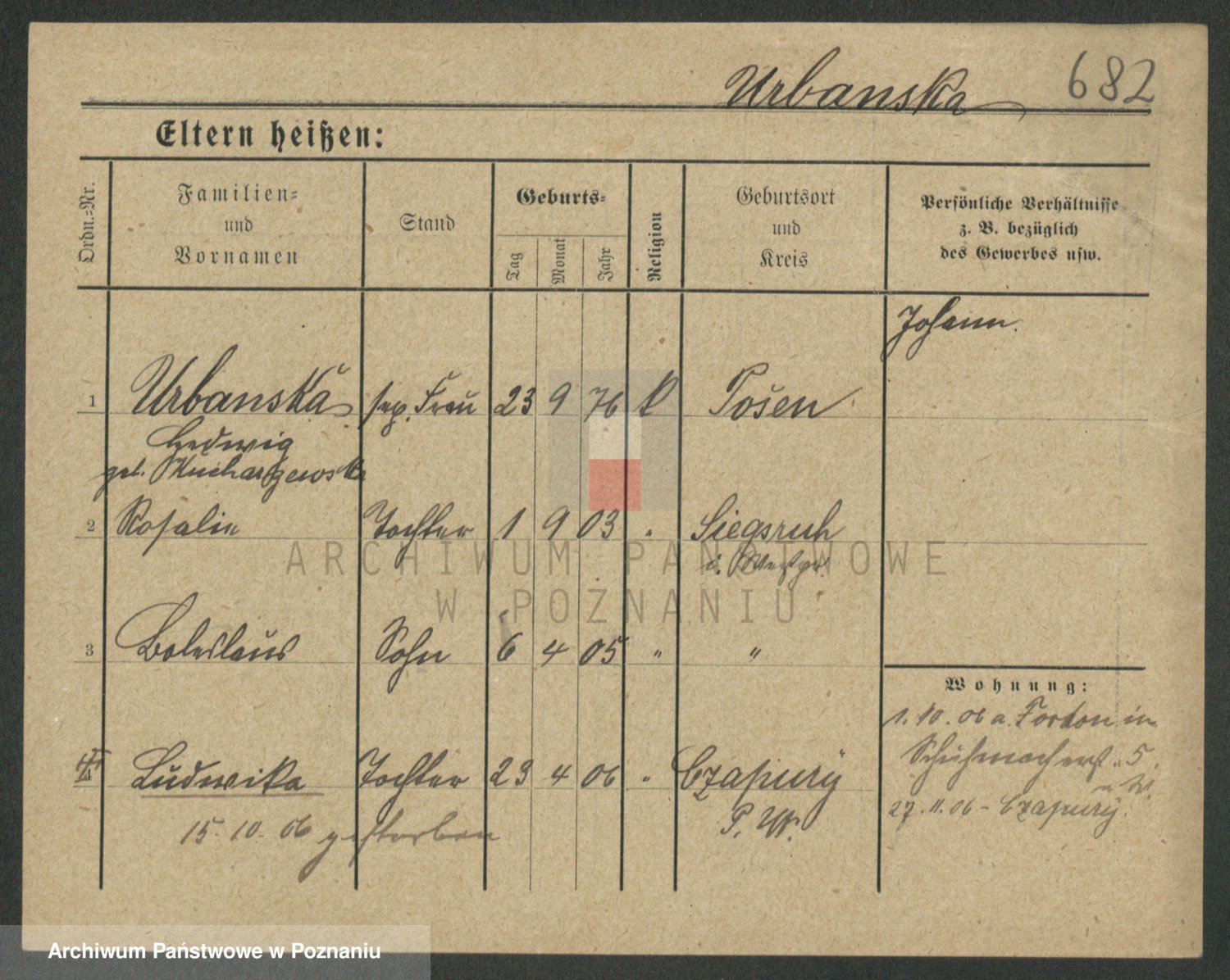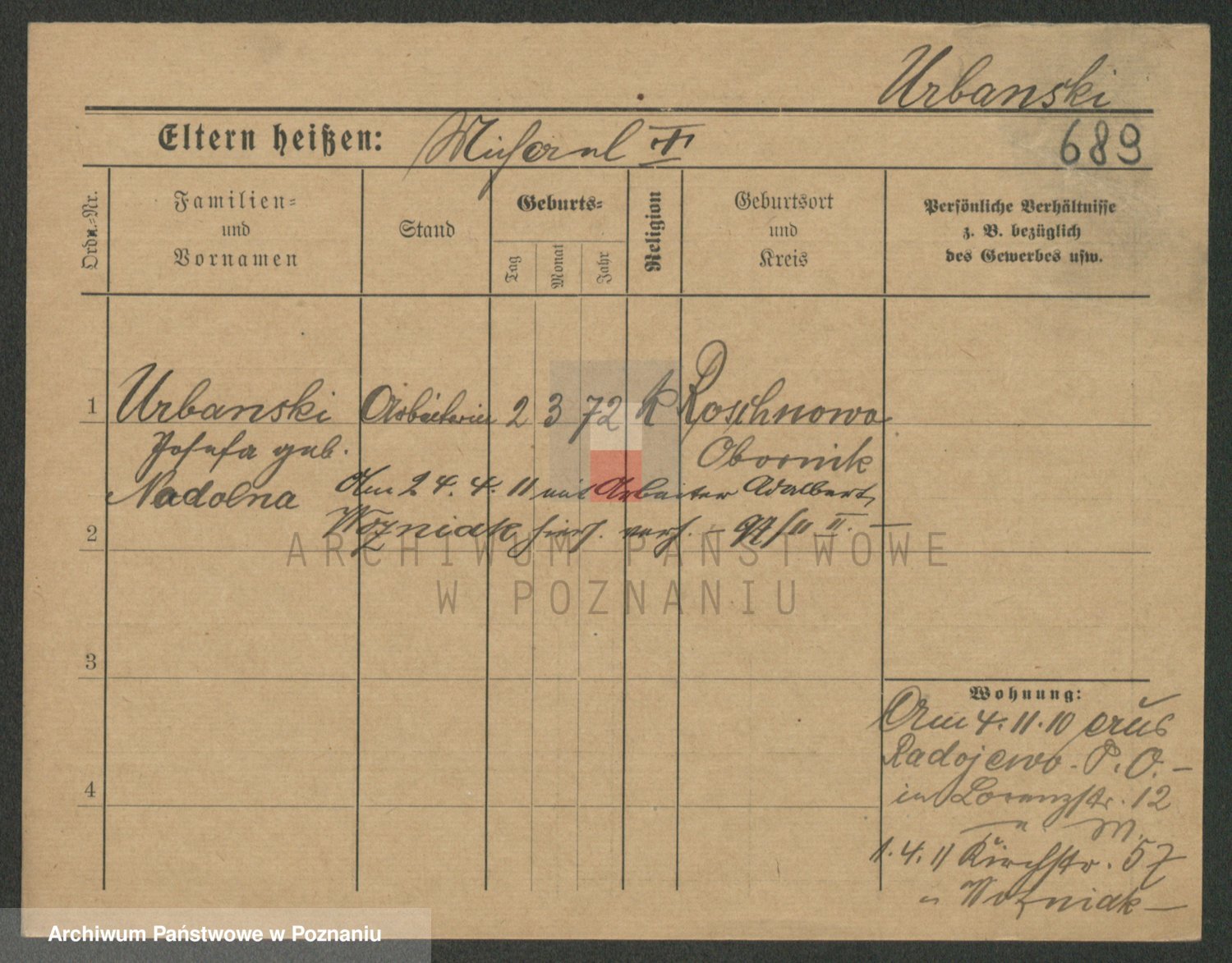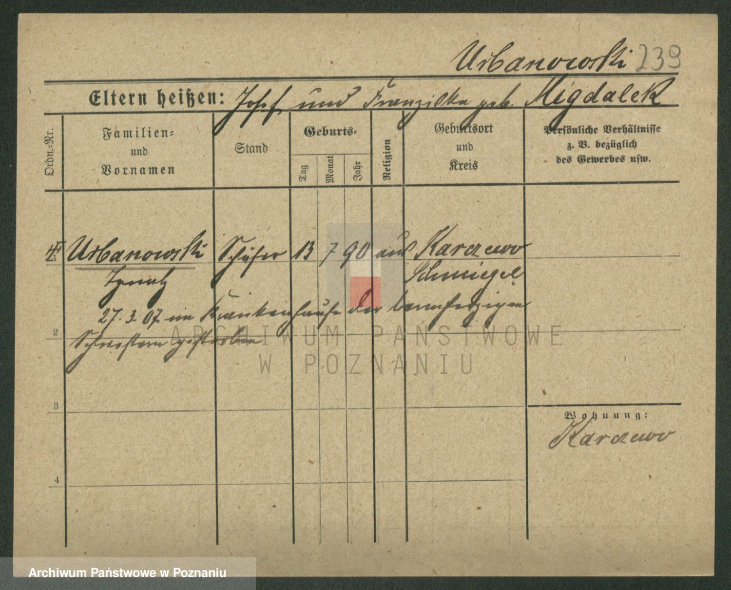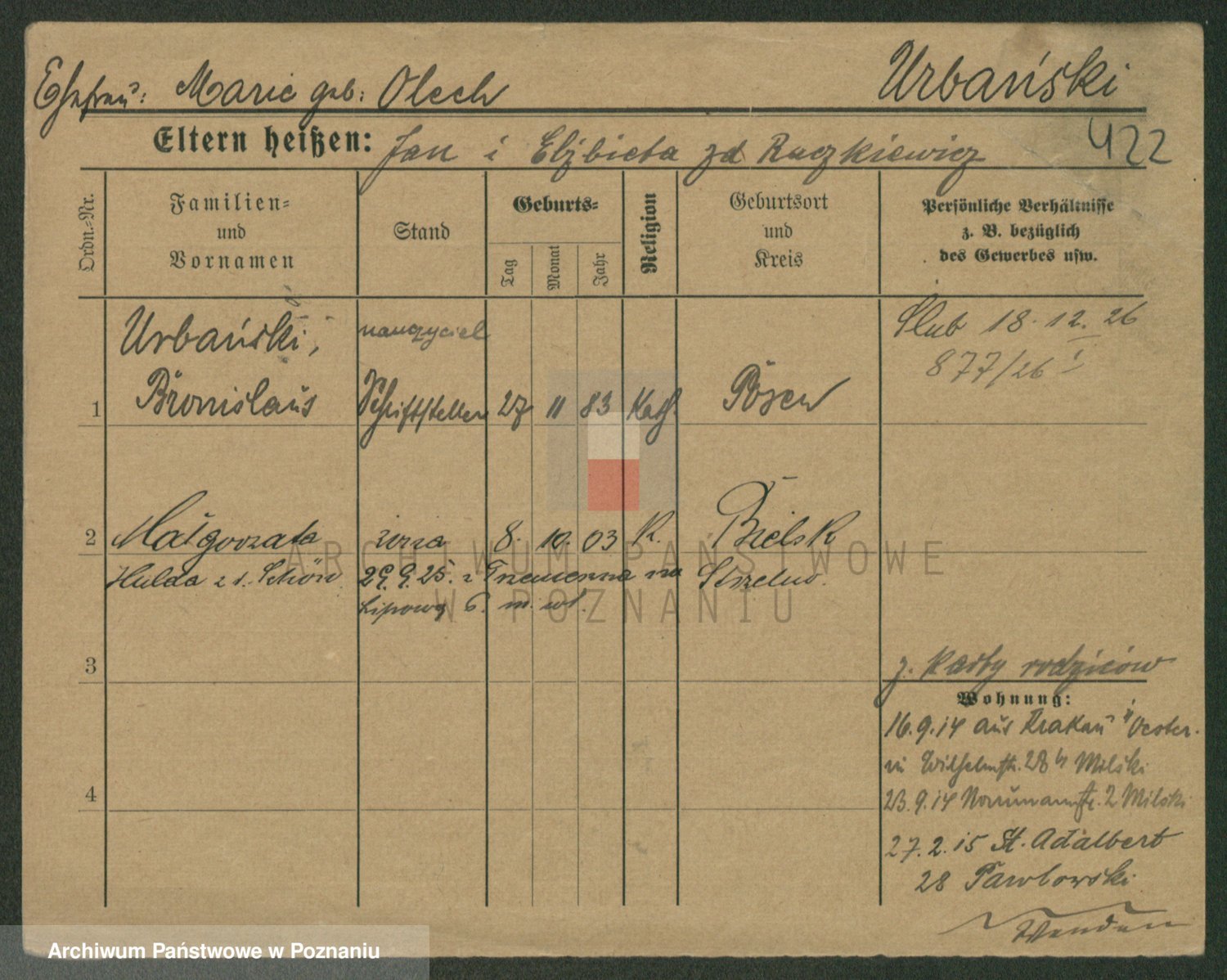 Urbanski z d. Nadolna II voto Wozniak, Josefa