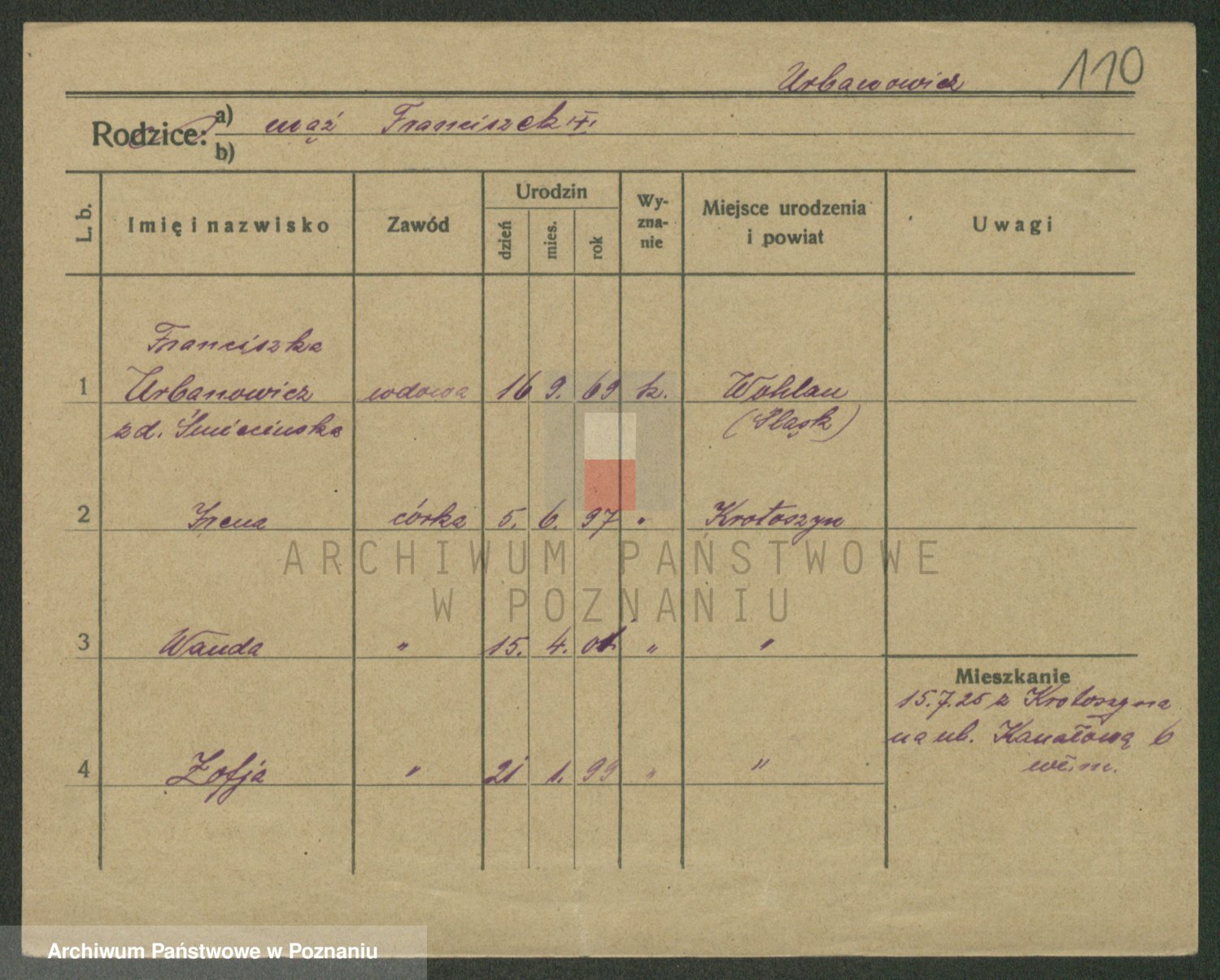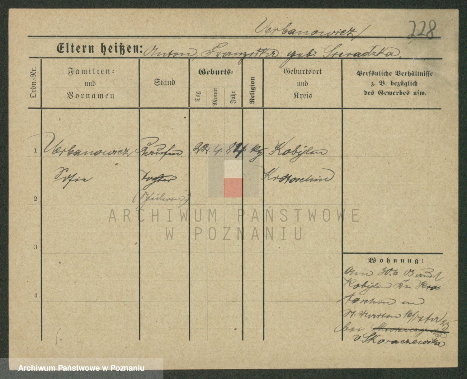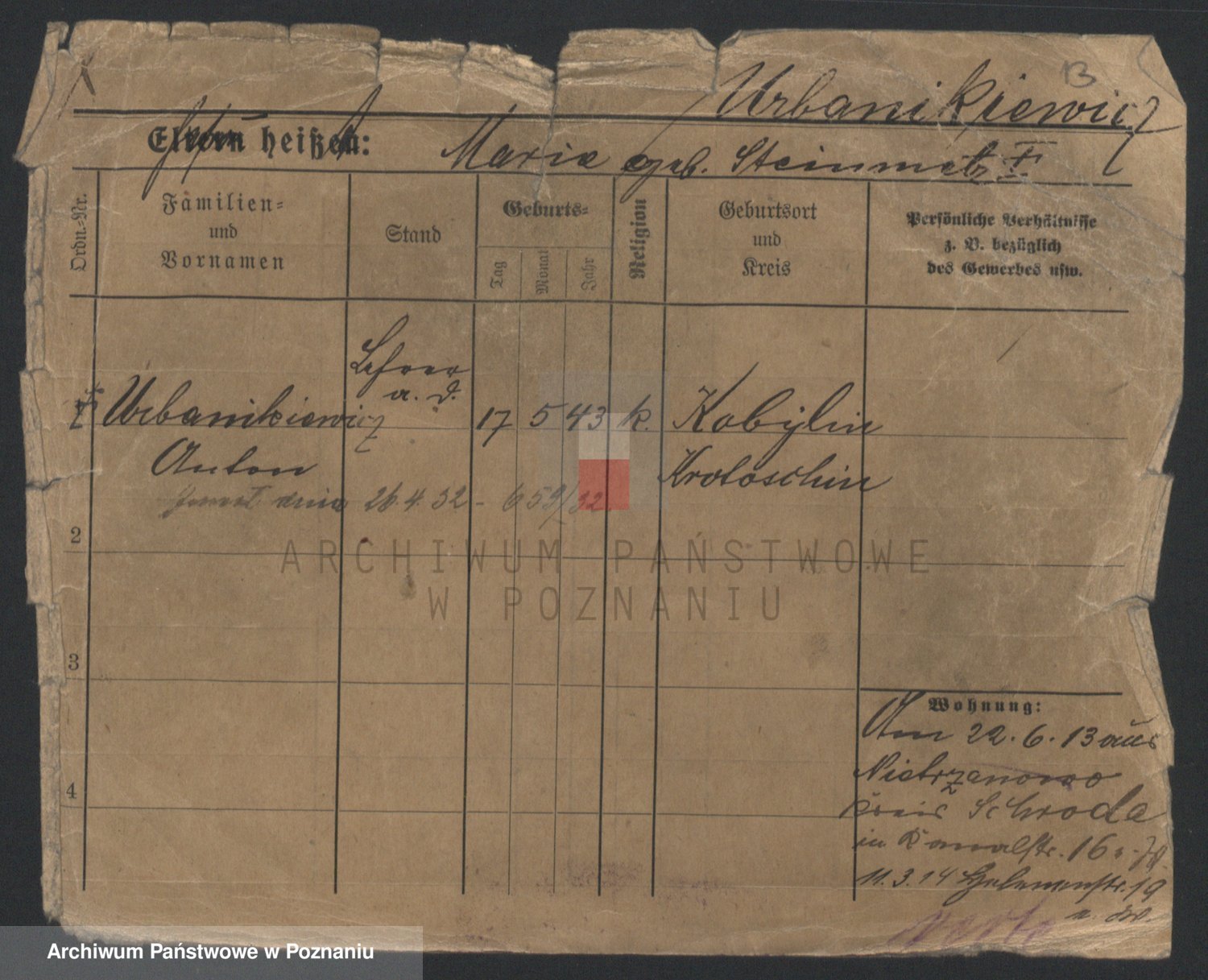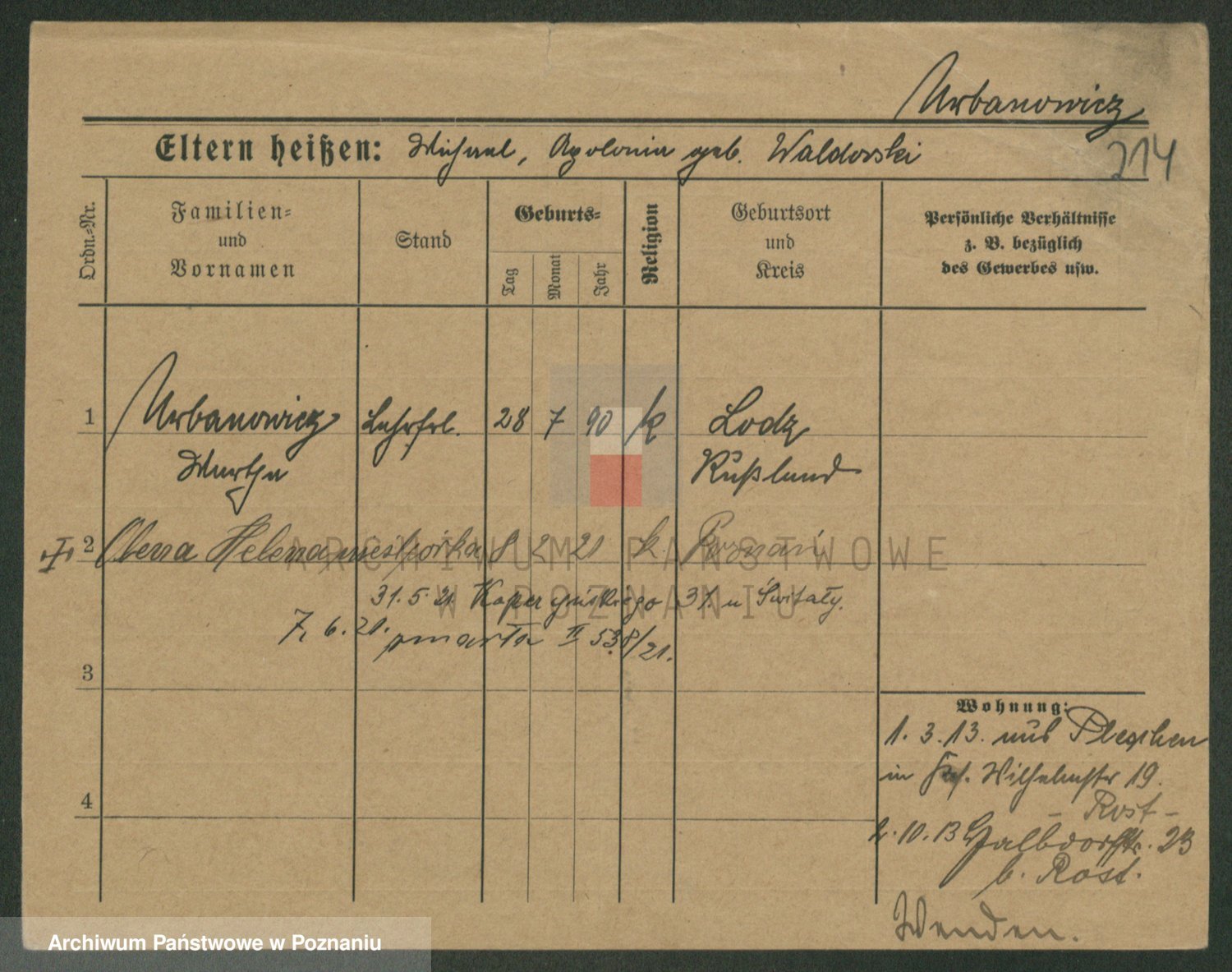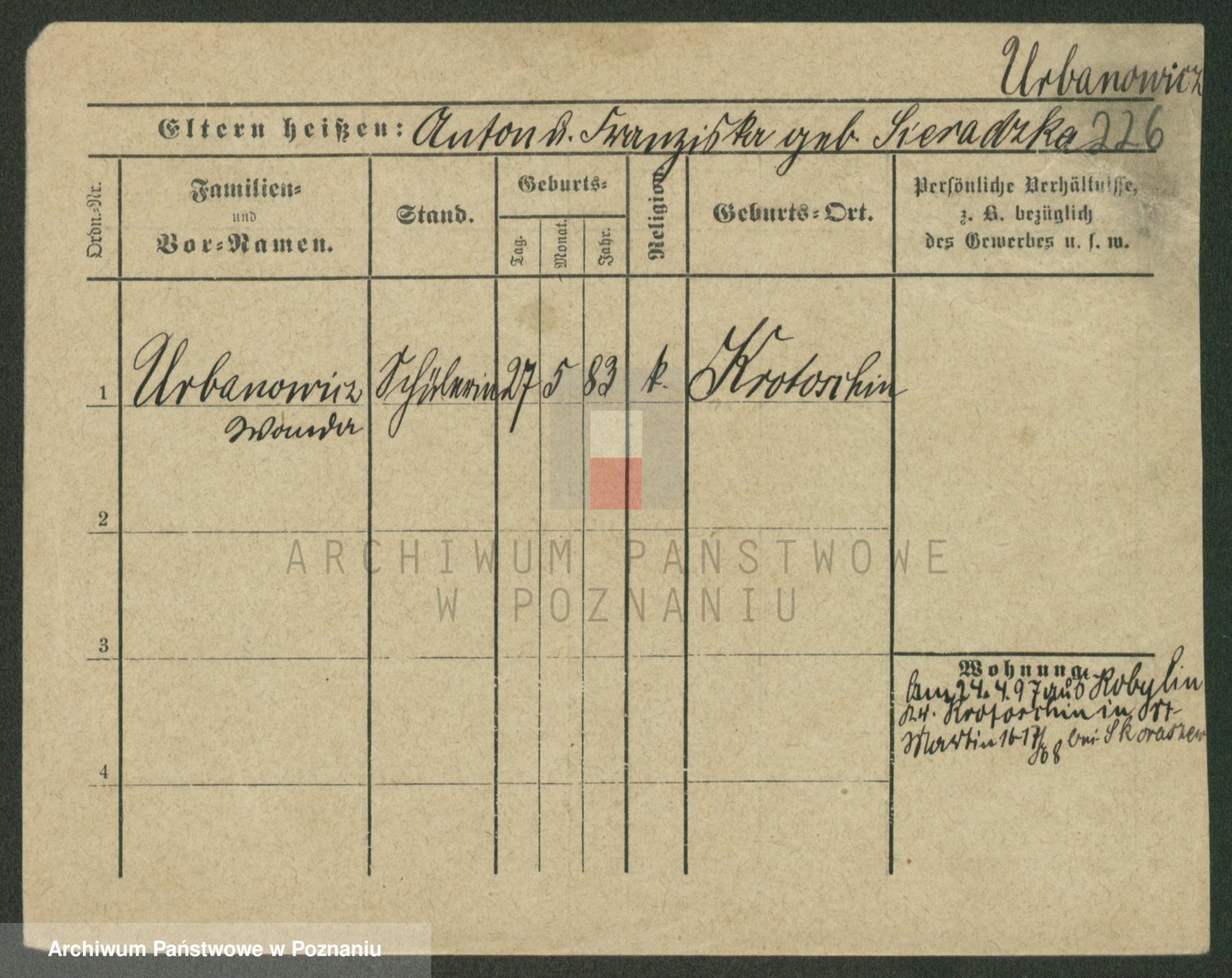 Urbanski z d. Nadolna II voto Wozniak, Josefa