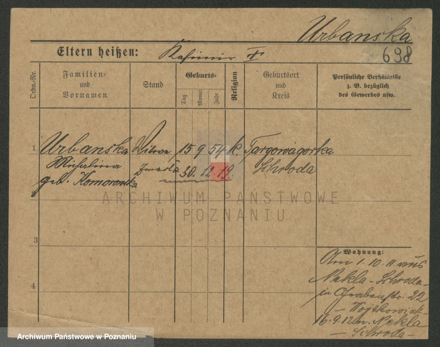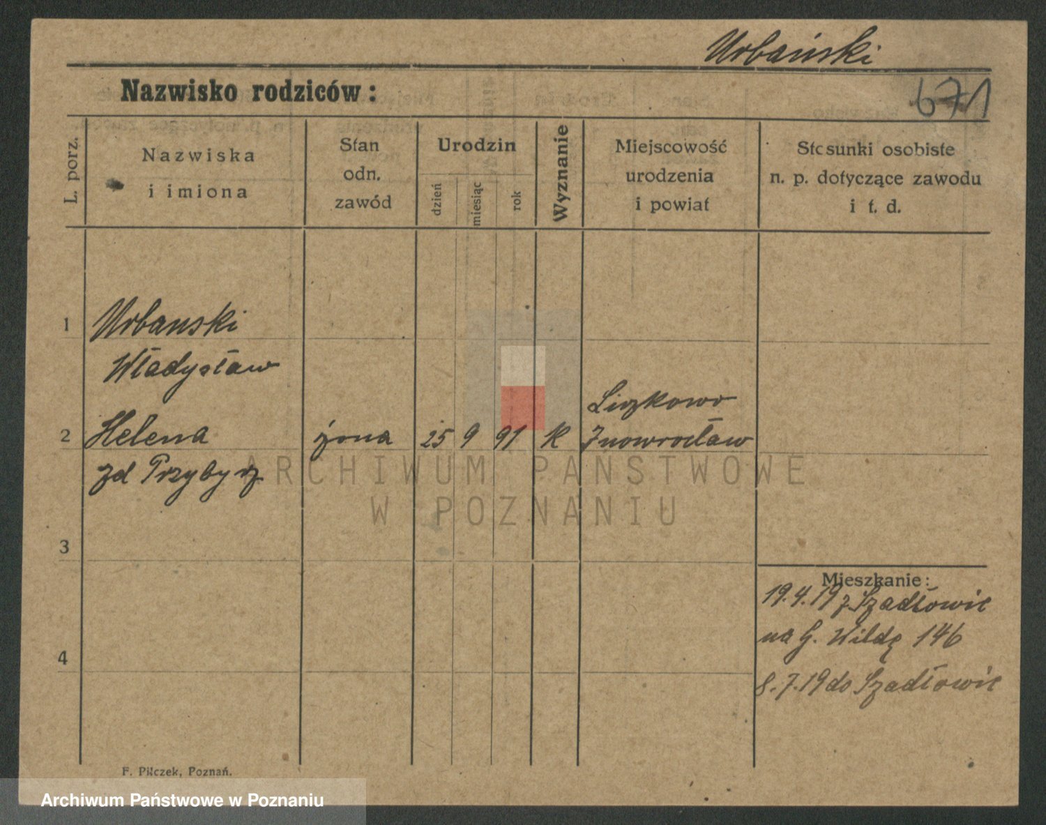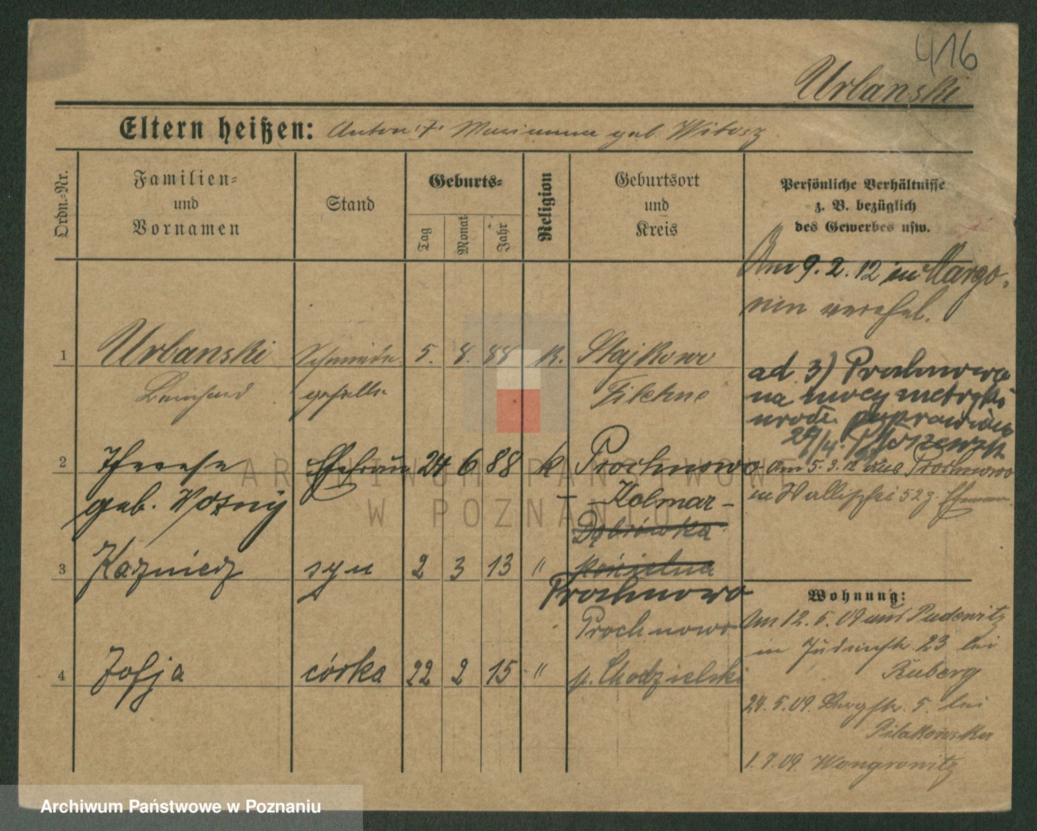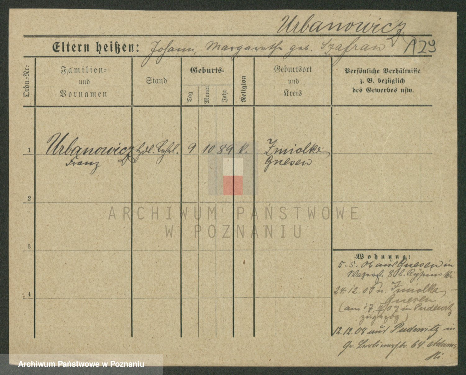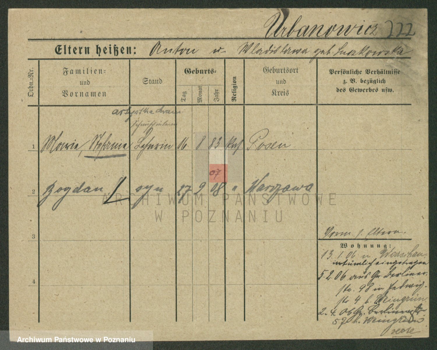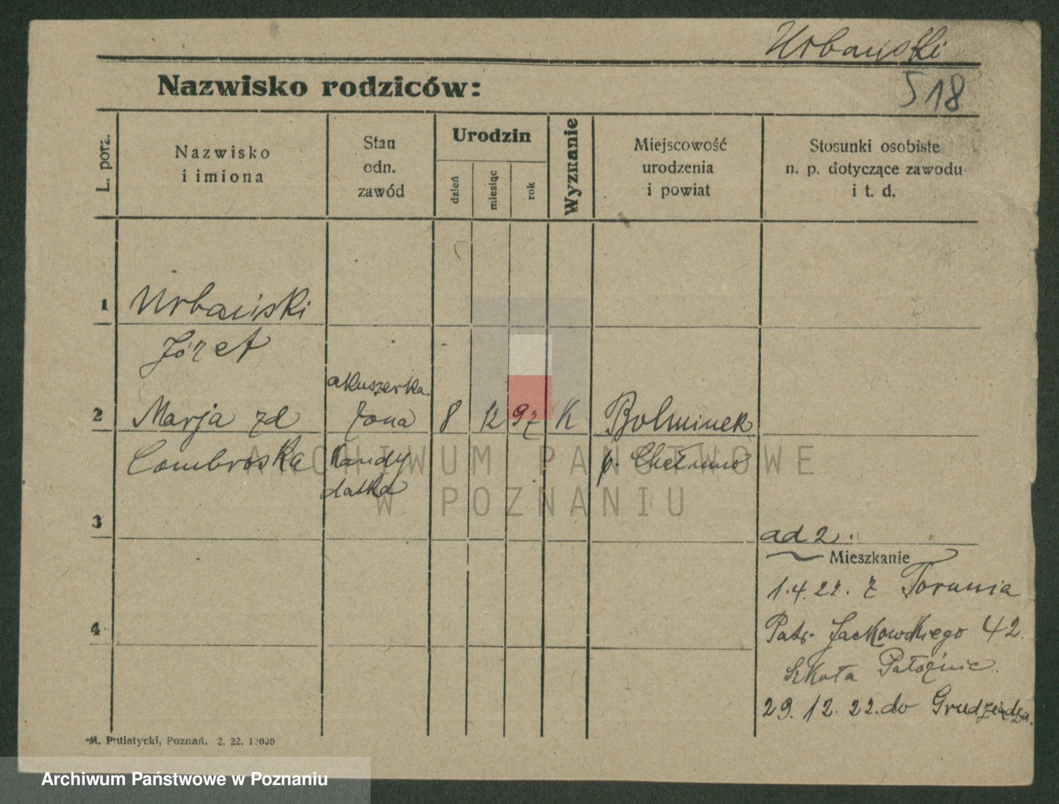 Urbanski z d. Nadolna II voto Wozniak, Josefa