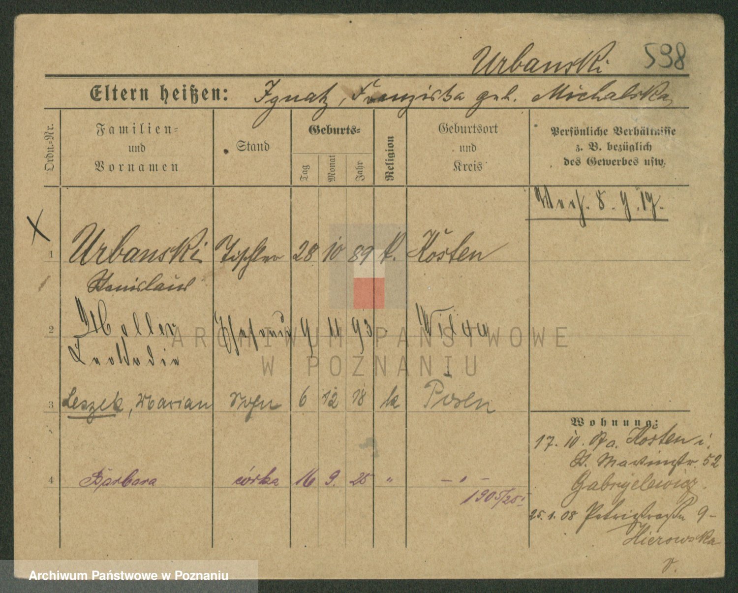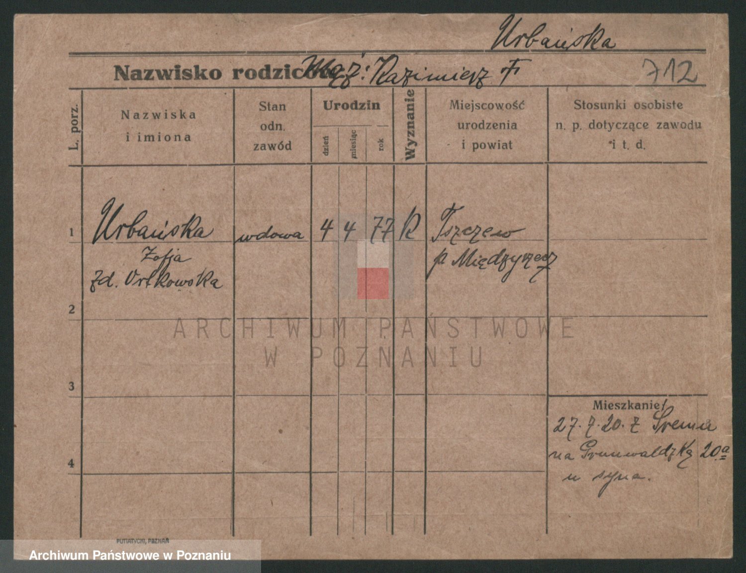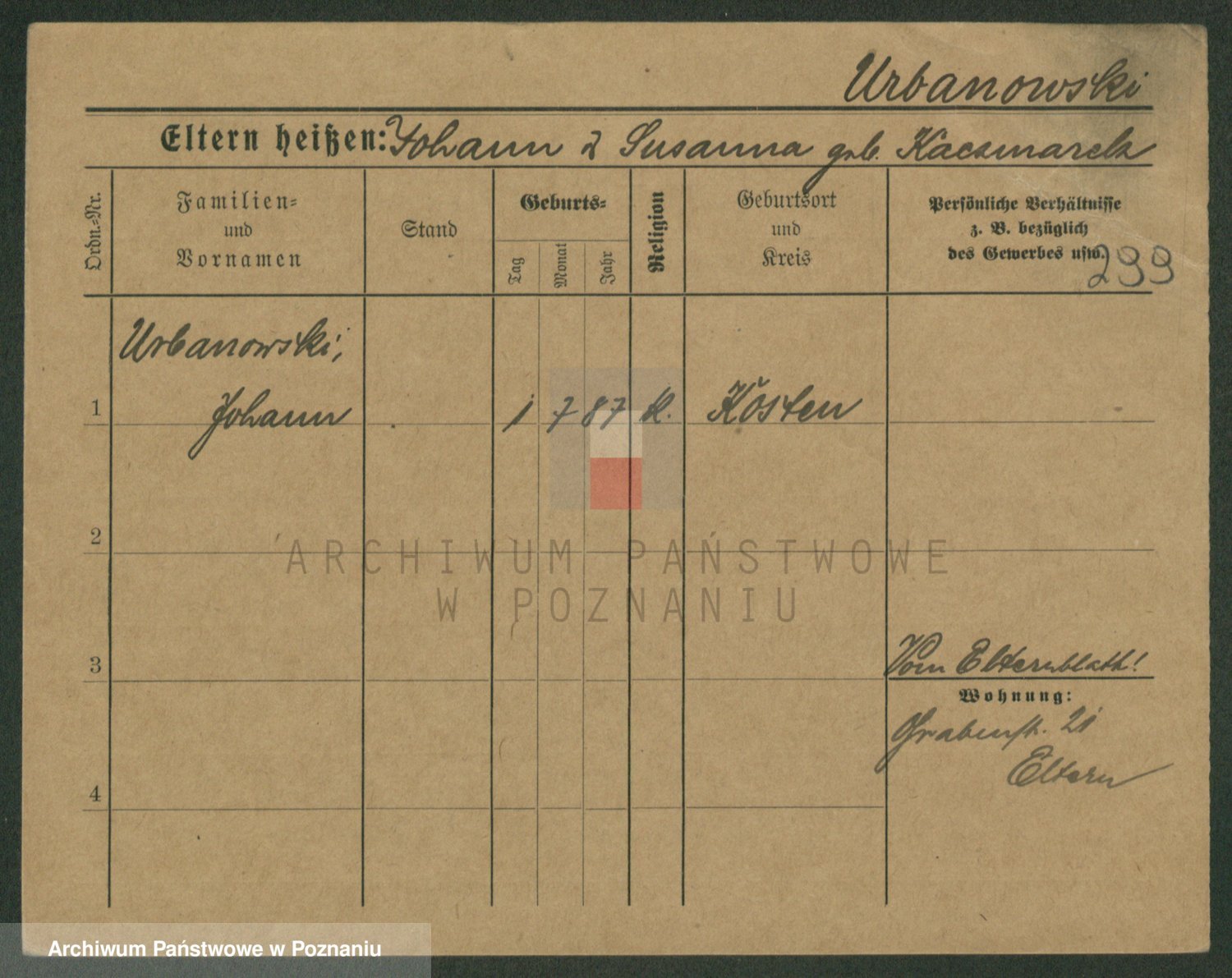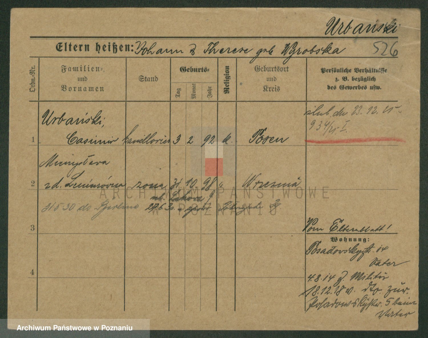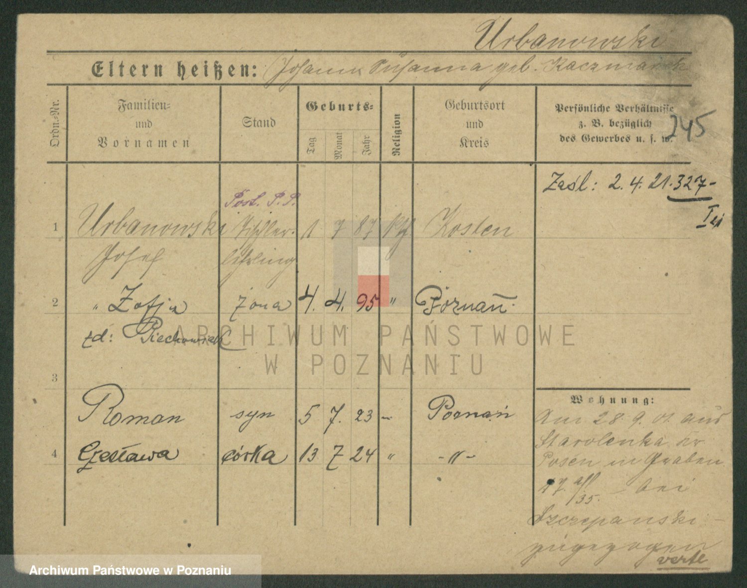 Urbanski z d. Nadolna II voto Wozniak, Josefa
