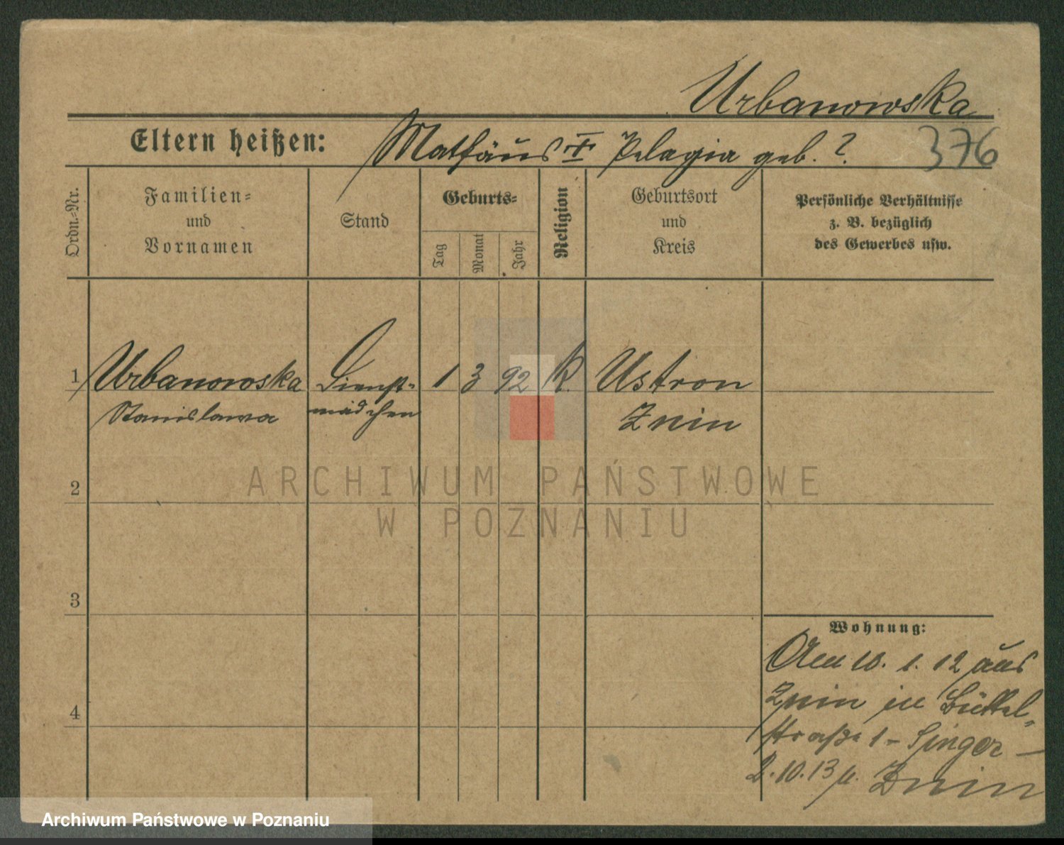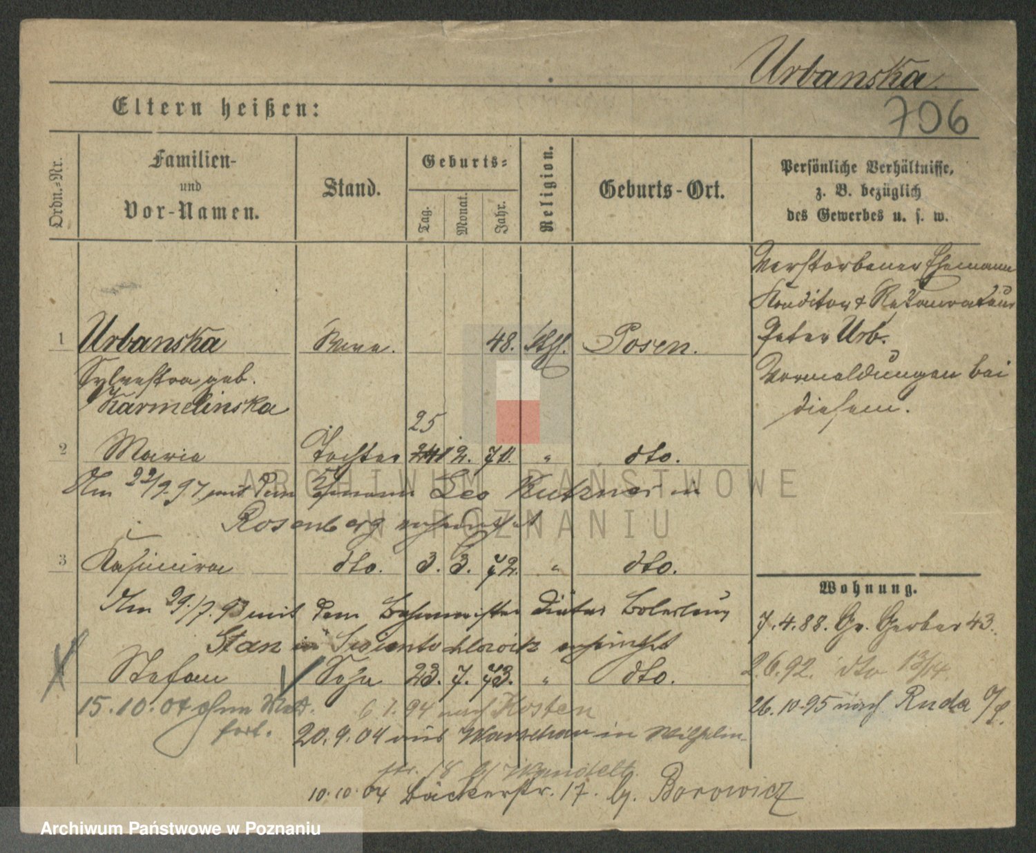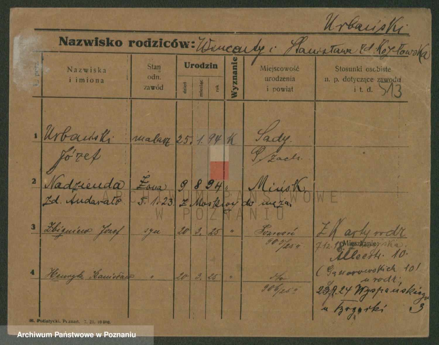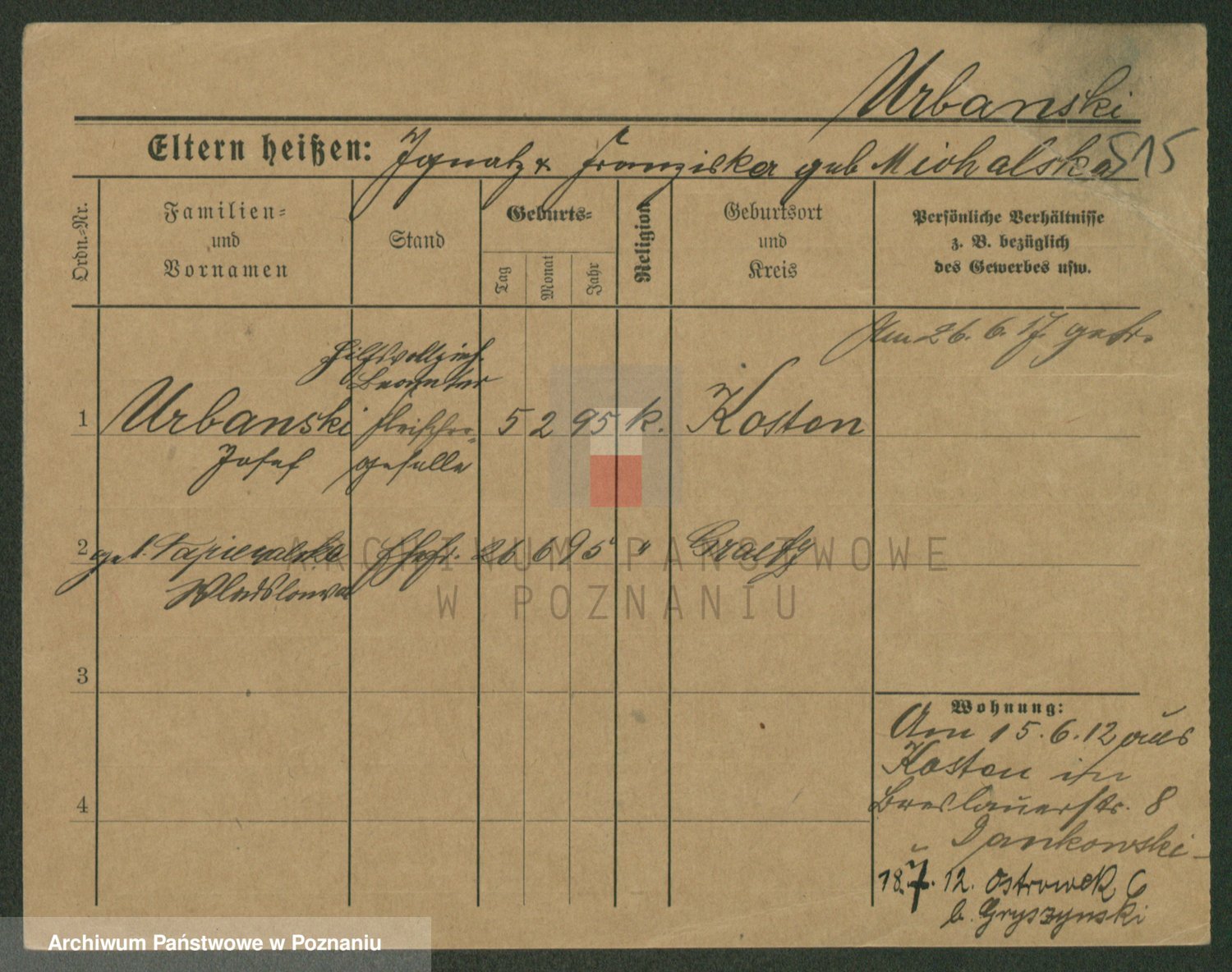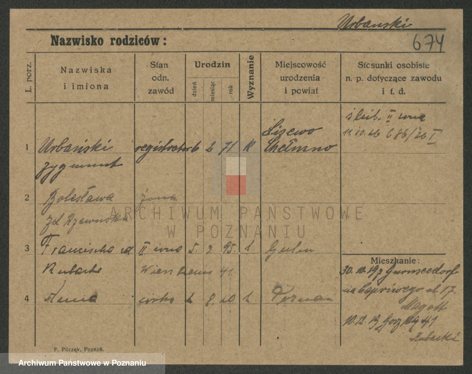 Urbanski z d. Nadolna II voto Wozniak, Josefa