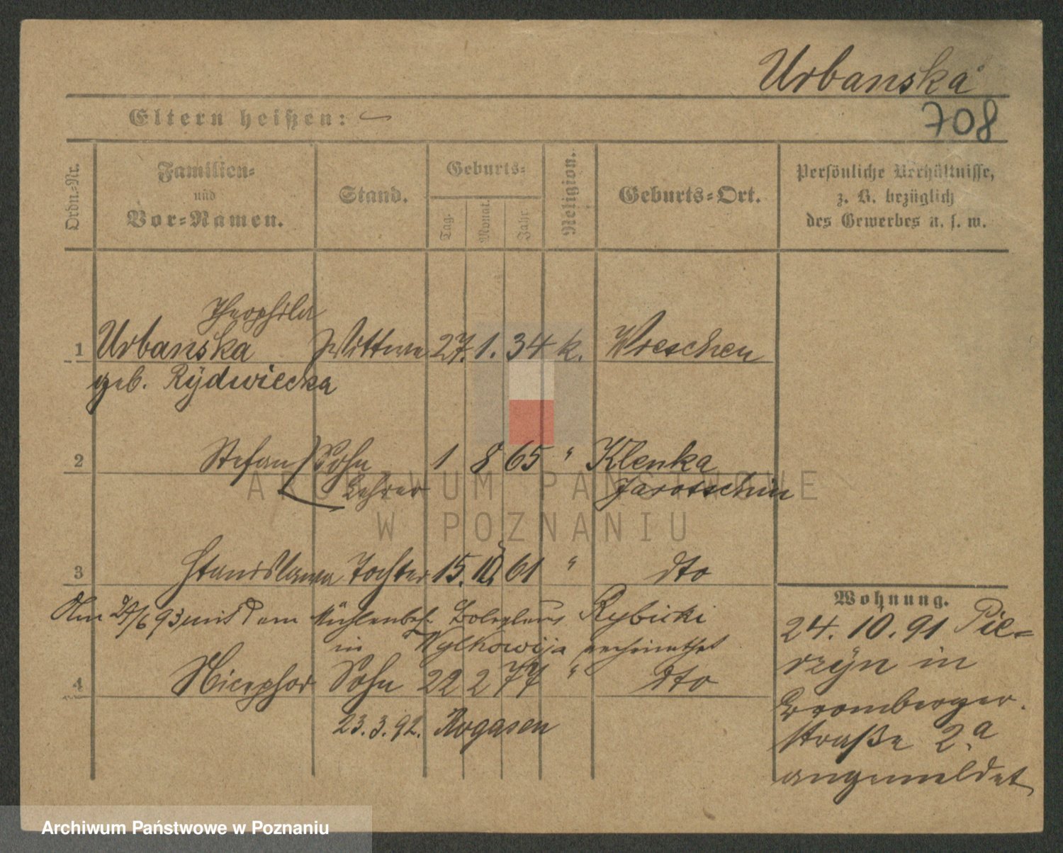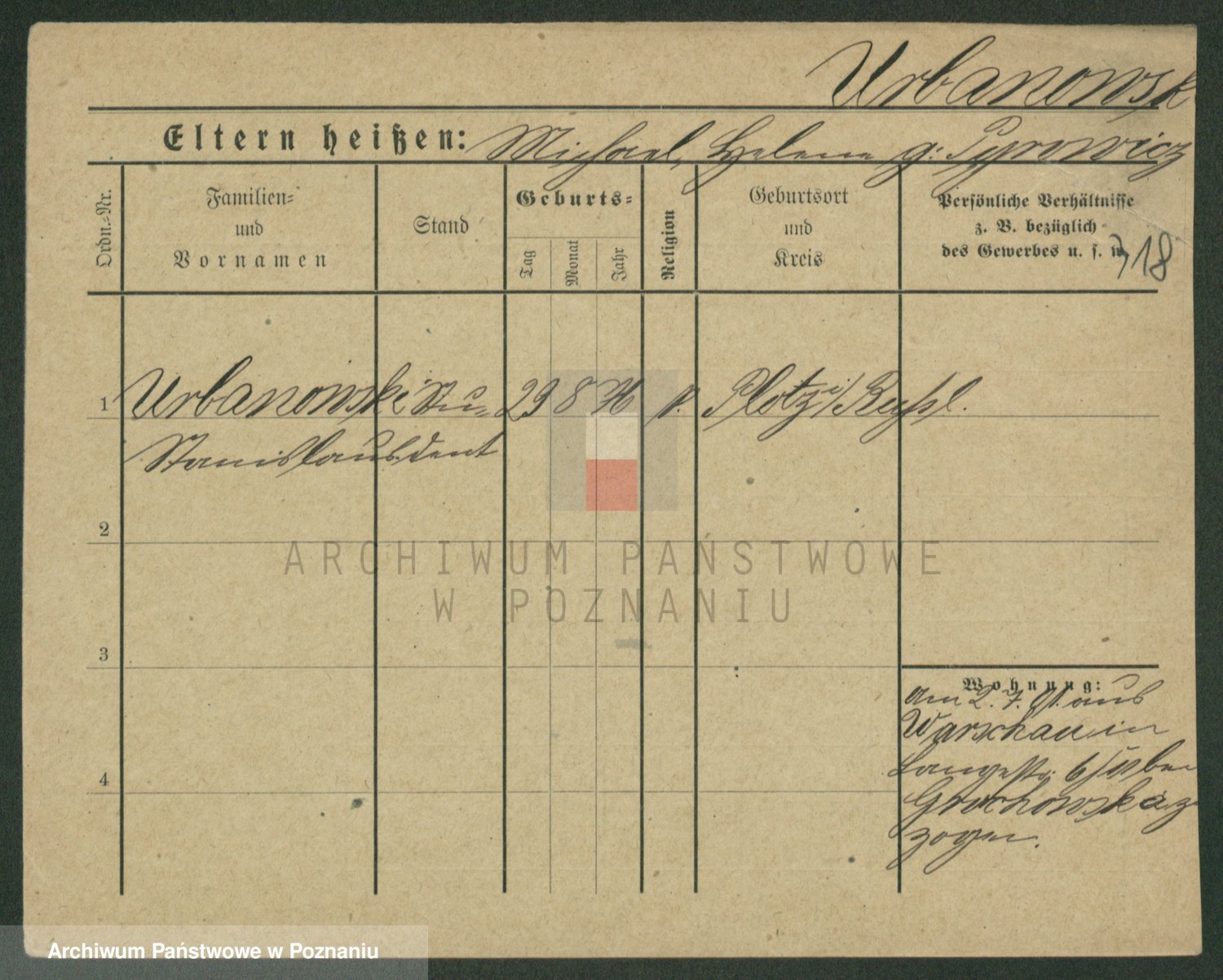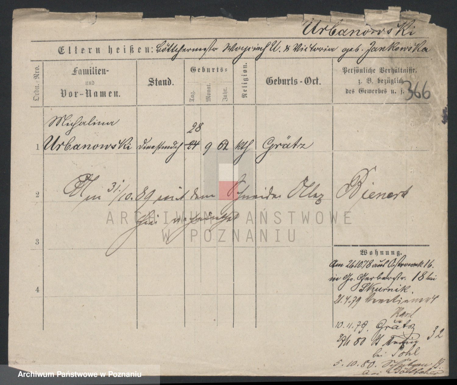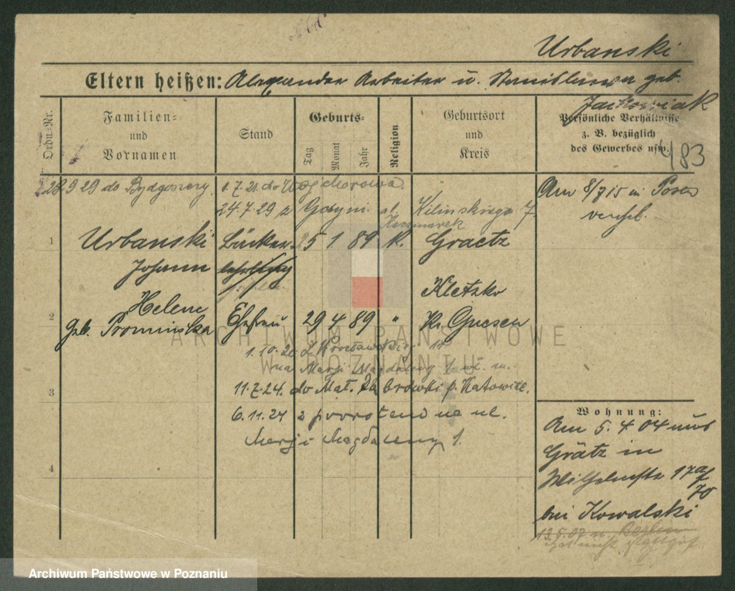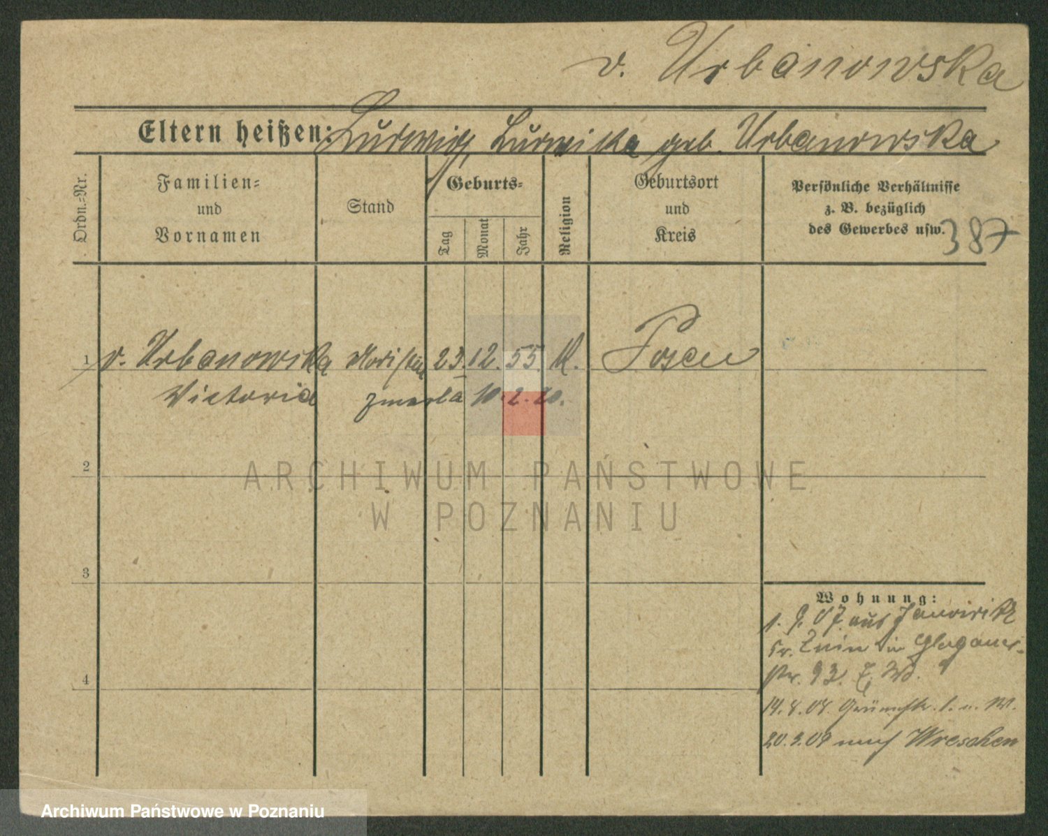 Urbanski z d. Nadolna II voto Wozniak, Josefa