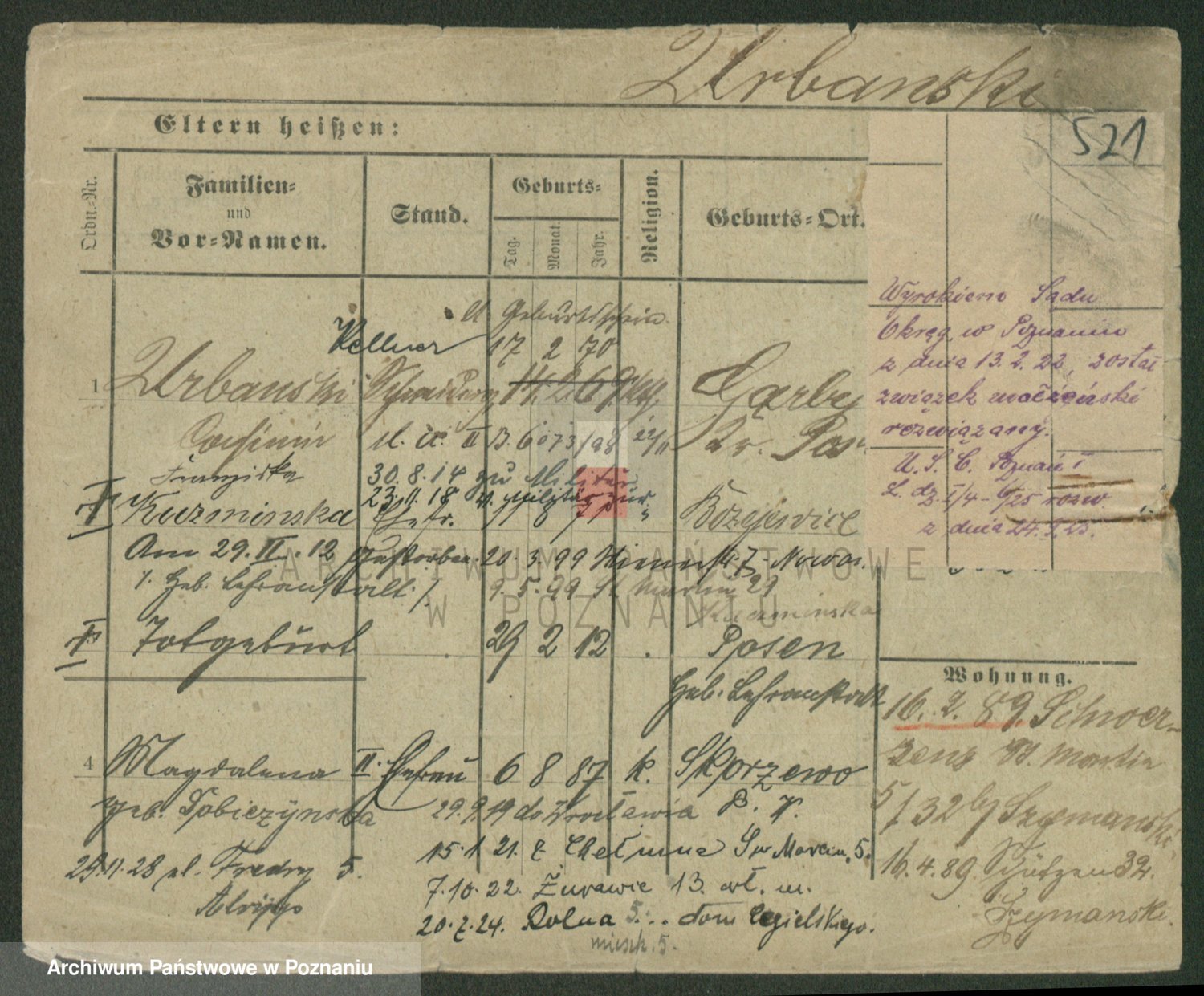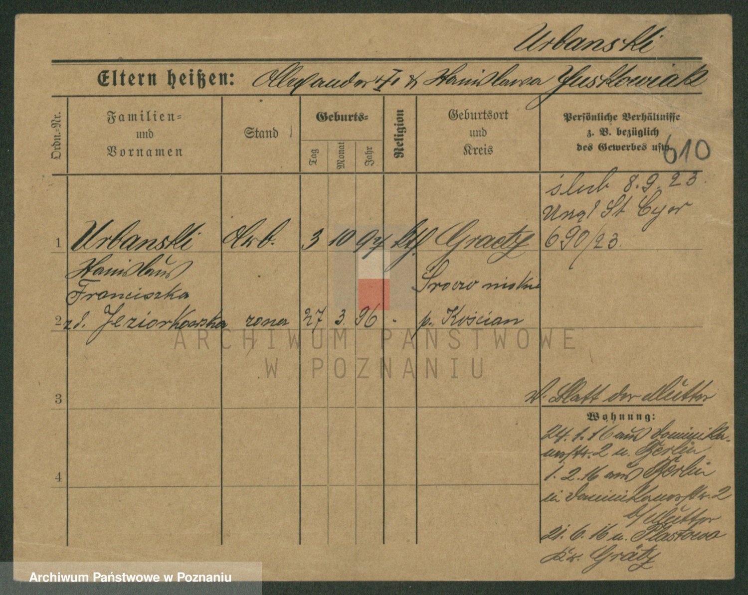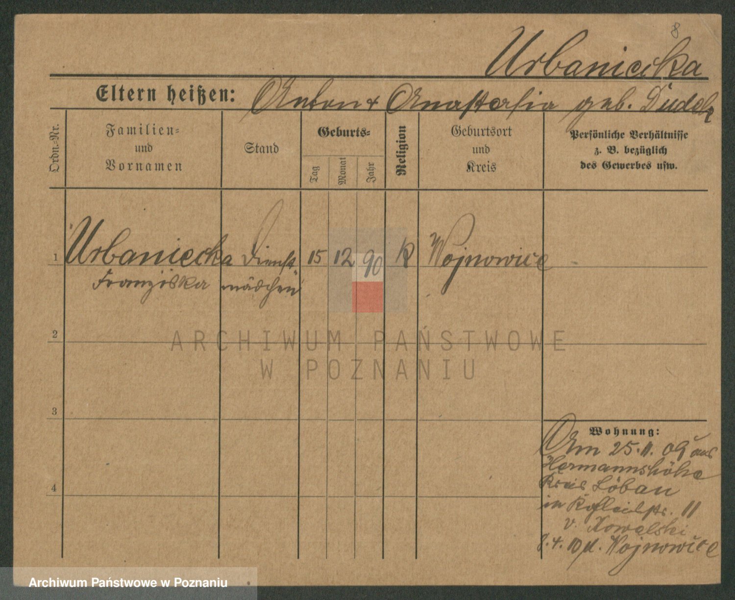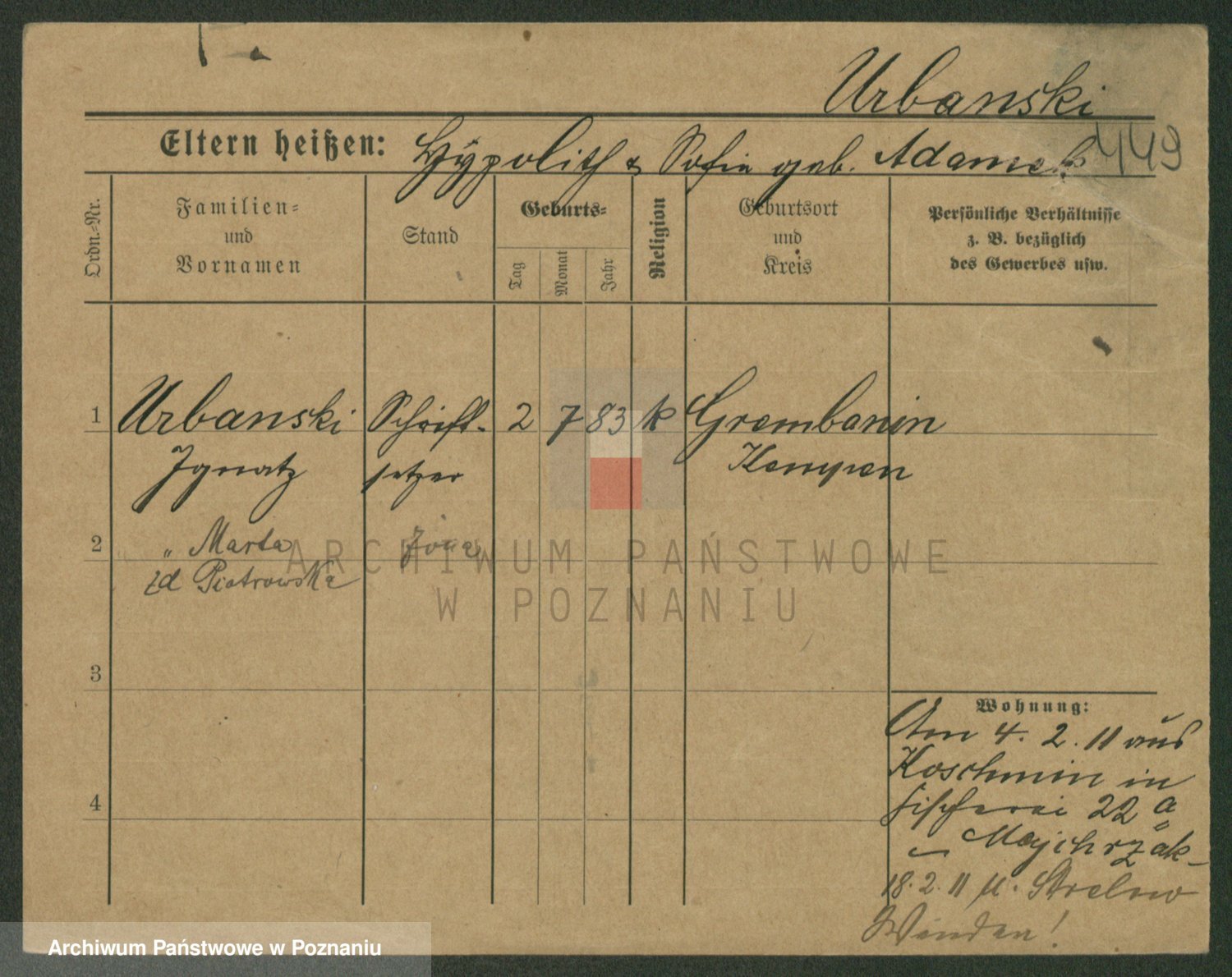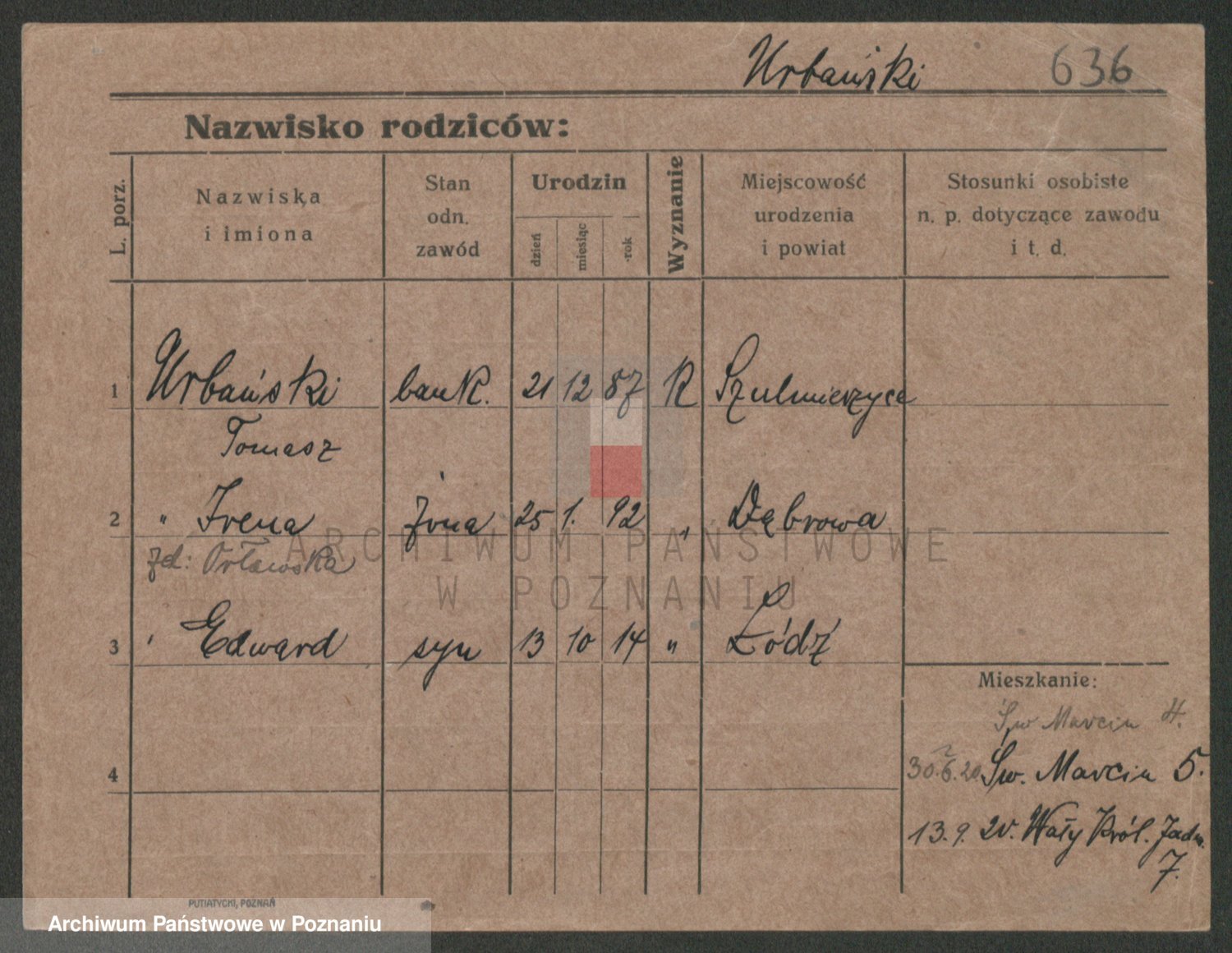 Urbanski z d. Nadolna II voto Wozniak, Josefa