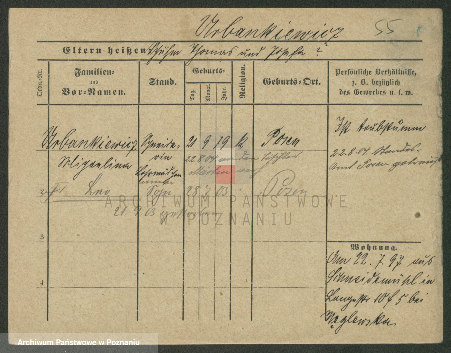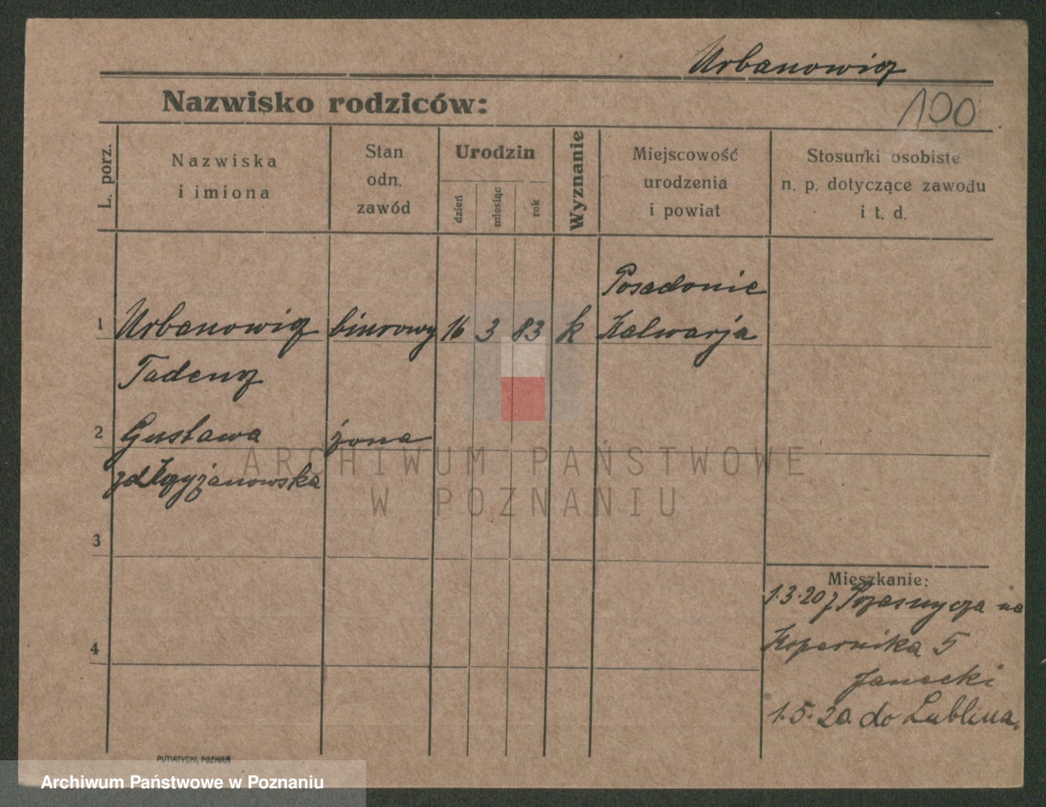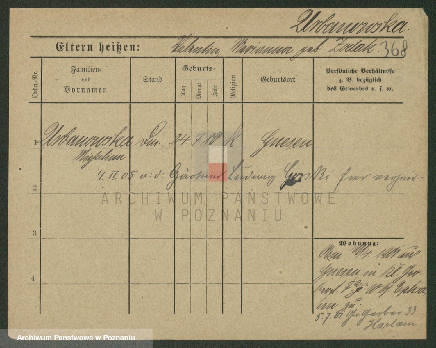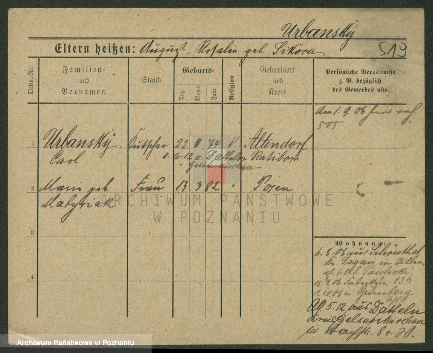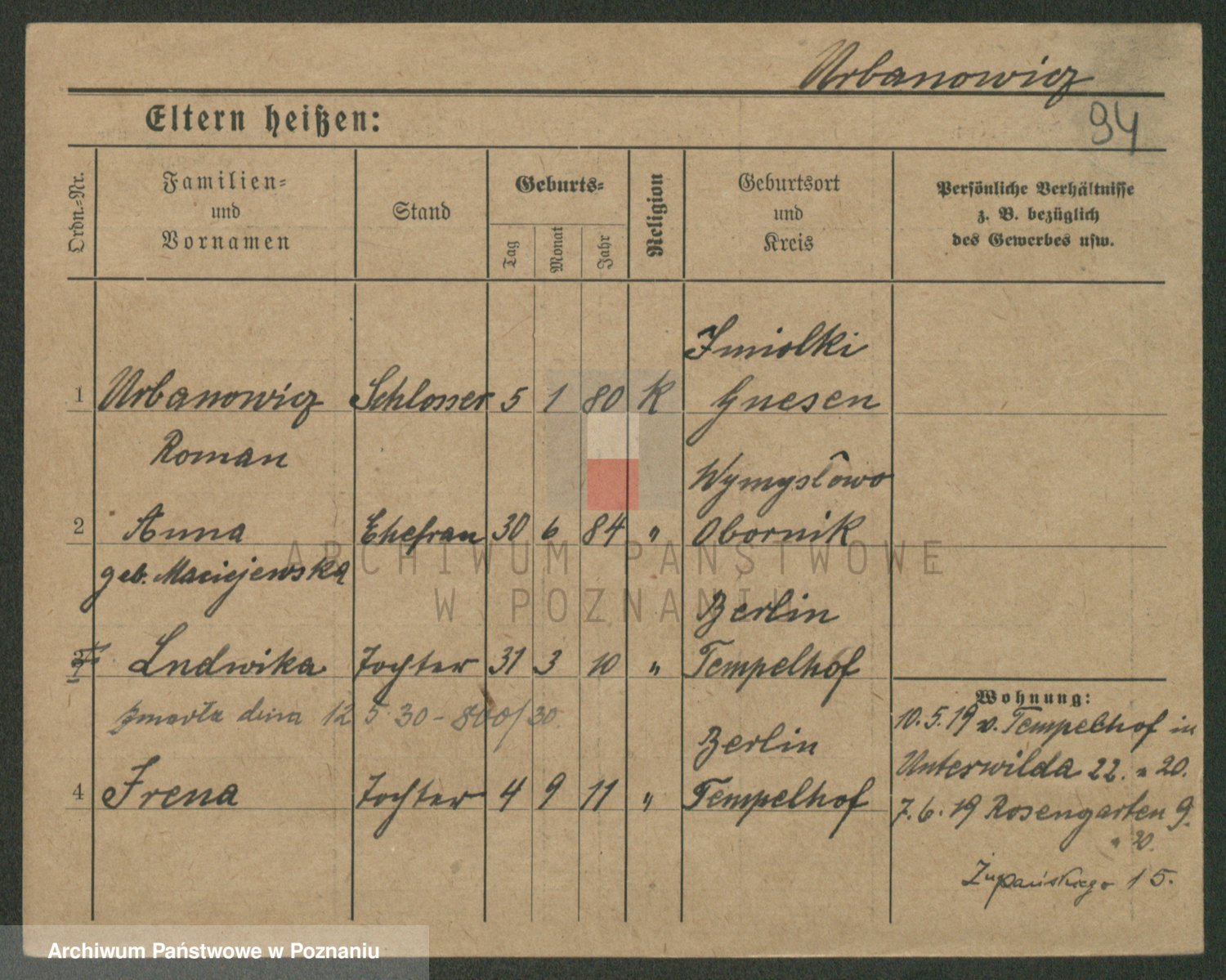 Urbanski z d. Nadolna II voto Wozniak, Josefa