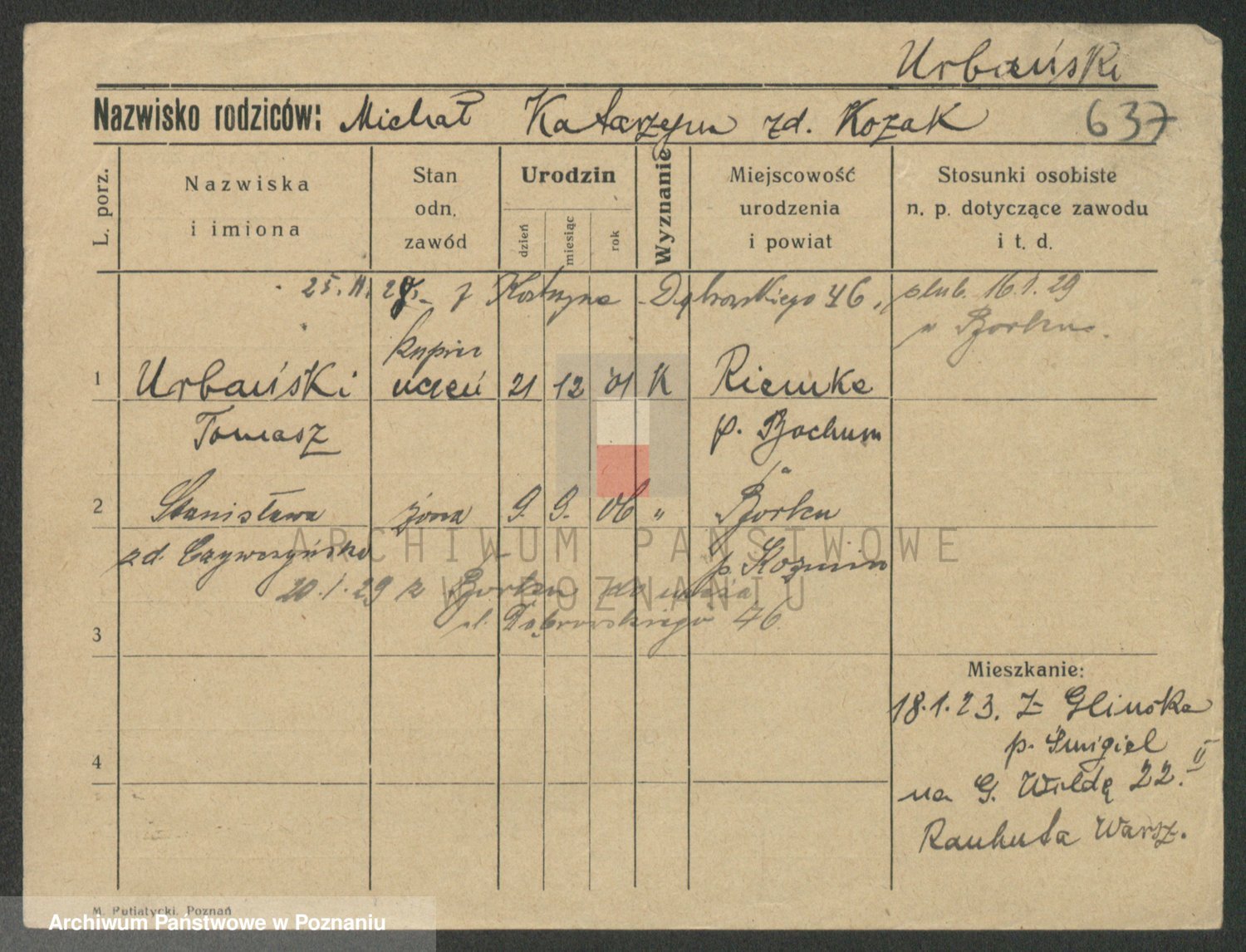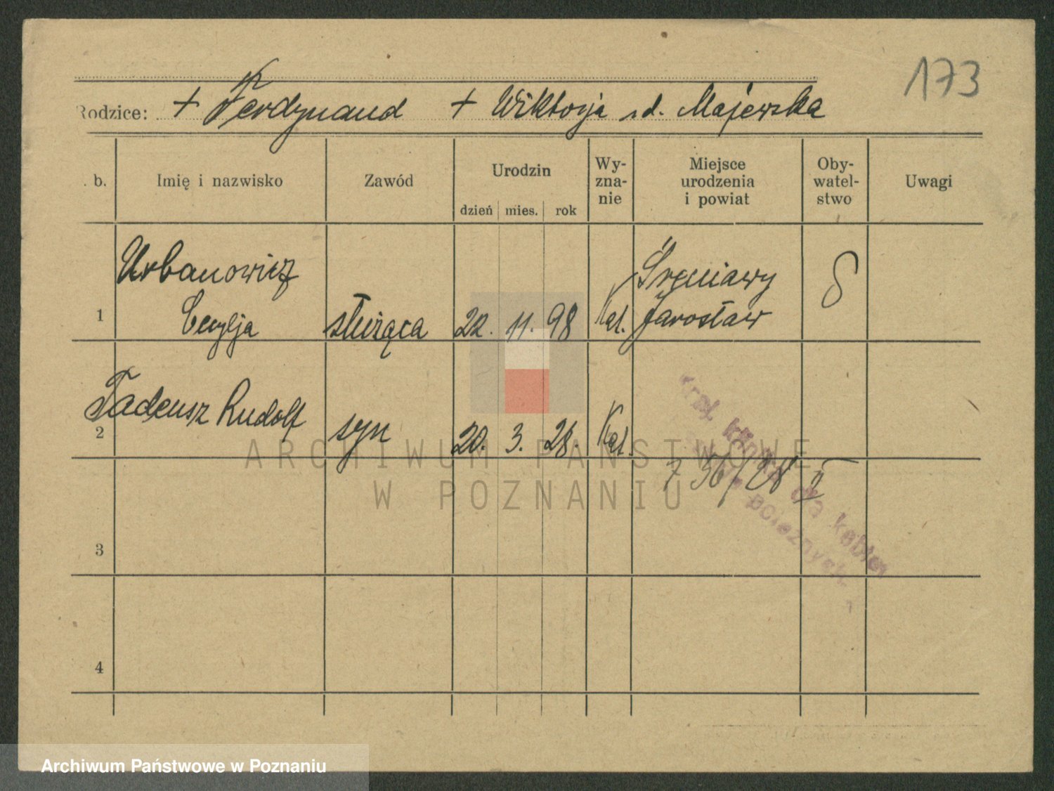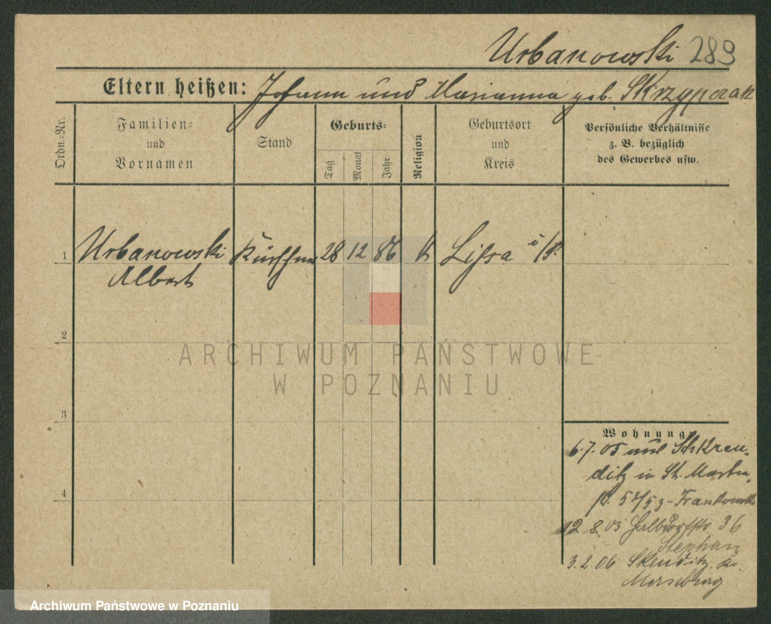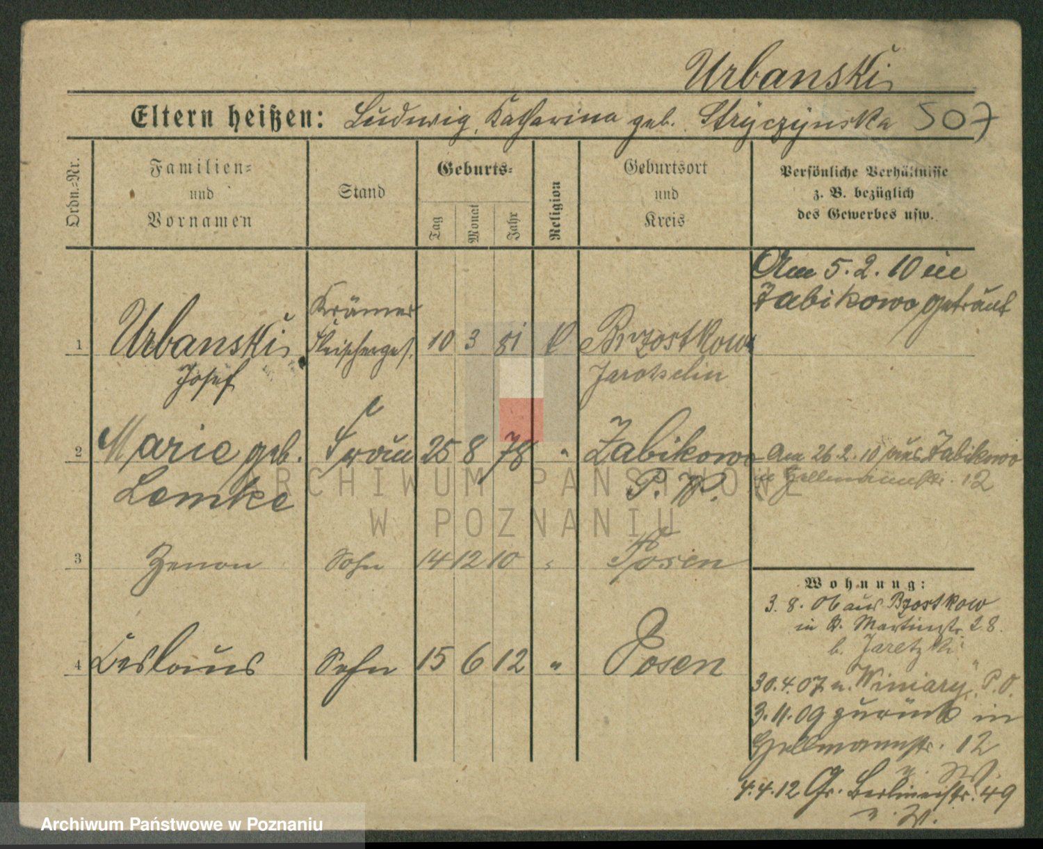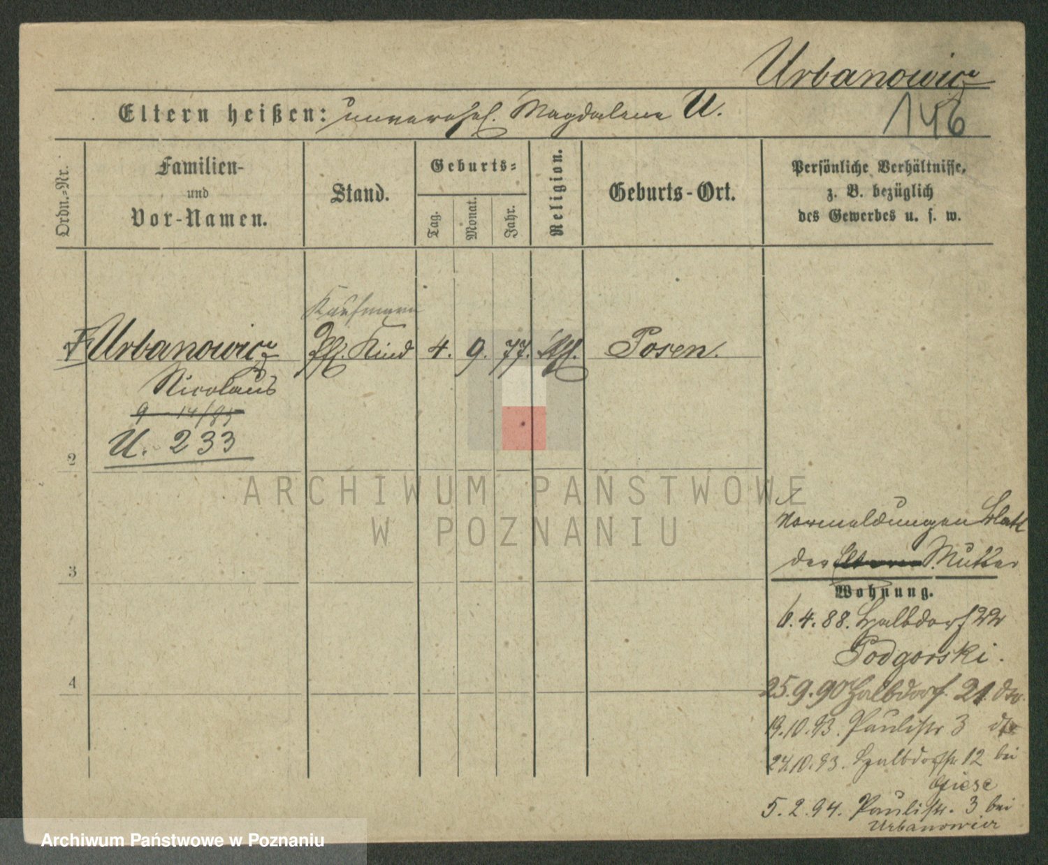 Urbanski z d. Nadolna II voto Wozniak, Josefa