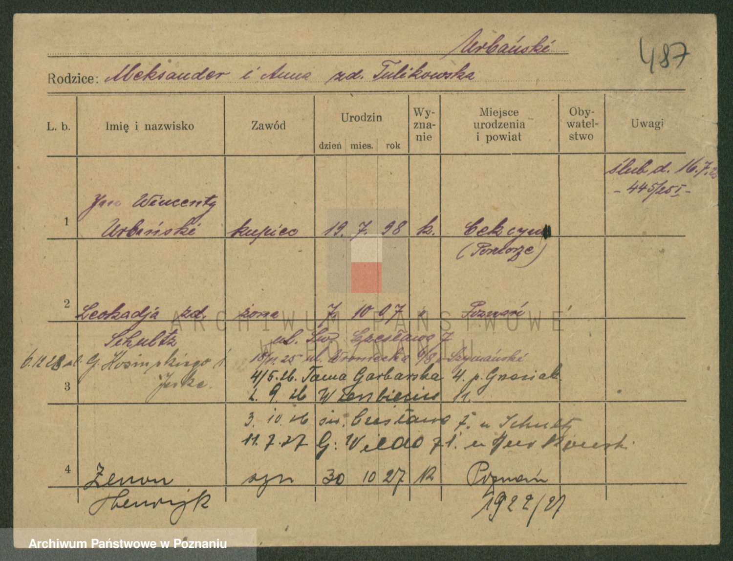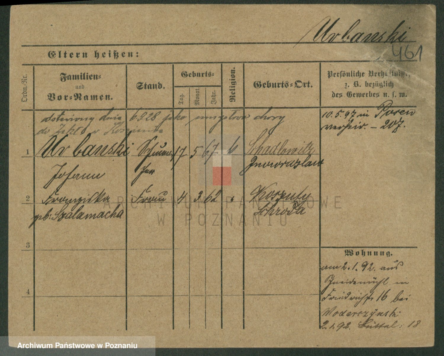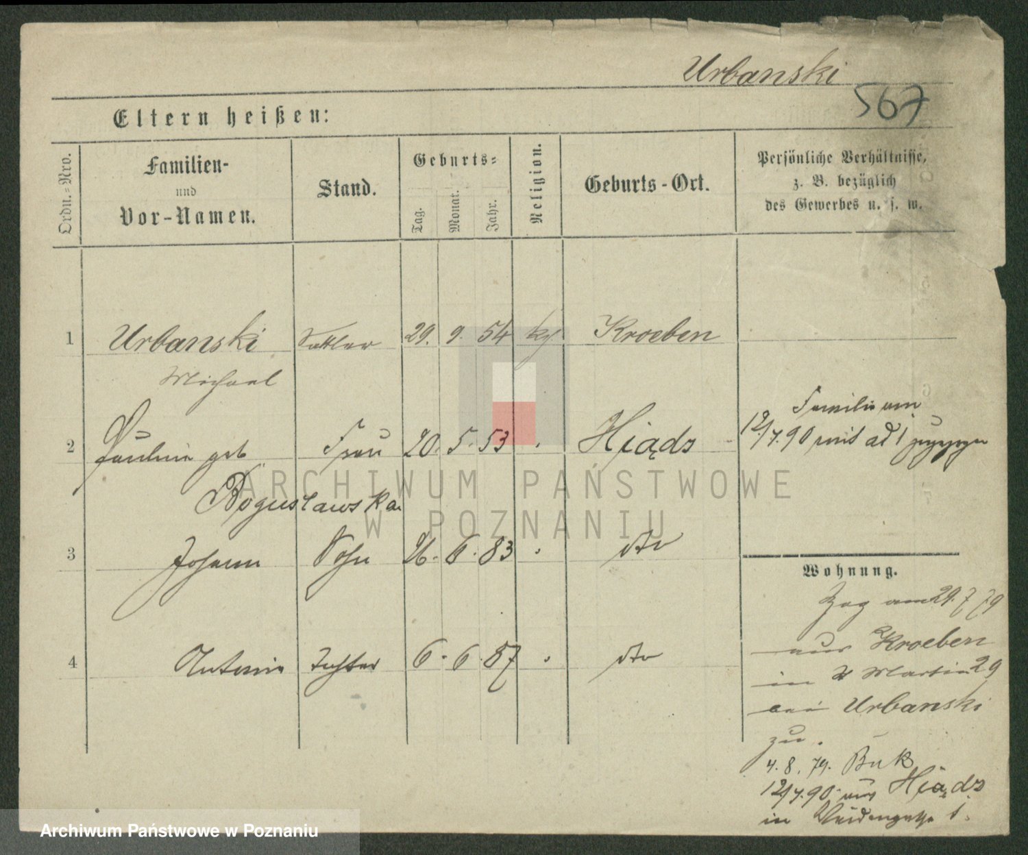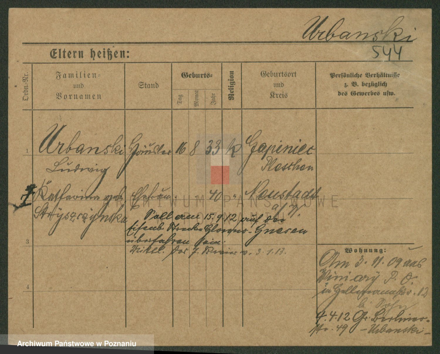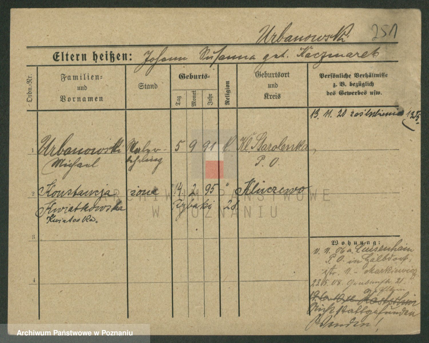 Urbanski z d. Nadolna II voto Wozniak, Josefa