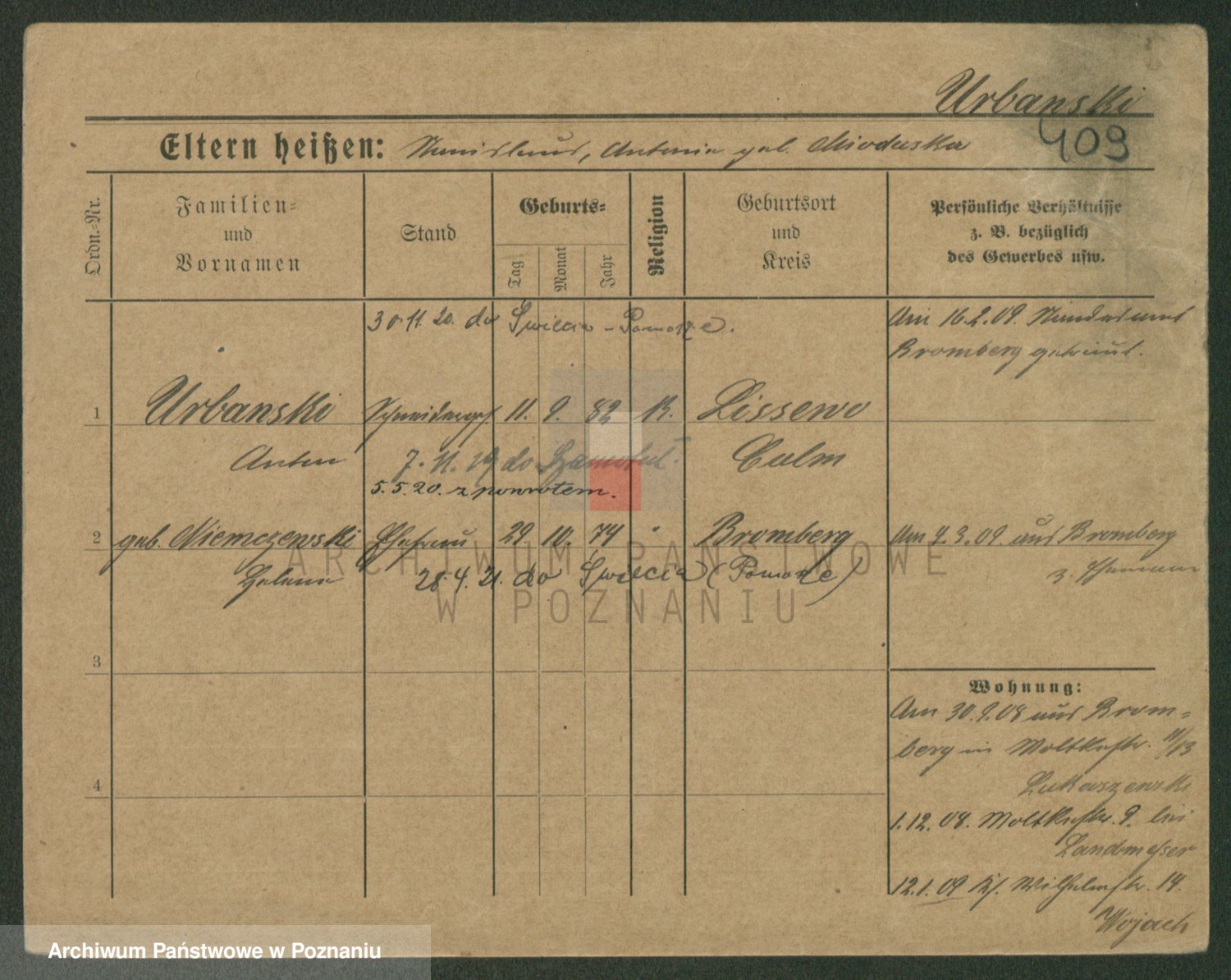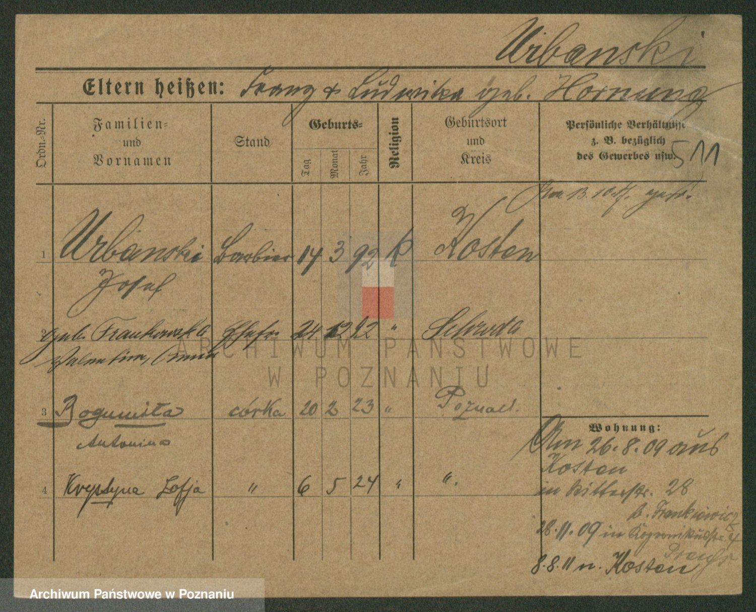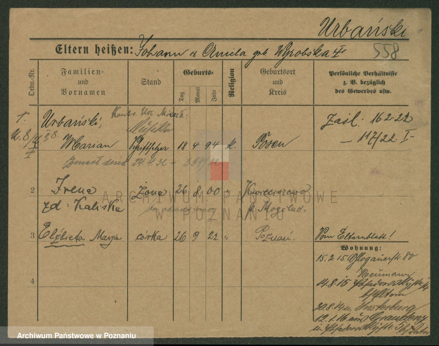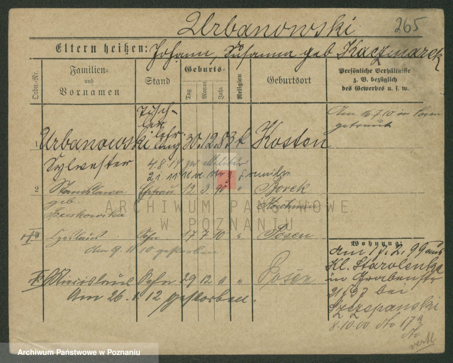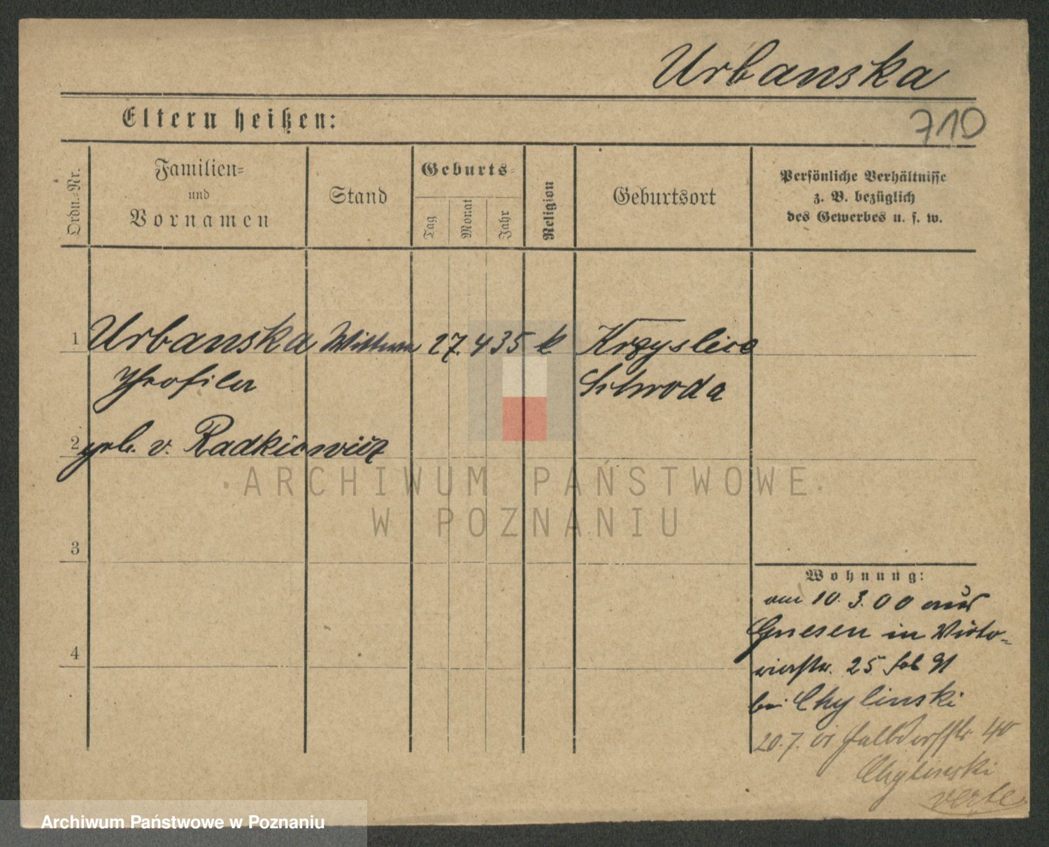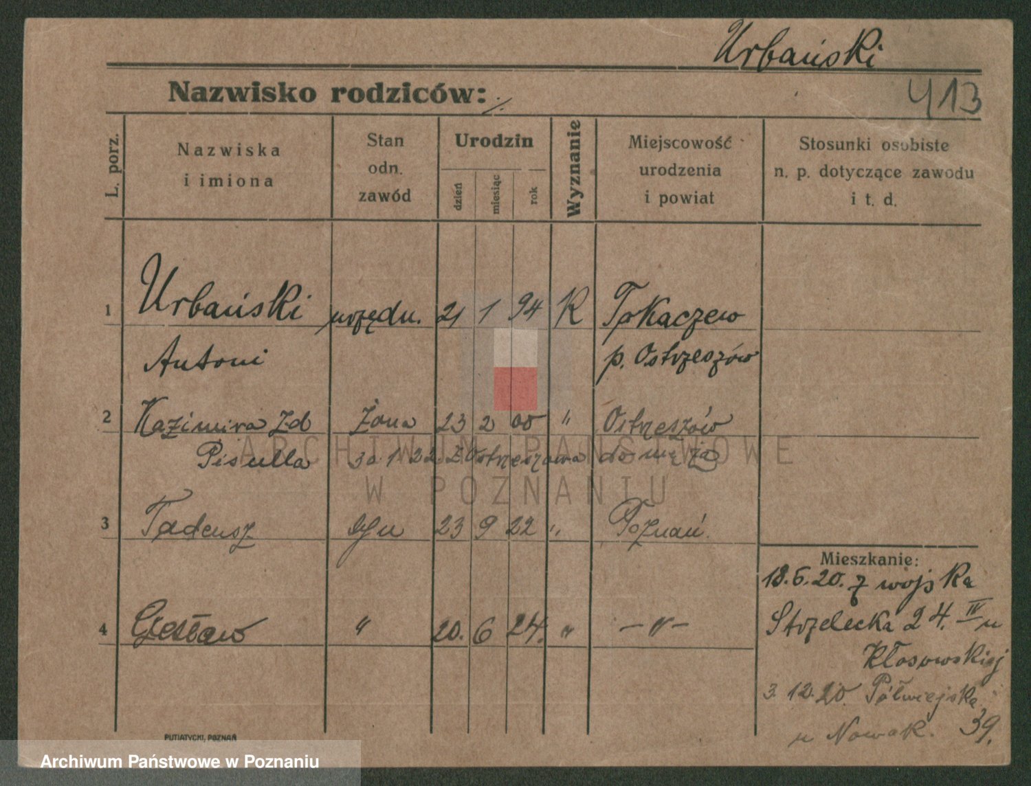 Urbanski z d. Nadolna II voto Wozniak, Josefa