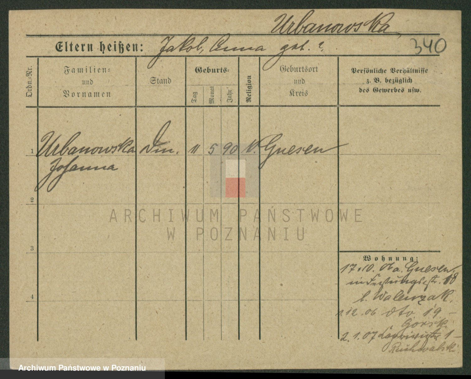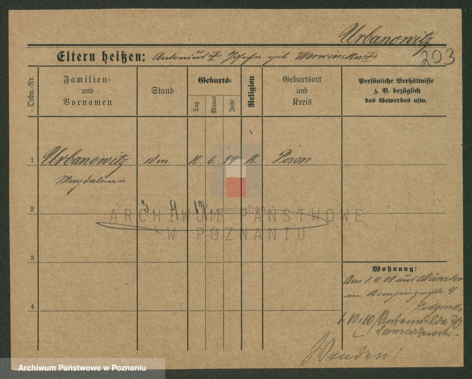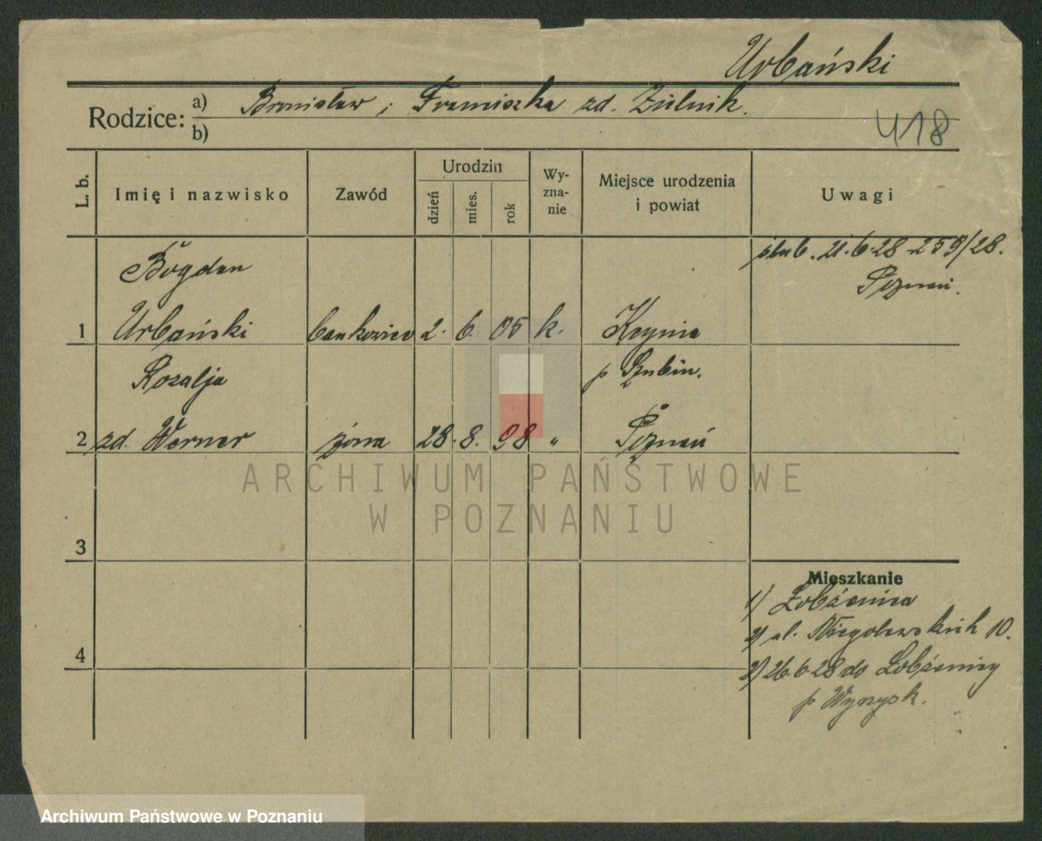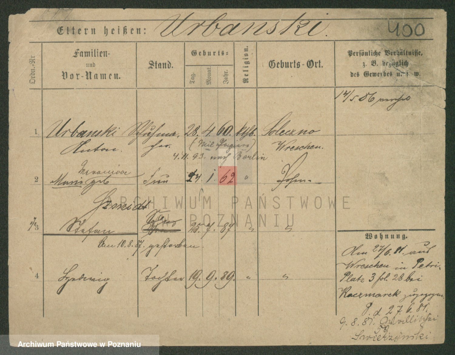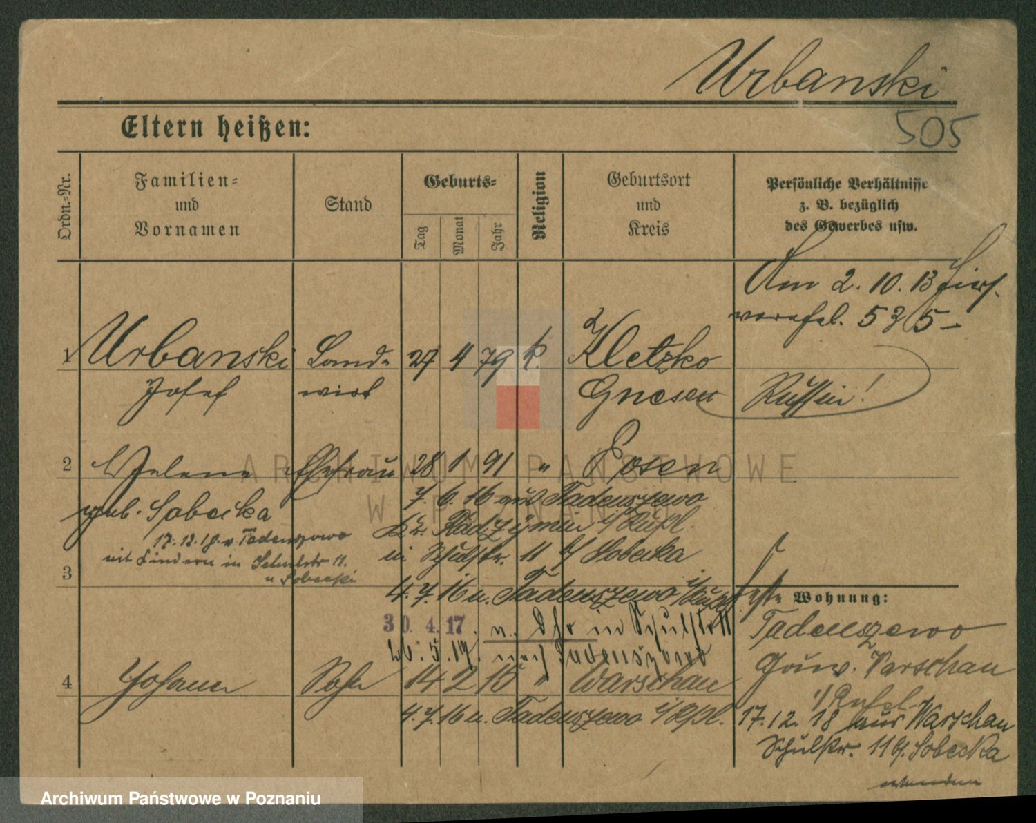 Urbanski z d. Nadolna II voto Wozniak, Josefa