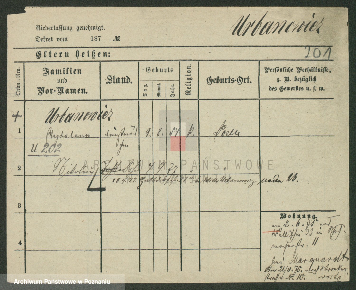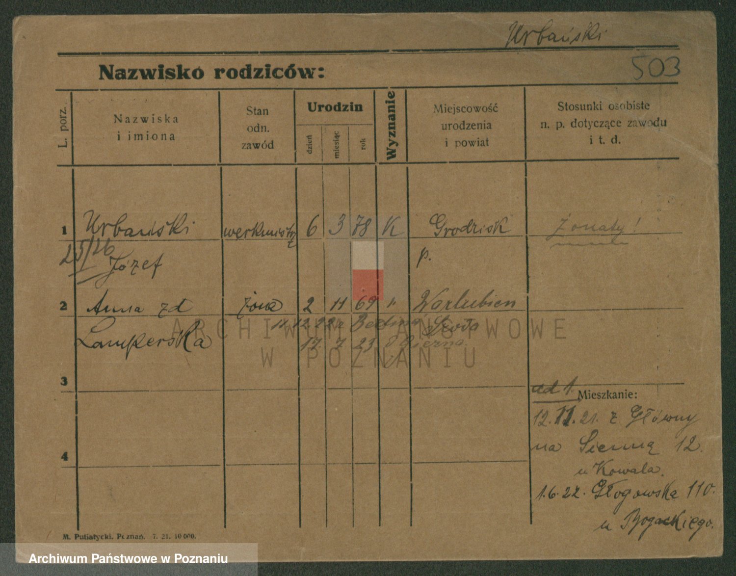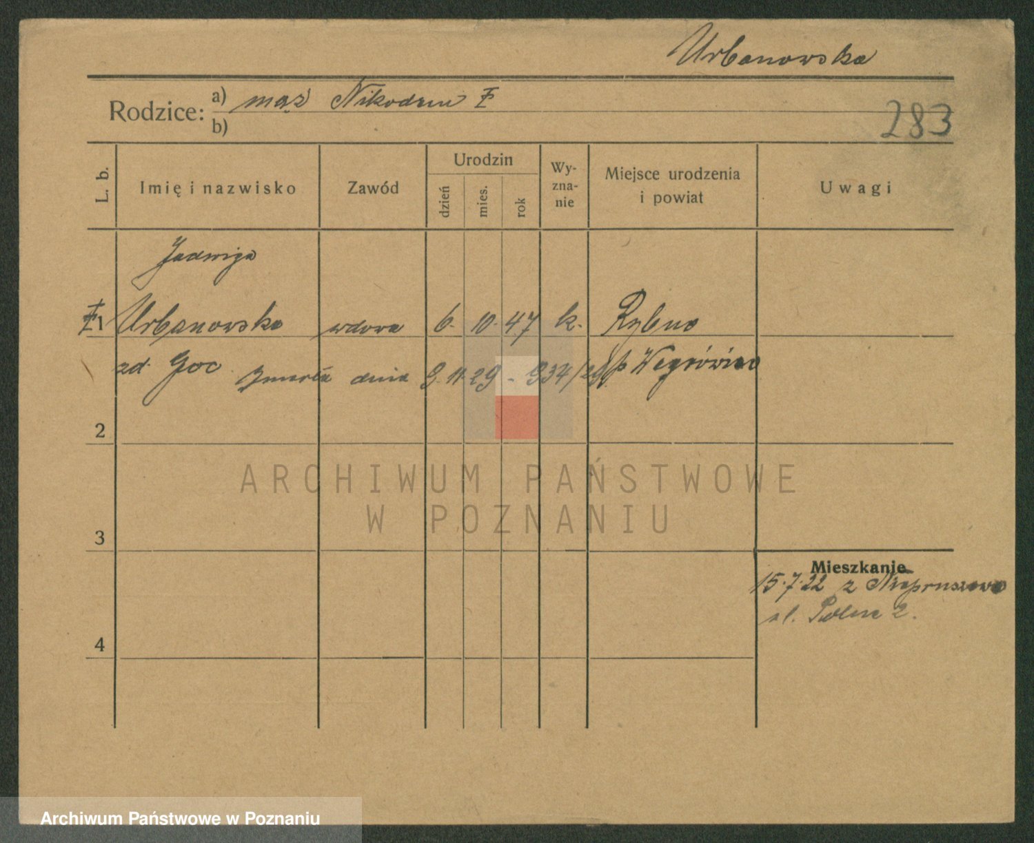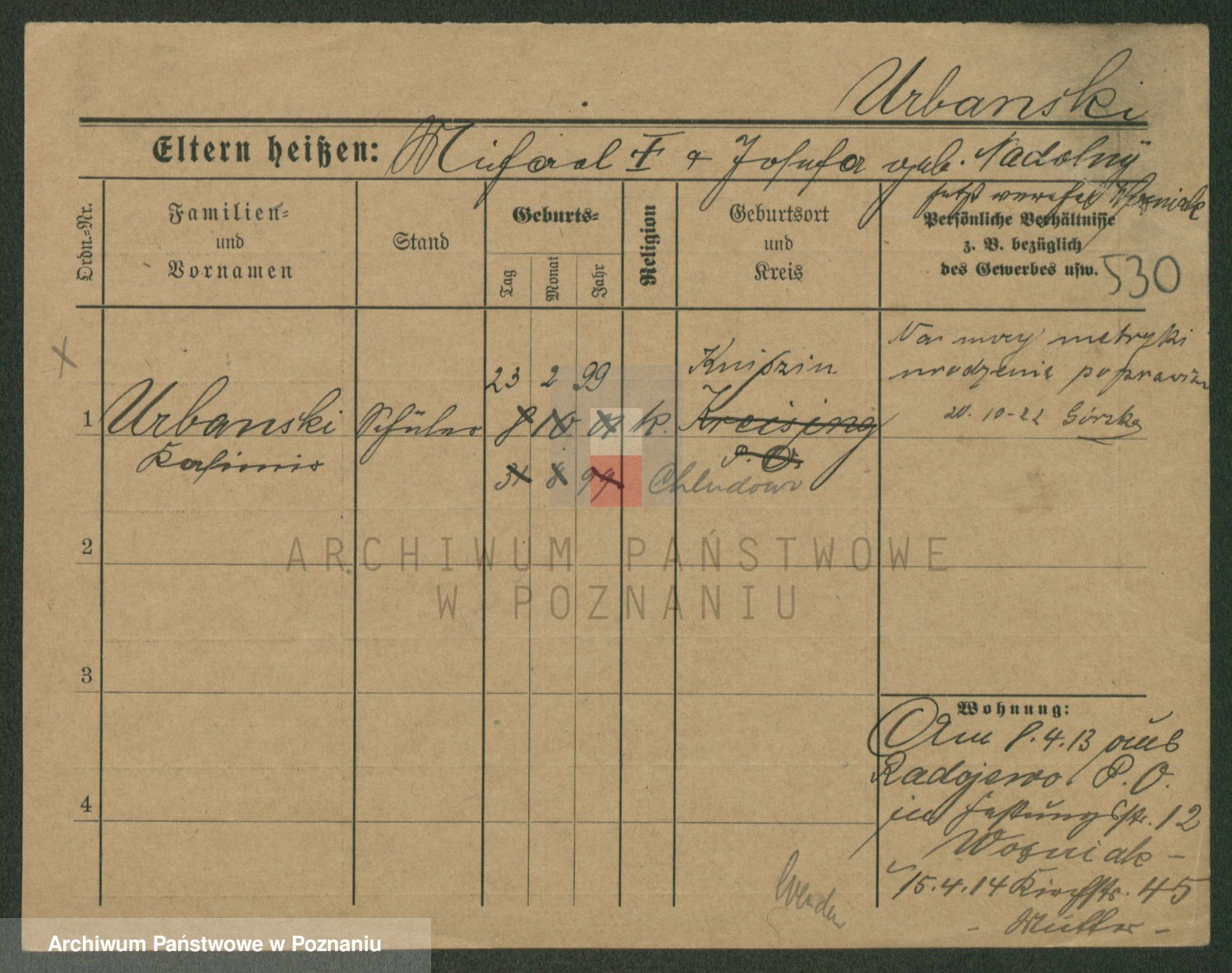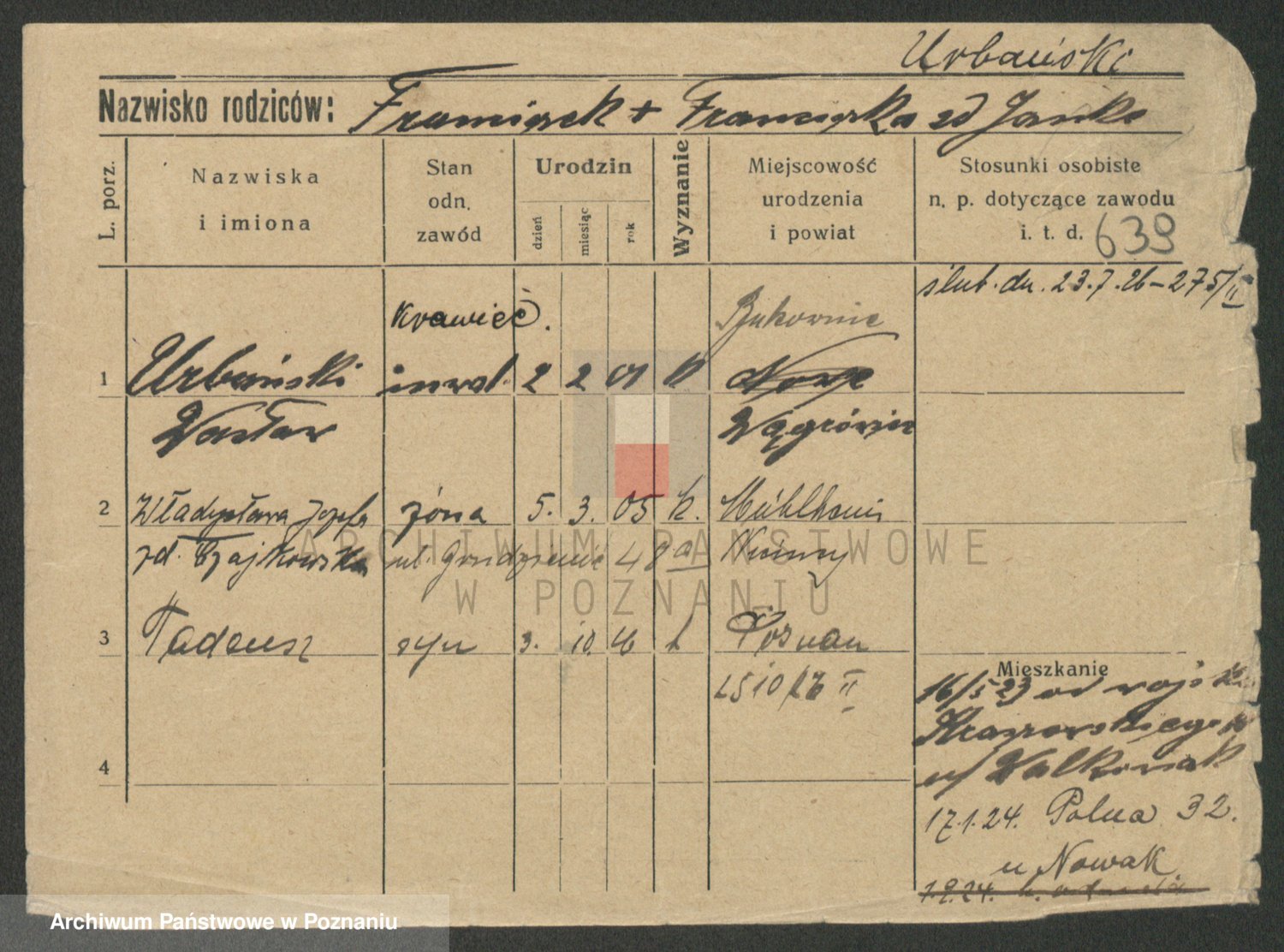 Urbanski z d. Nadolna II voto Wozniak, Josefa