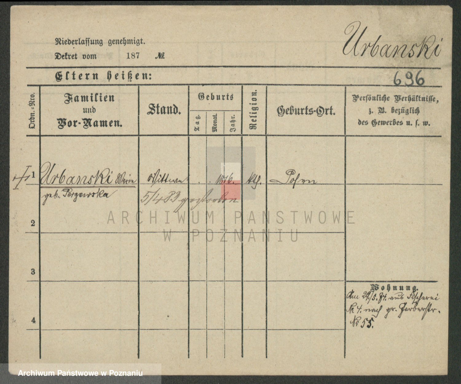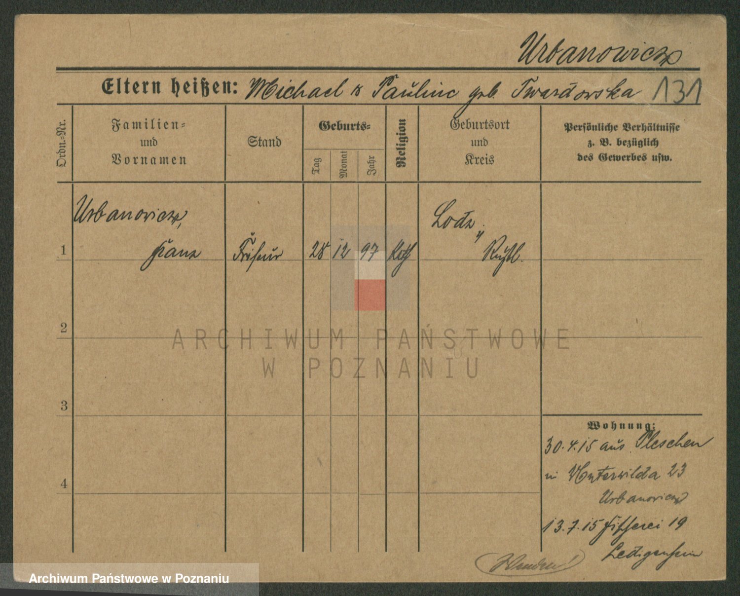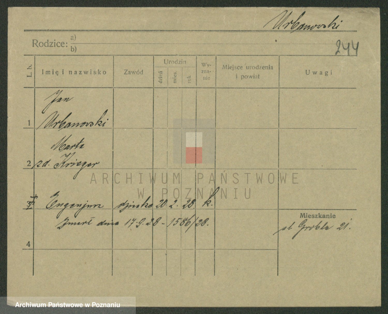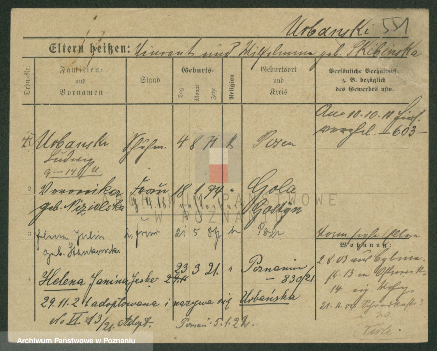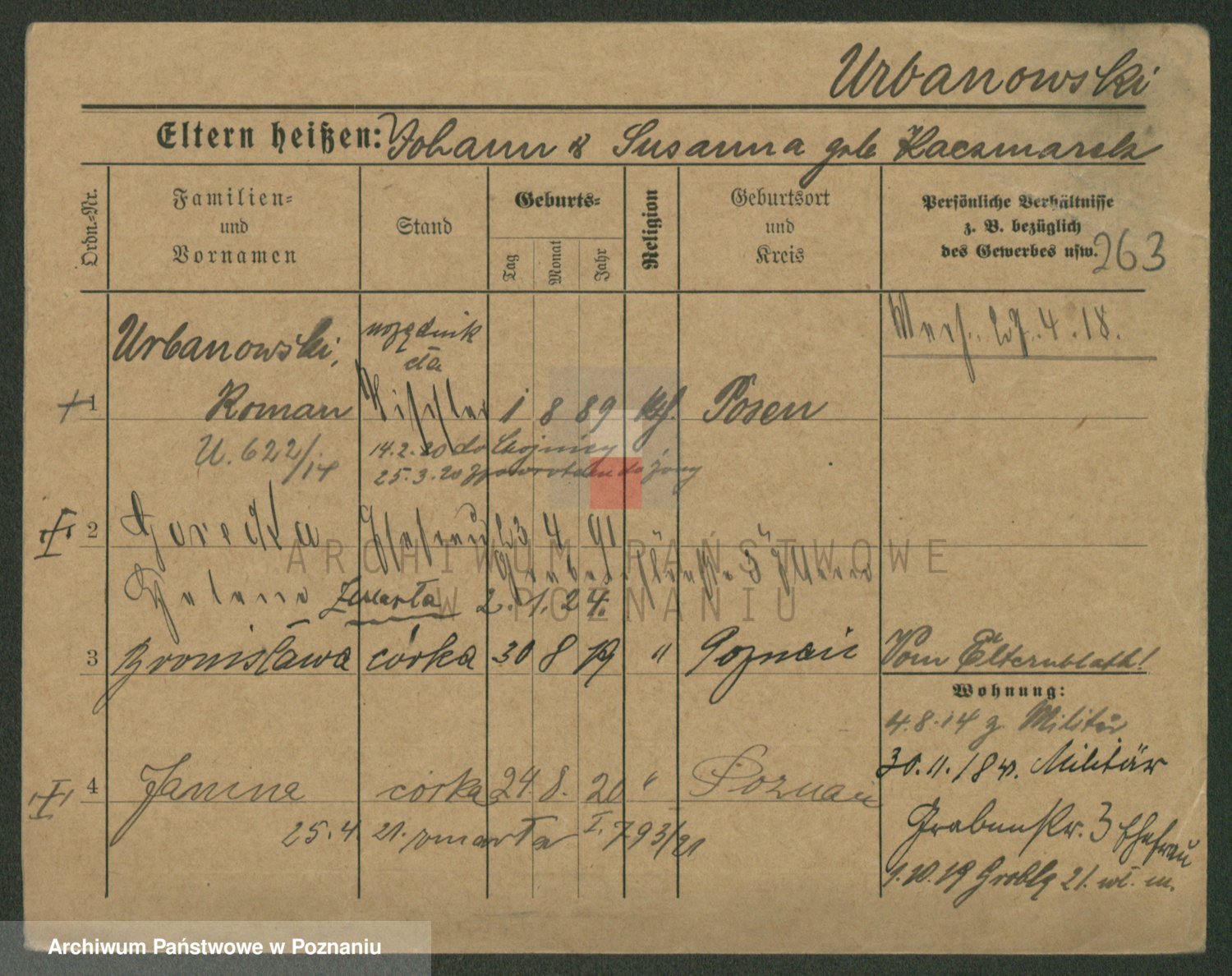 Urbanski z d. Nadolna II voto Wozniak, Josefa
