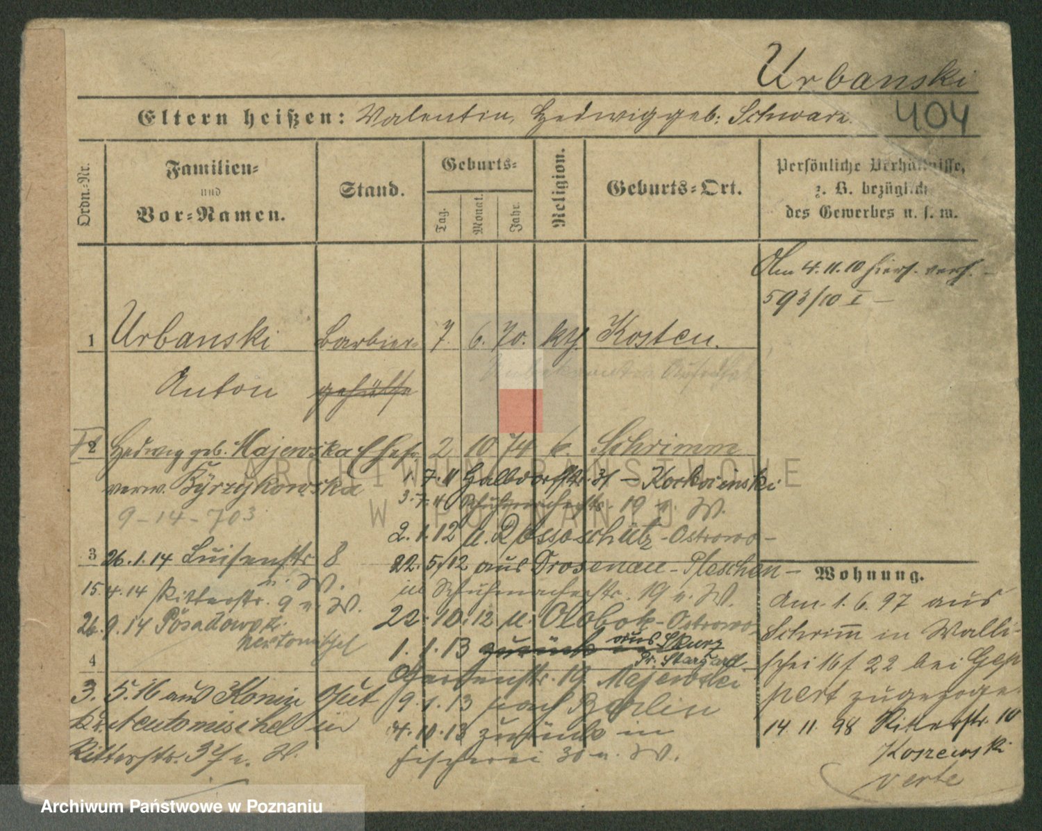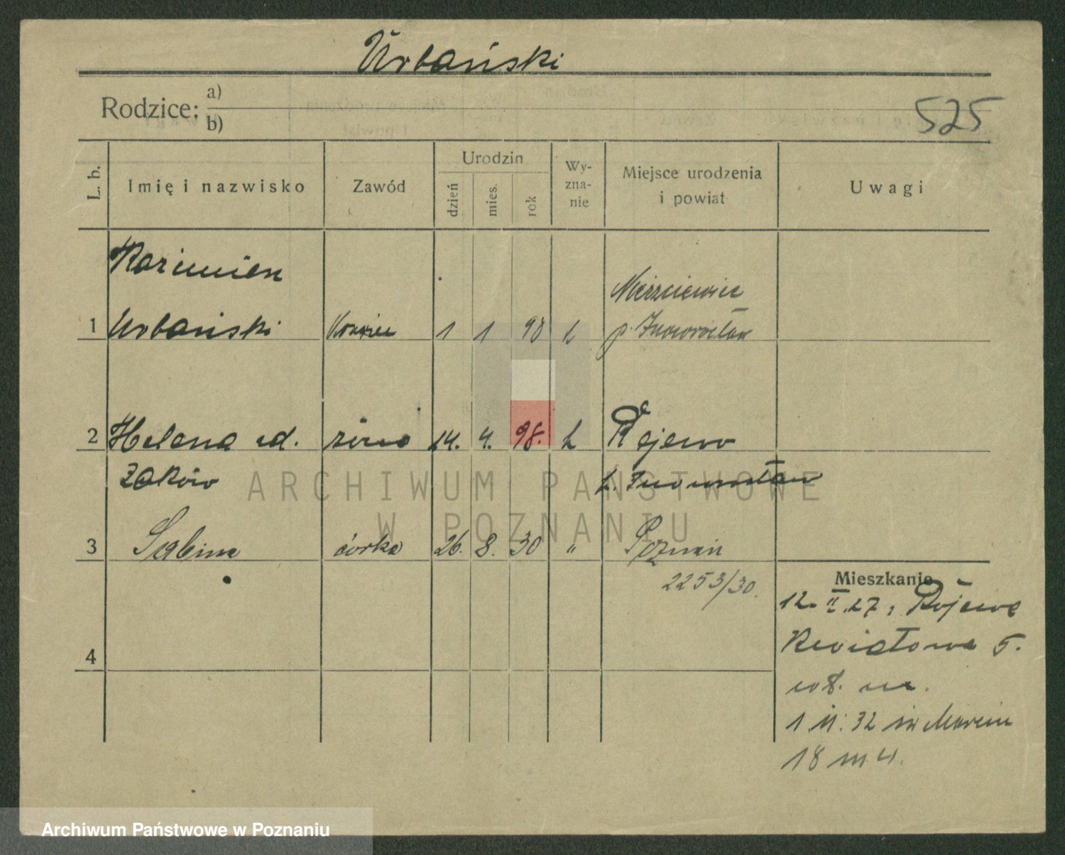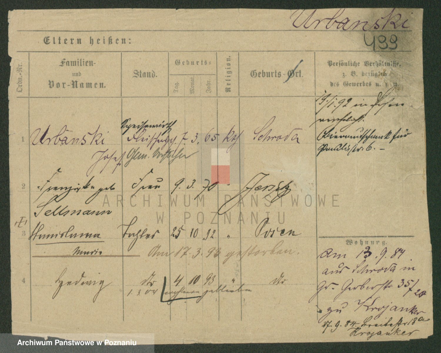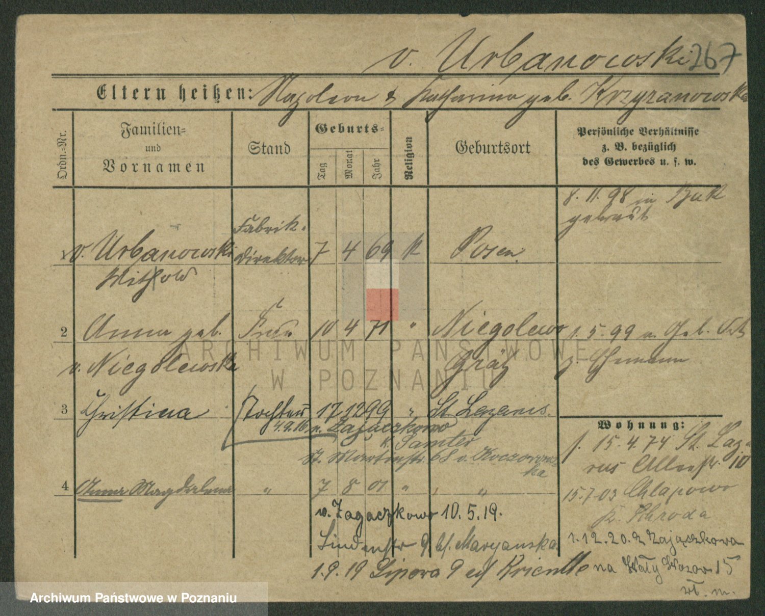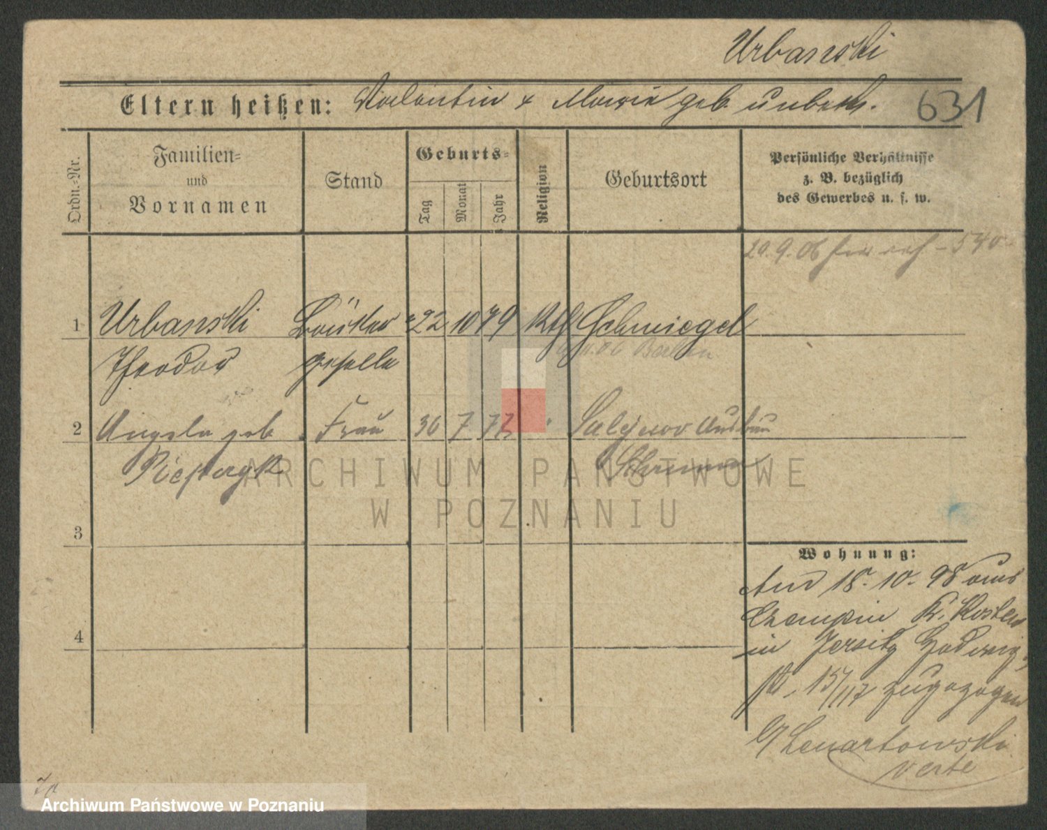 Urbanski z d. Nadolna II voto Wozniak, Josefa