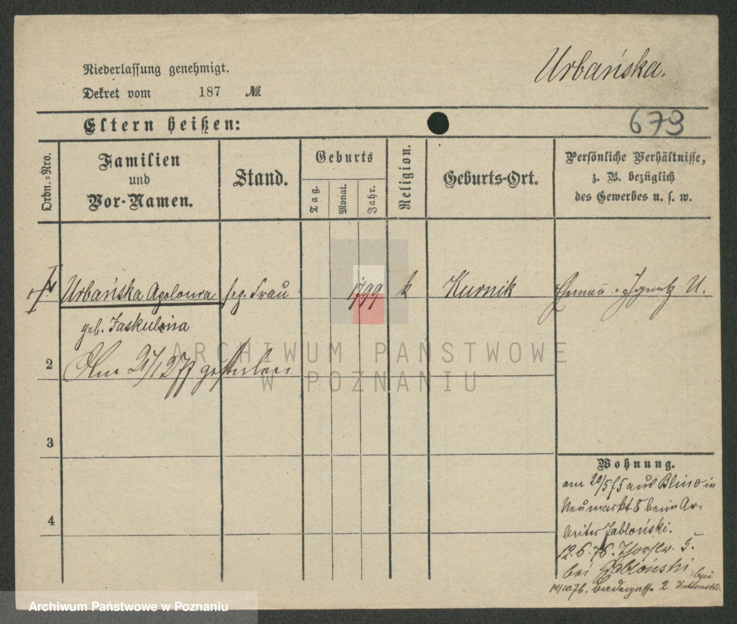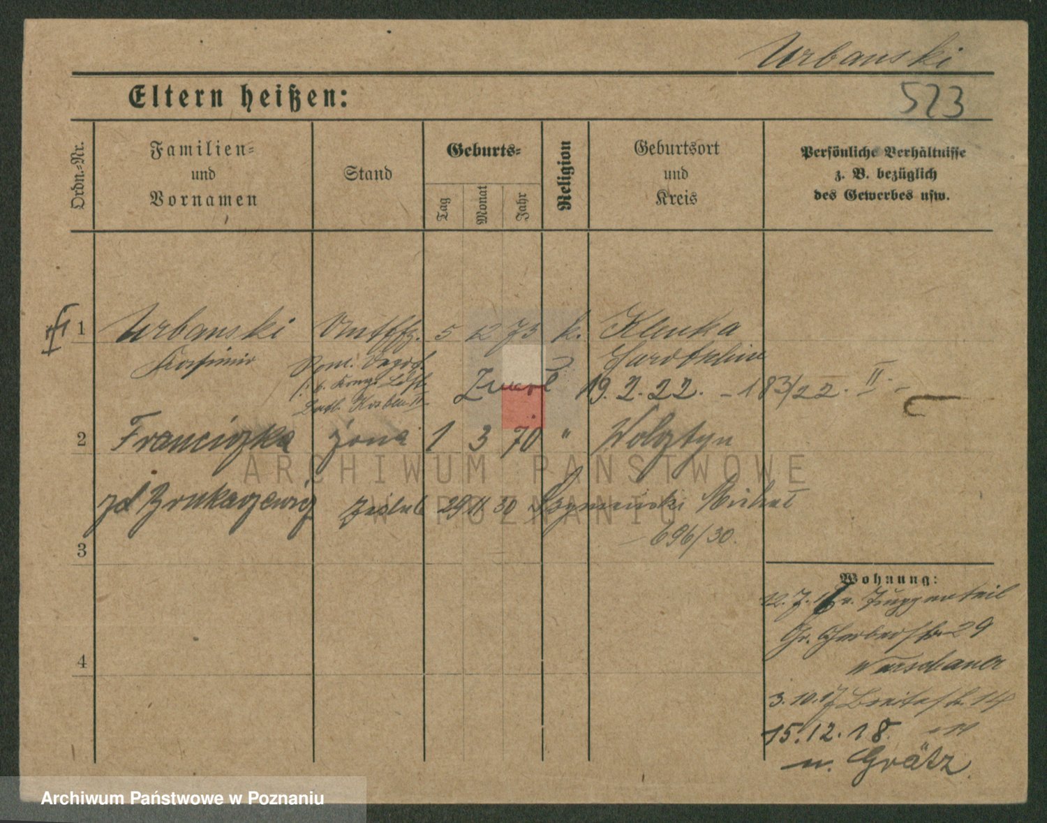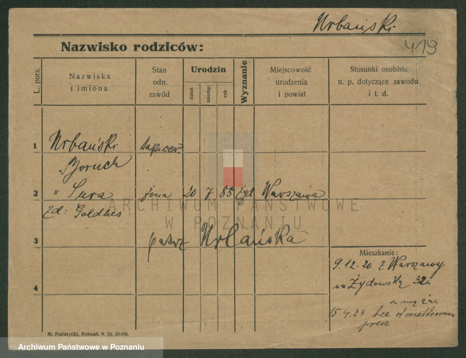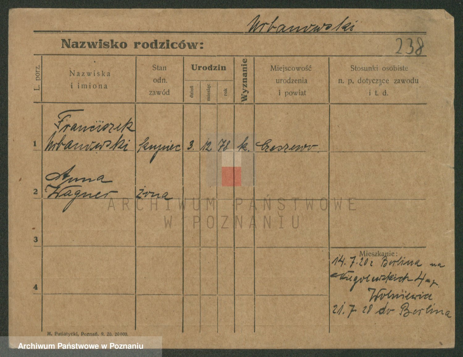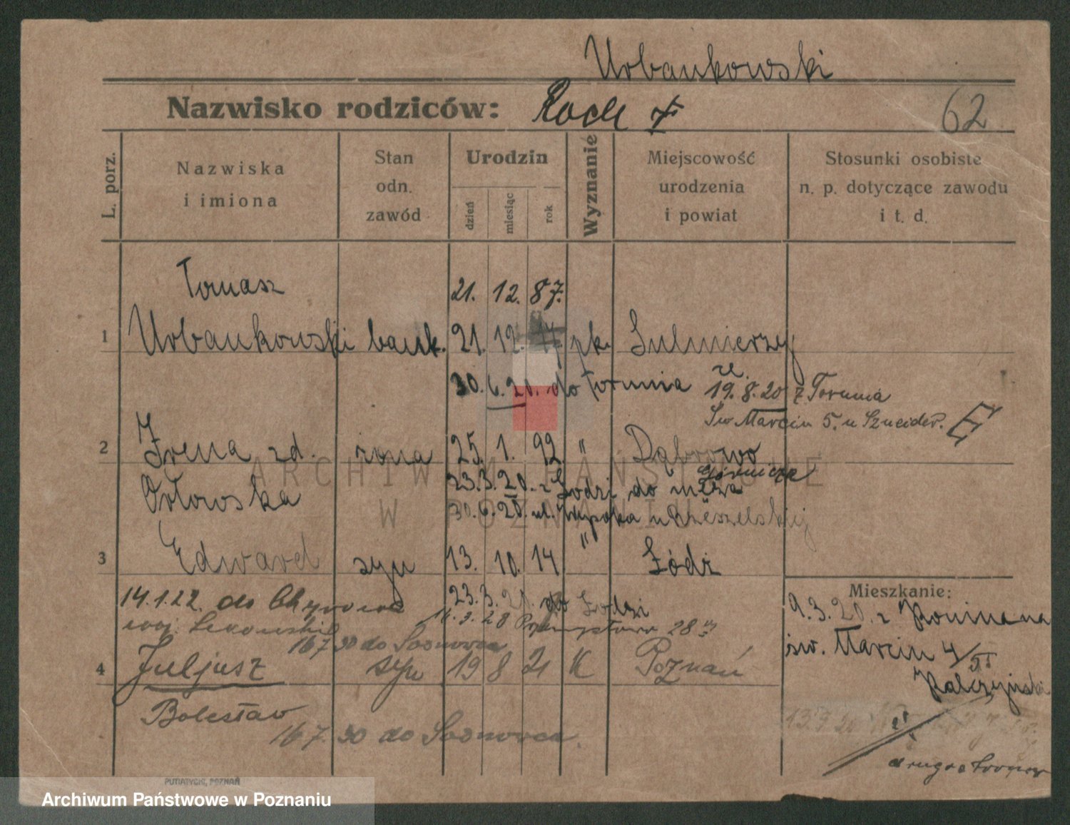 Urbanski z d. Nadolna II voto Wozniak, Josefa