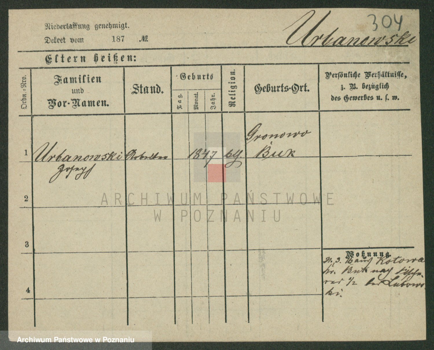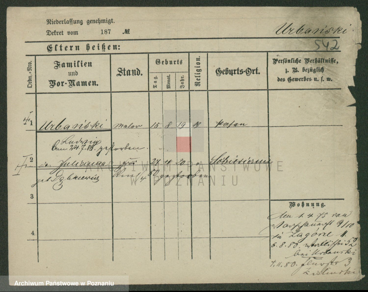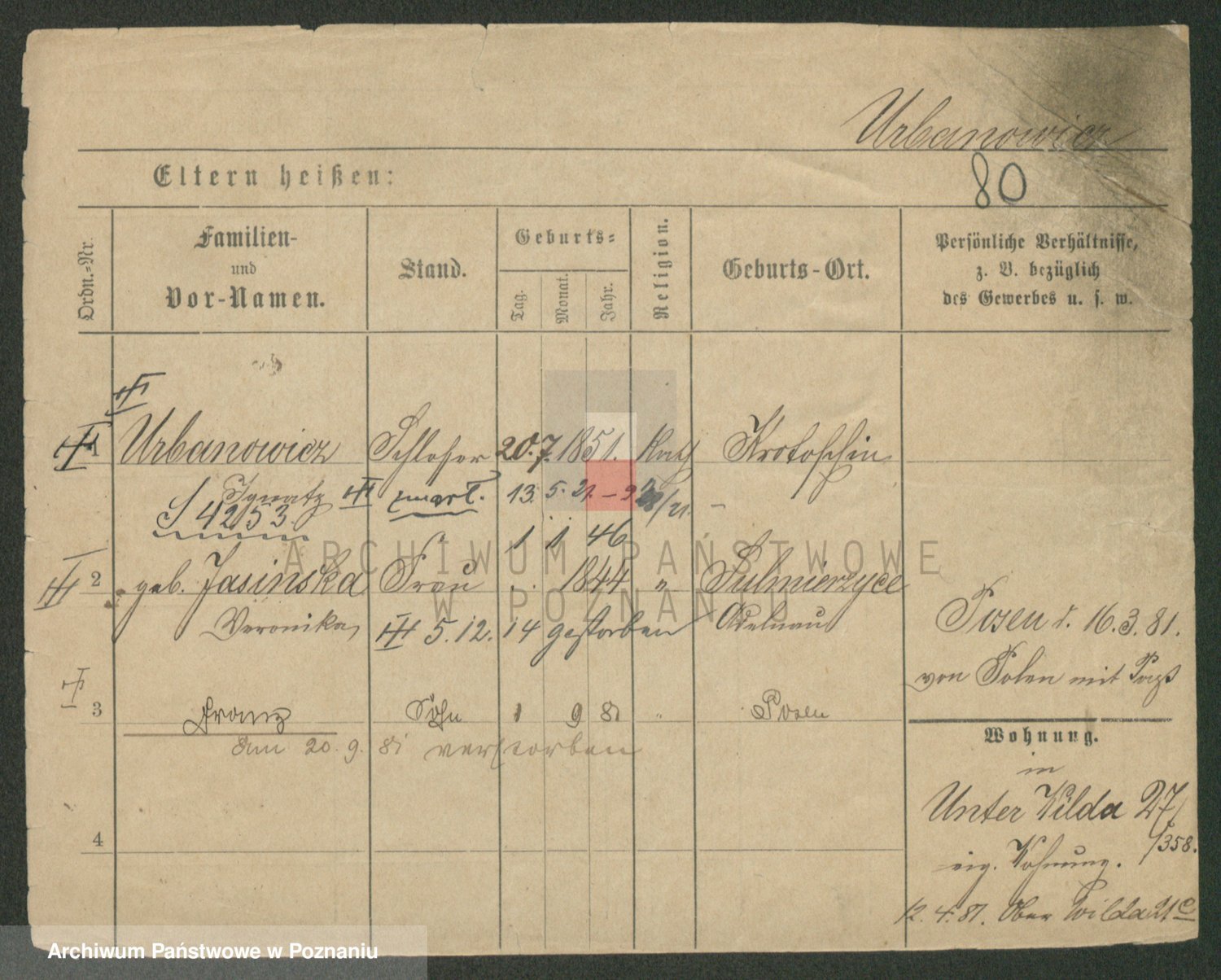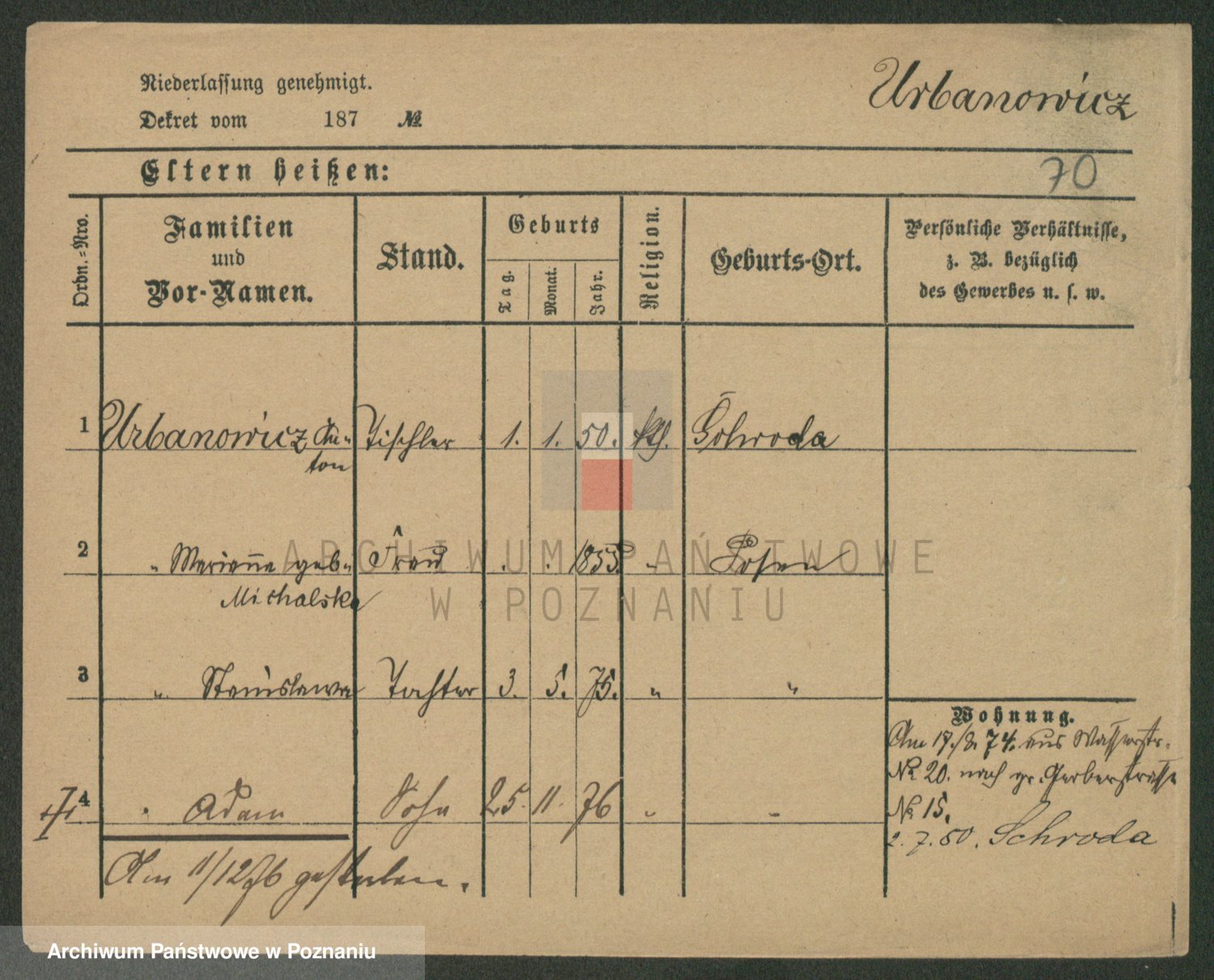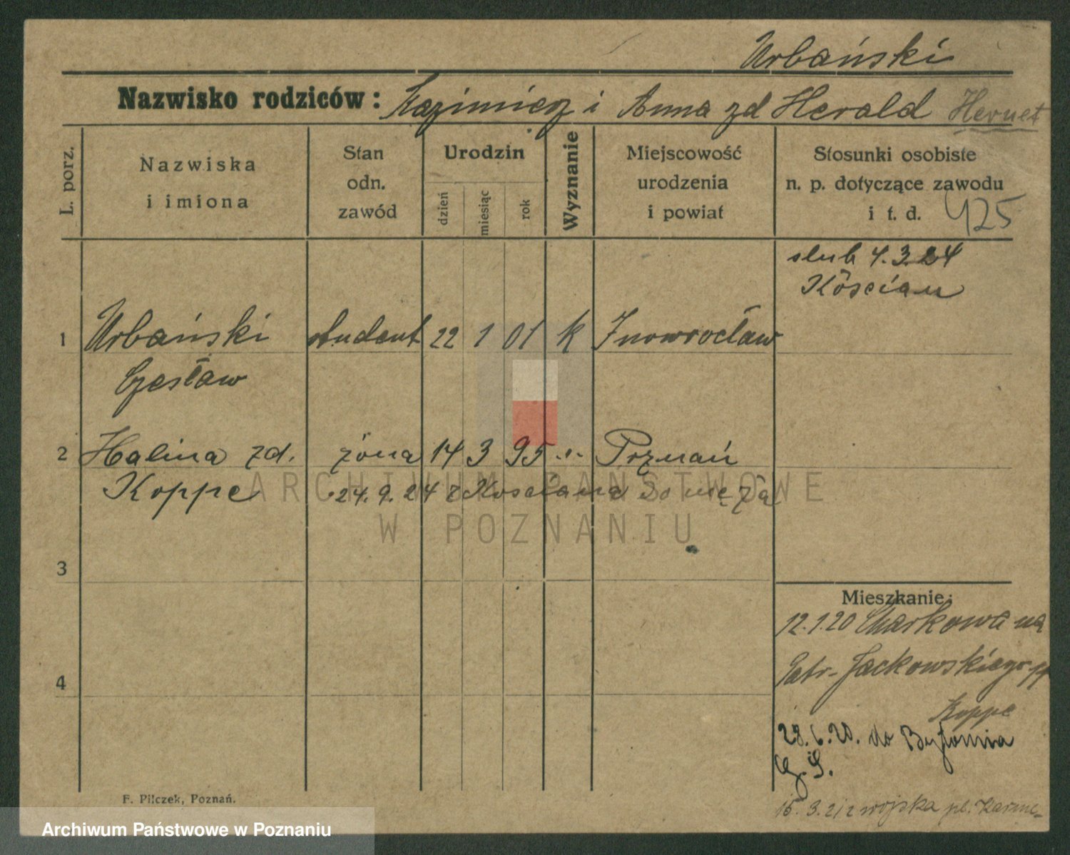 Urbanski z d. Nadolna II voto Wozniak, Josefa