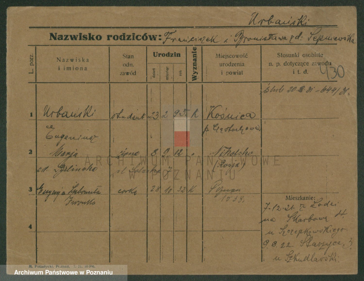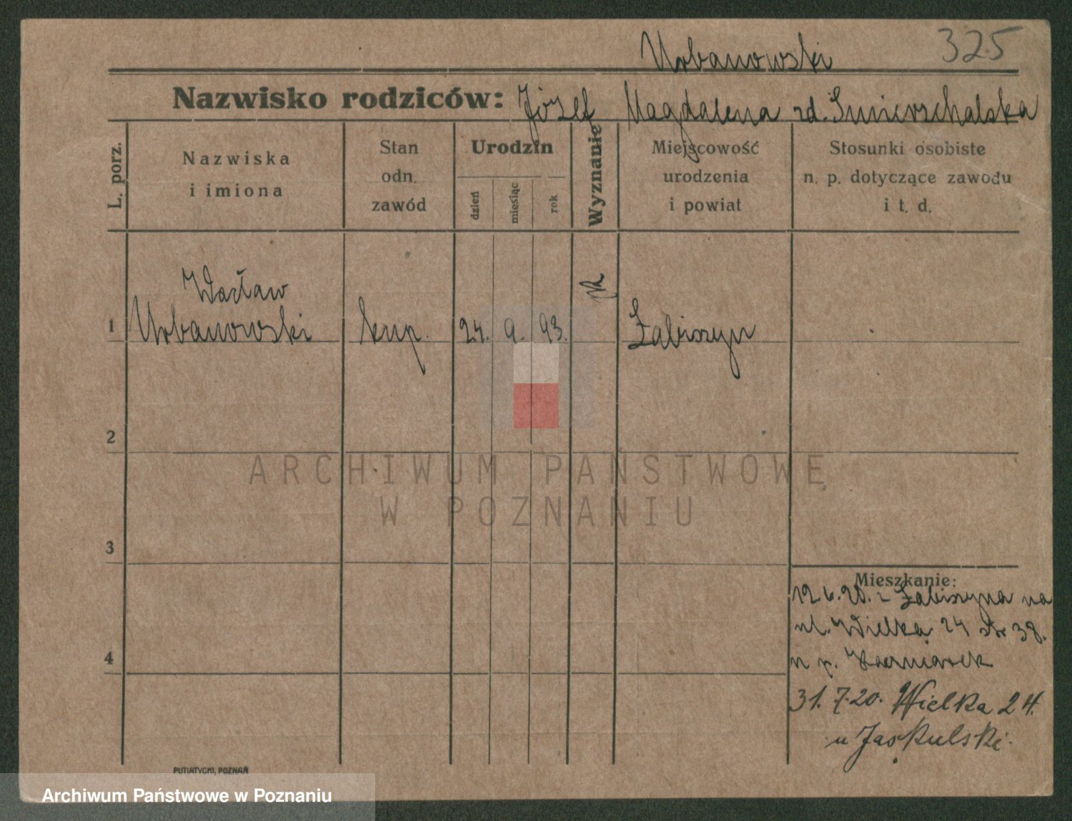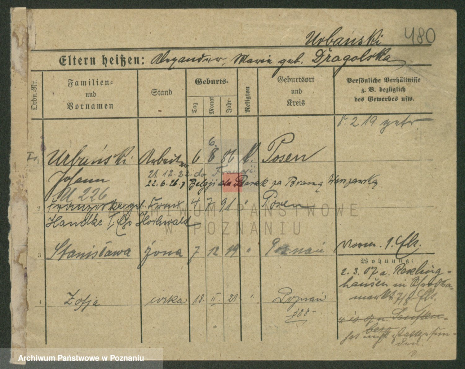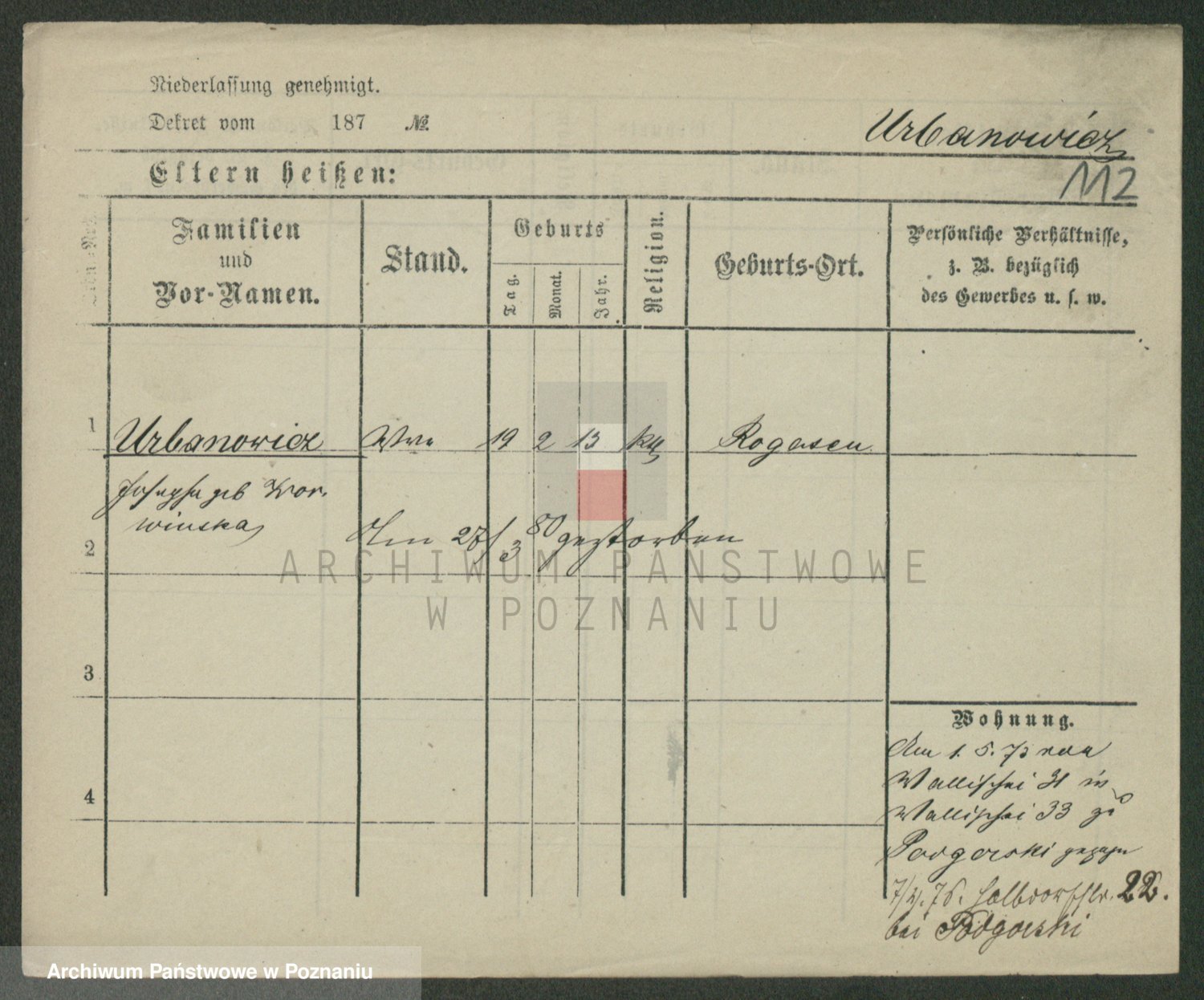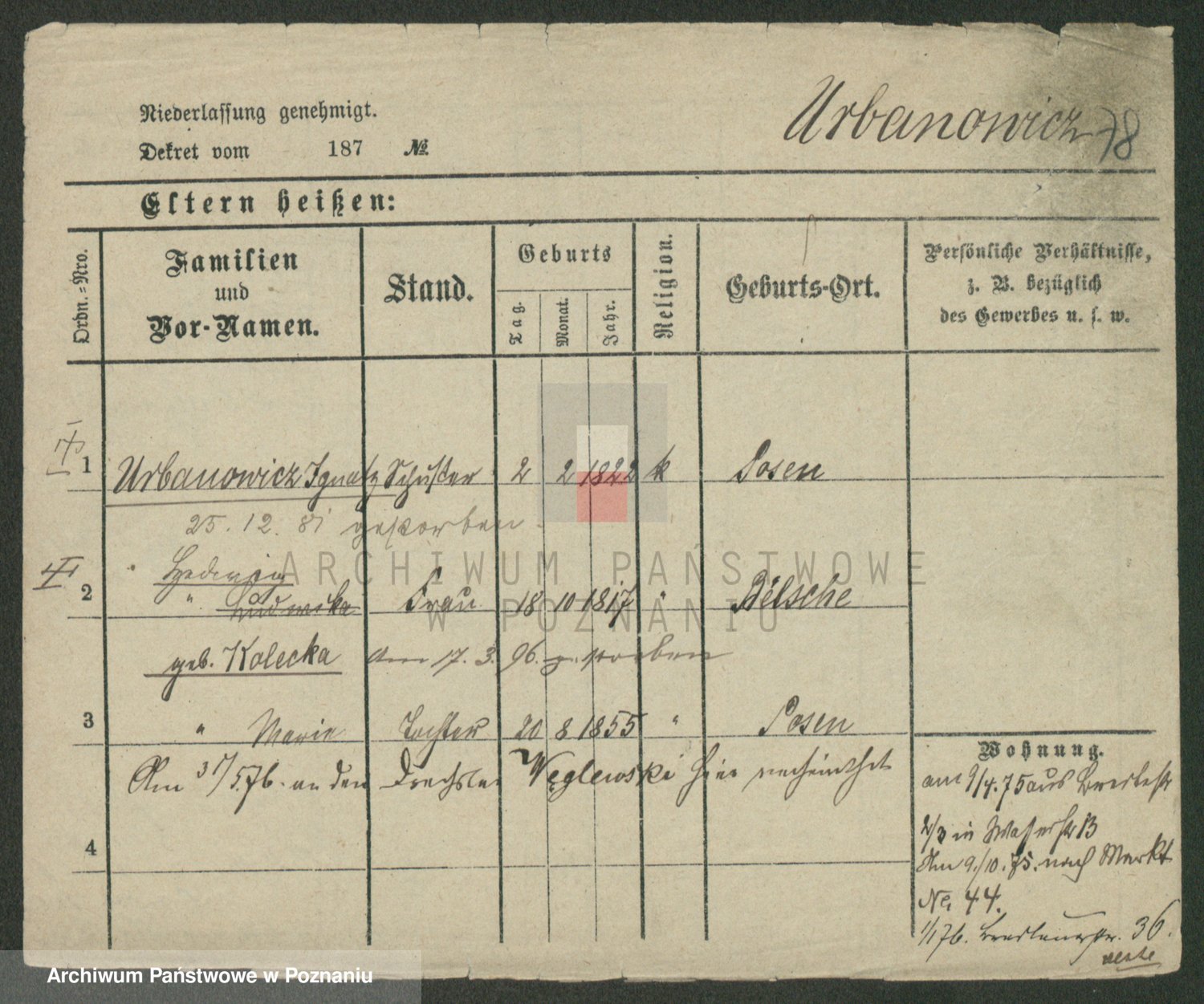 Urbanski z d. Nadolna II voto Wozniak, Josefa
