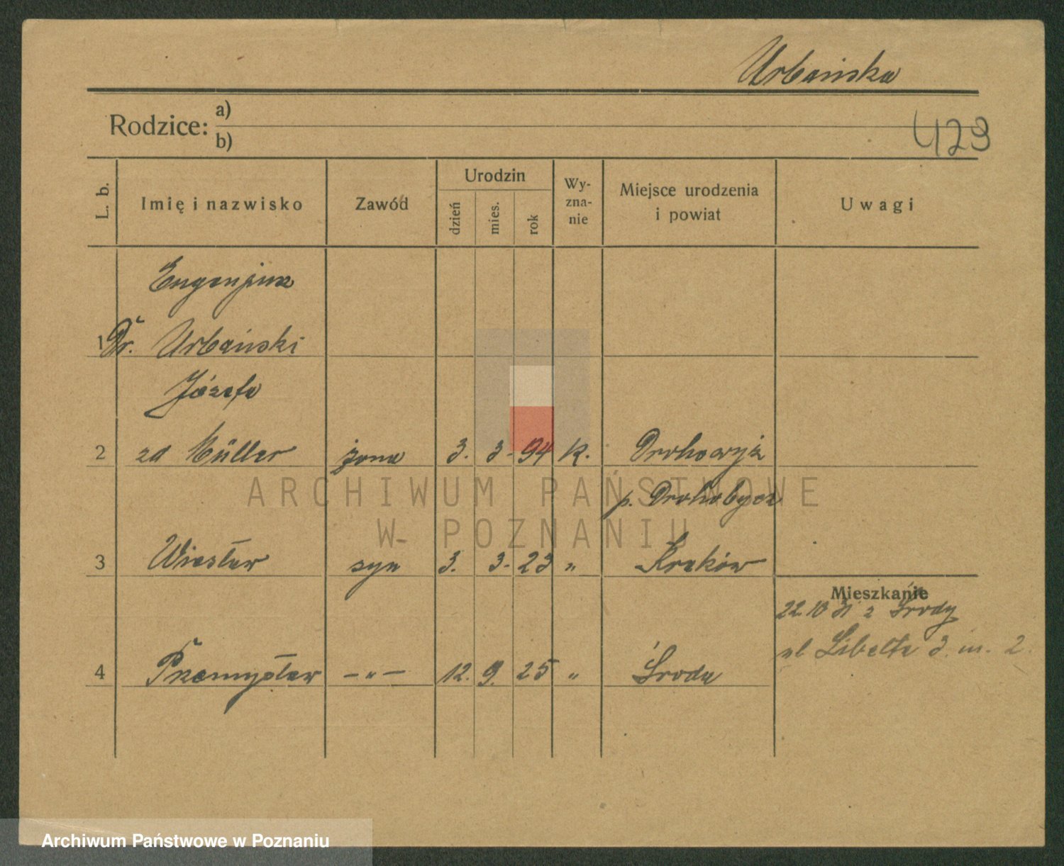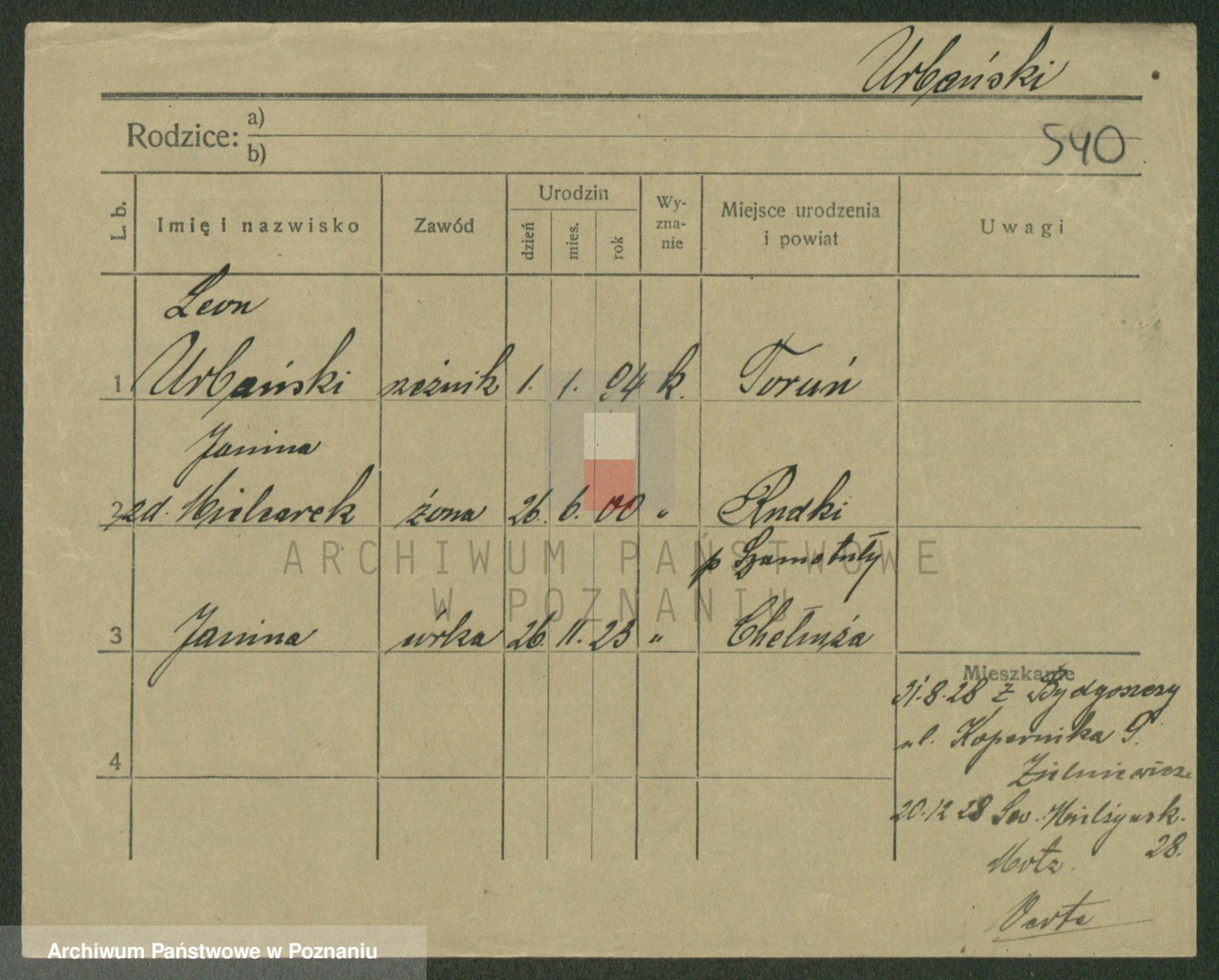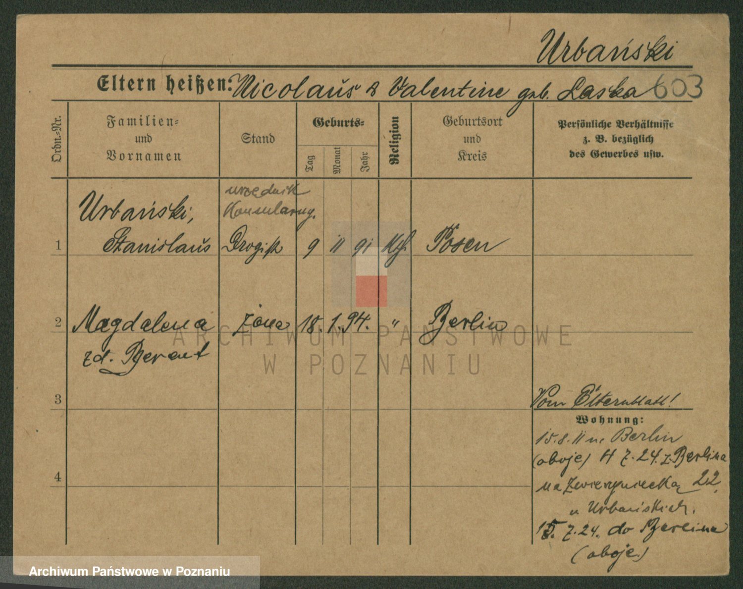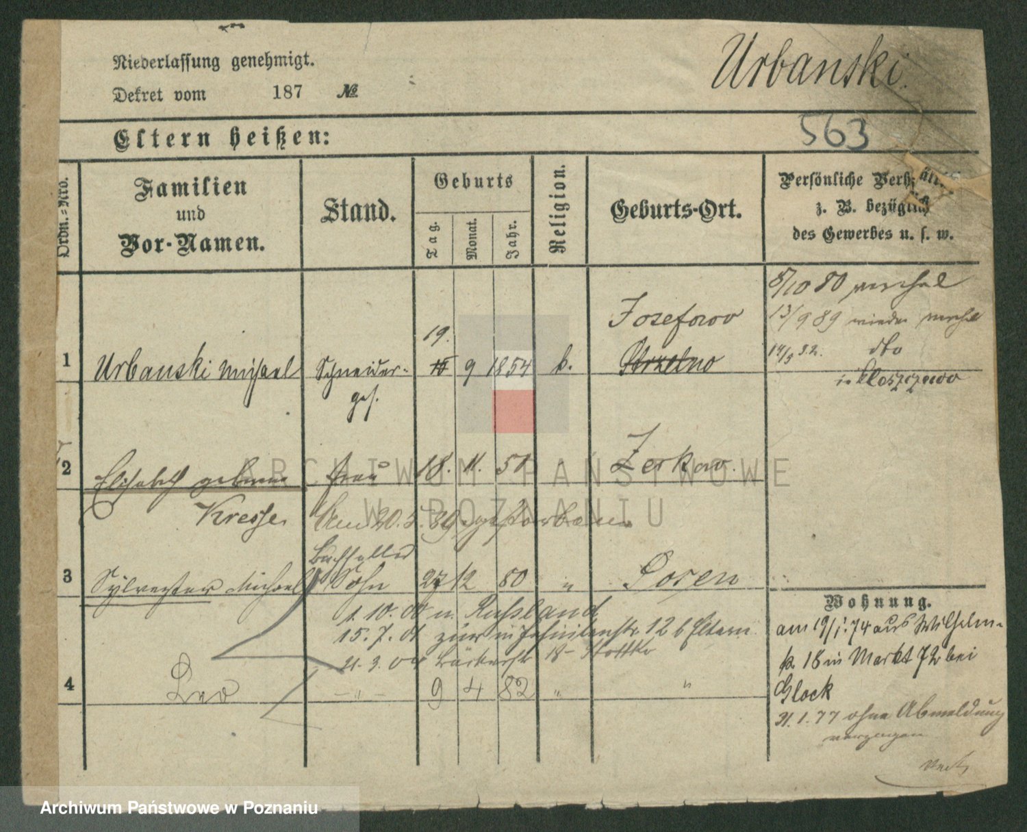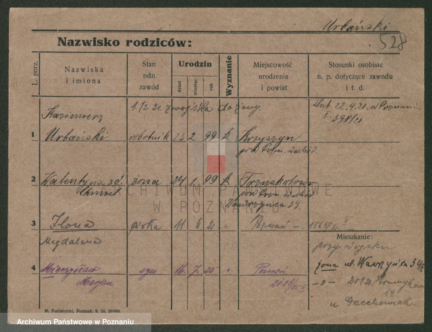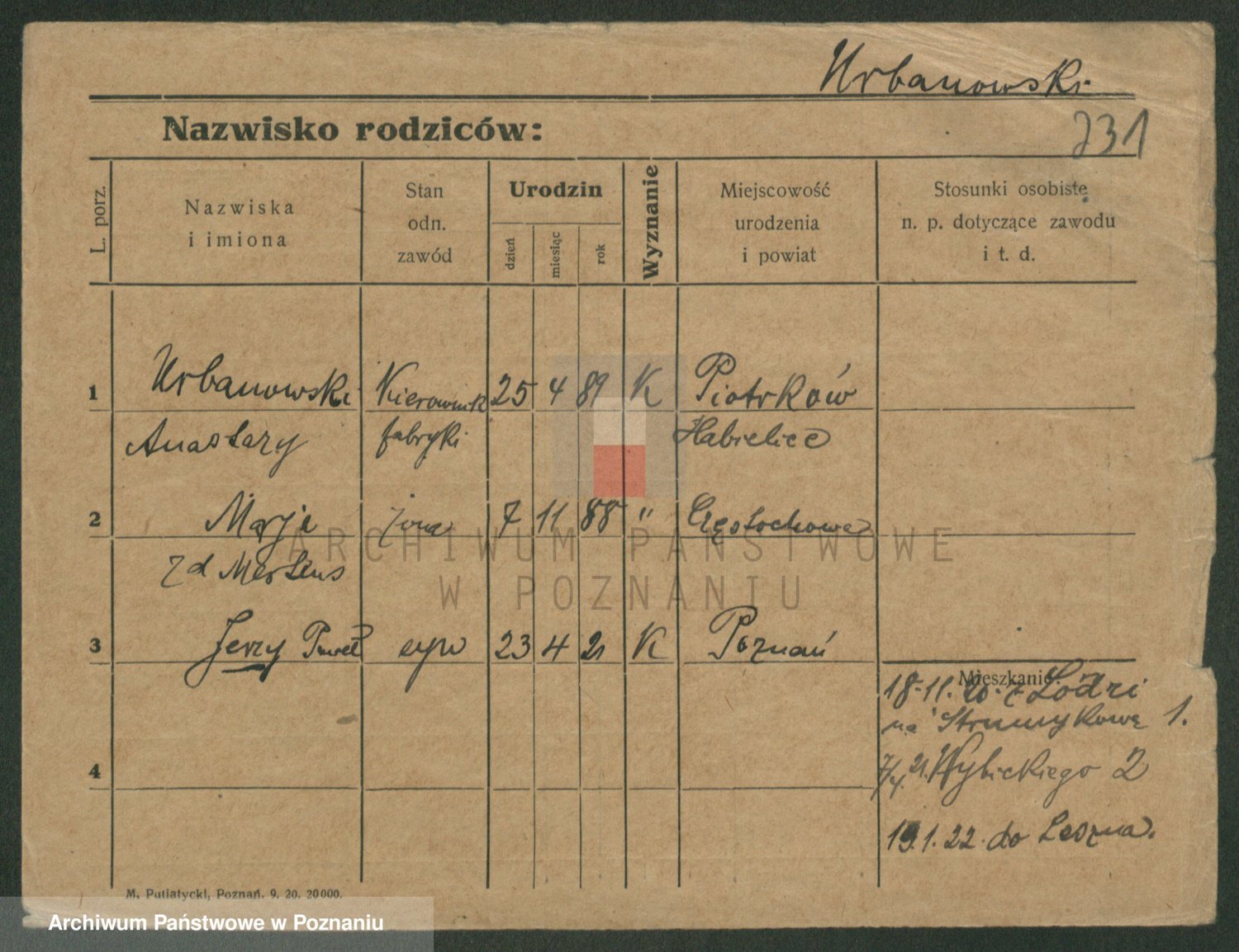 Urbanski z d. Nadolna II voto Wozniak, Josefa