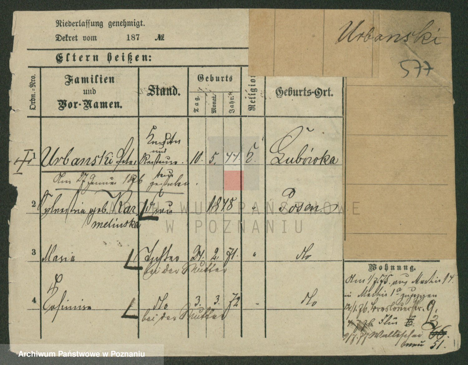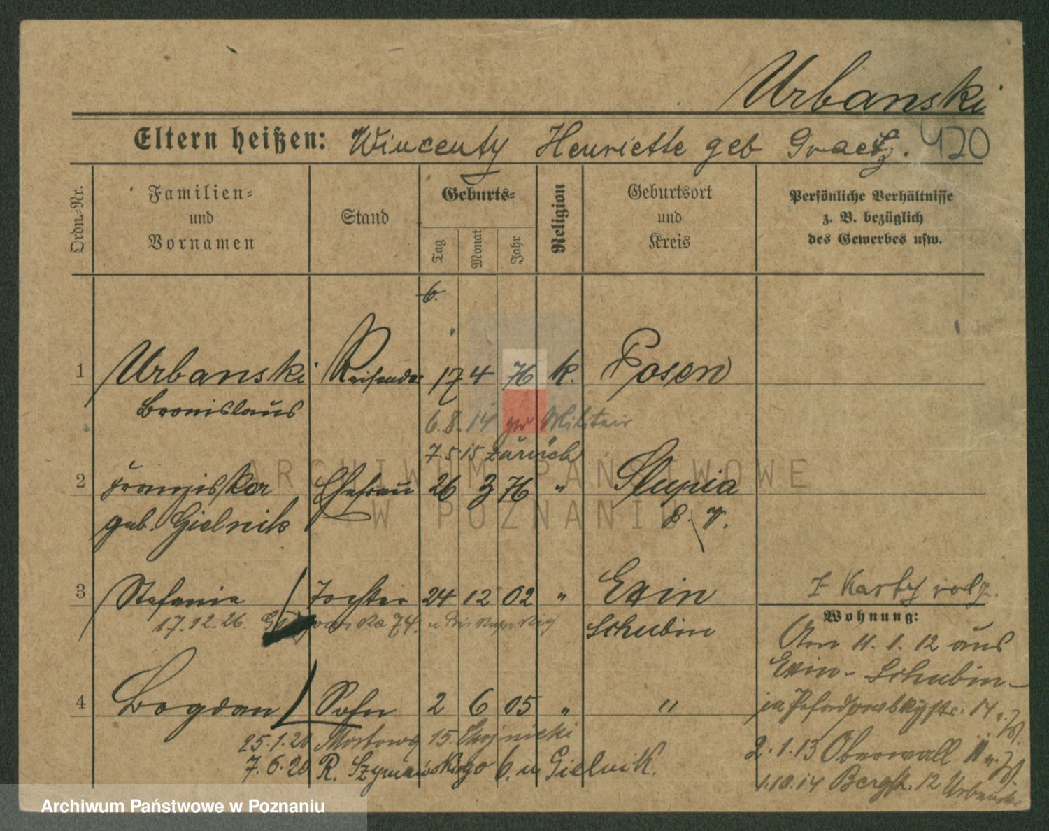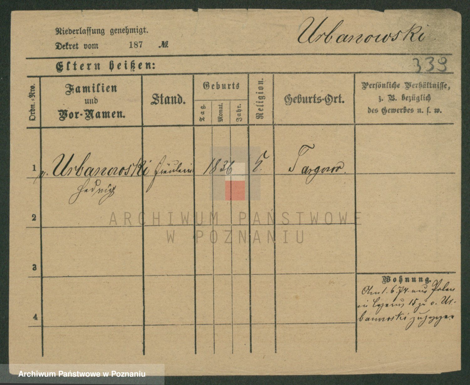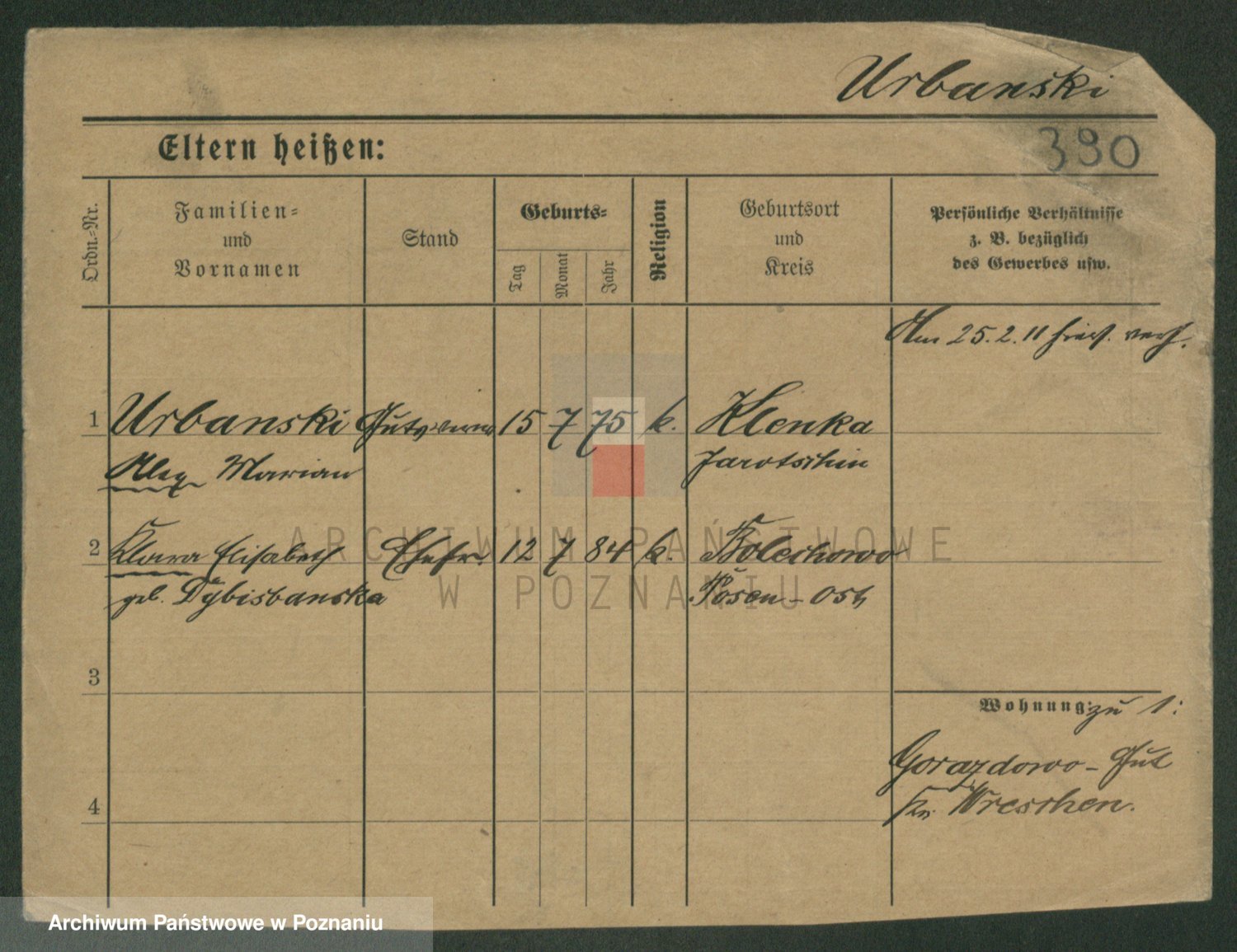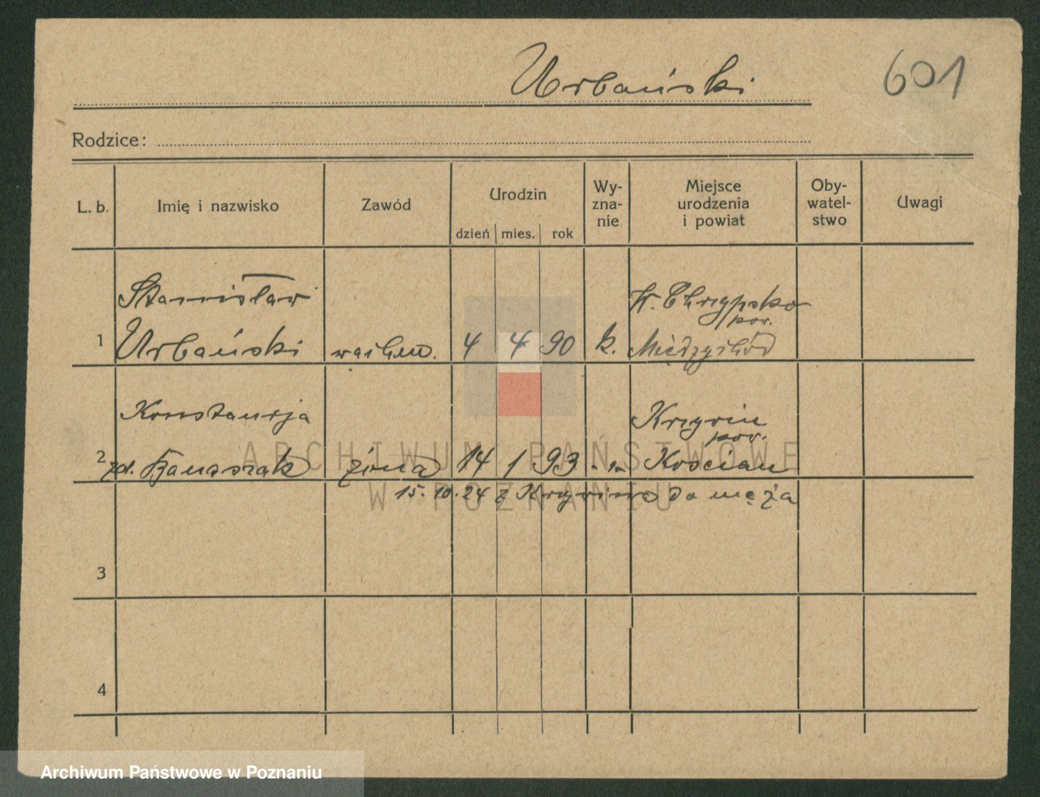 Urbanski z d. Nadolna II voto Wozniak, Josefa