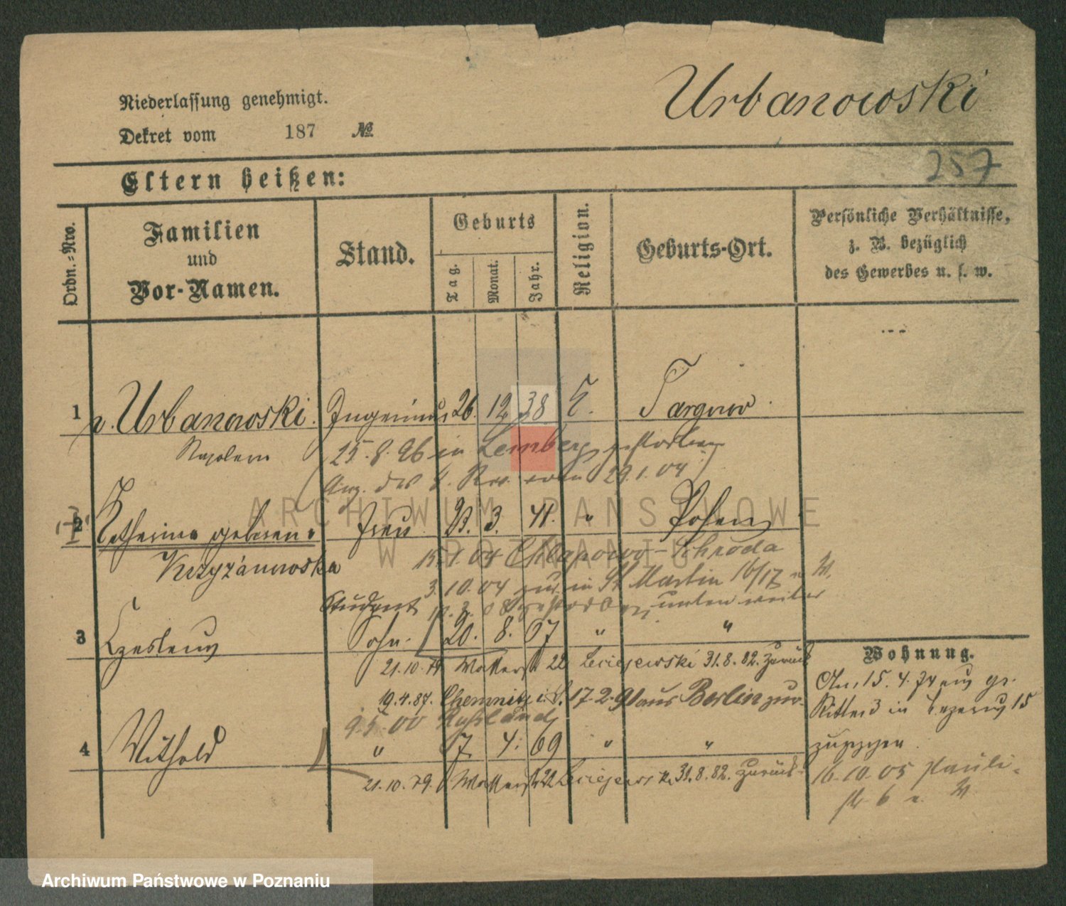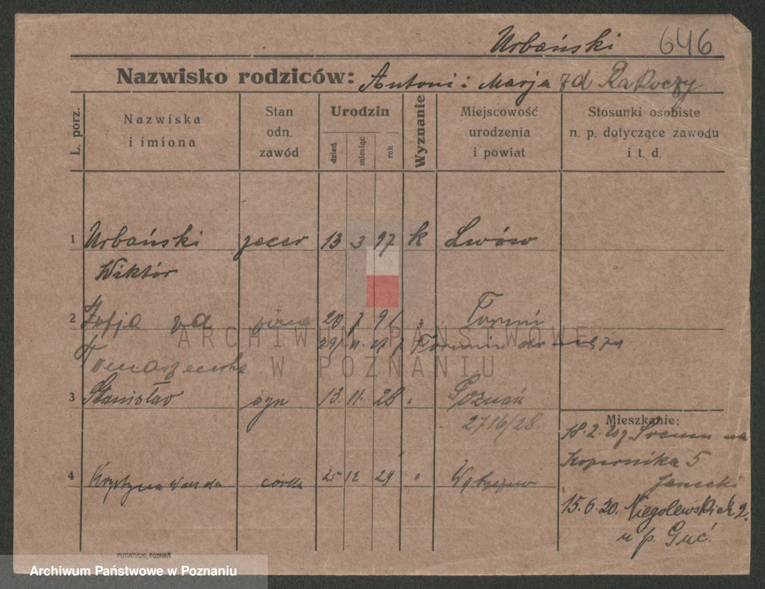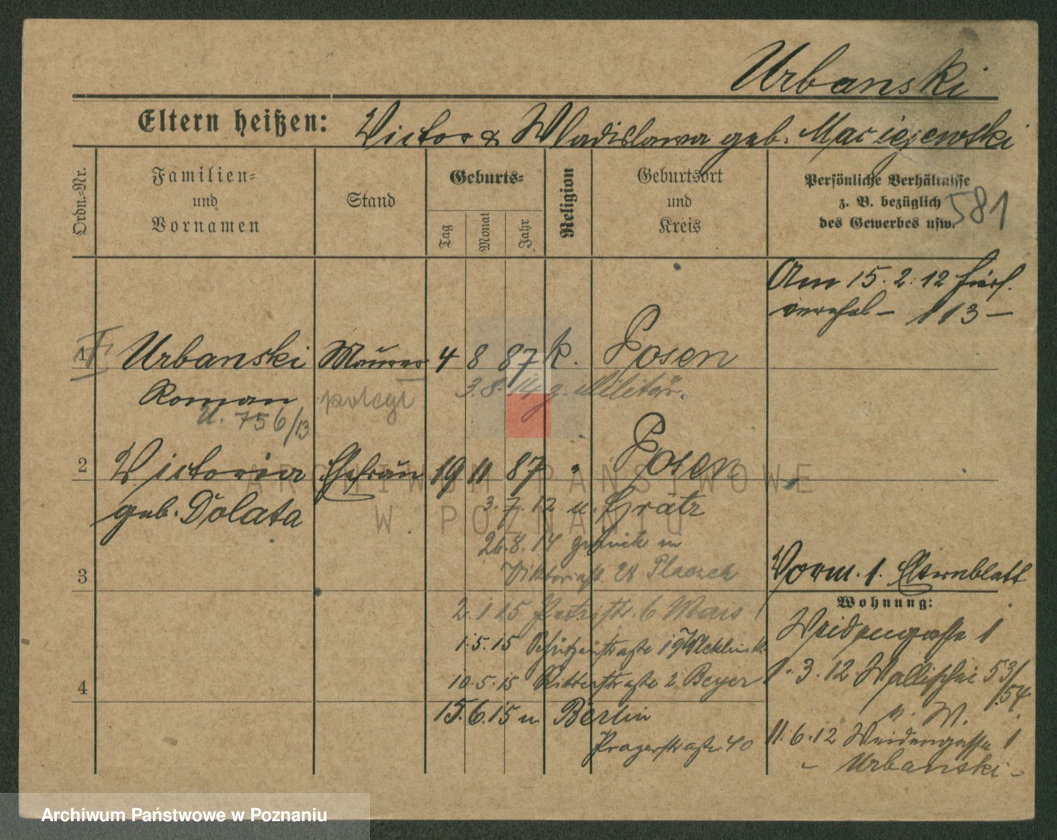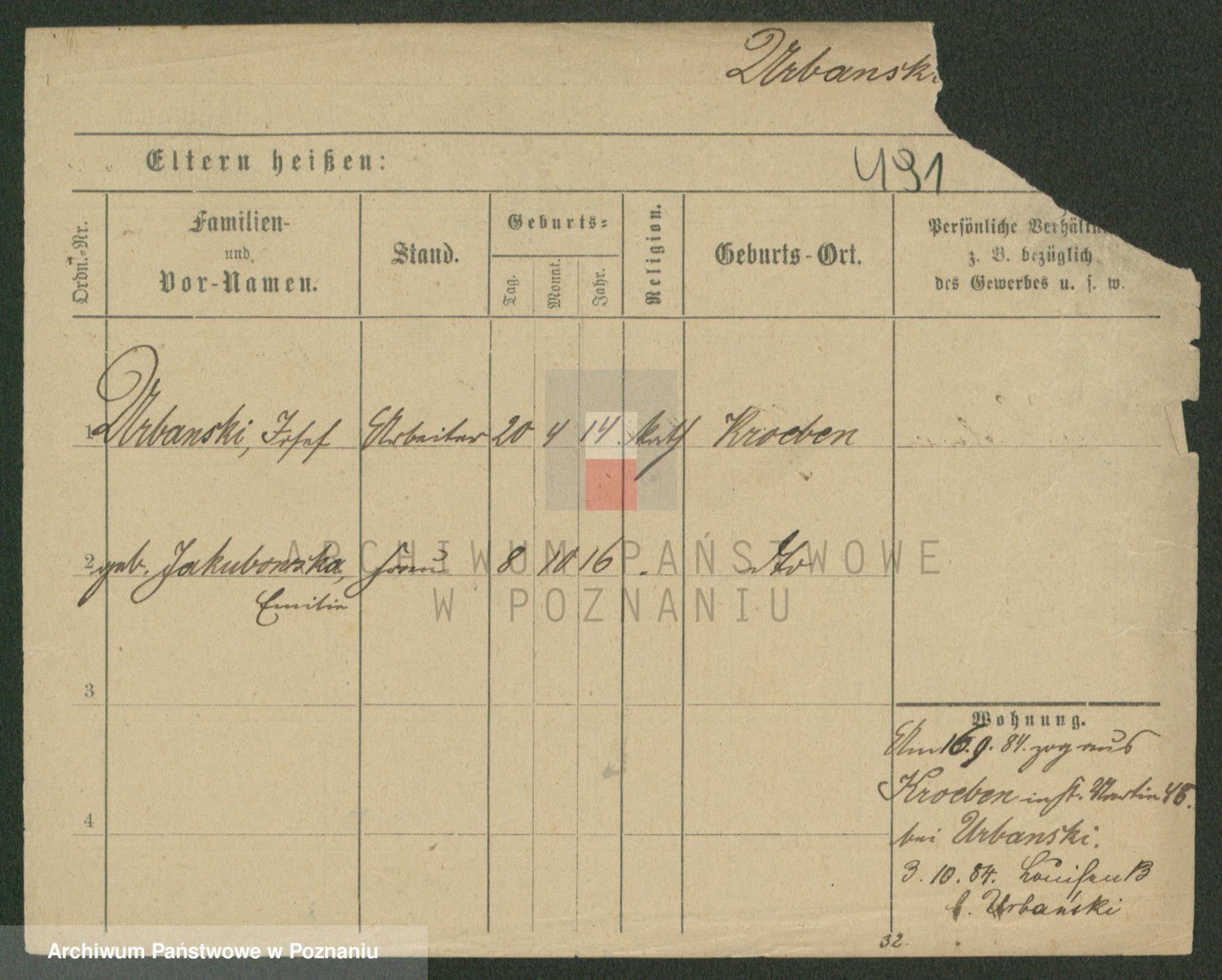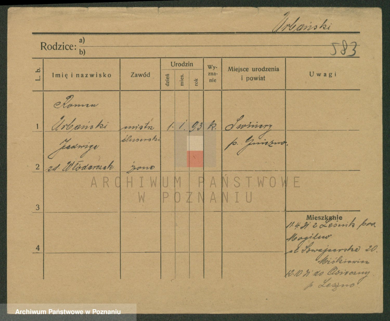 Urbanski z d. Nadolna II voto Wozniak, Josefa