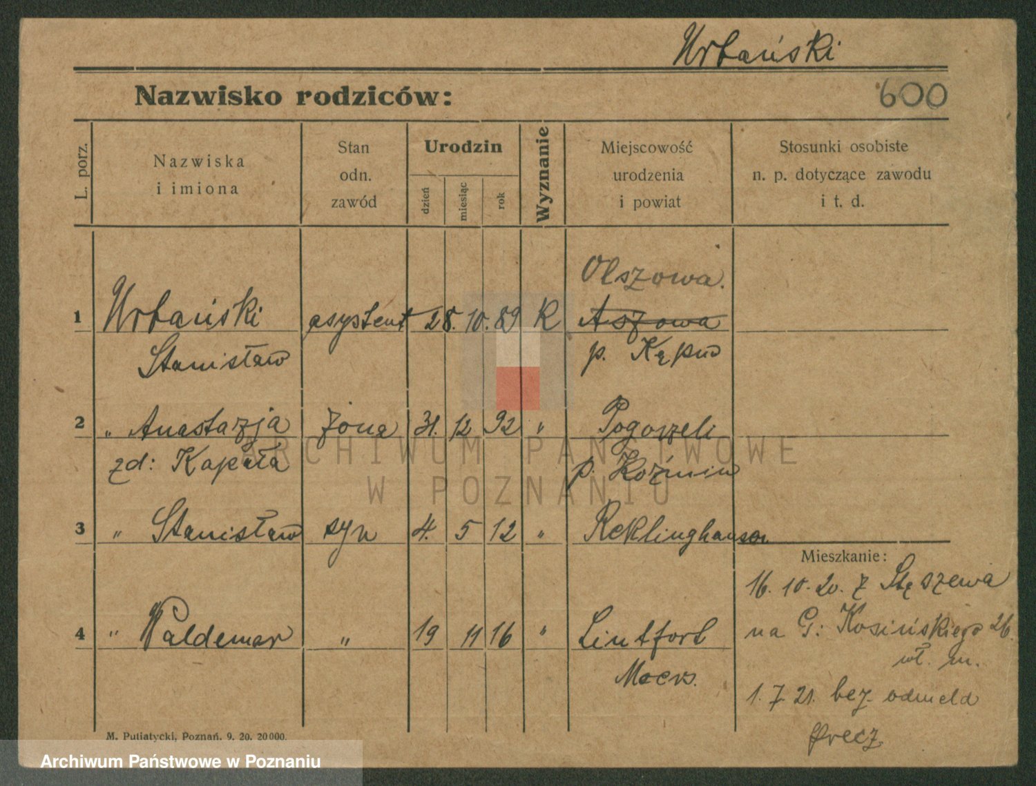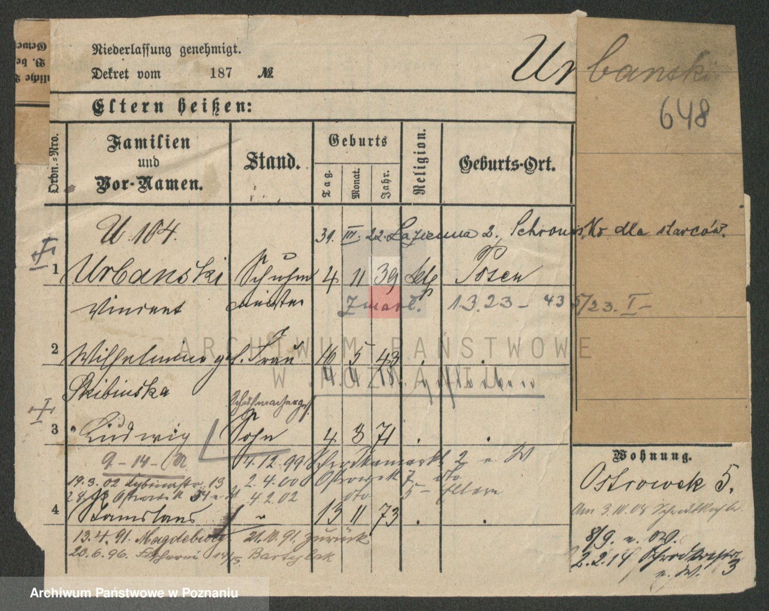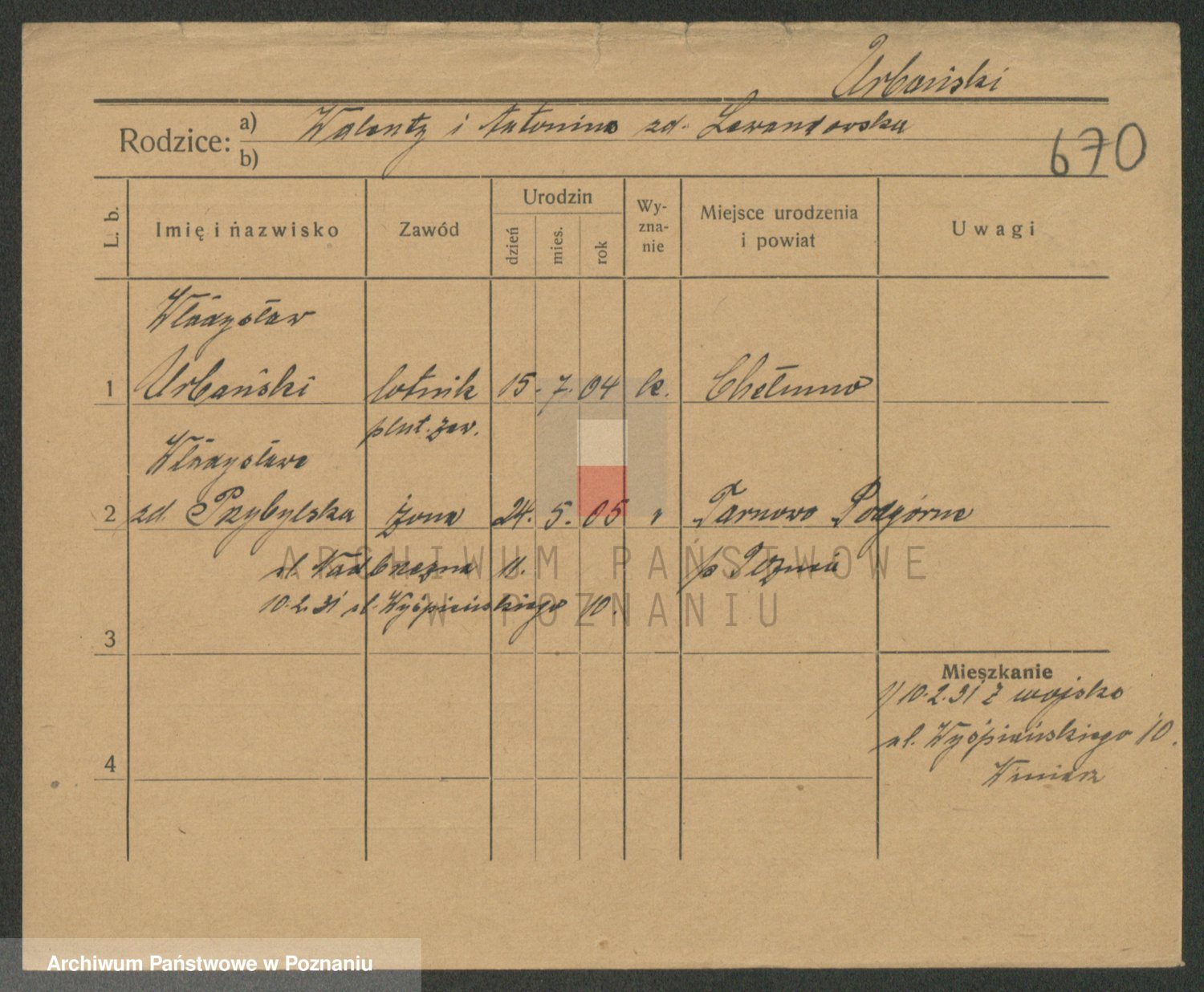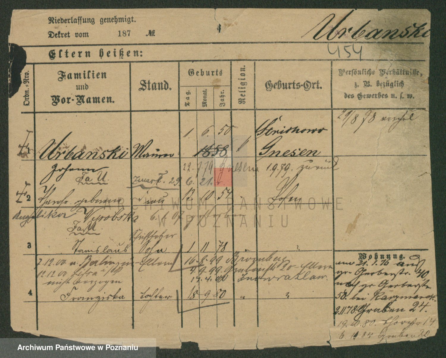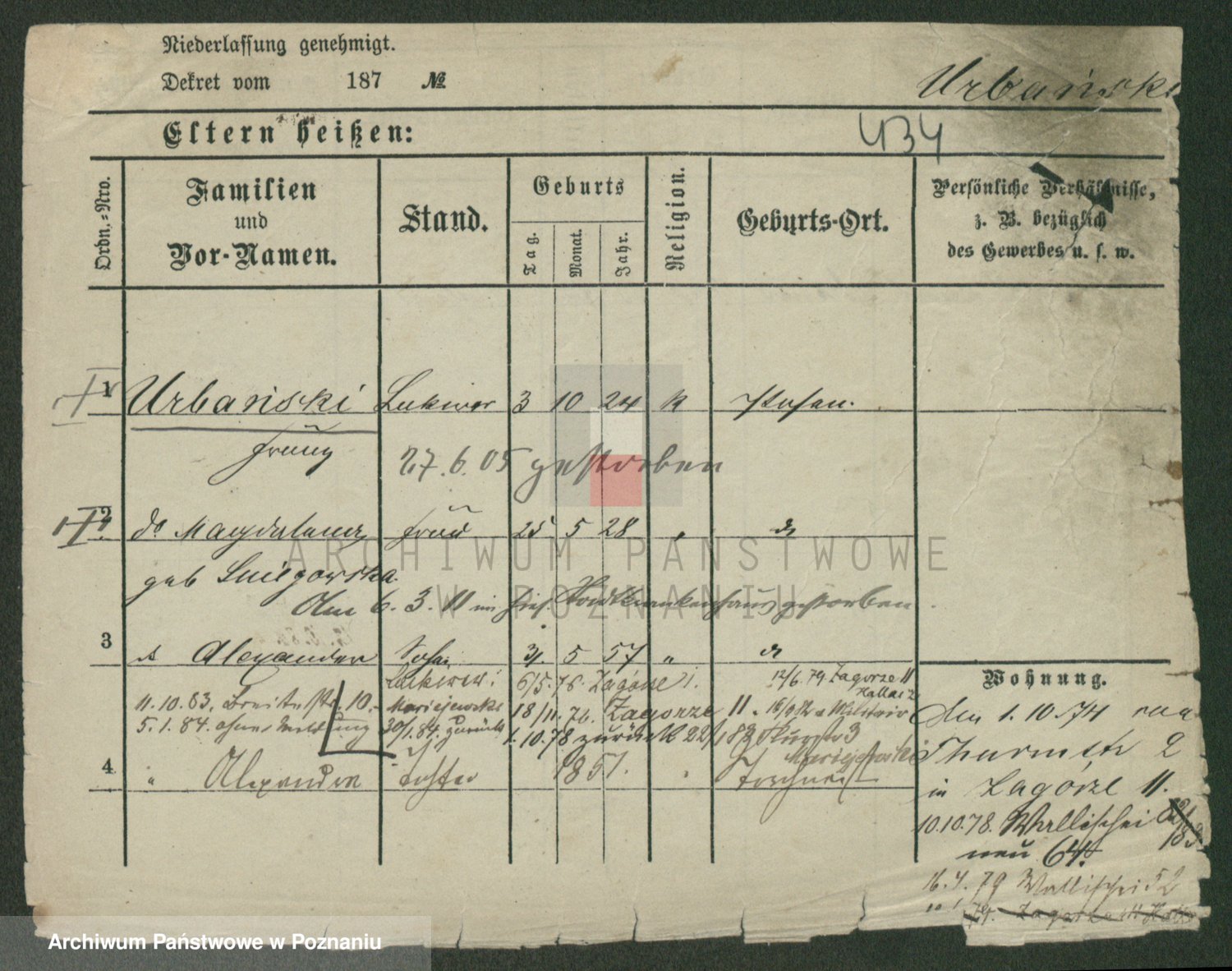 Urbanski z d. Nadolna II voto Wozniak, Josefa