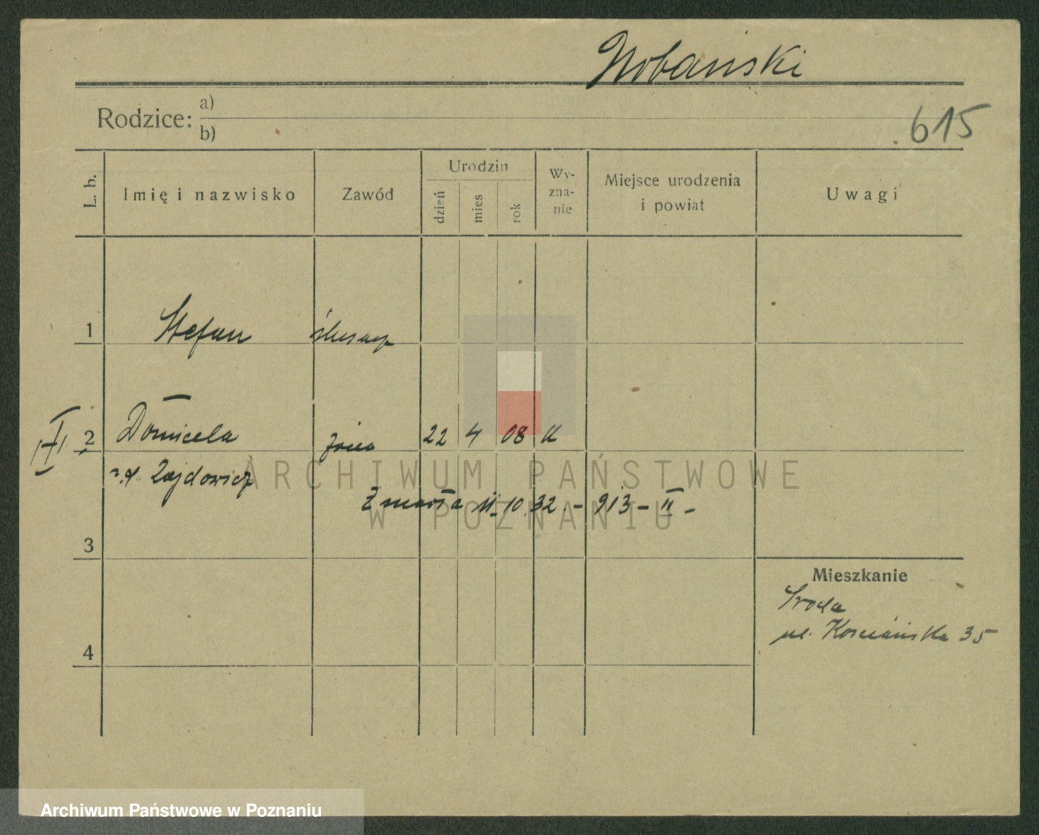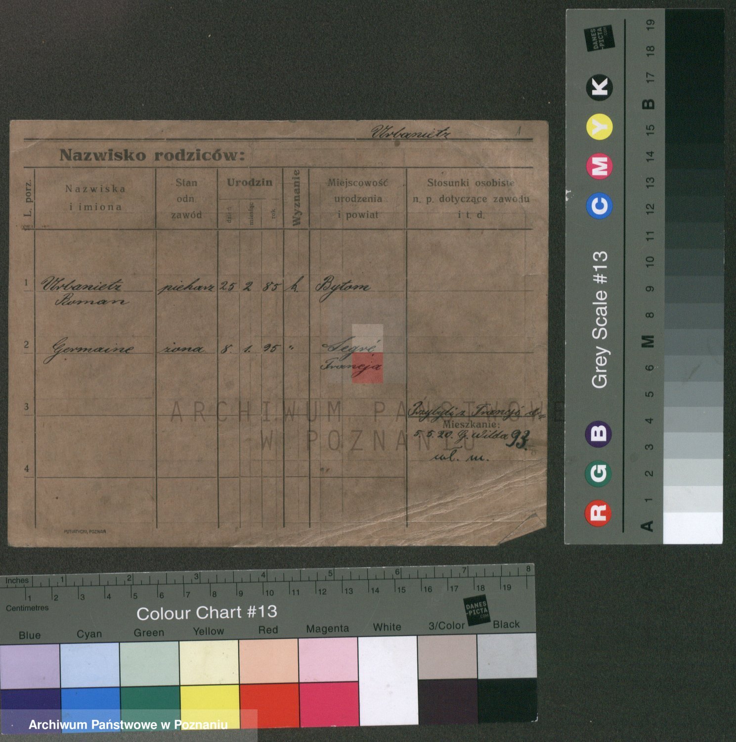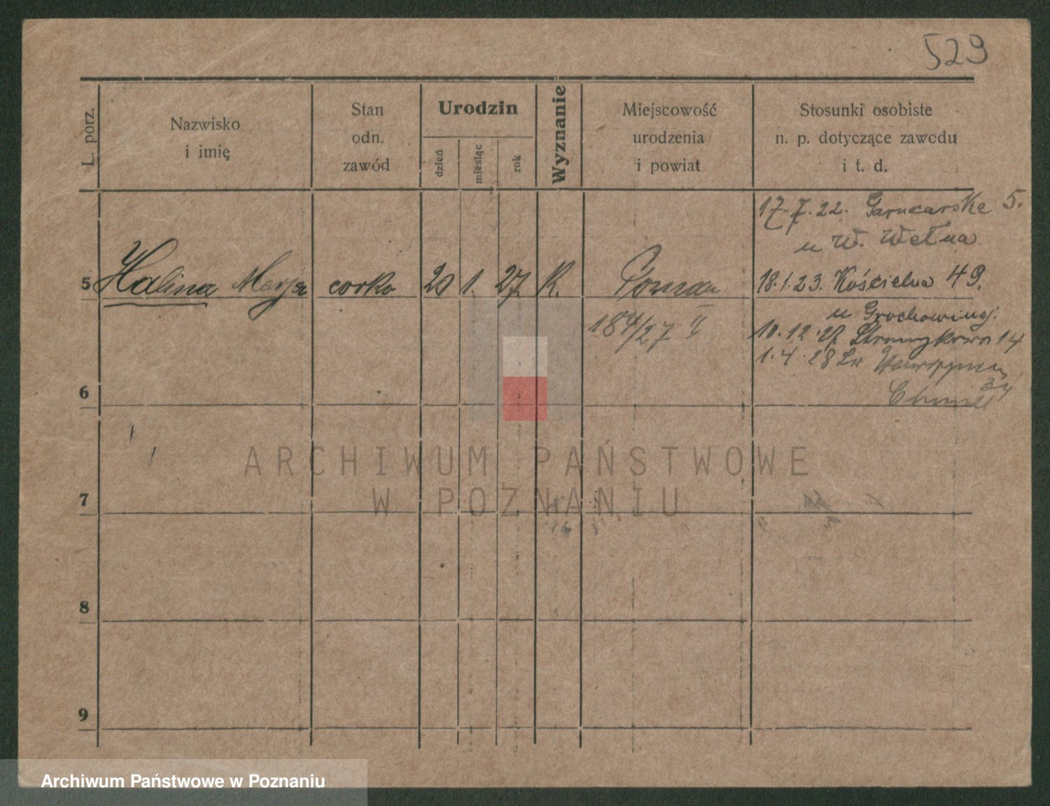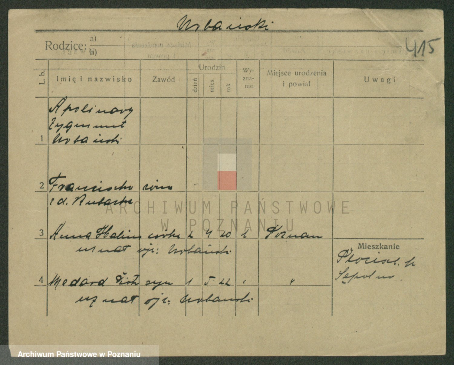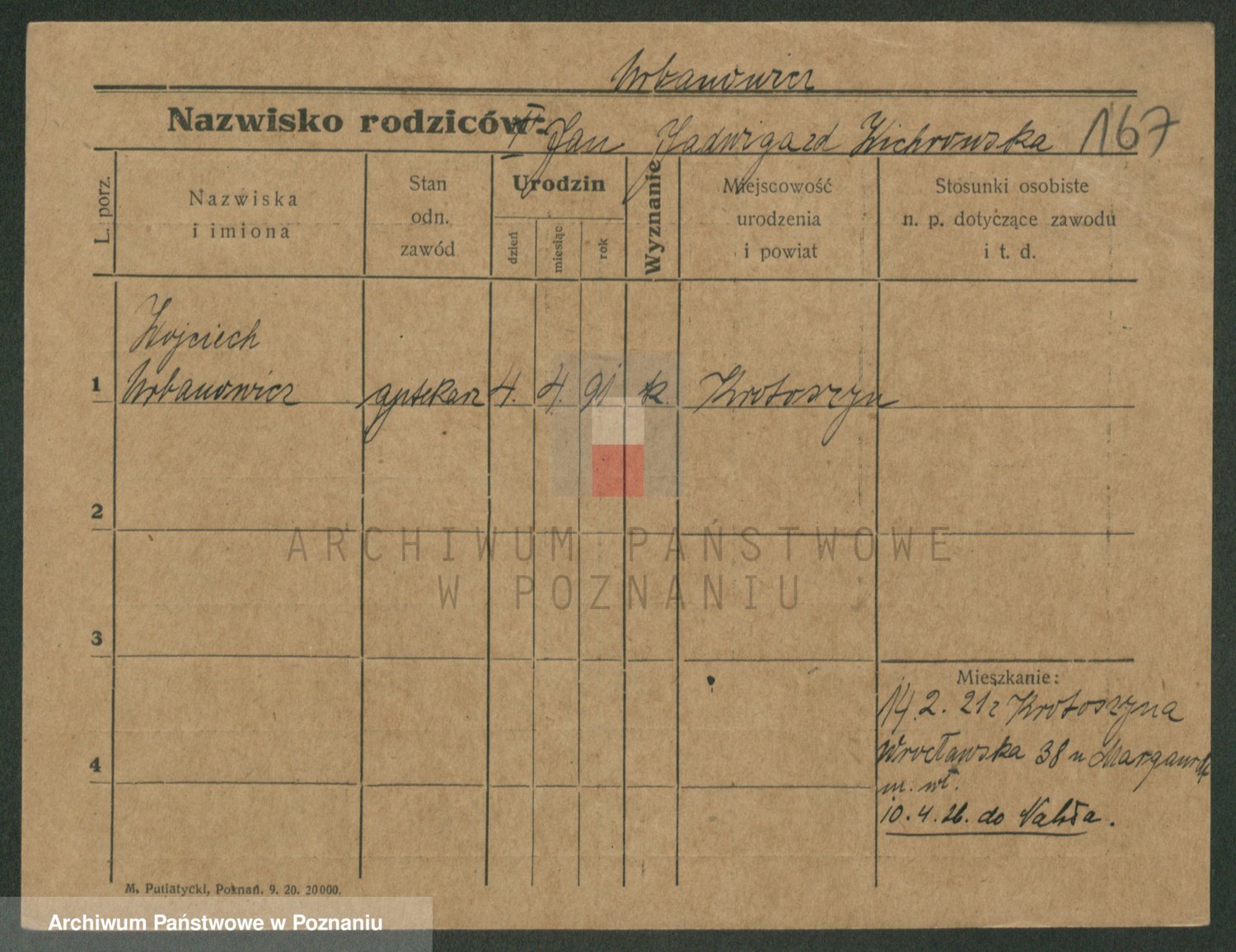 Podgląd karty osobowej dostępny jest po kliknięciu na nazwisko lub ikonkę karty. Można dokonywać powiększenia (ikony na górze) lub przechodzić między kolejnymi skanami (strzałki po bokach).
