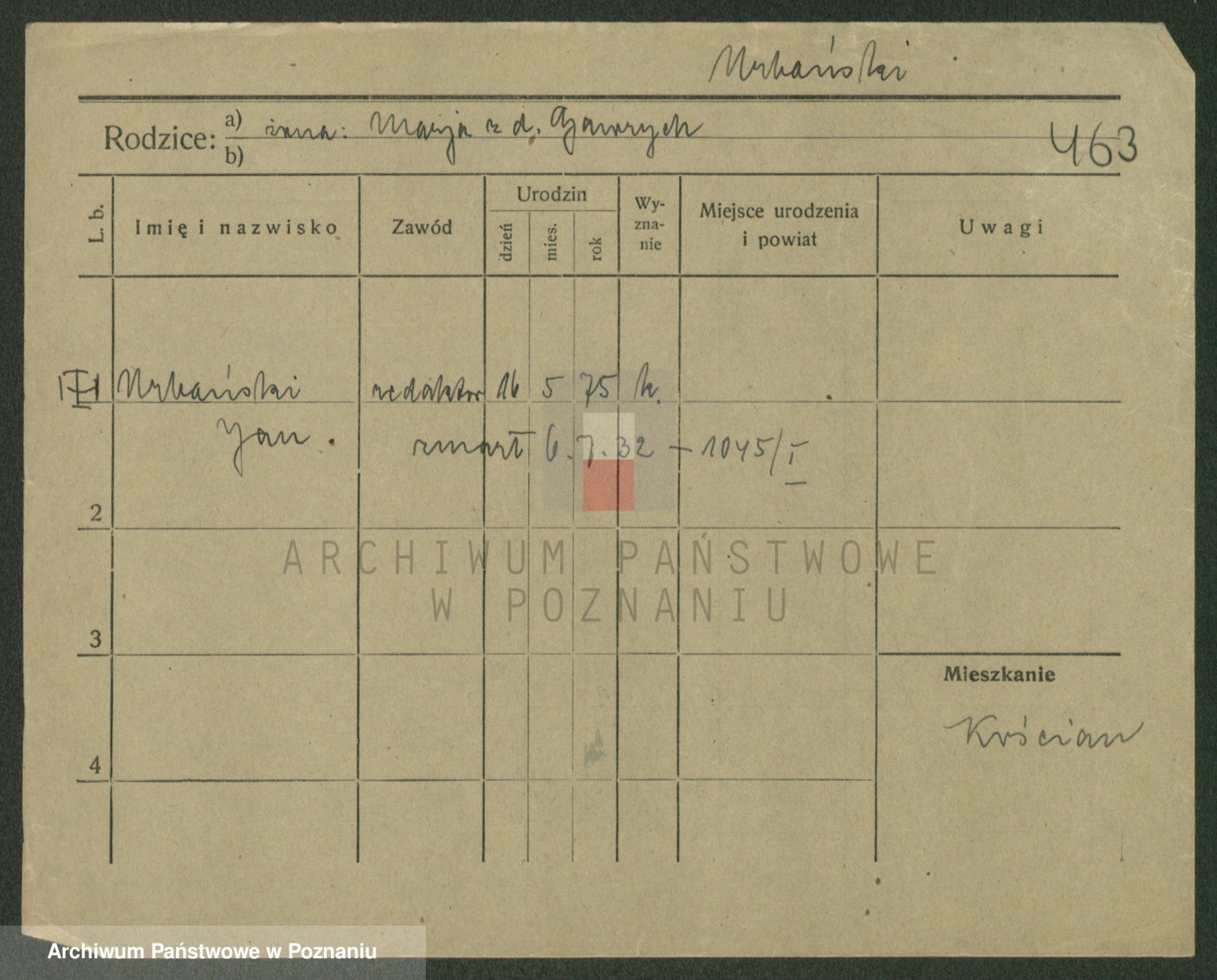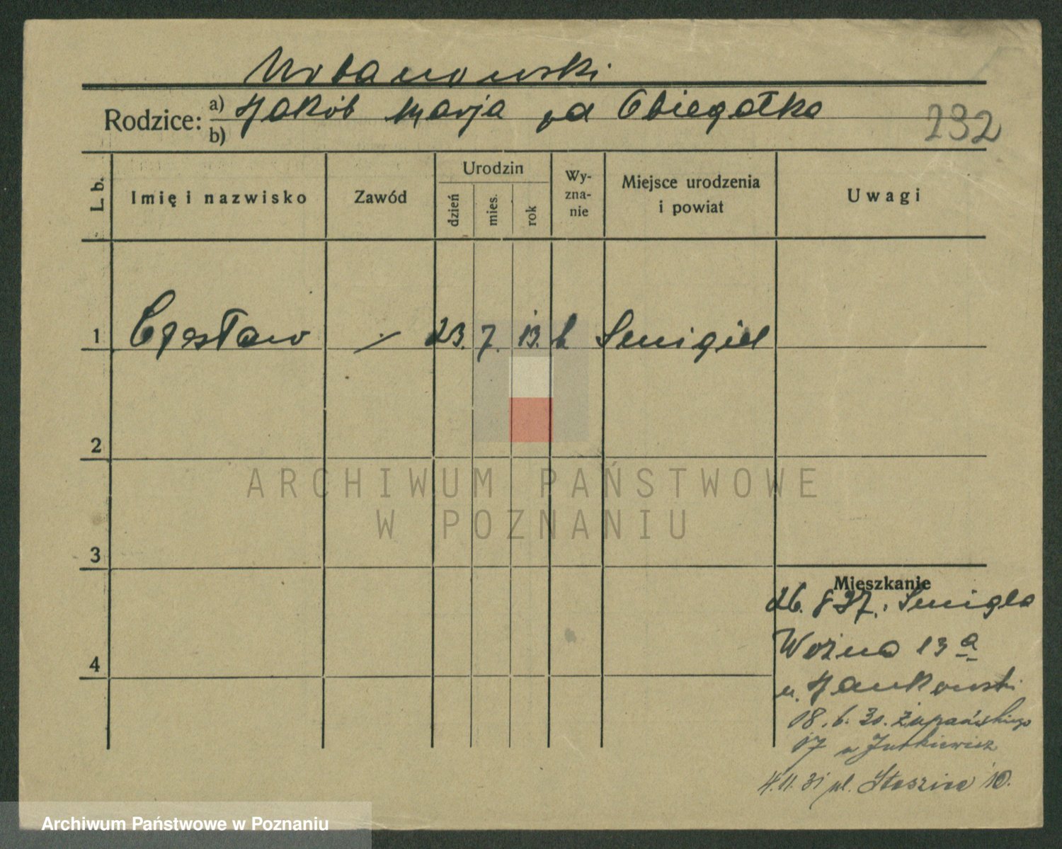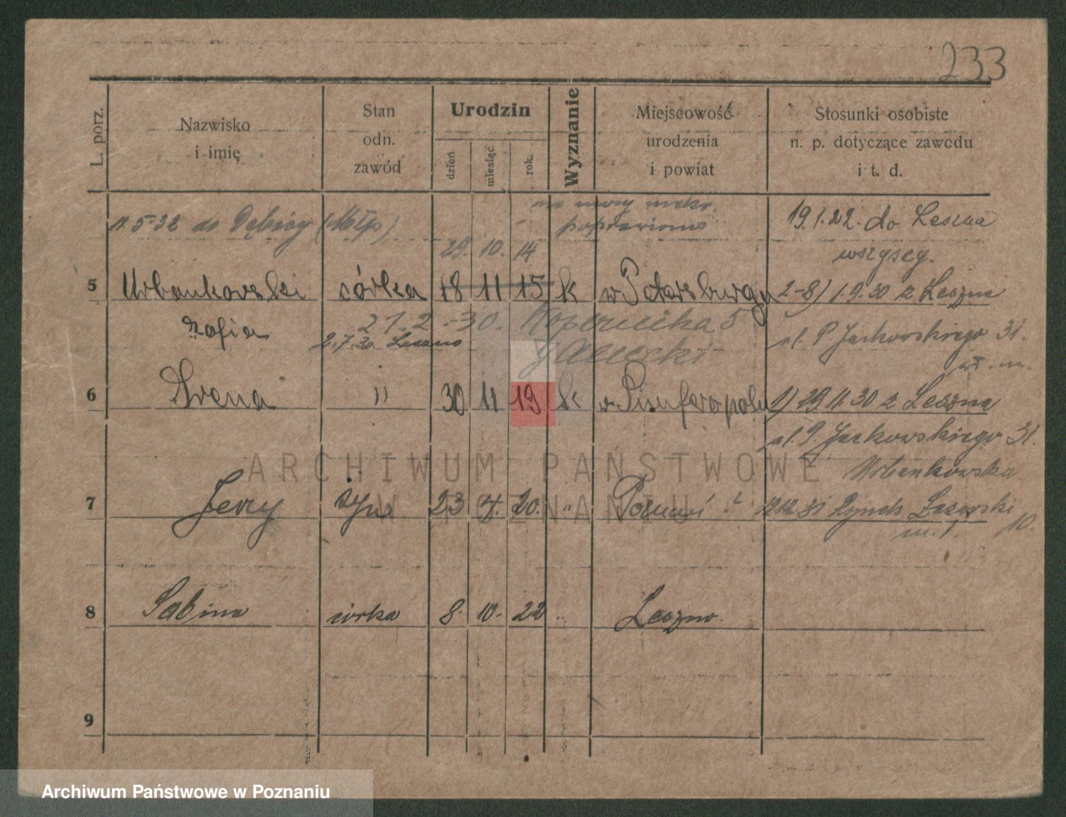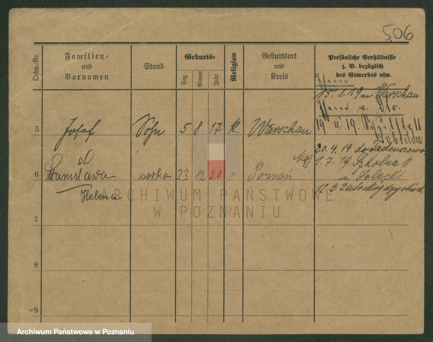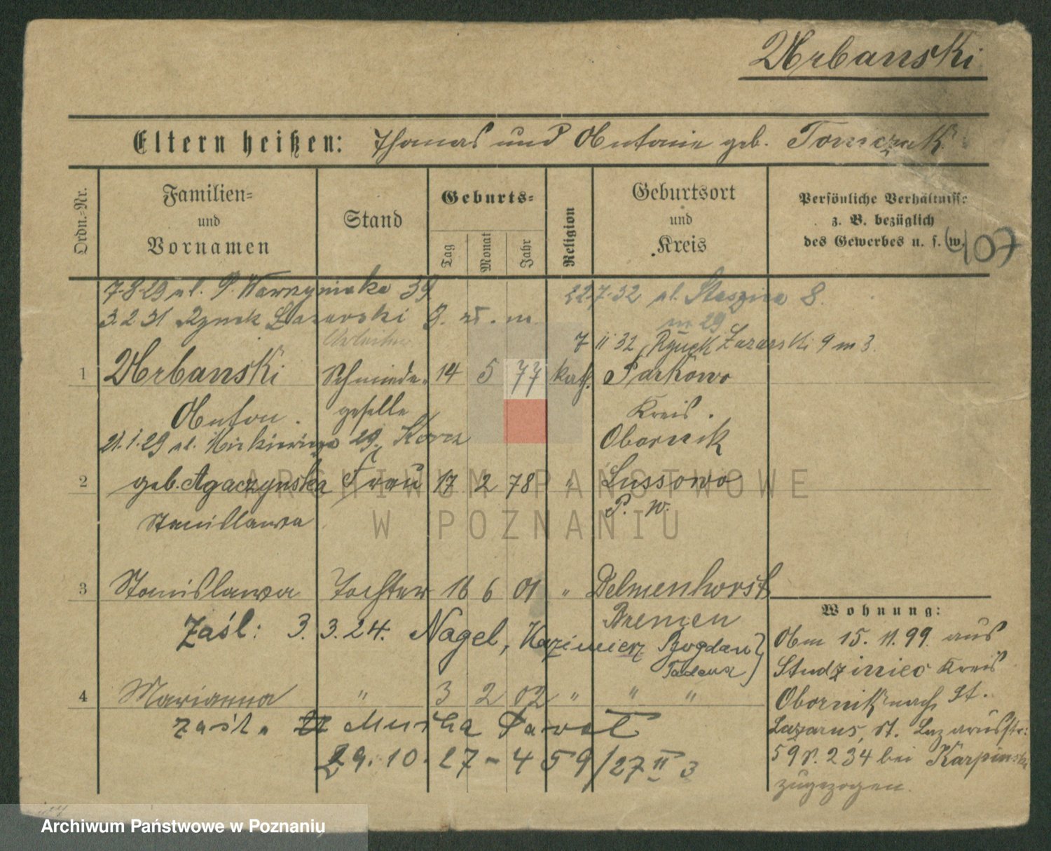 Podgląd karty osobowej dostępny jest po kliknięciu na nazwisko lub ikonkę karty. Można dokonywać powiększenia (ikony na górze) lub przechodzić między kolejnymi skanami (strzałki po bokach).