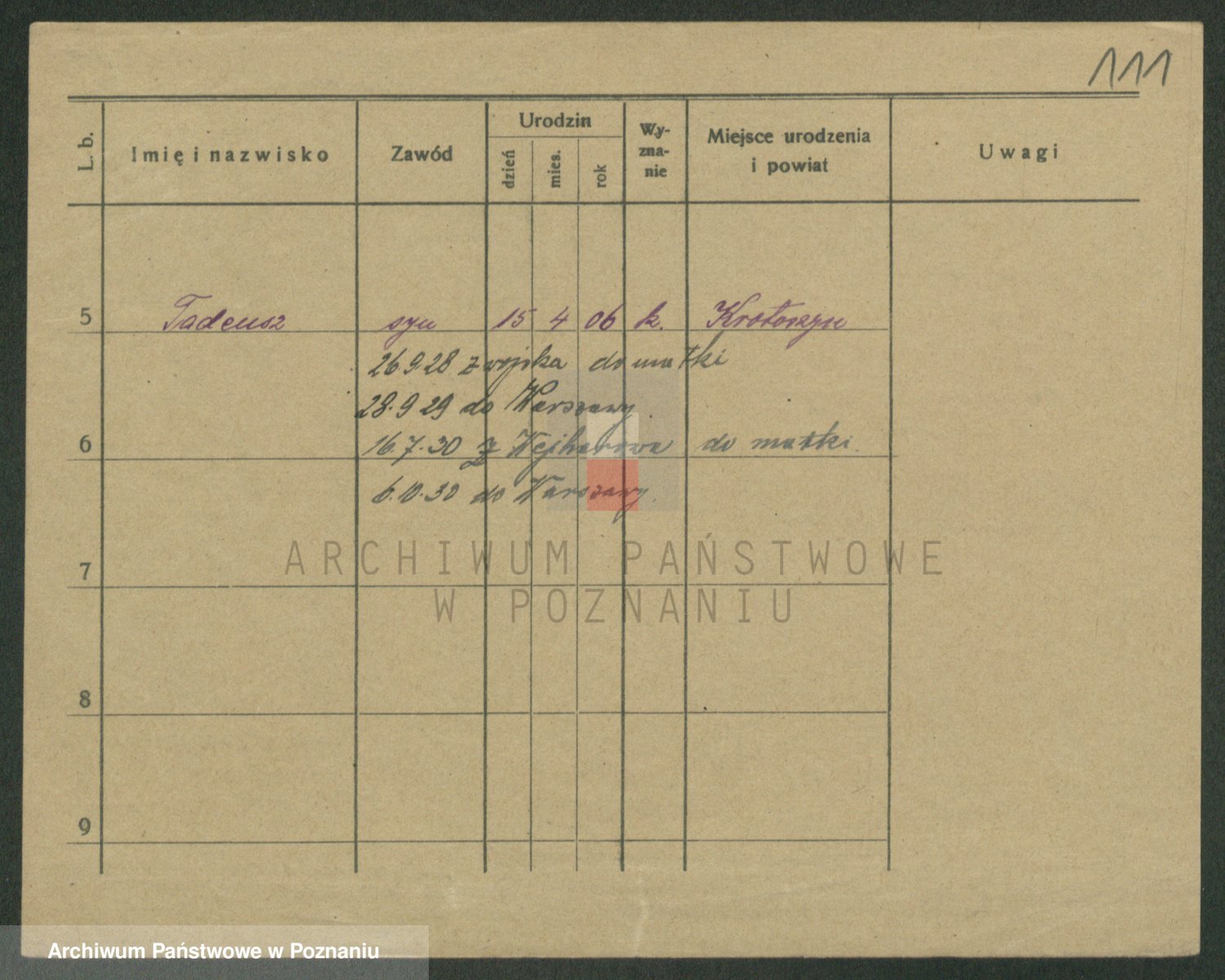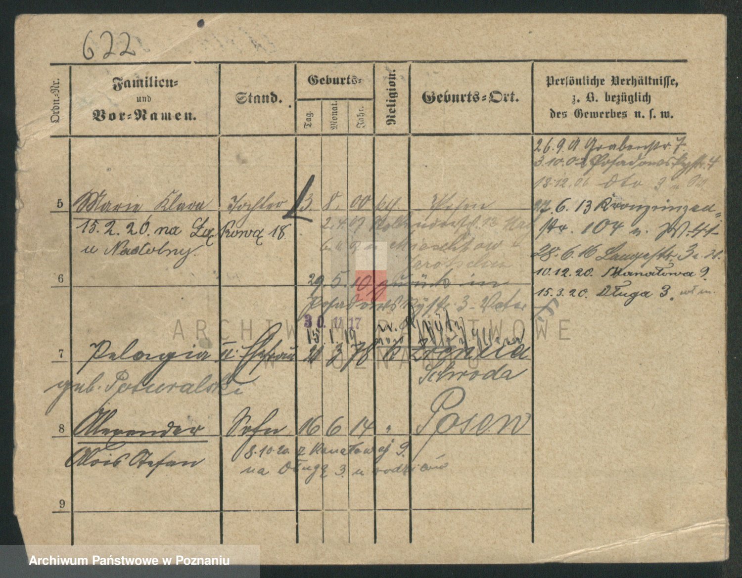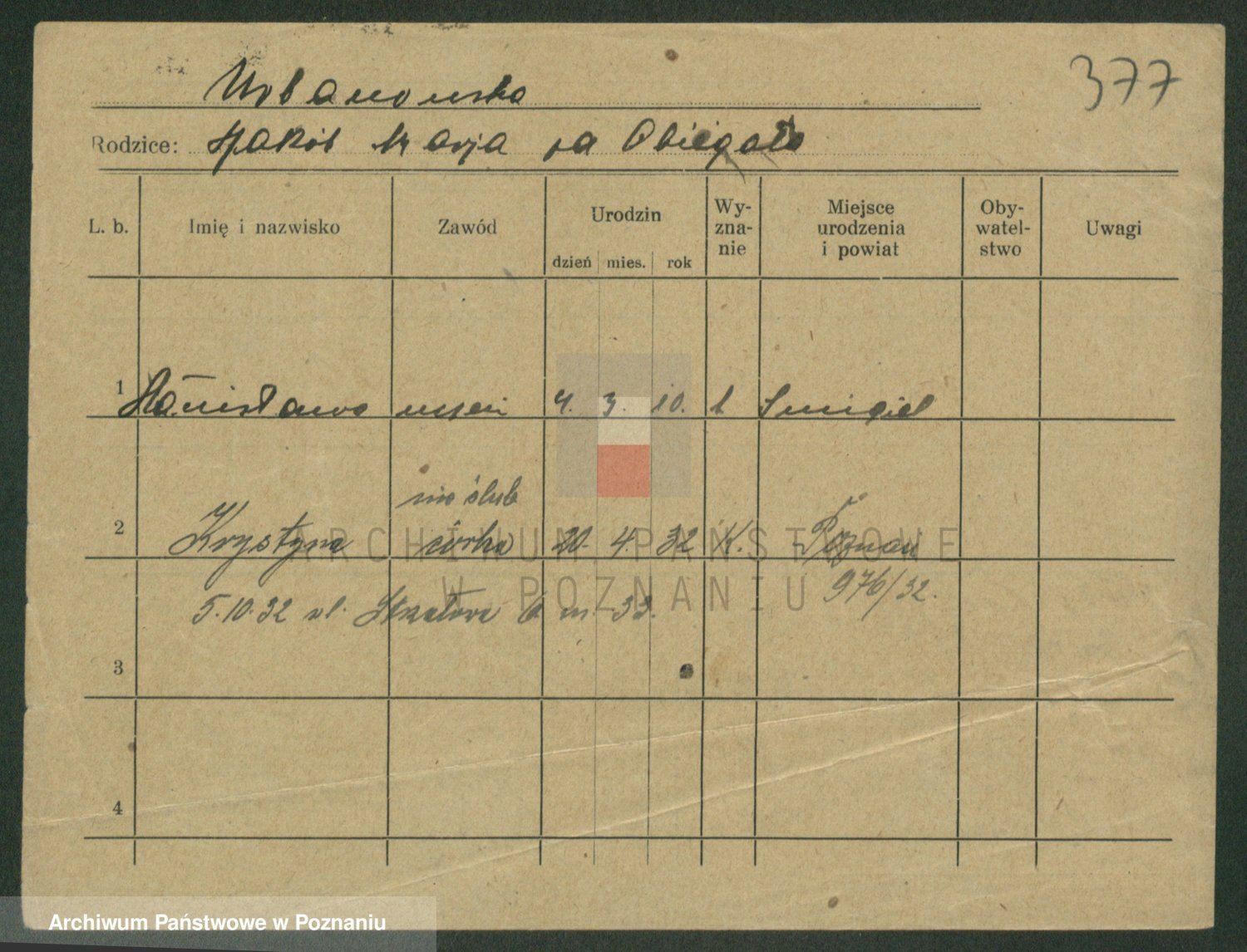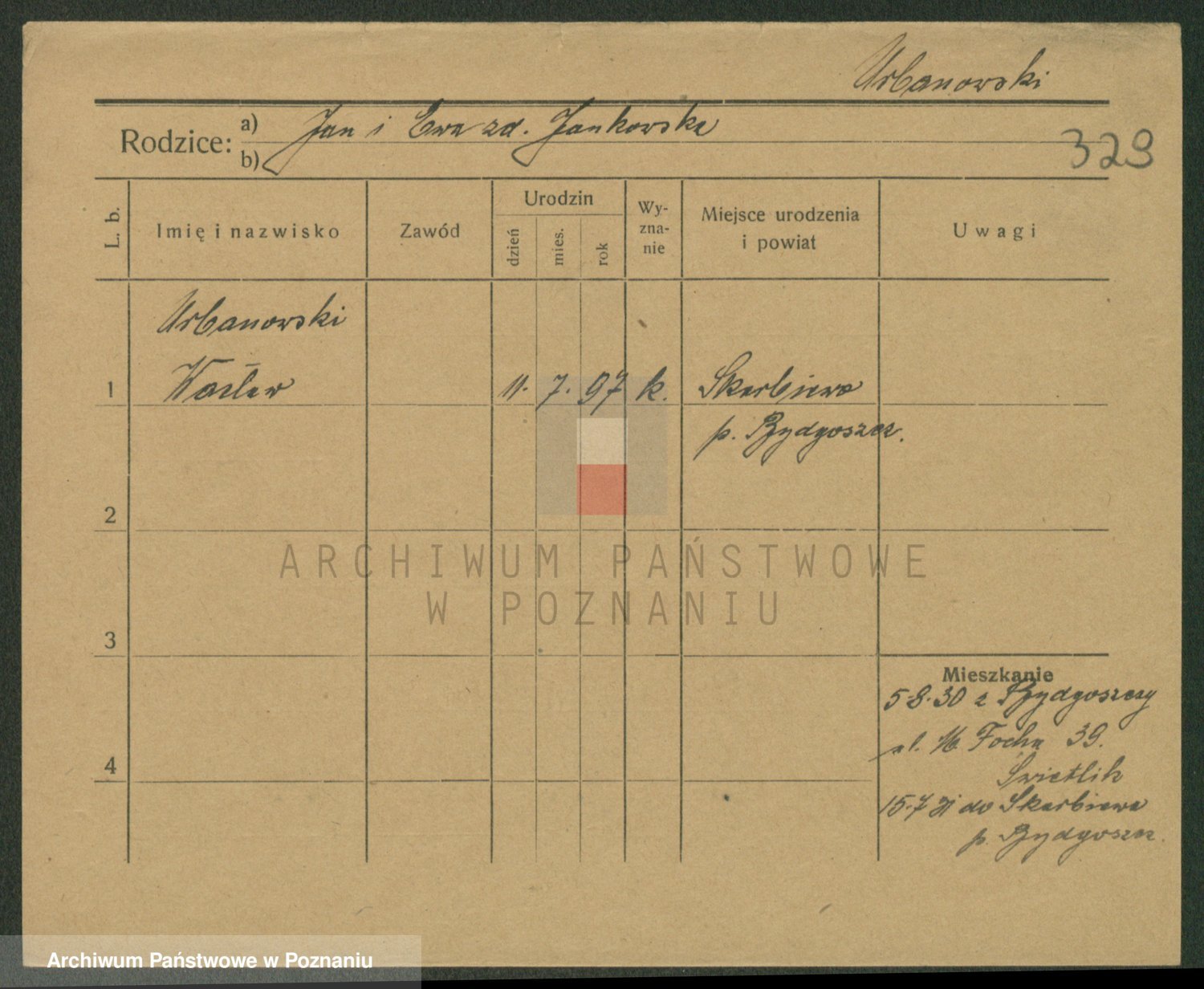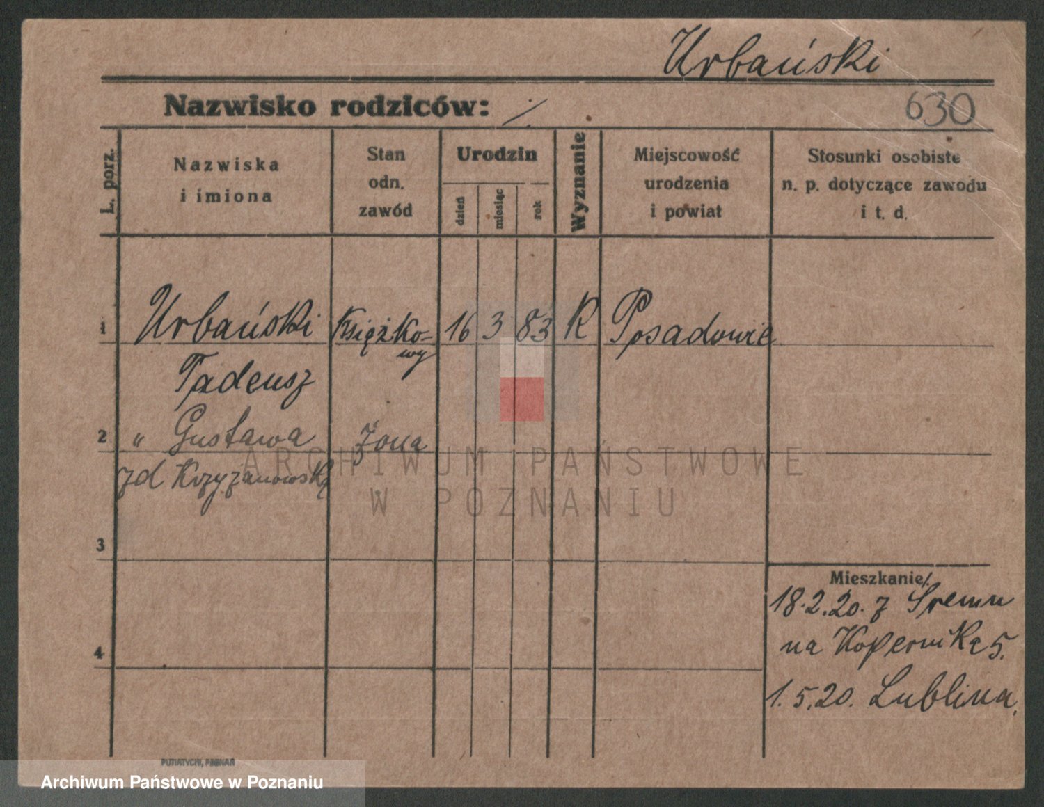 Podgląd karty osobowej dostępny jest po kliknięciu na nazwisko lub ikonkę karty. Można dokonywać powiększenia (ikony na górze) lub przechodzić między kolejnymi skanami (strzałki po bokach).