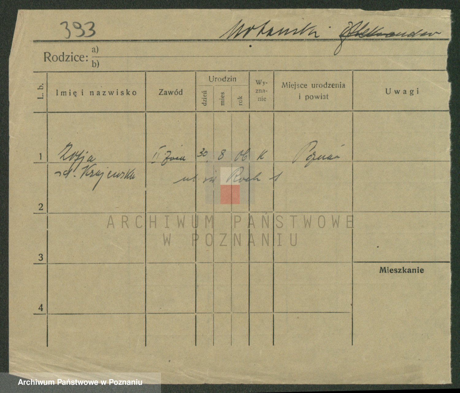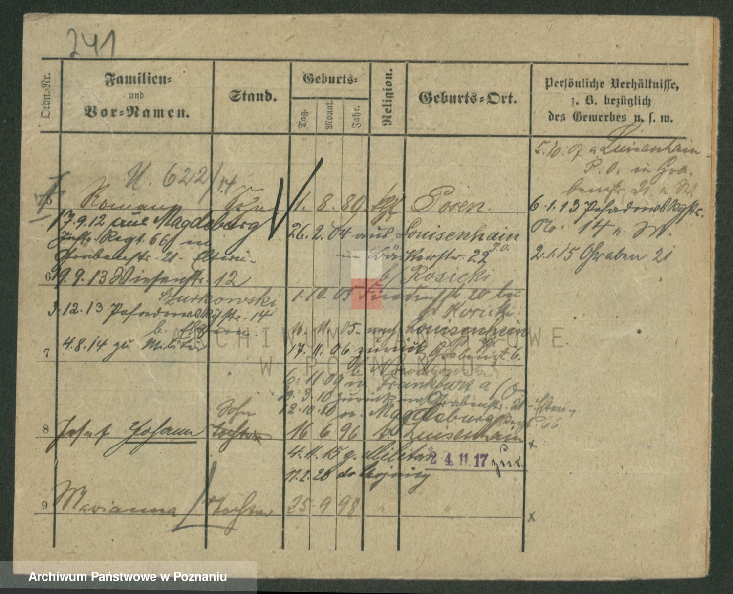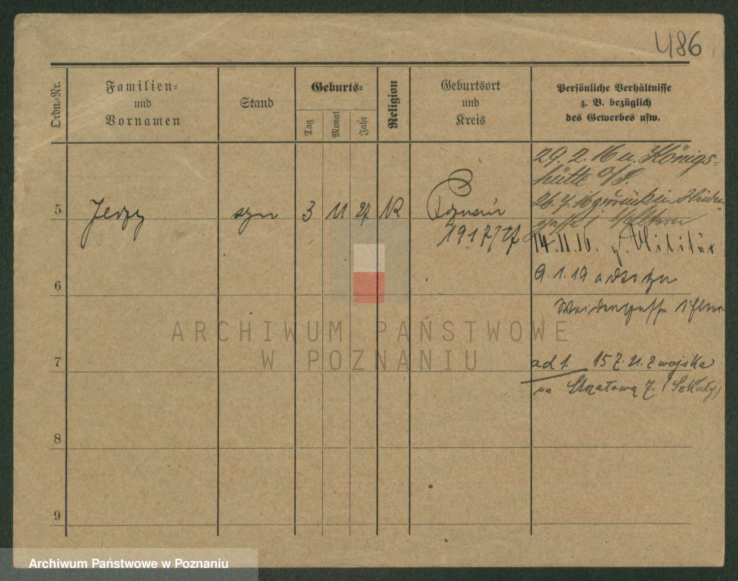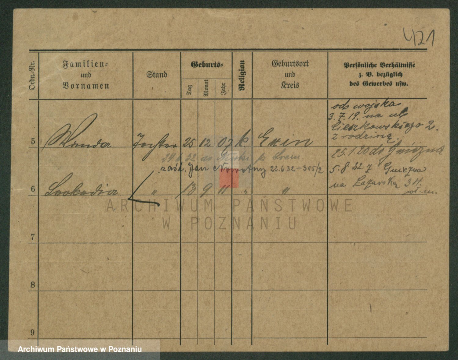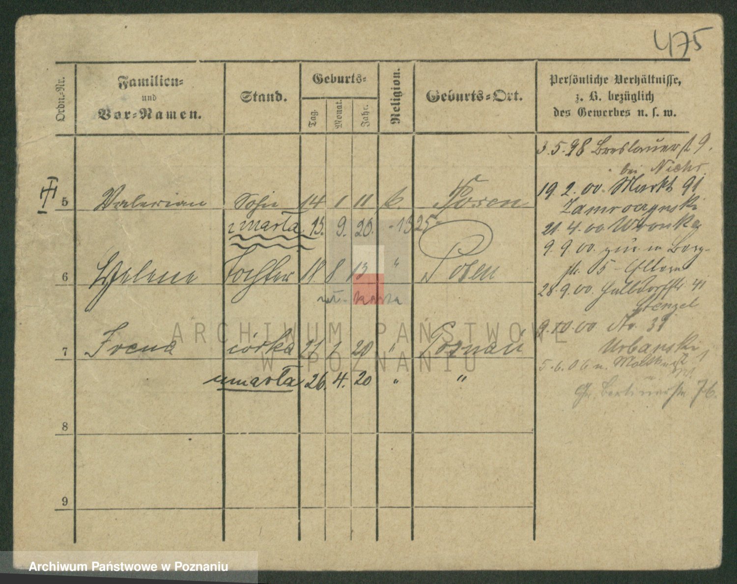 Podgląd karty osobowej dostępny jest po kliknięciu na nazwisko lub ikonkę karty. Można dokonywać powiększenia (ikony na górze) lub przechodzić między kolejnymi skanami (strzałki po bokach).