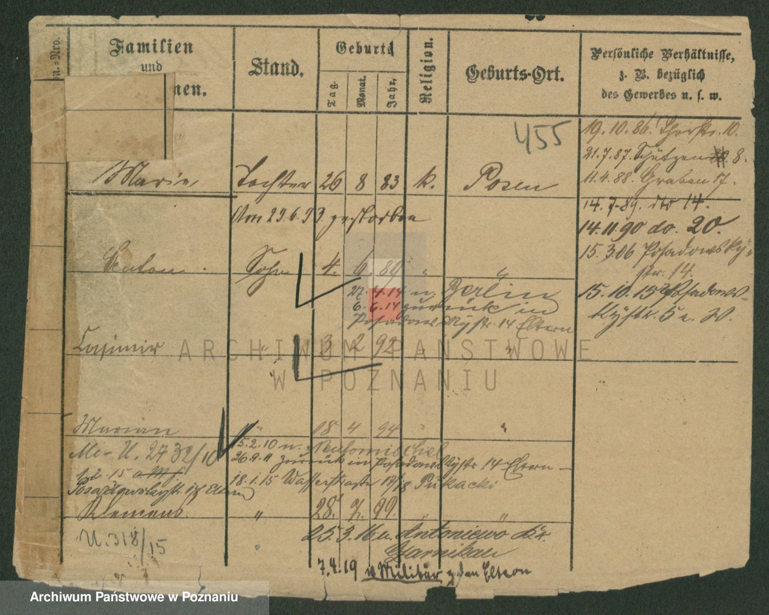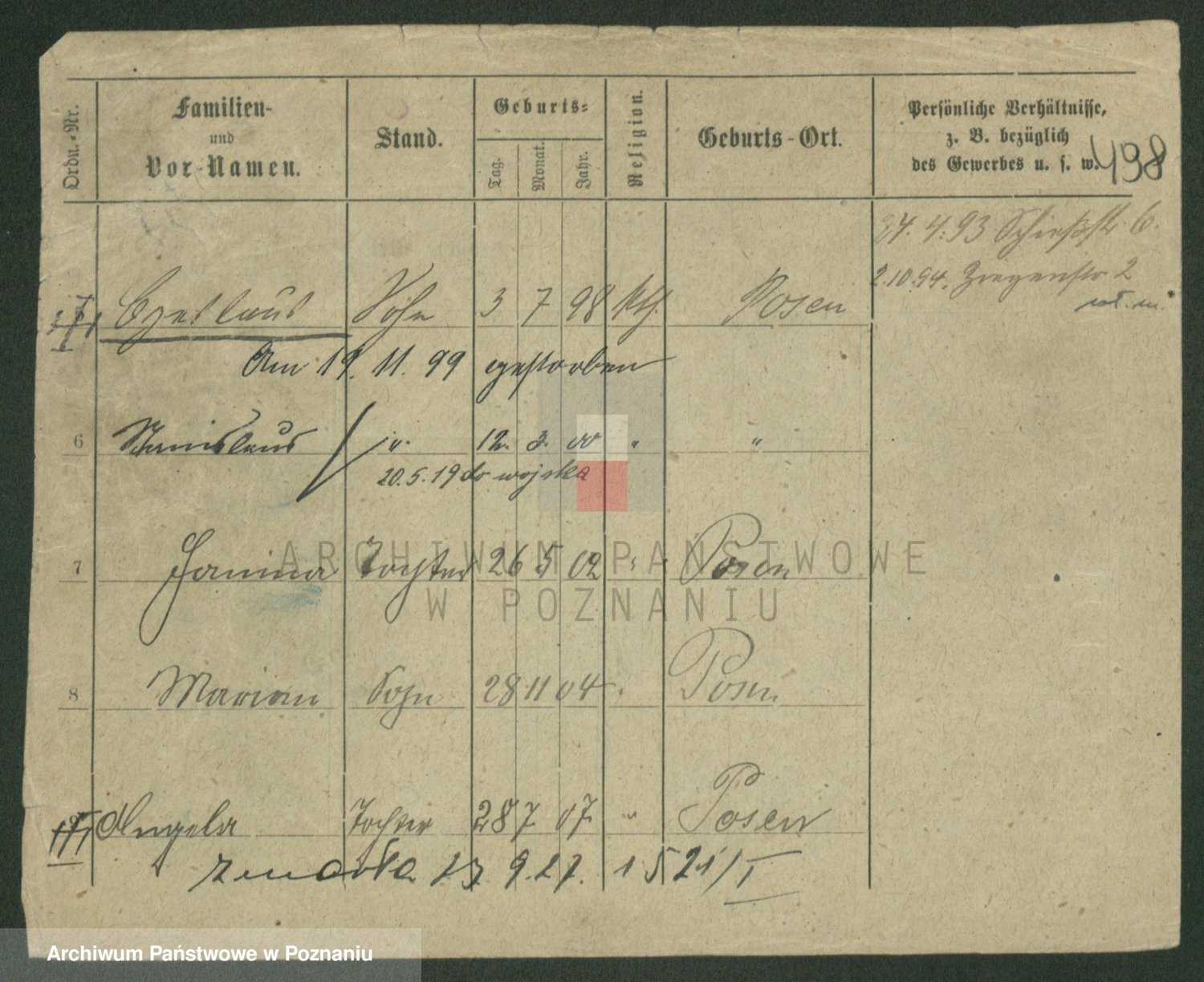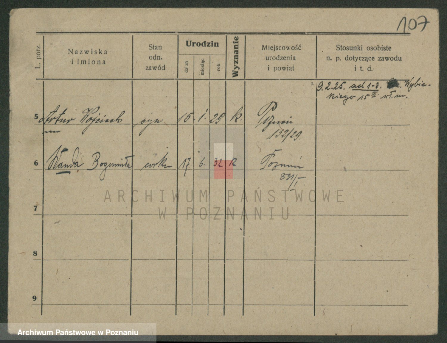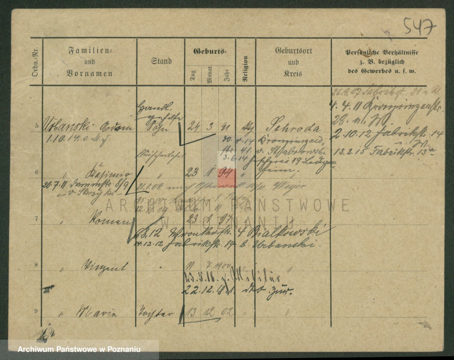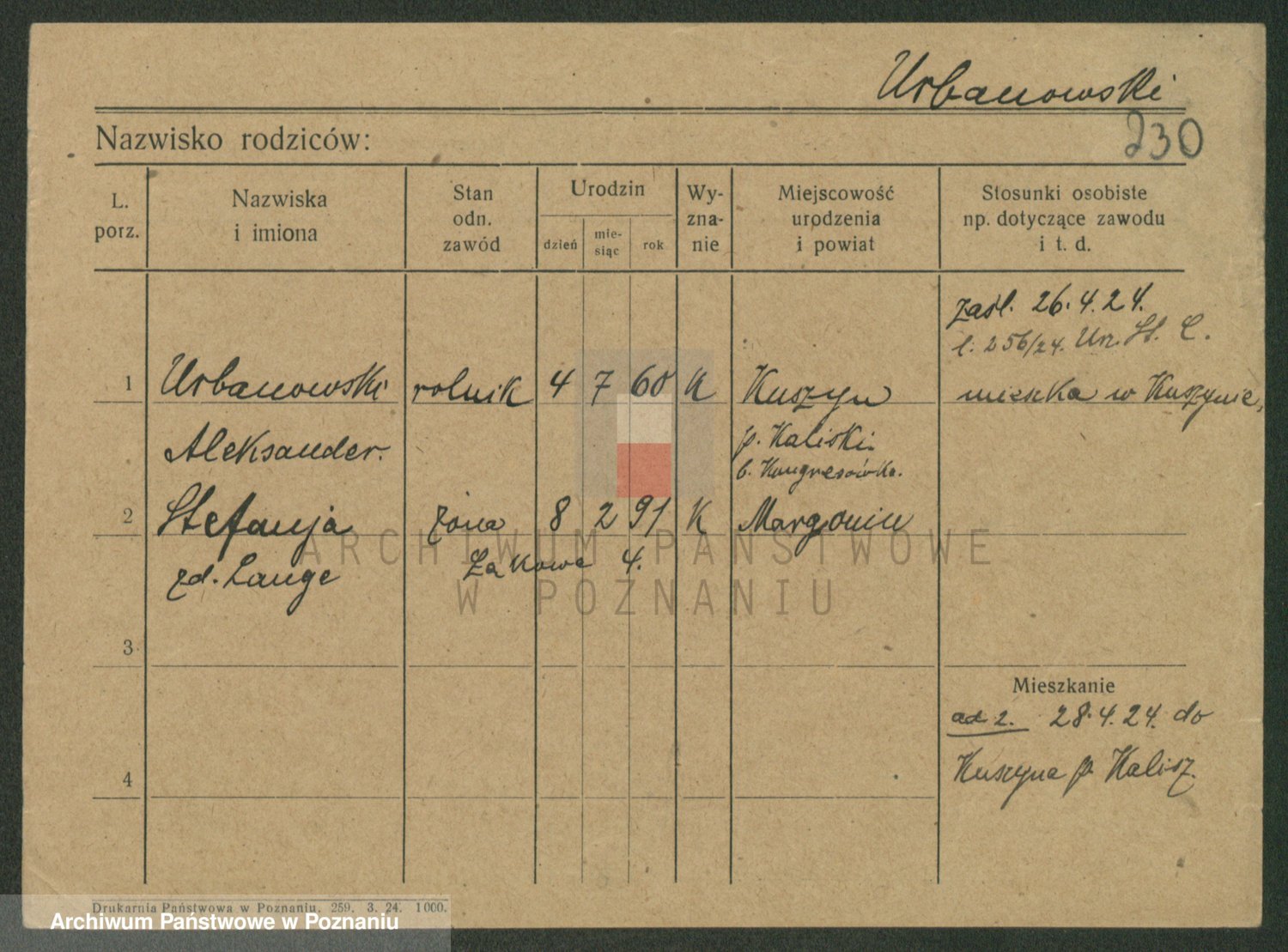 Podgląd karty osobowej dostępny jest po kliknięciu na nazwisko lub ikonkę karty. Można dokonywać powiększenia (ikony na górze) lub przechodzić między kolejnymi skanami (strzałki po bokach).
