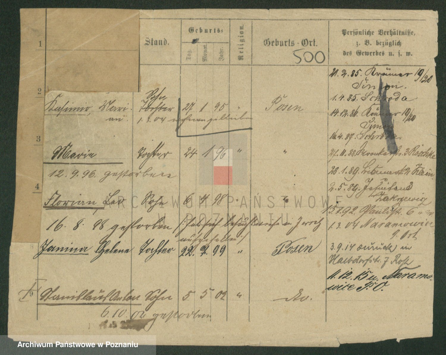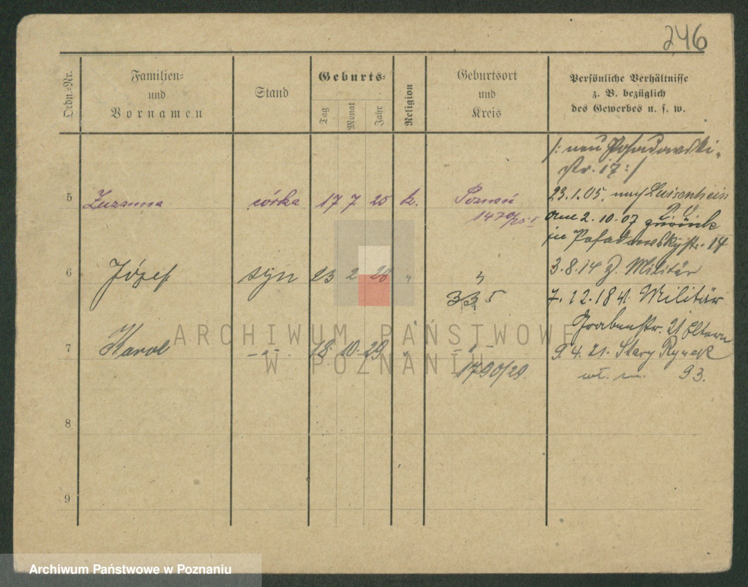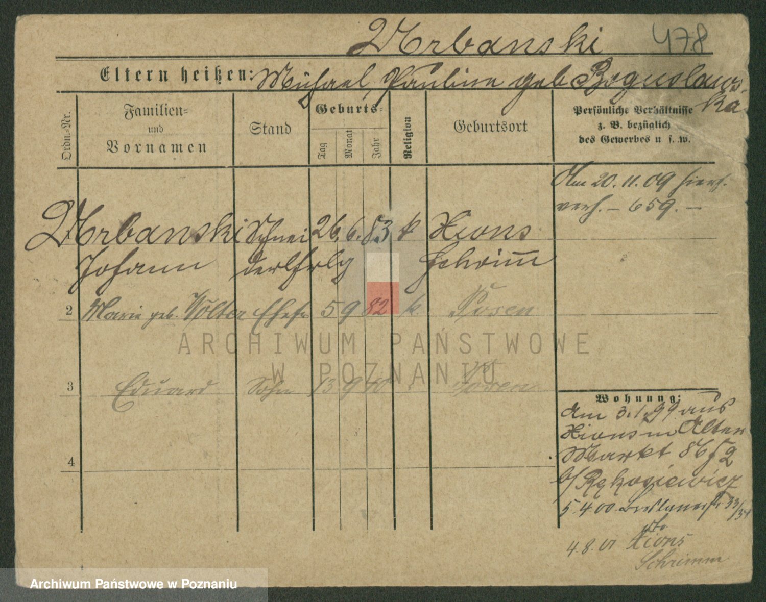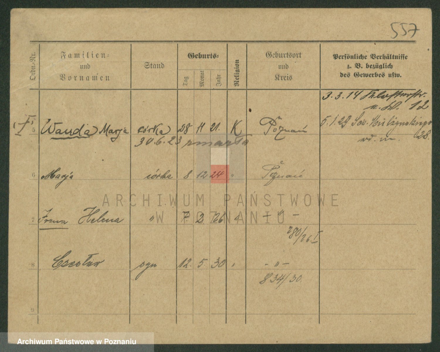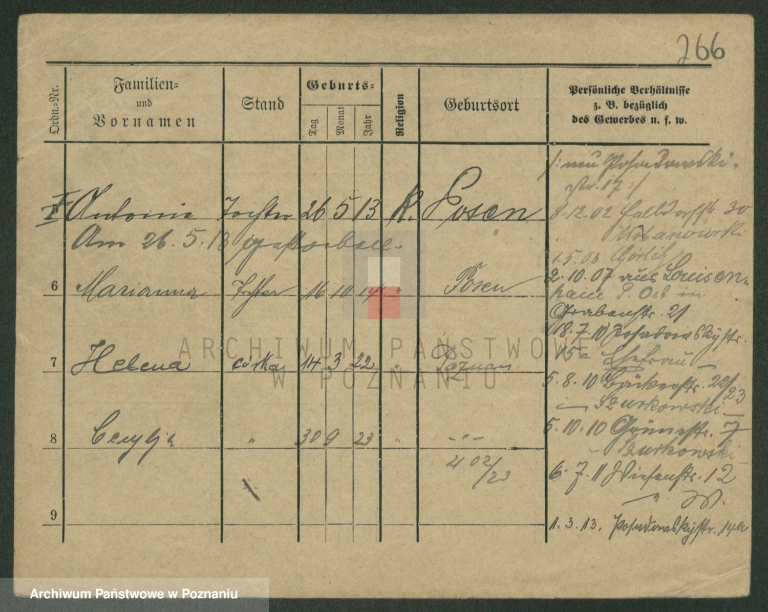 Podgląd karty osobowej dostępny jest po kliknięciu na nazwisko lub ikonkę karty. Można dokonywać powiększenia (ikony na górze) lub przechodzić między kolejnymi skanami (strzałki po bokach).