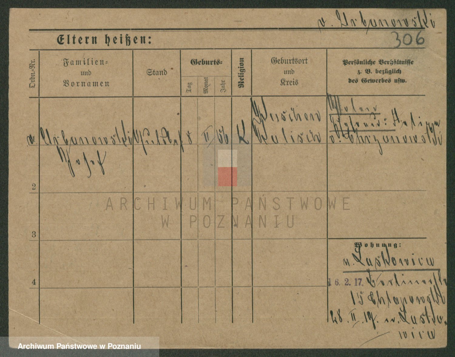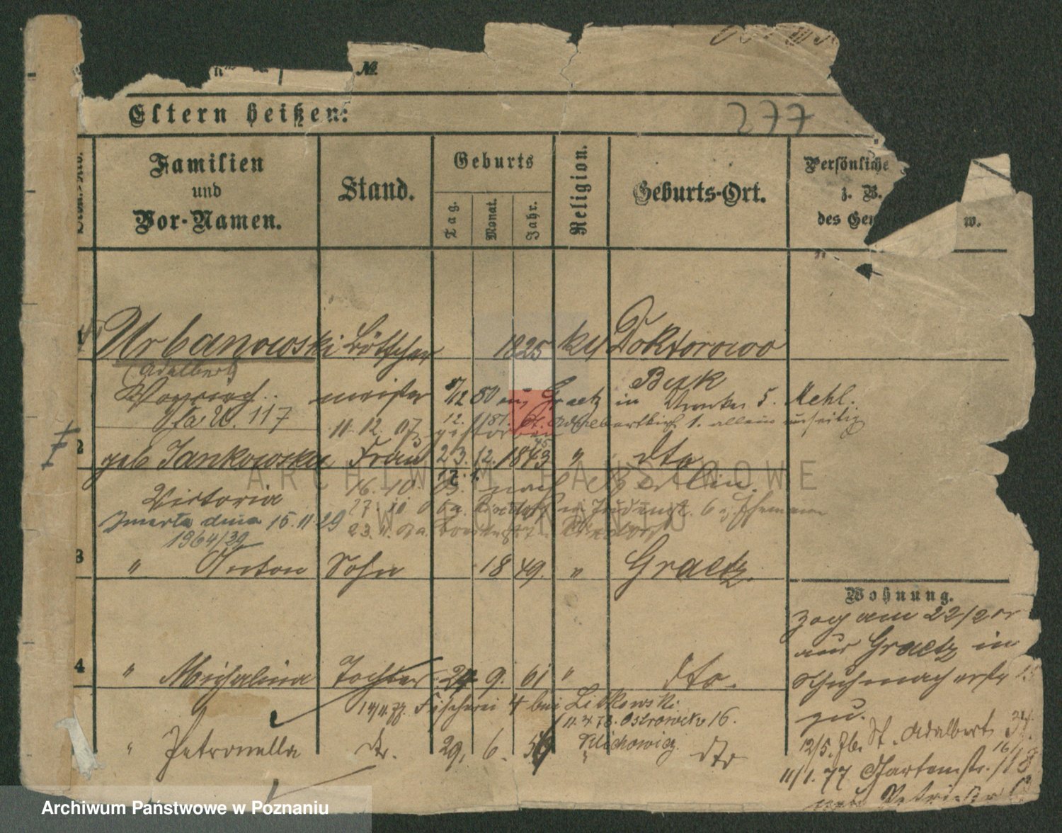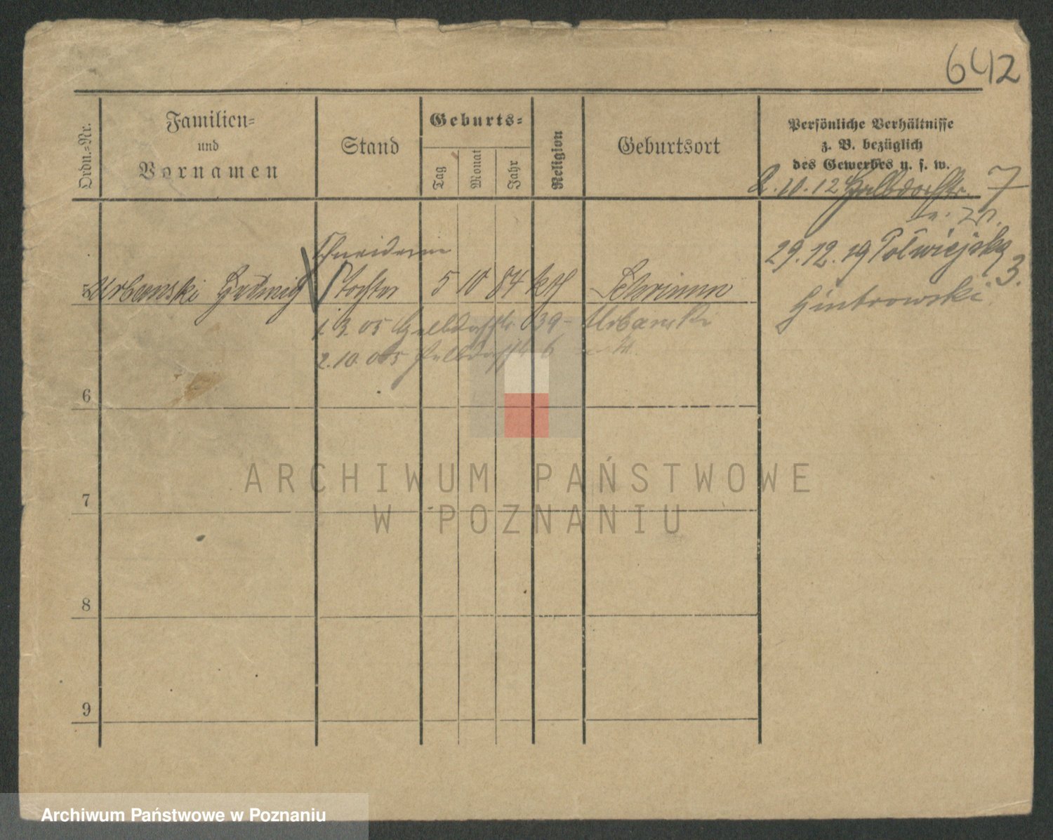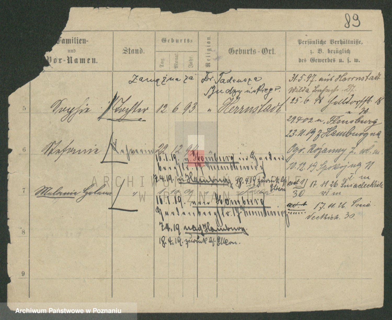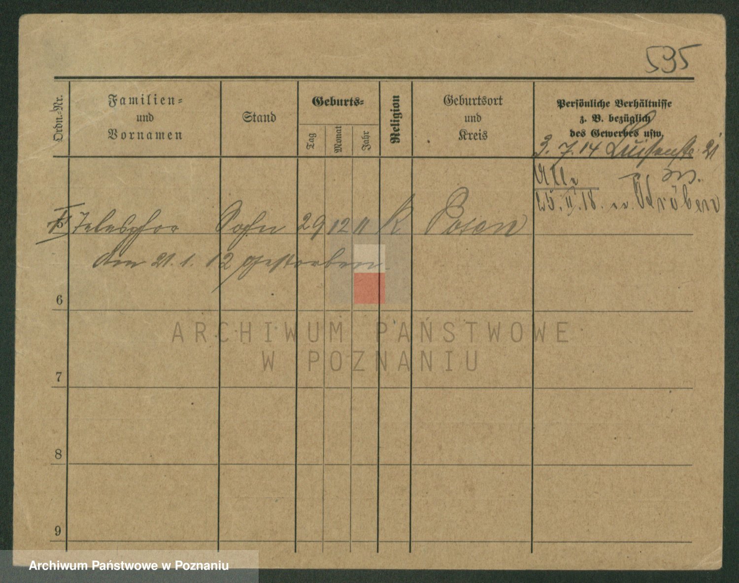 Podgląd karty osobowej dostępny jest po kliknięciu na nazwisko lub ikonkę karty. Można dokonywać powiększenia (ikony na górze) lub przechodzić między kolejnymi skanami (strzałki po bokach).