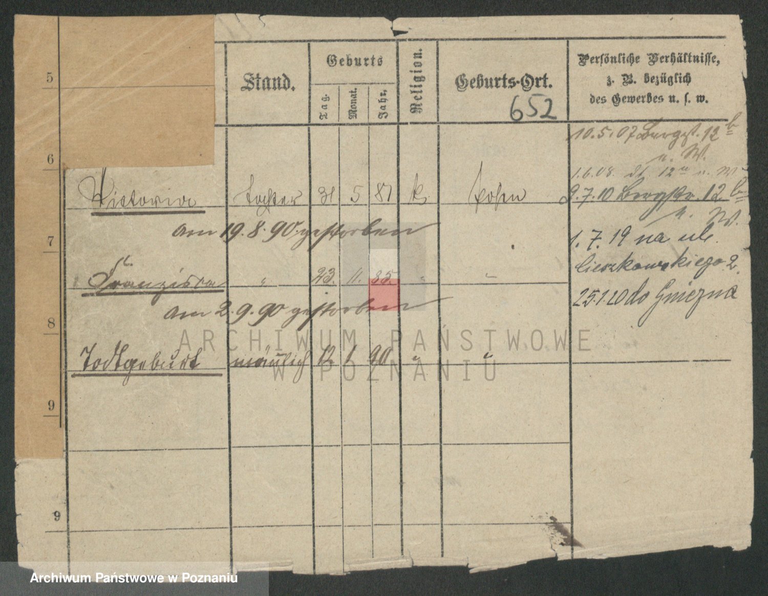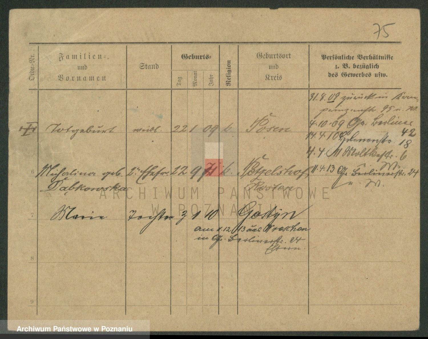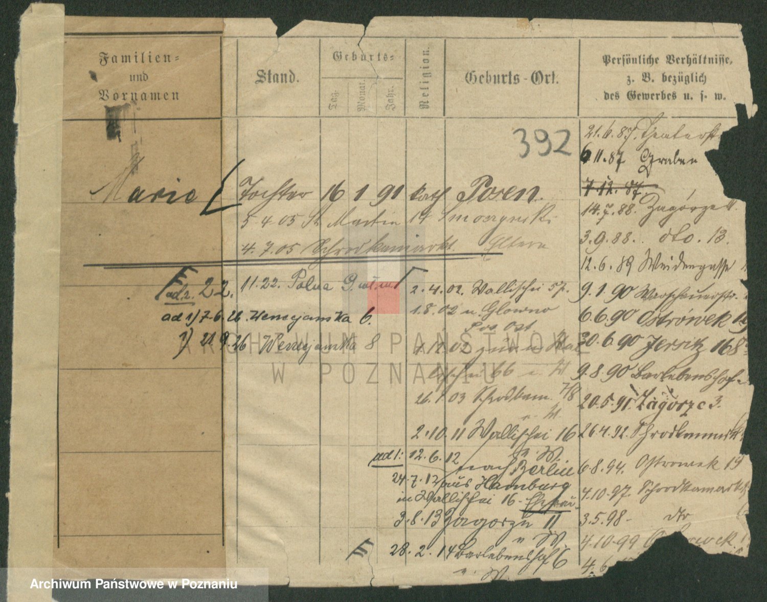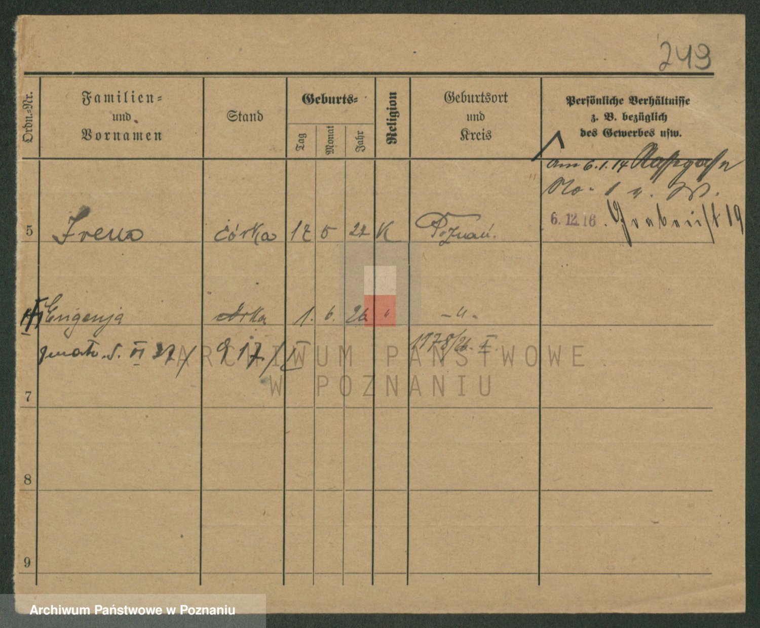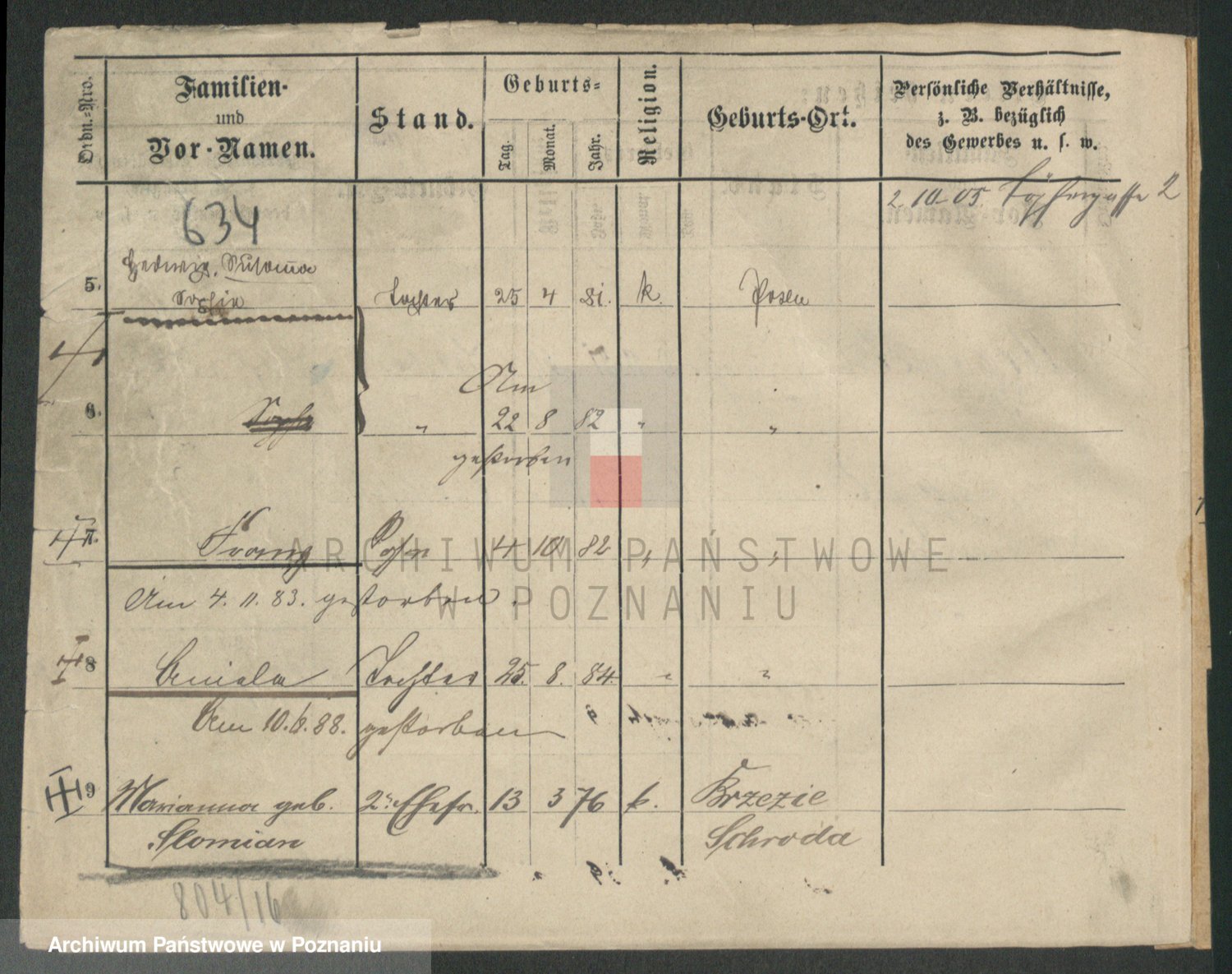 Podgląd karty osobowej dostępny jest po kliknięciu na nazwisko lub ikonkę karty. Można dokonywać powiększenia (ikony na górze) lub przechodzić między kolejnymi skanami (strzałki po bokach).