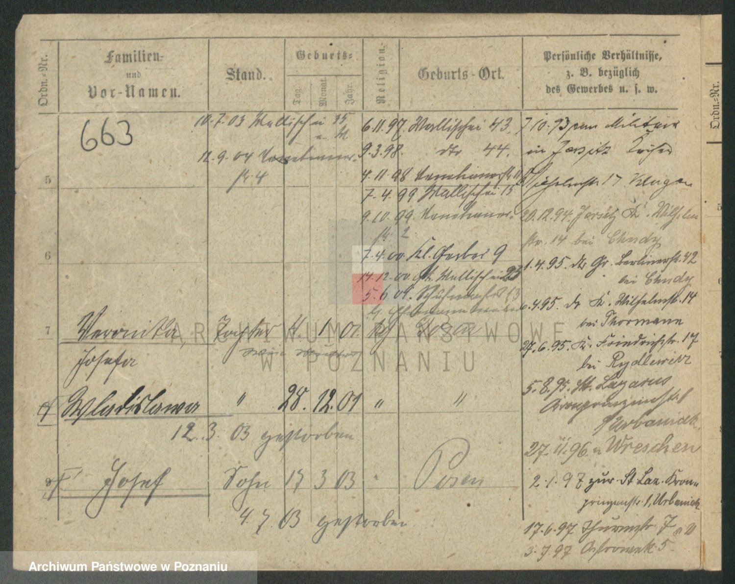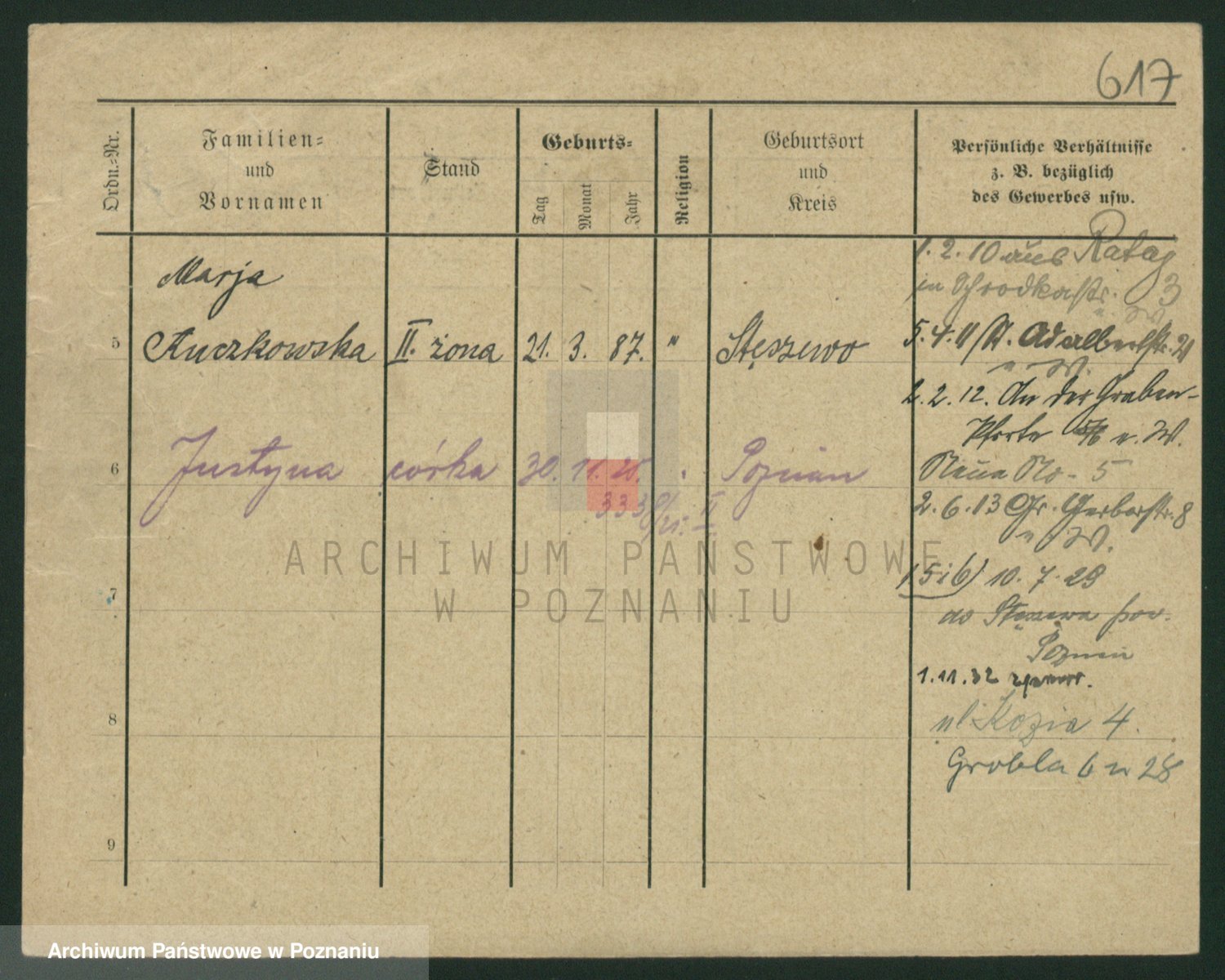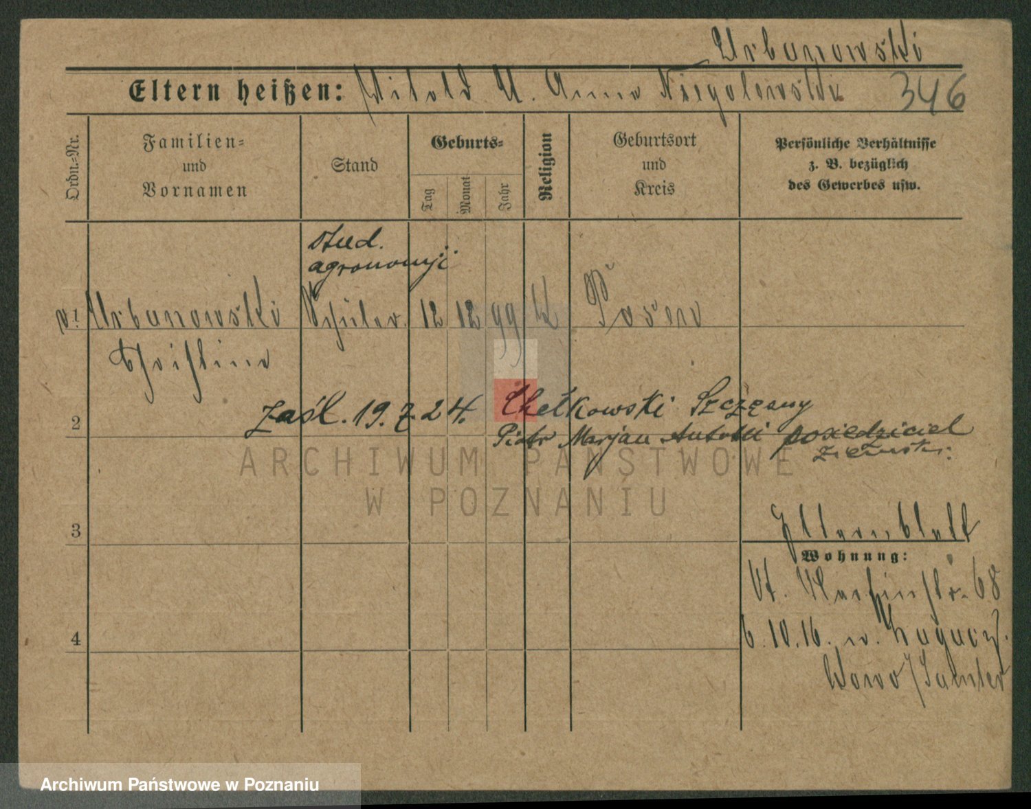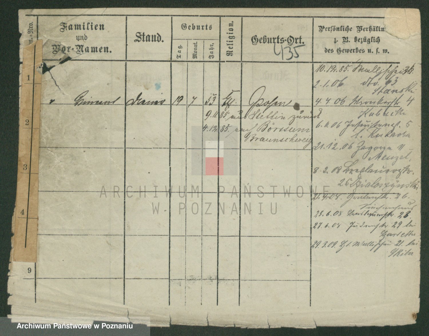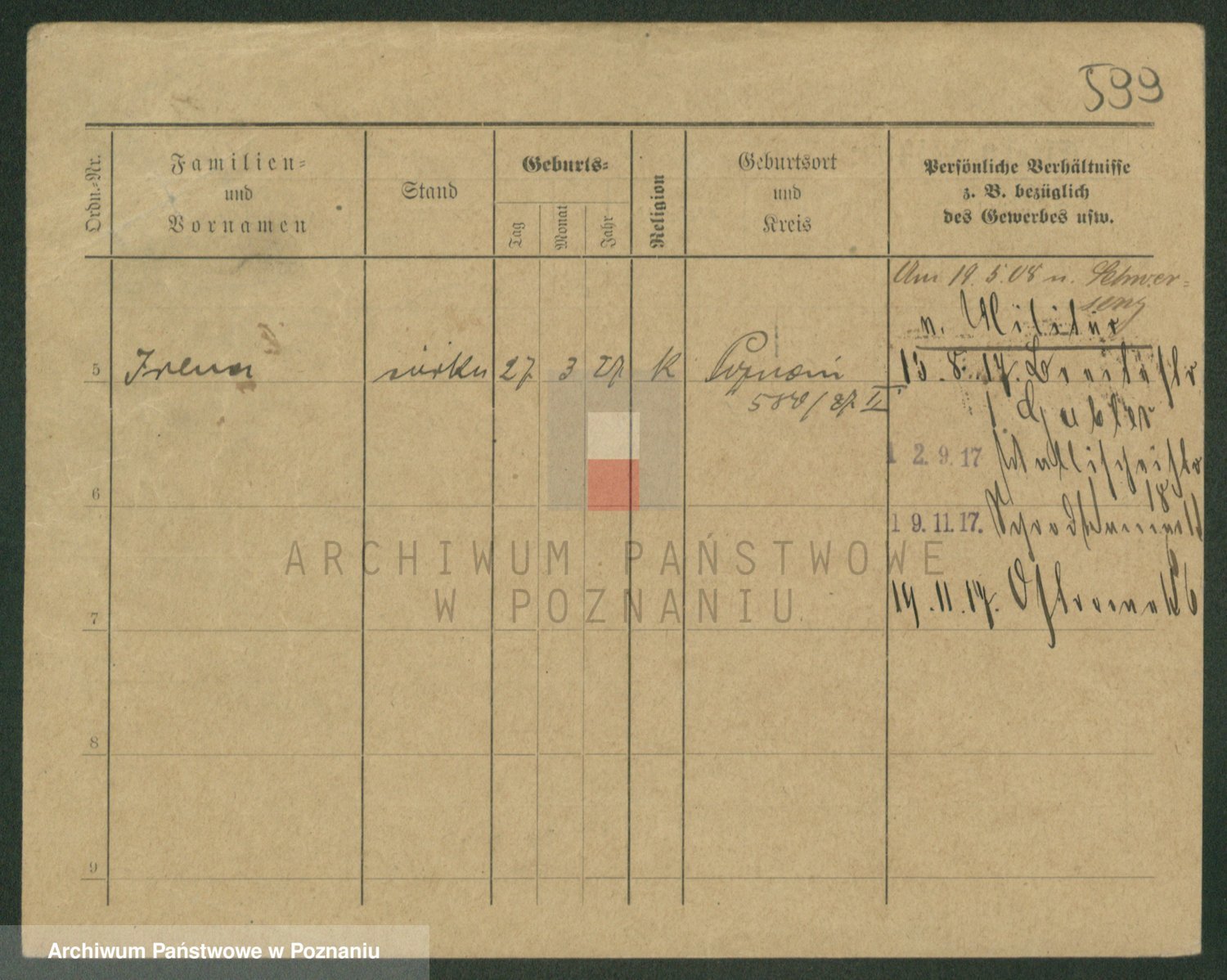 Podgląd karty osobowej dostępny jest po kliknięciu na nazwisko lub ikonkę karty. Można dokonywać powiększenia (ikony na górze) lub przechodzić między kolejnymi skanami (strzałki po bokach).