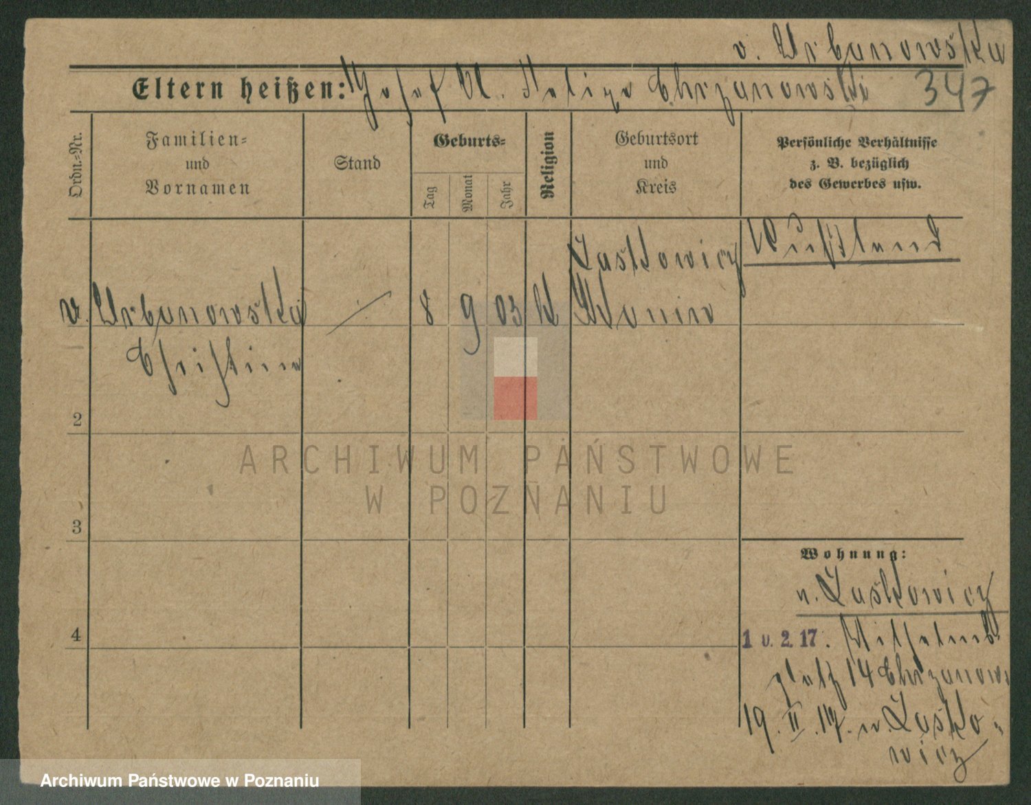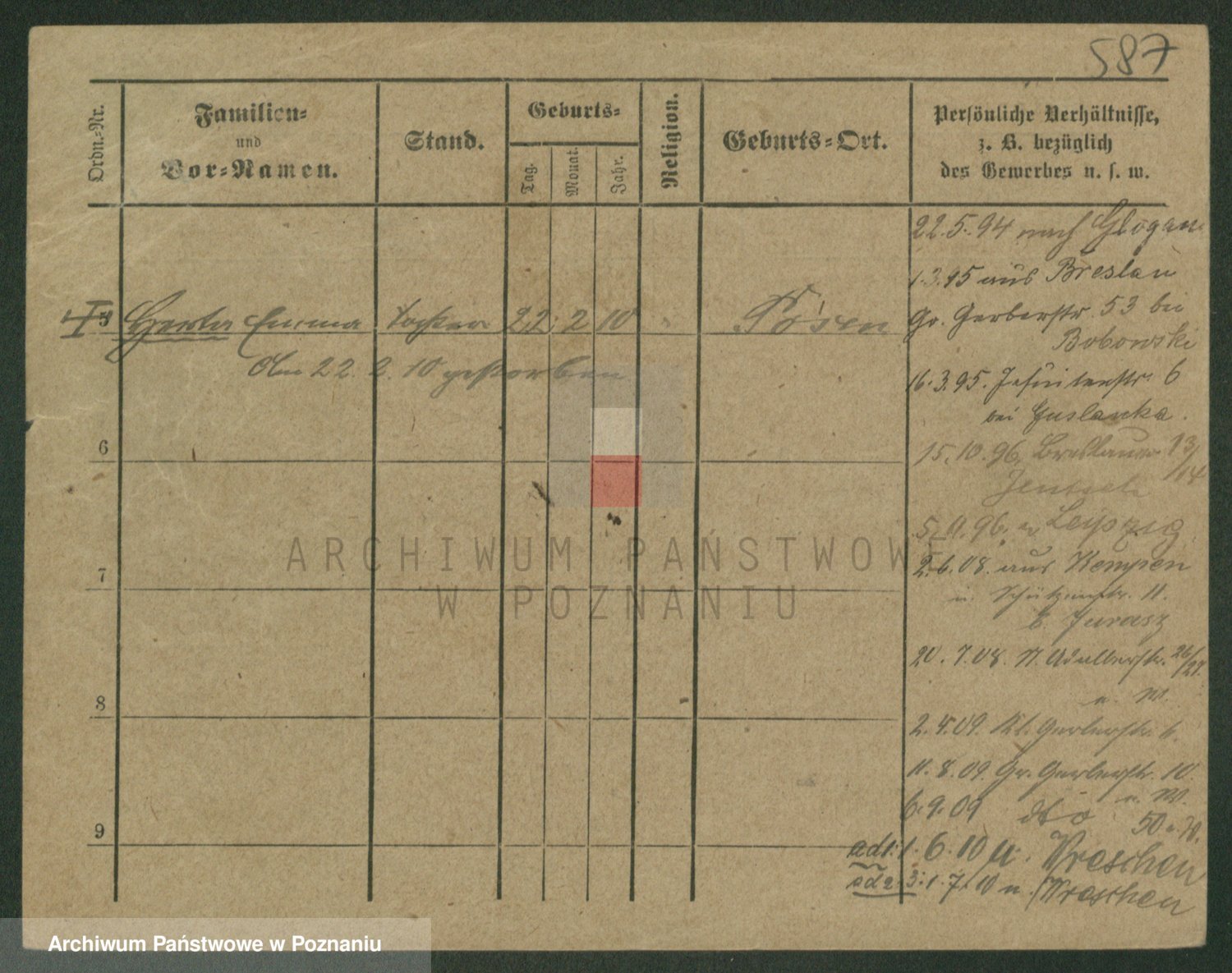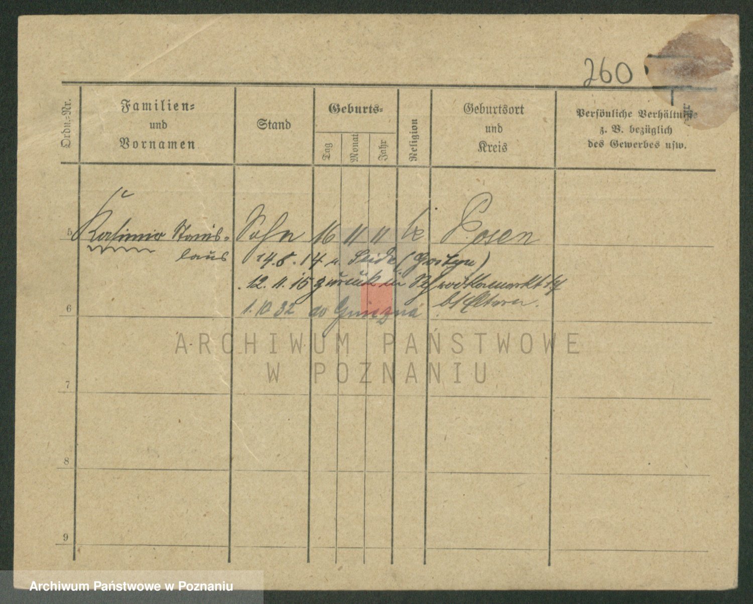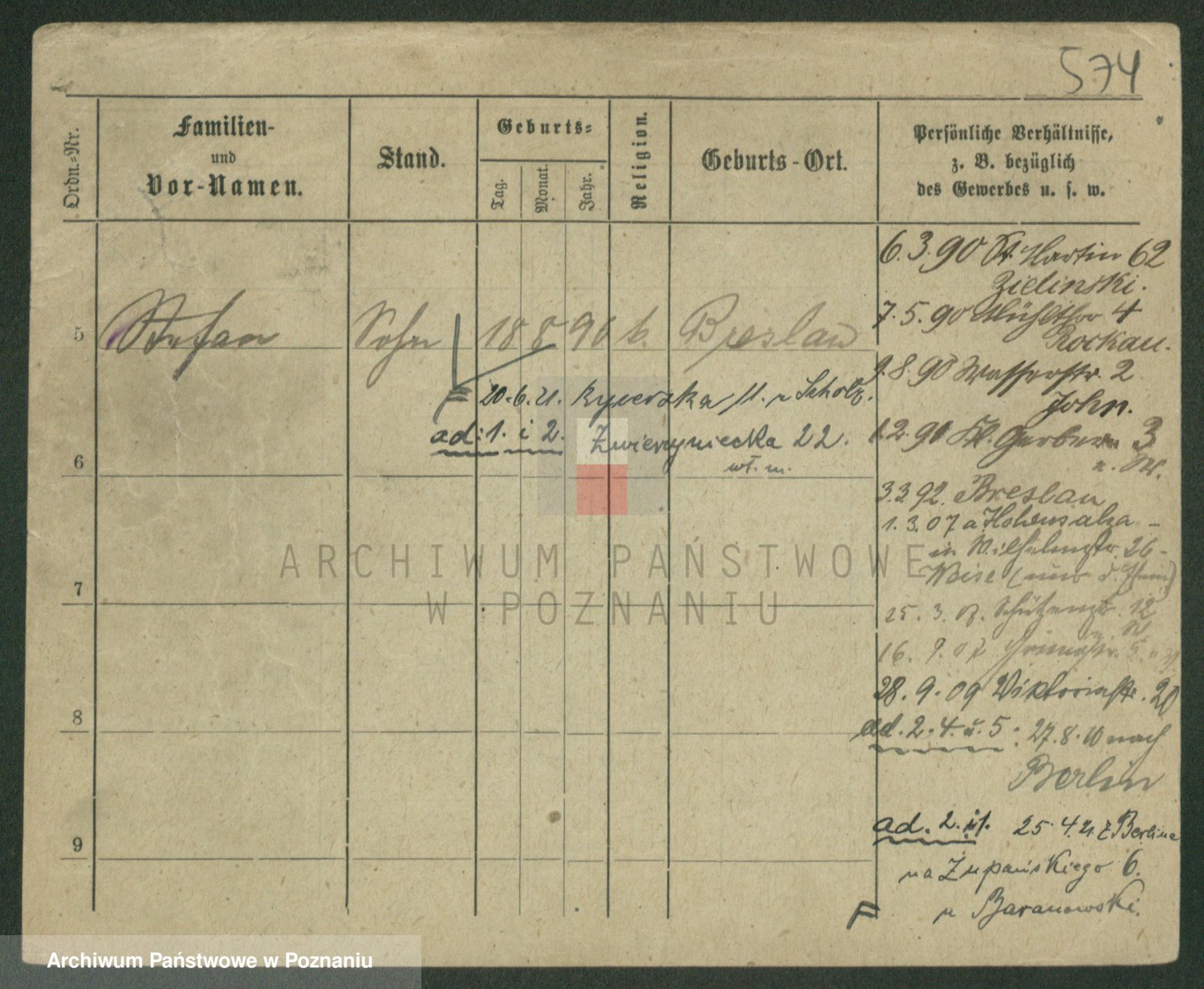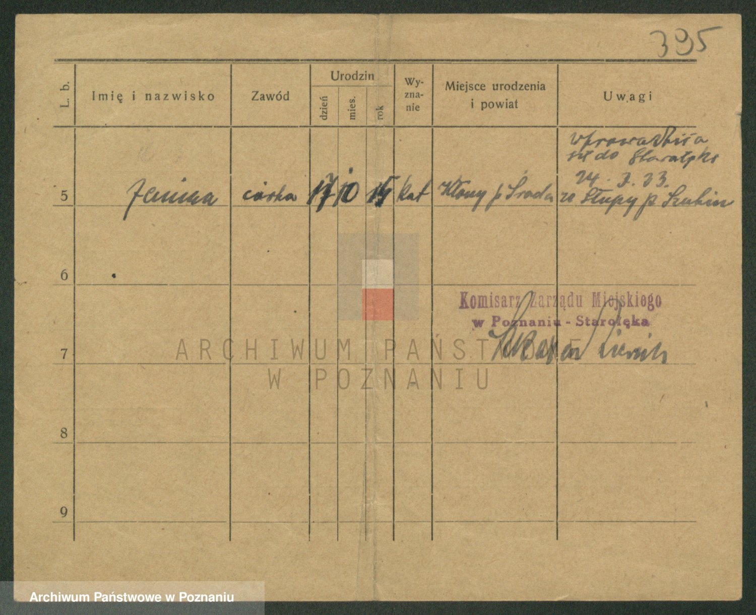 Podgląd karty osobowej dostępny jest po kliknięciu na nazwisko lub ikonkę karty. Można dokonywać powiększenia (ikony na górze) lub przechodzić między kolejnymi skanami (strzałki po bokach).
