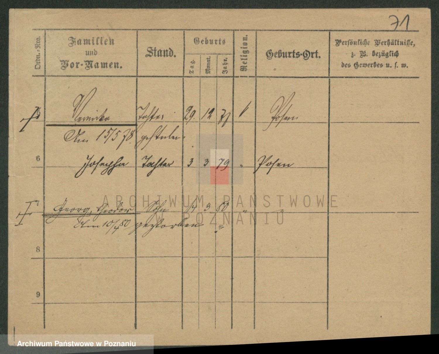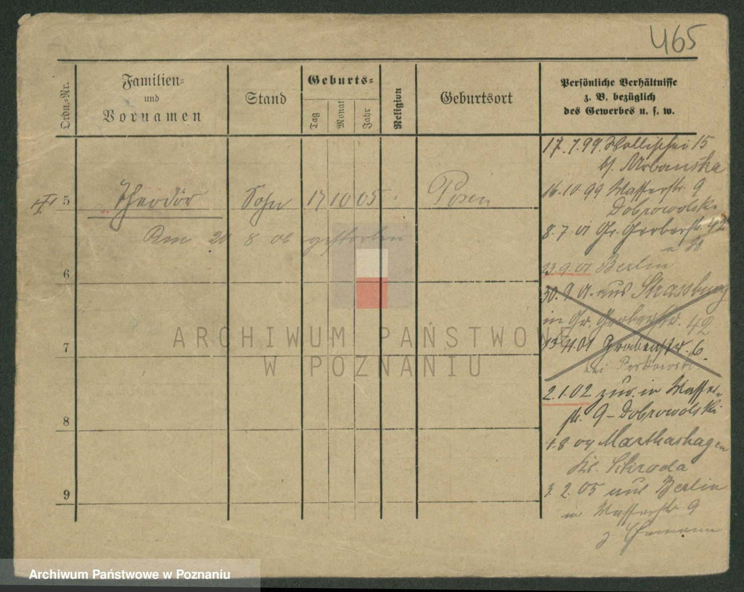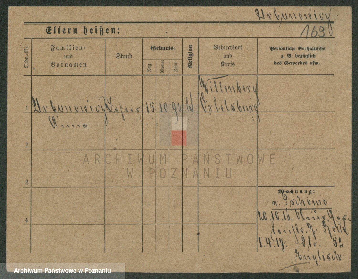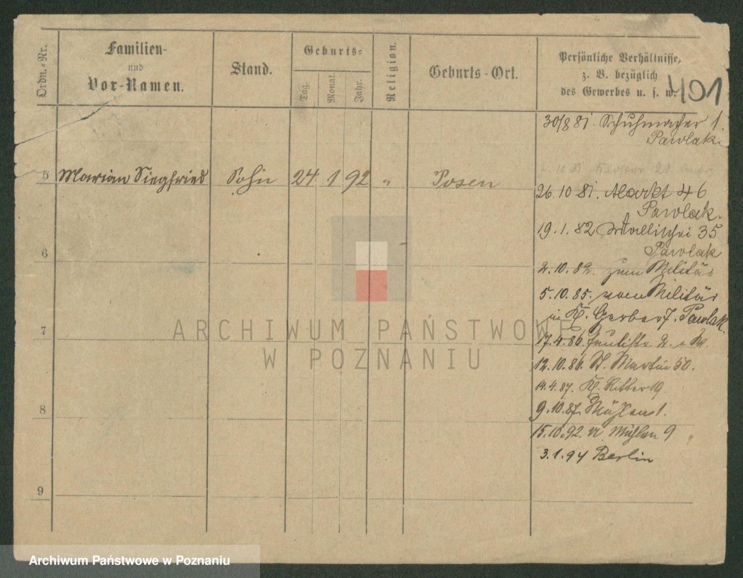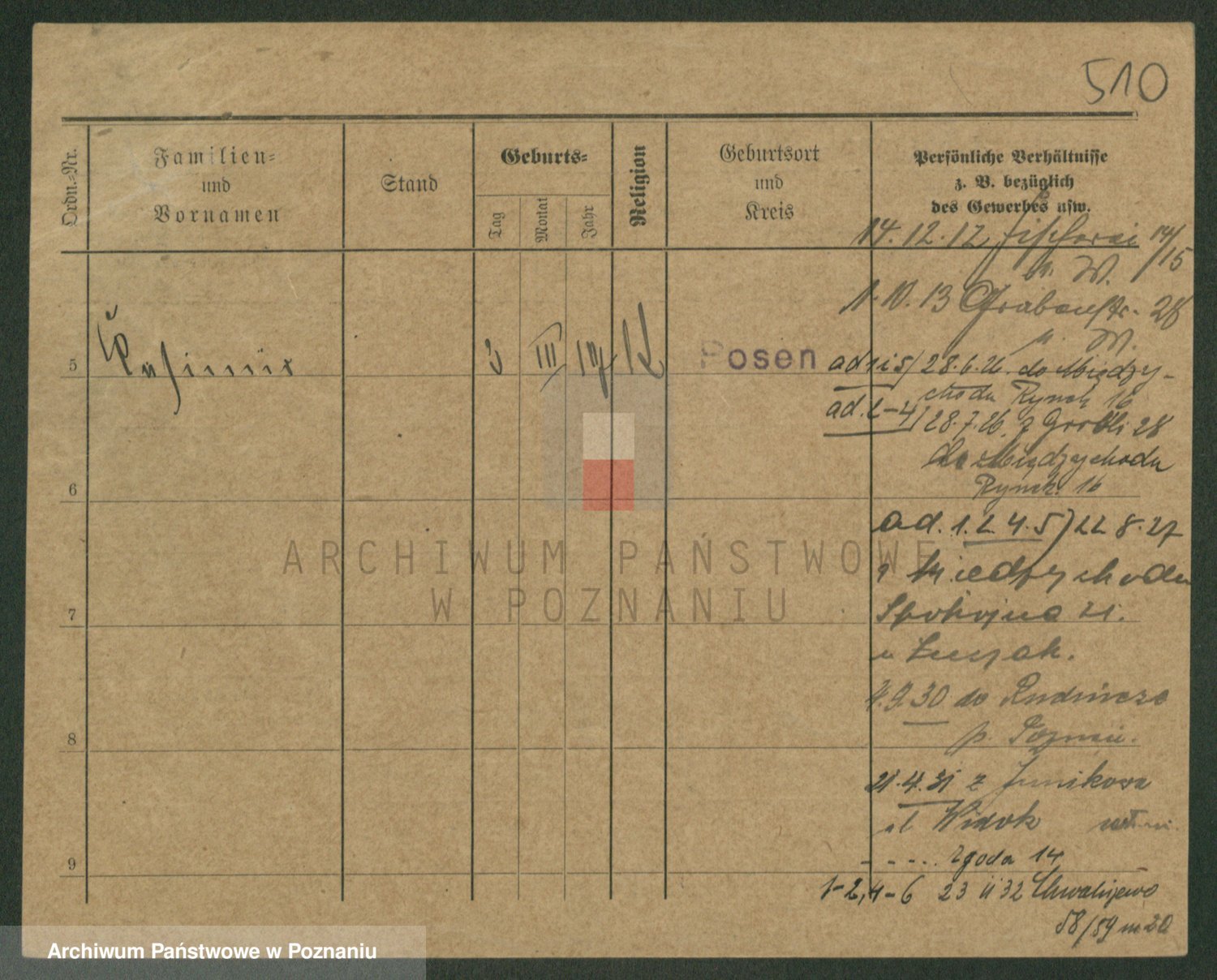 Podgląd karty osobowej dostępny jest po kliknięciu na nazwisko lub ikonkę karty. Można dokonywać powiększenia (ikony na górze) lub przechodzić między kolejnymi skanami (strzałki po bokach).