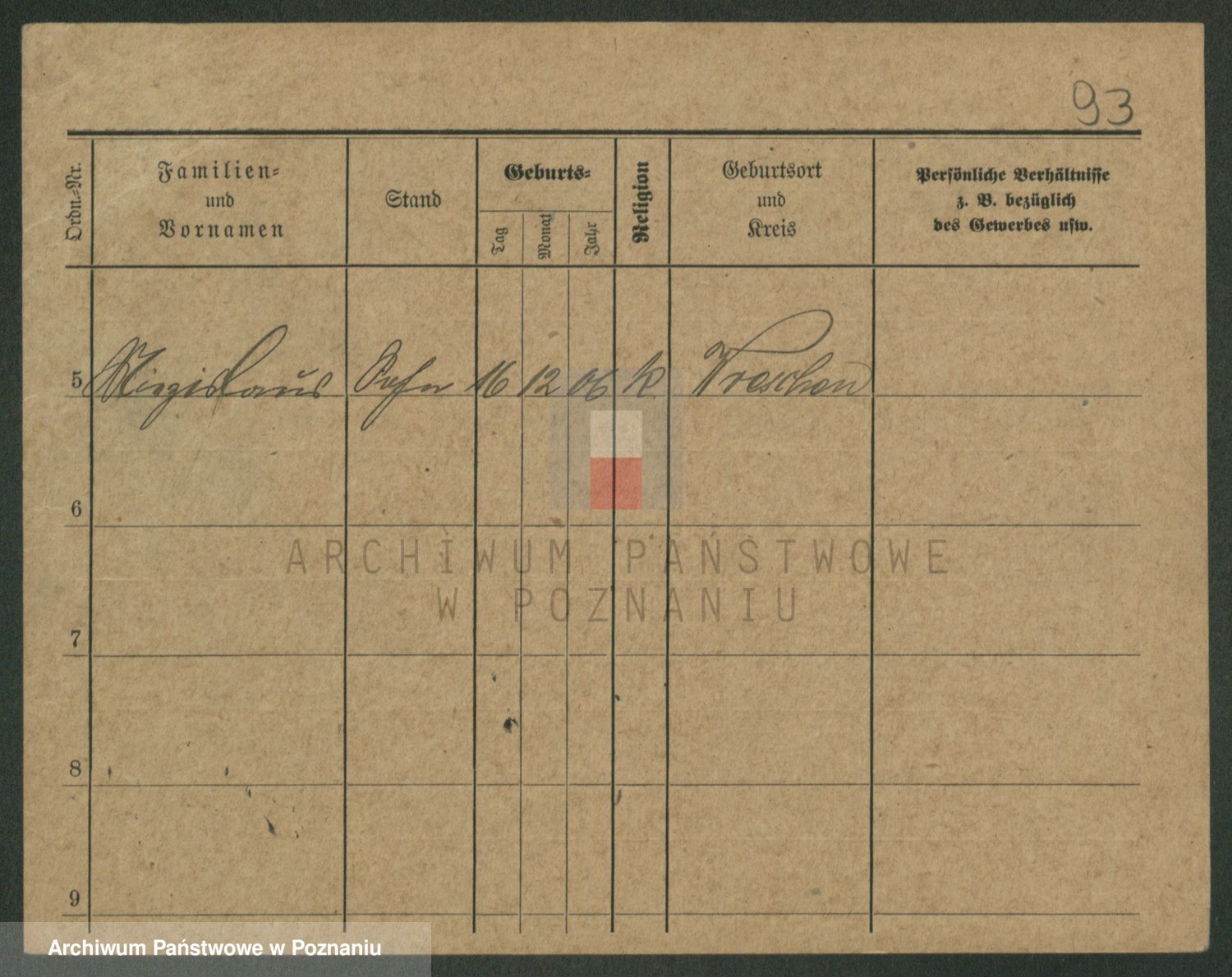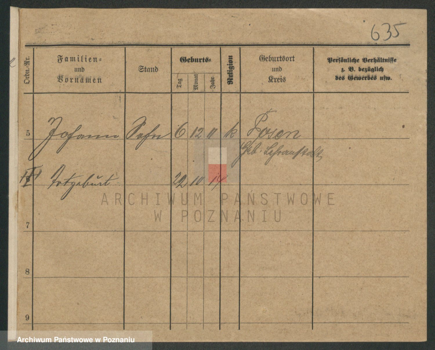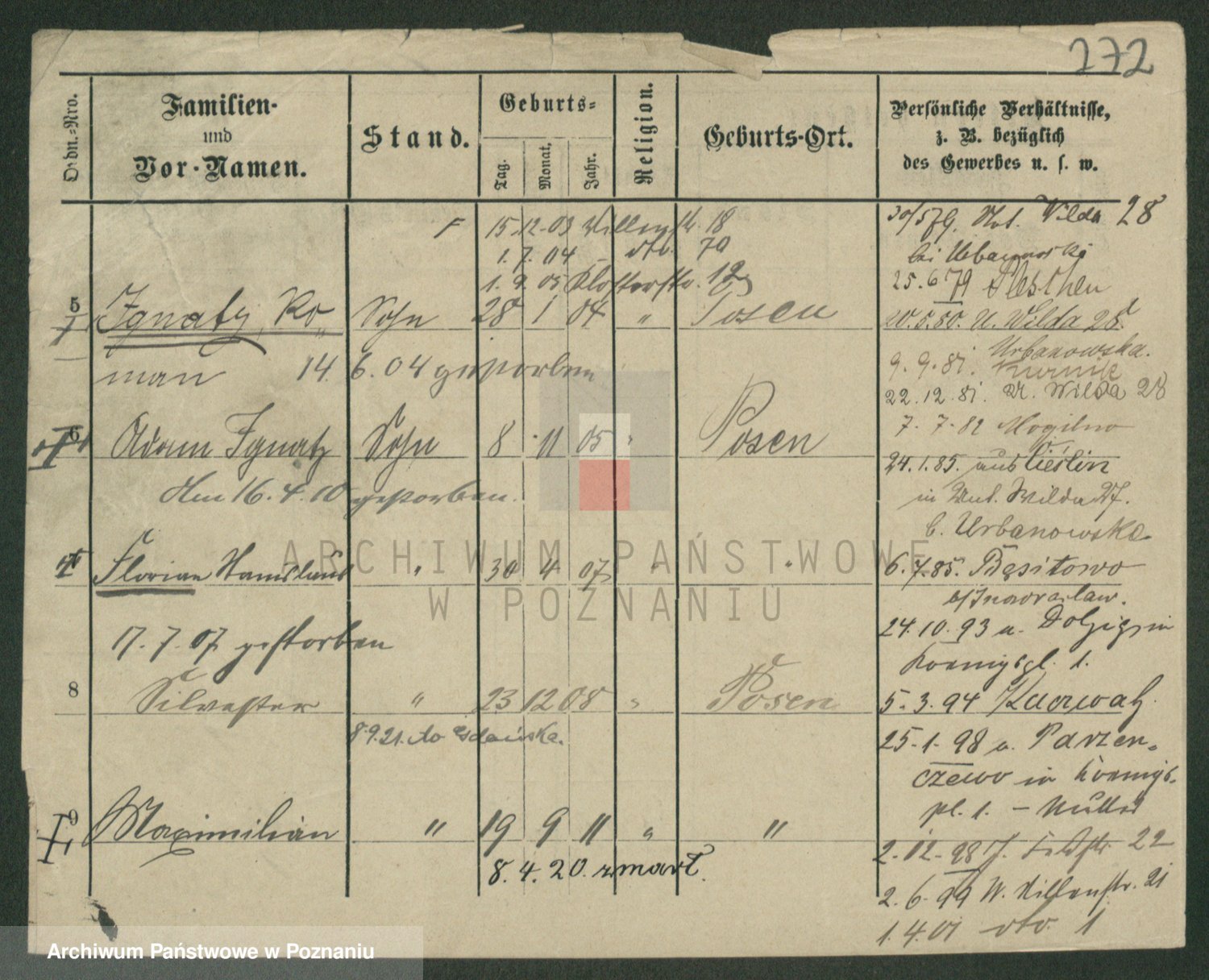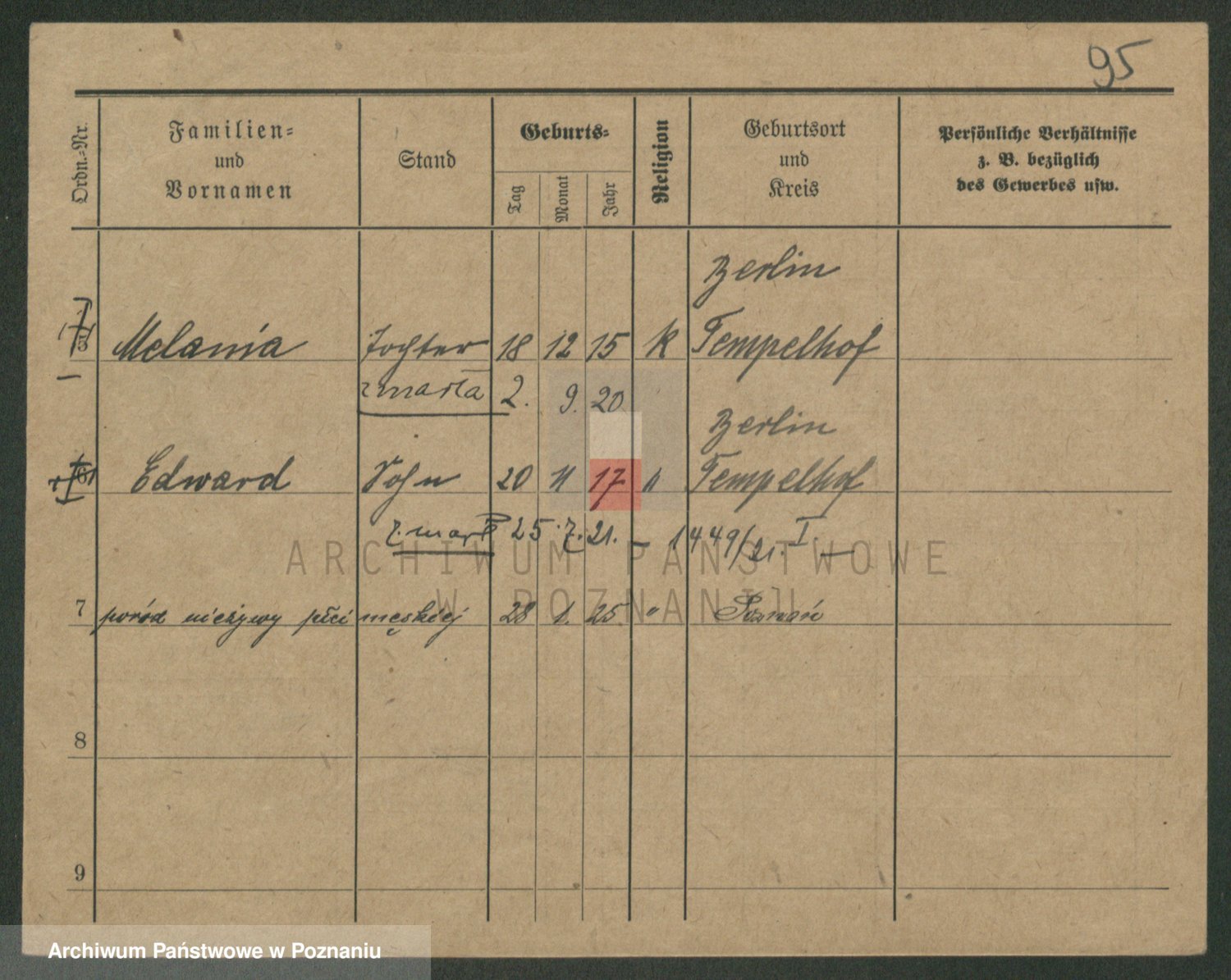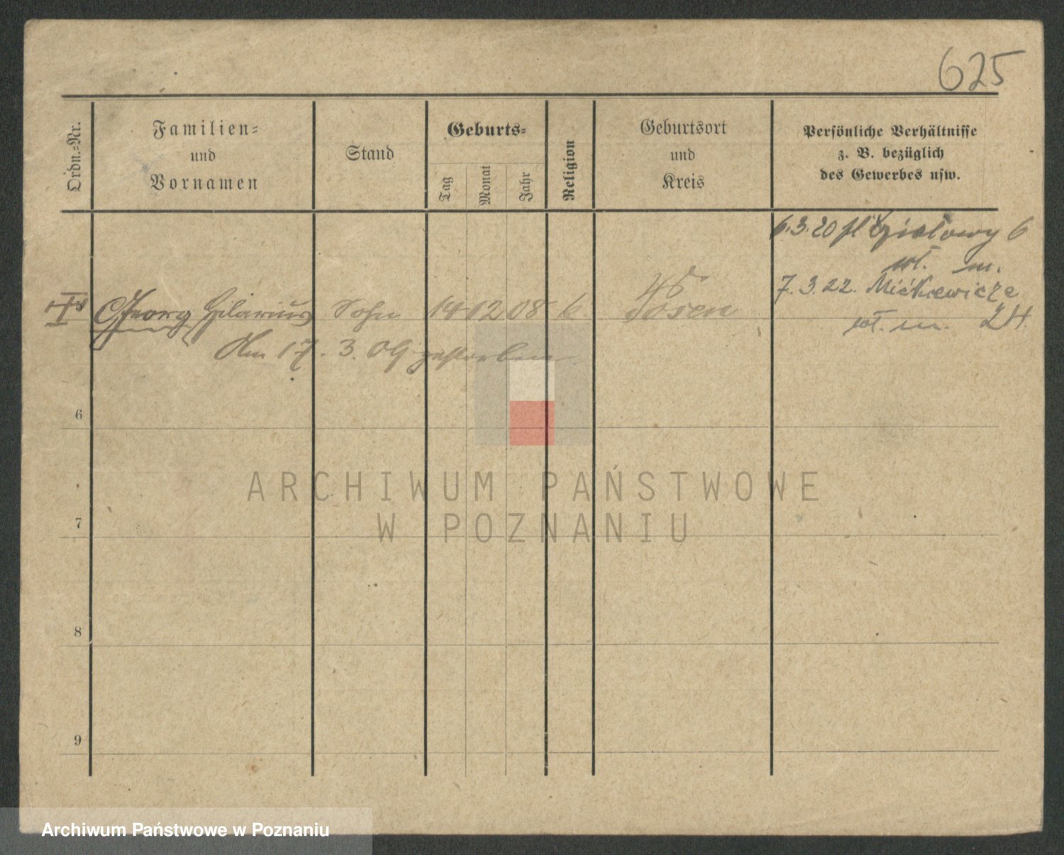 Podgląd karty osobowej dostępny jest po kliknięciu na nazwisko lub ikonkę karty. Można dokonywać powiększenia (ikony na górze) lub przechodzić między kolejnymi skanami (strzałki po bokach).