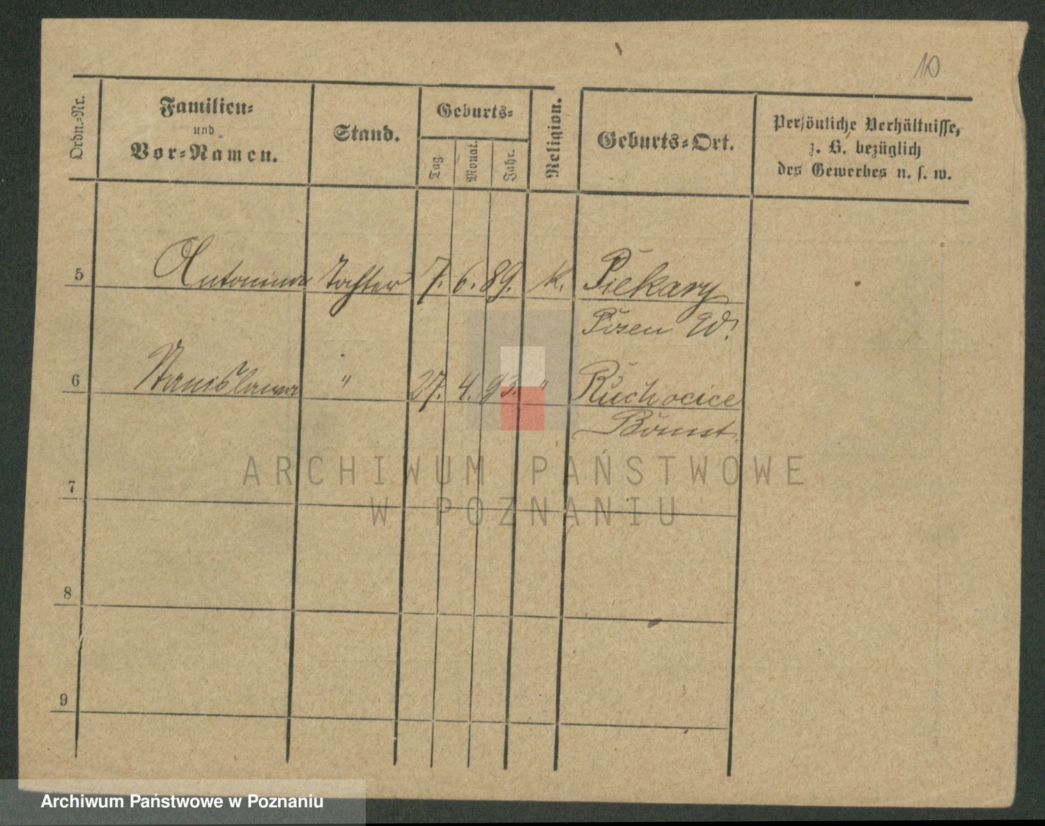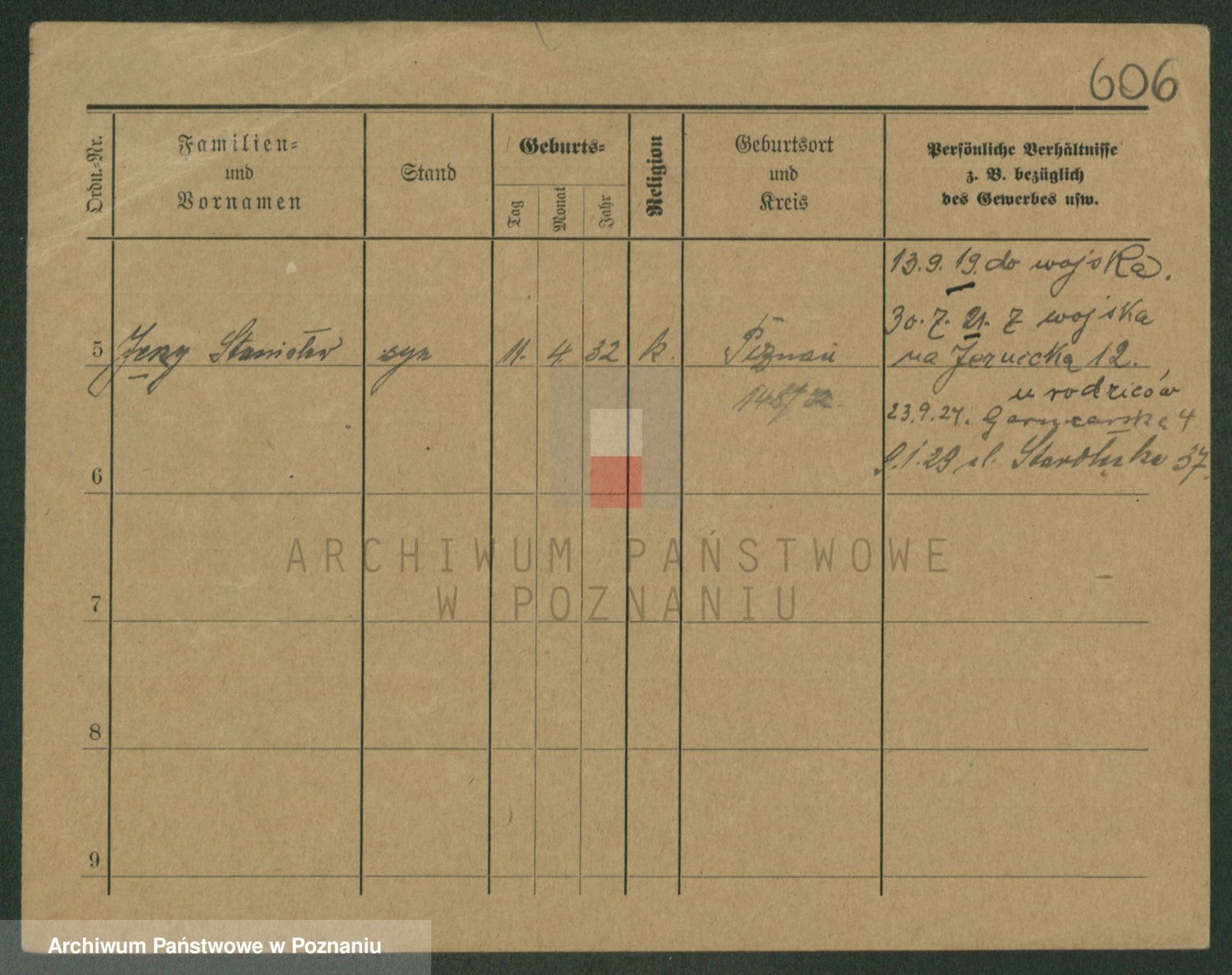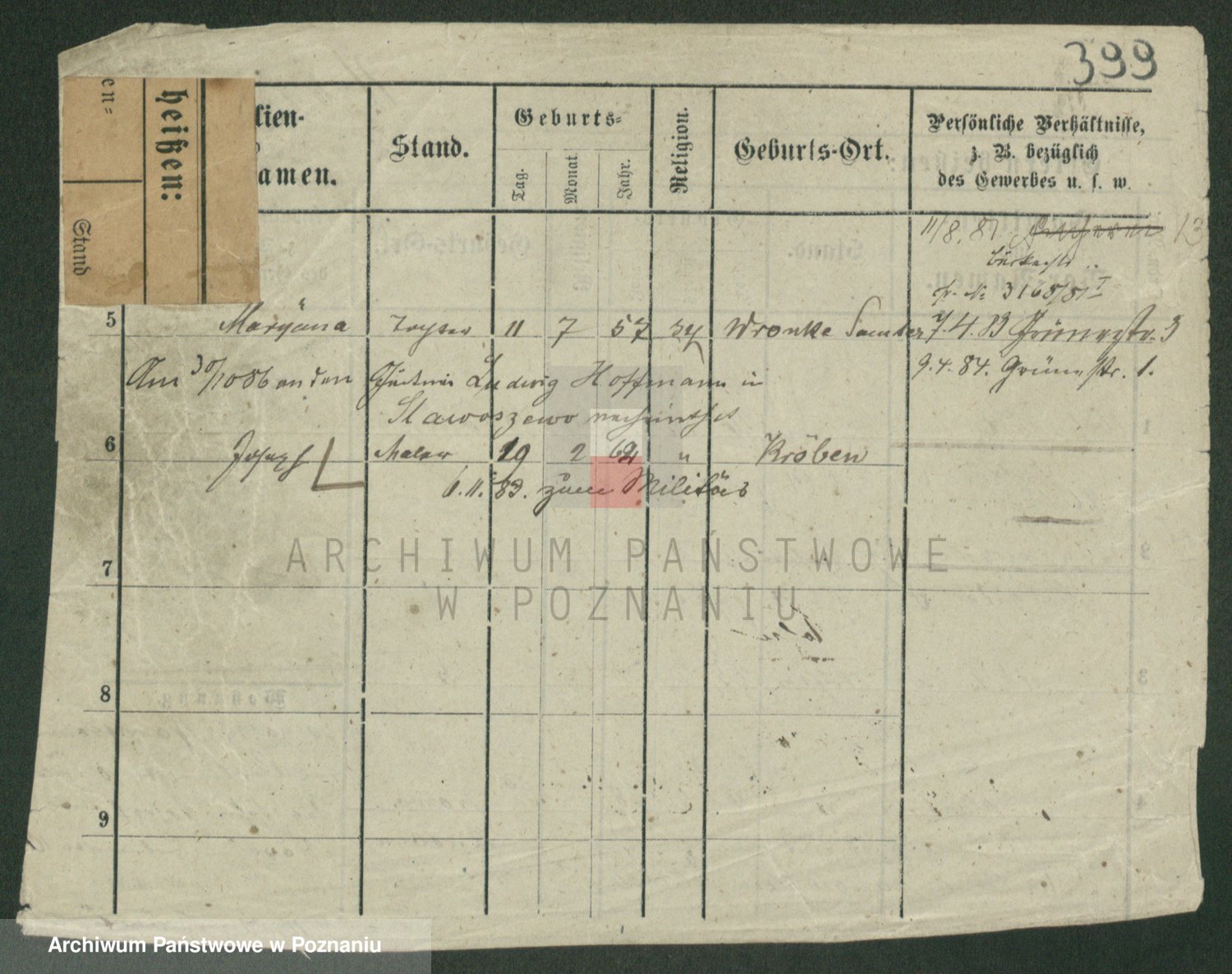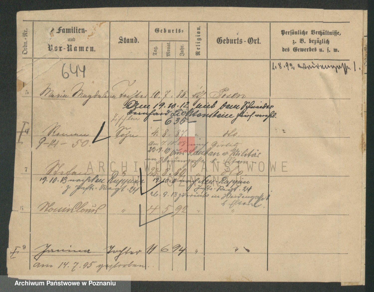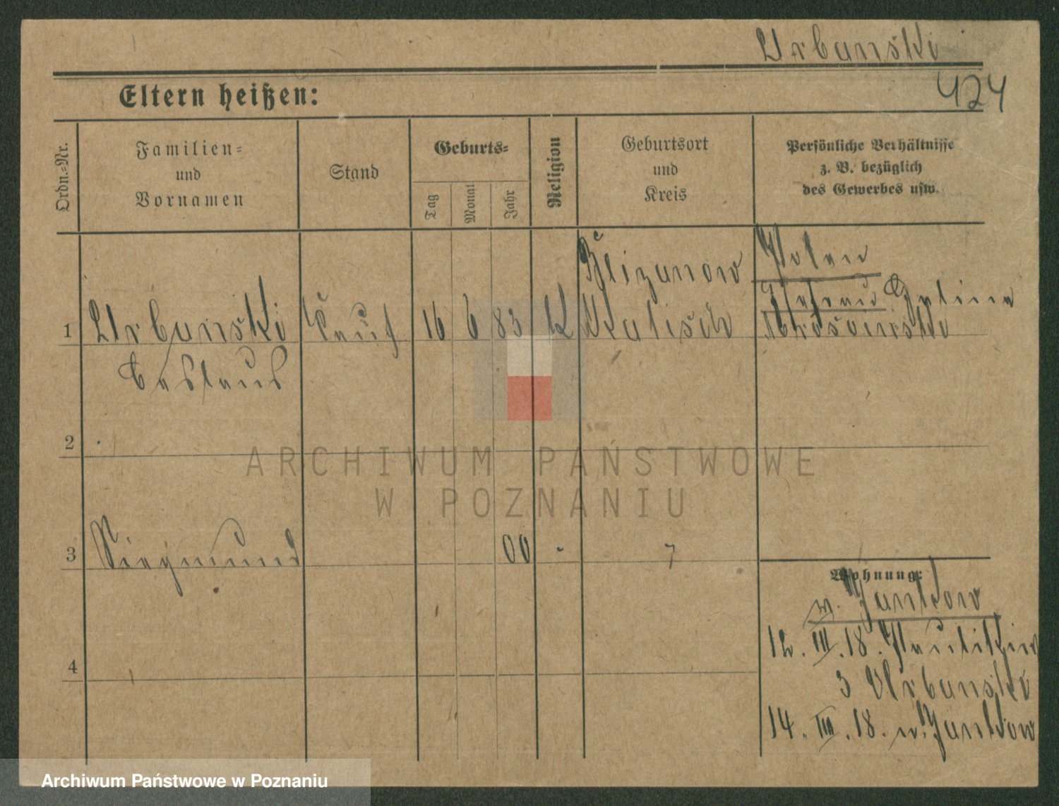 Podgląd karty osobowej dostępny jest po kliknięciu na nazwisko lub ikonkę karty. Można dokonywać powiększenia (ikony na górze) lub przechodzić między kolejnymi skanami (strzałki po bokach).