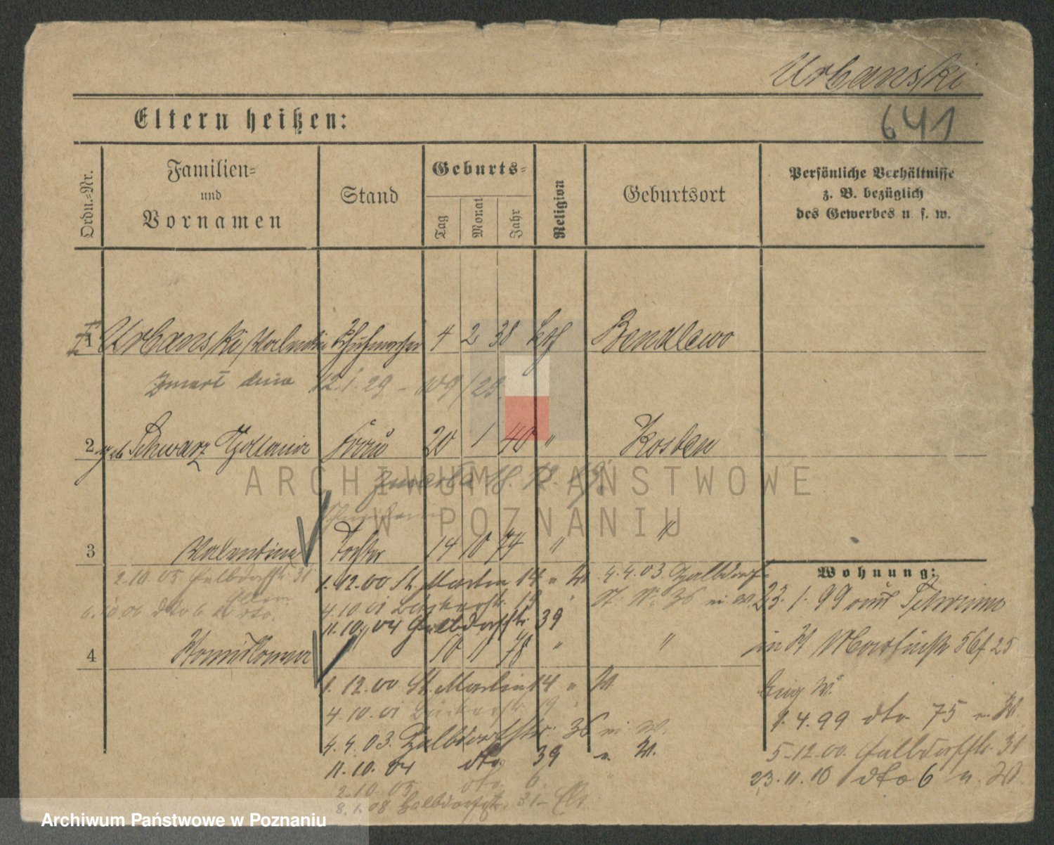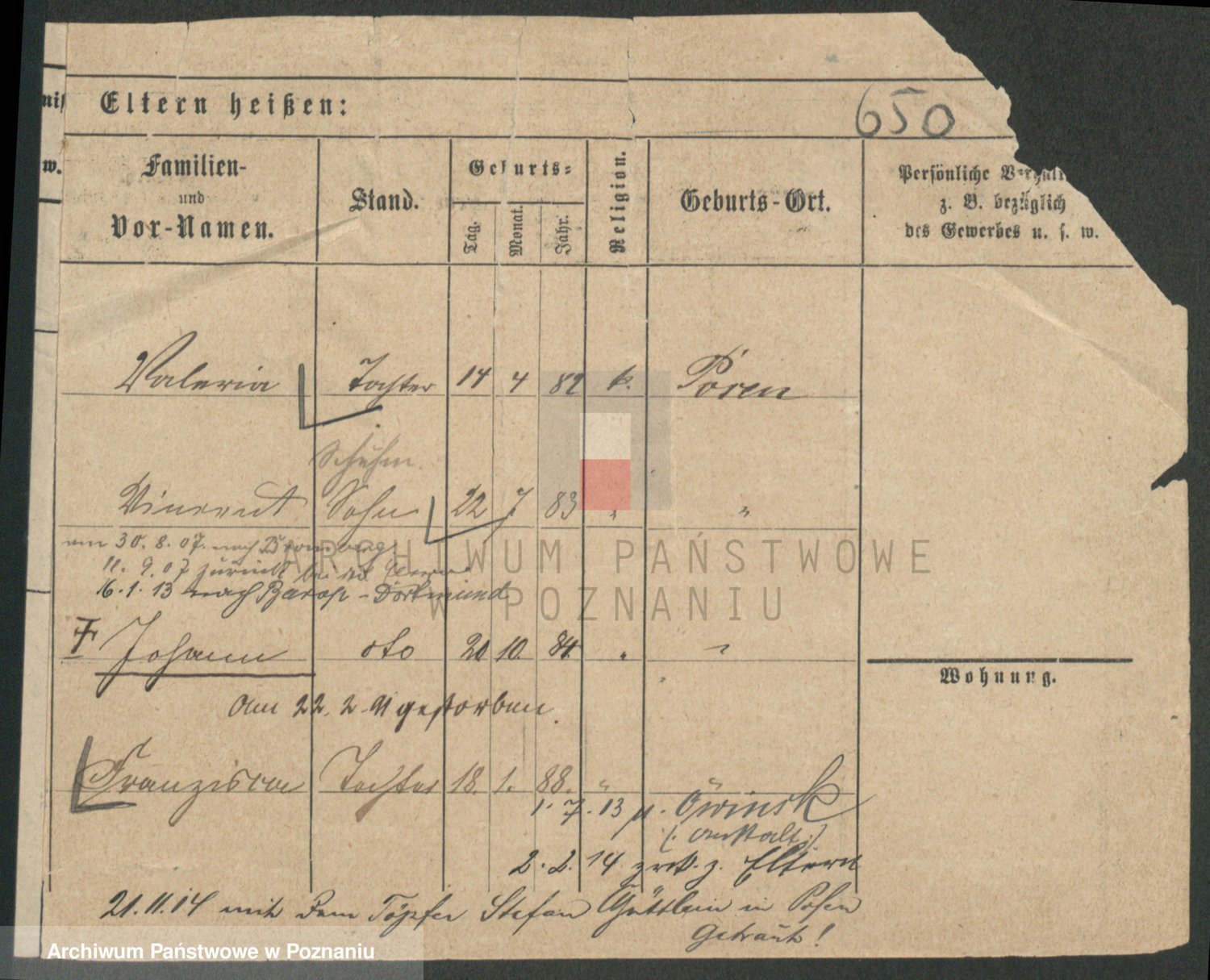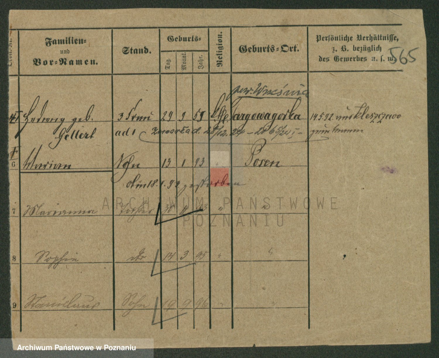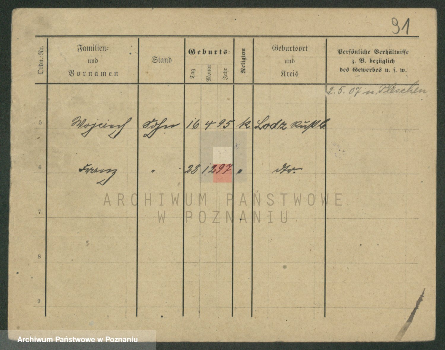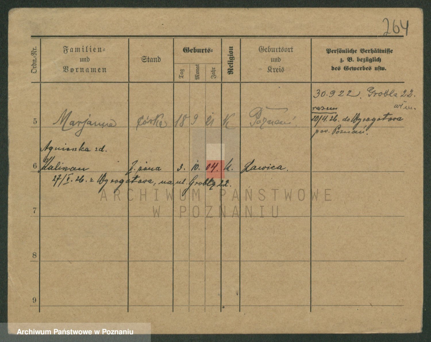 Podgląd karty osobowej dostępny jest po kliknięciu na nazwisko lub ikonkę karty. Można dokonywać powiększenia (ikony na górze) lub przechodzić między kolejnymi skanami (strzałki po bokach).