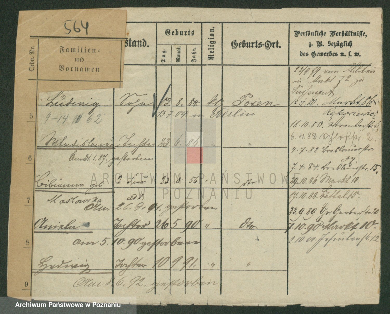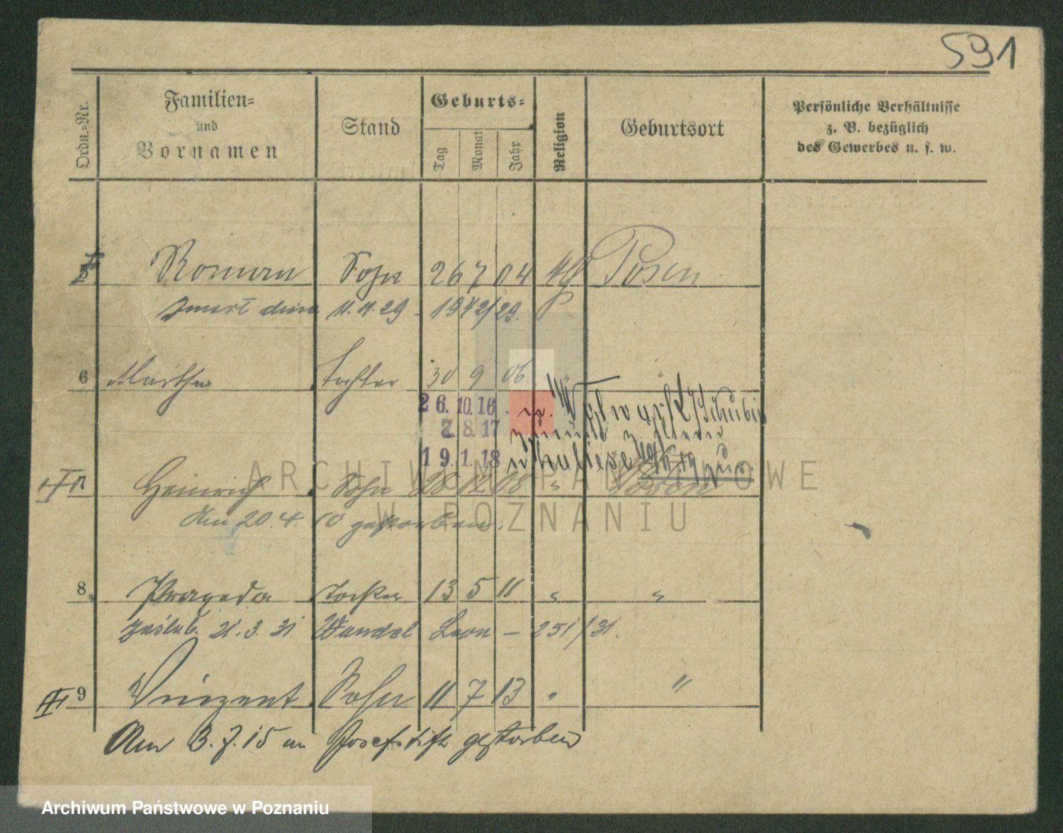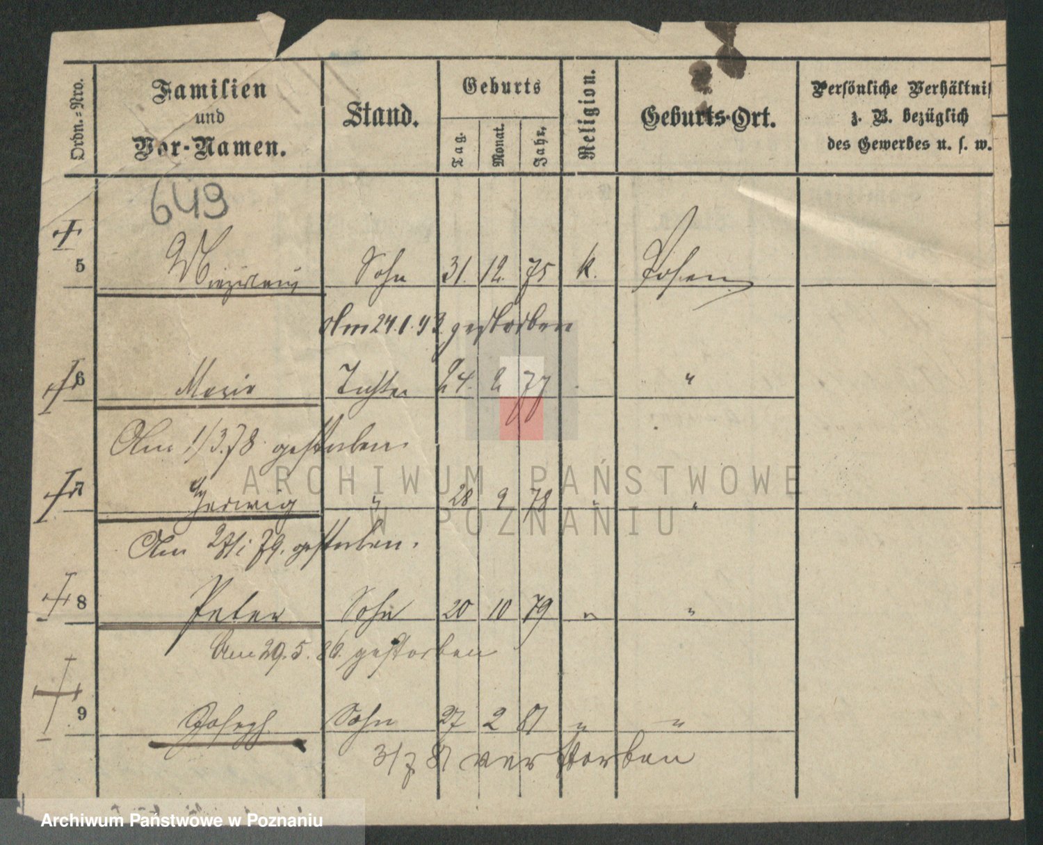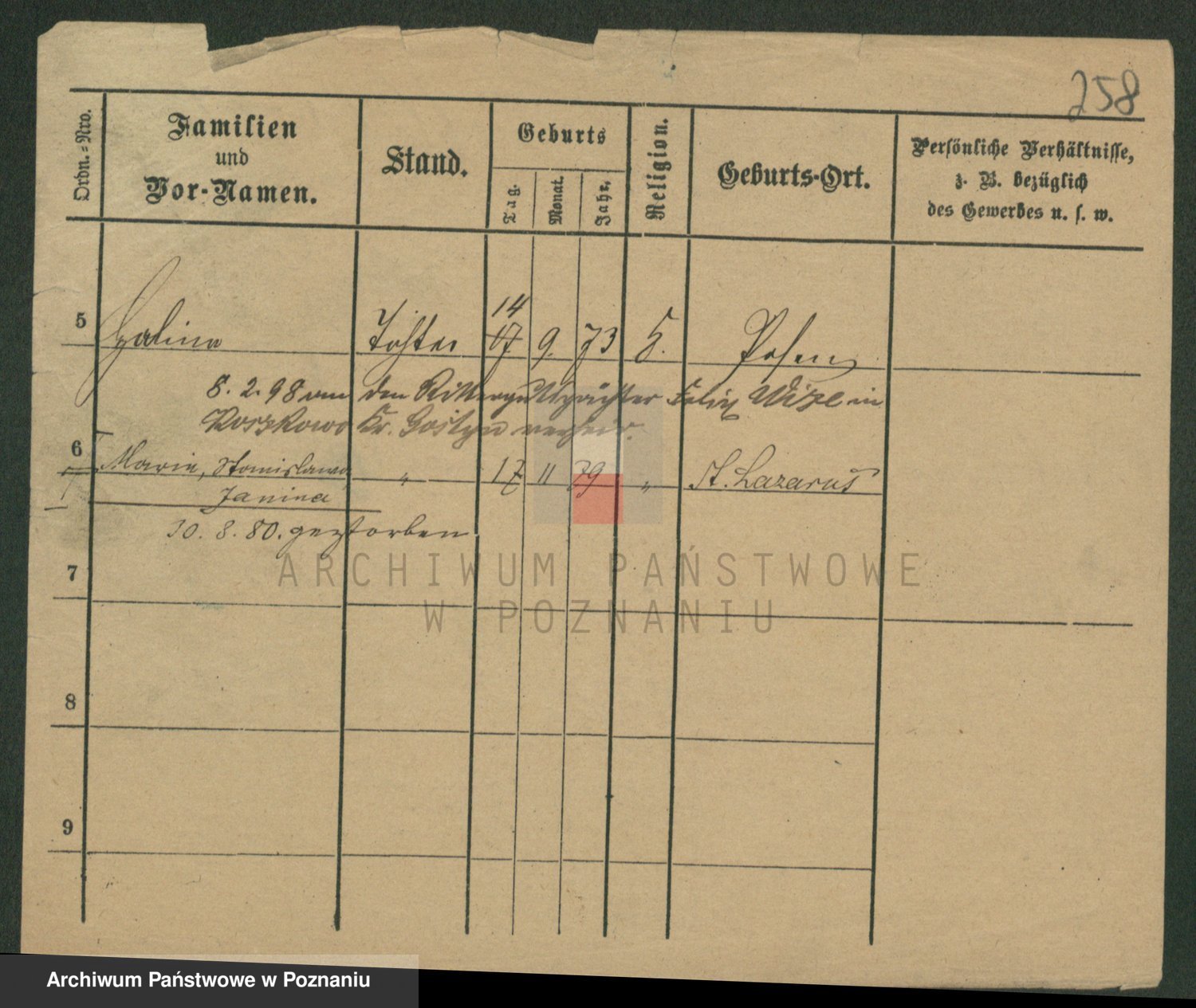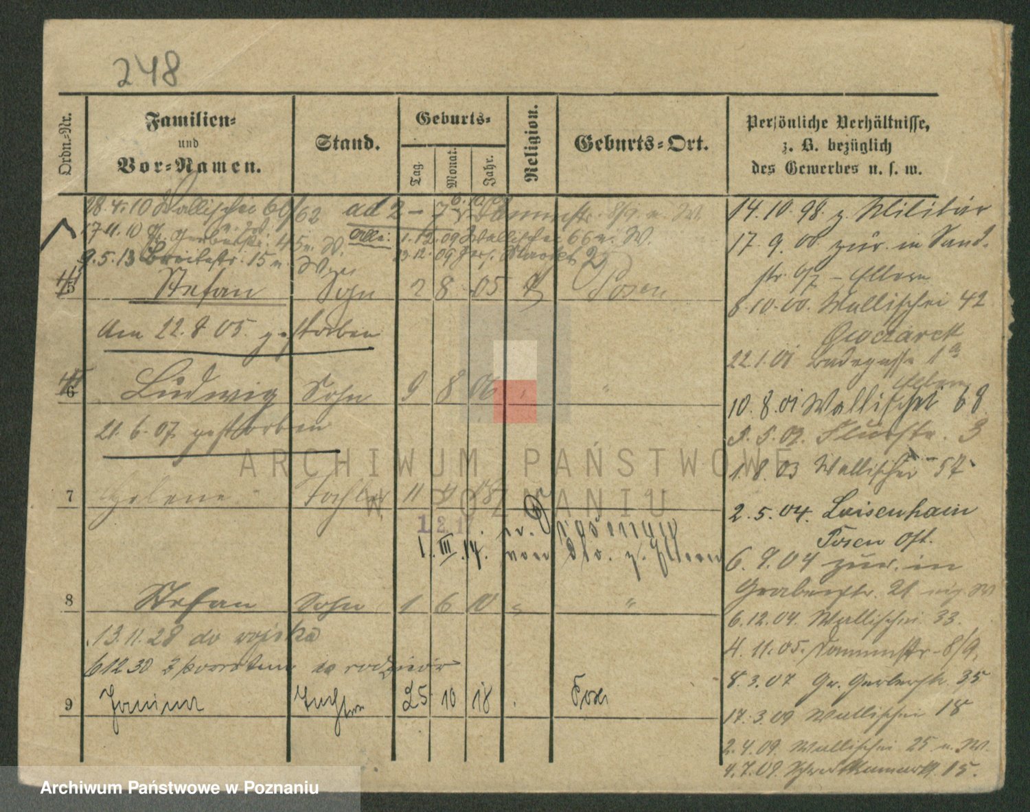 Podgląd karty osobowej dostępny jest po kliknięciu na nazwisko lub ikonkę karty. Można dokonywać powiększenia (ikony na górze) lub przechodzić między kolejnymi skanami (strzałki po bokach).