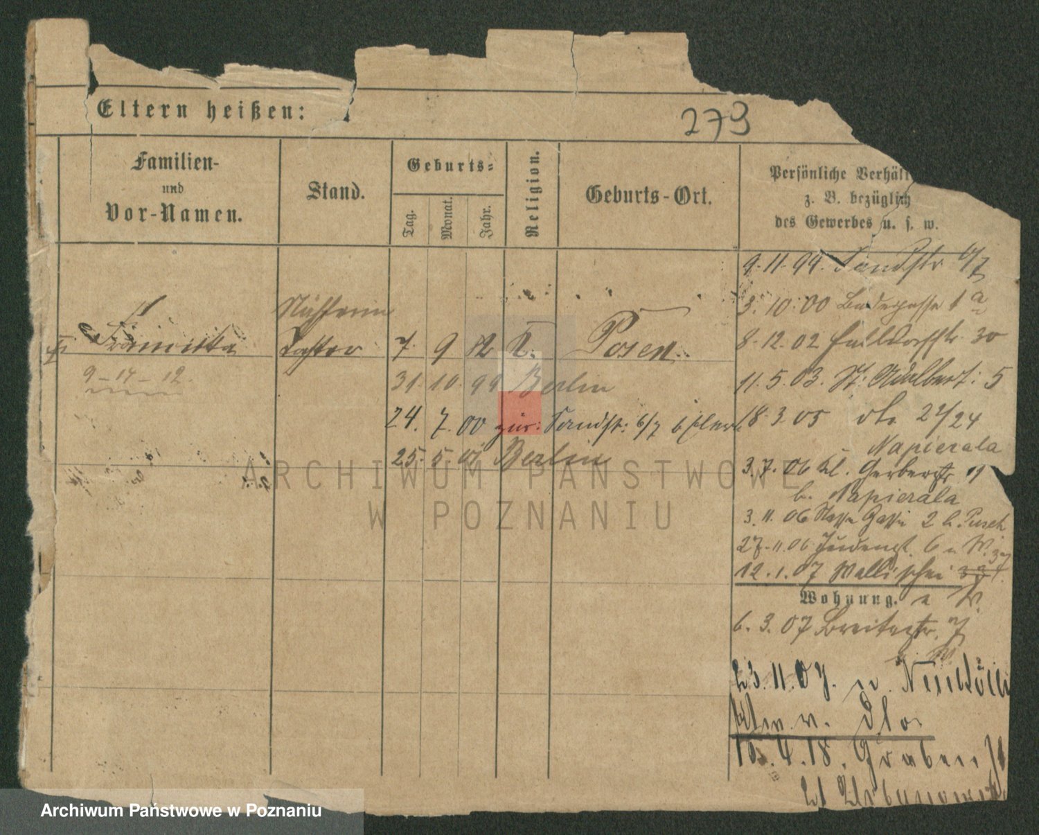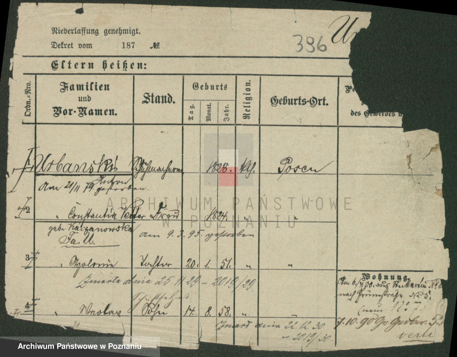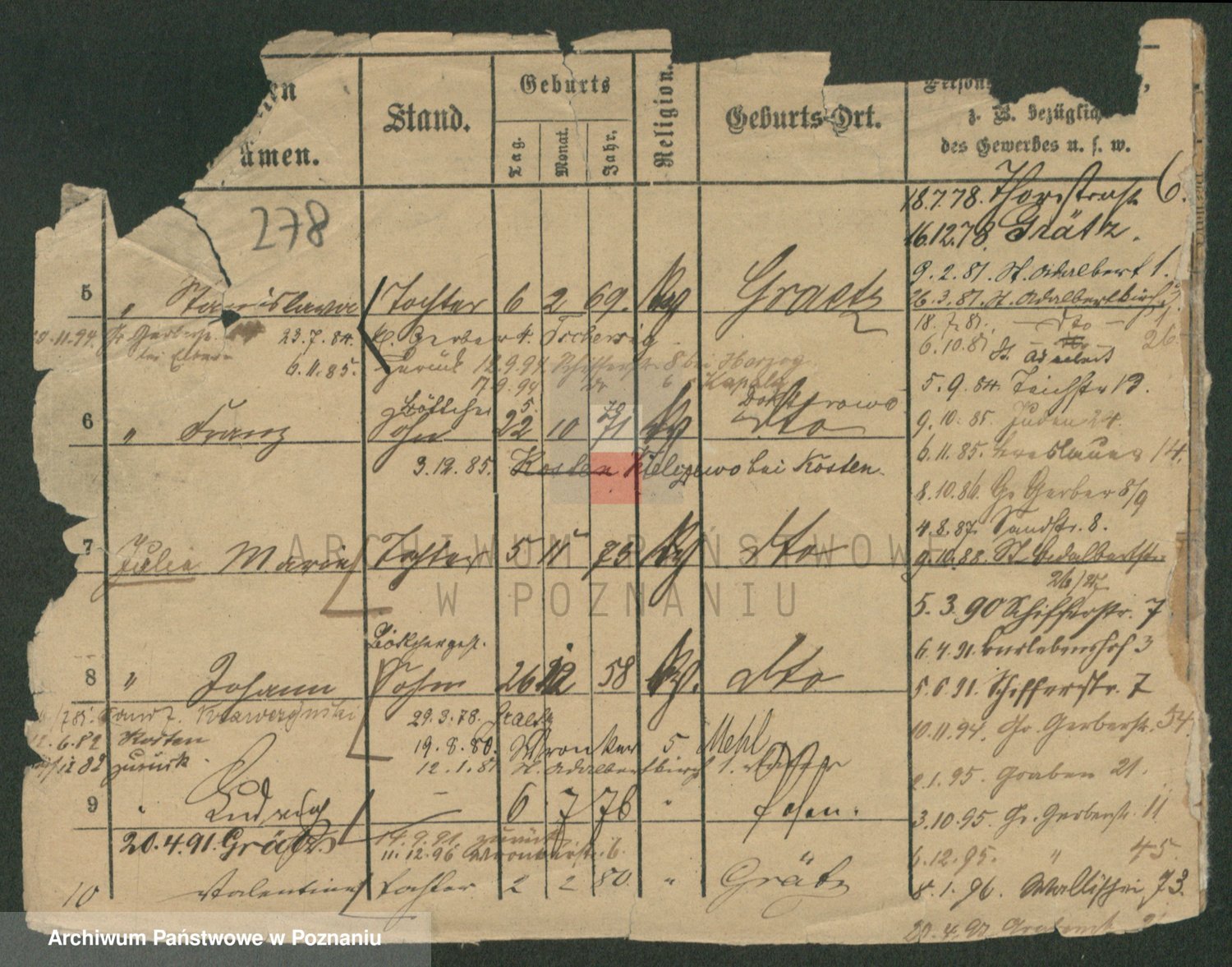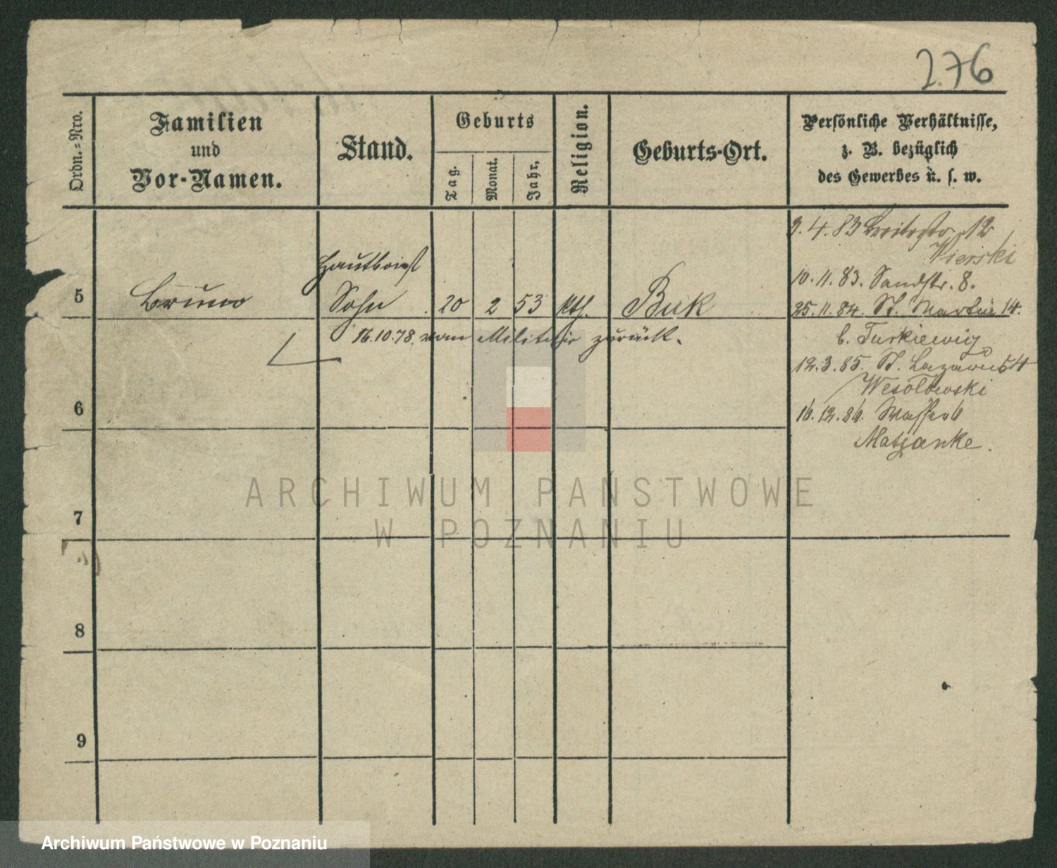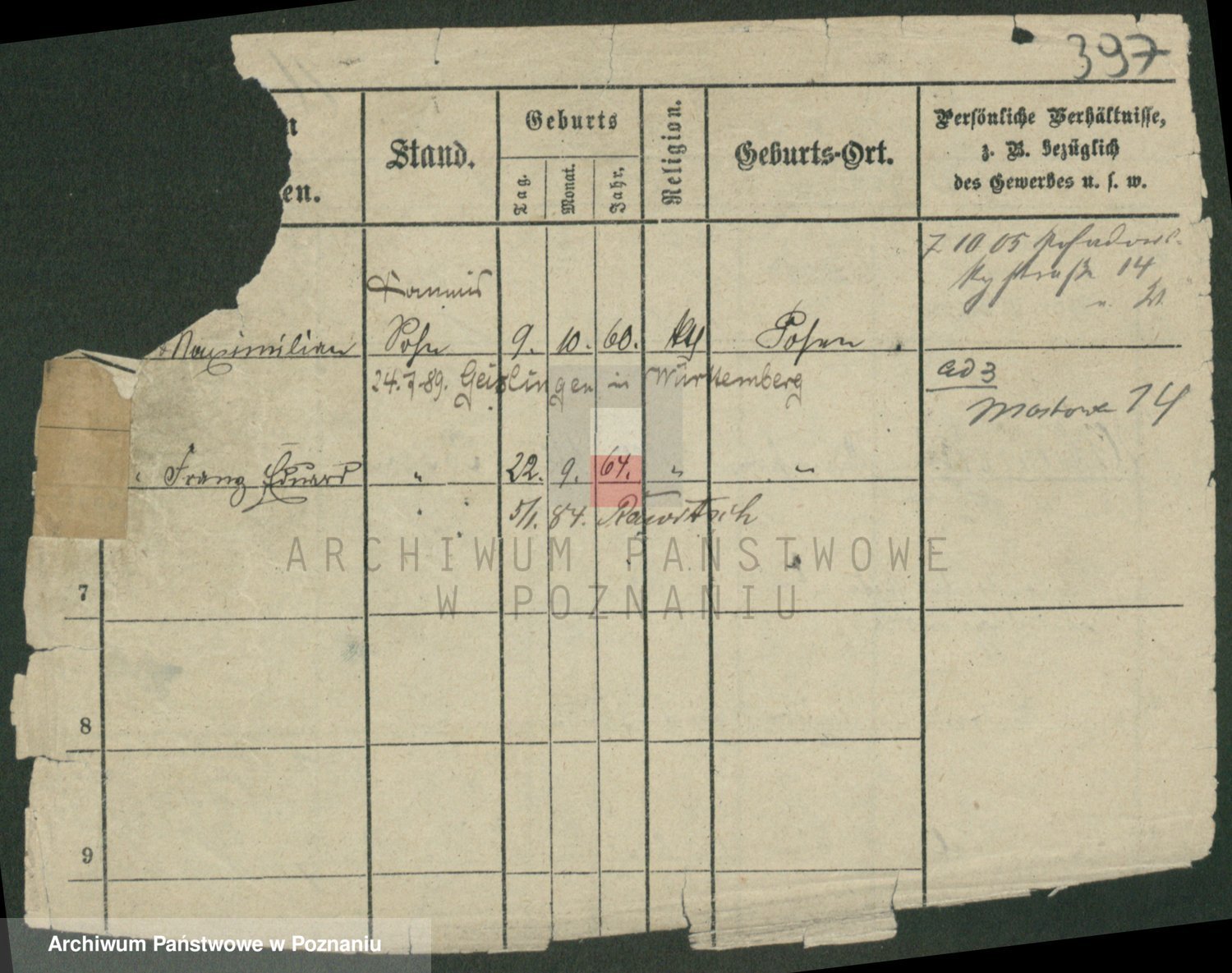 Podgląd karty osobowej dostępny jest po kliknięciu na nazwisko lub ikonkę karty. Można dokonywać powiększenia (ikony na górze) lub przechodzić między kolejnymi skanami (strzałki po bokach).
