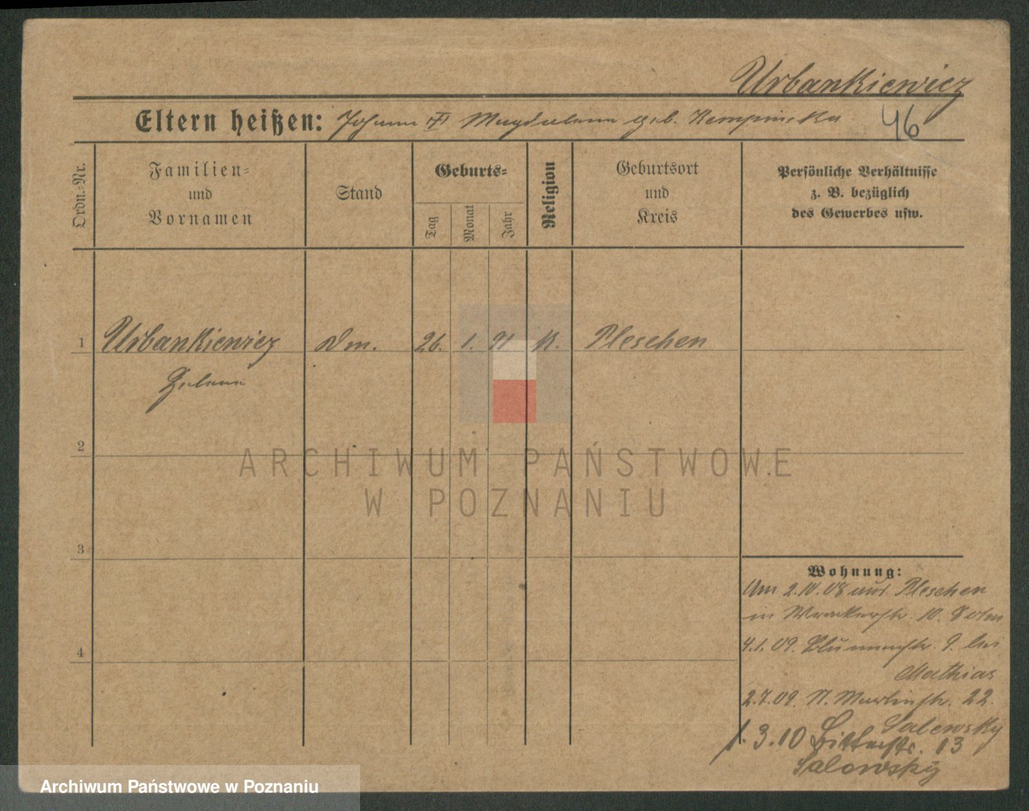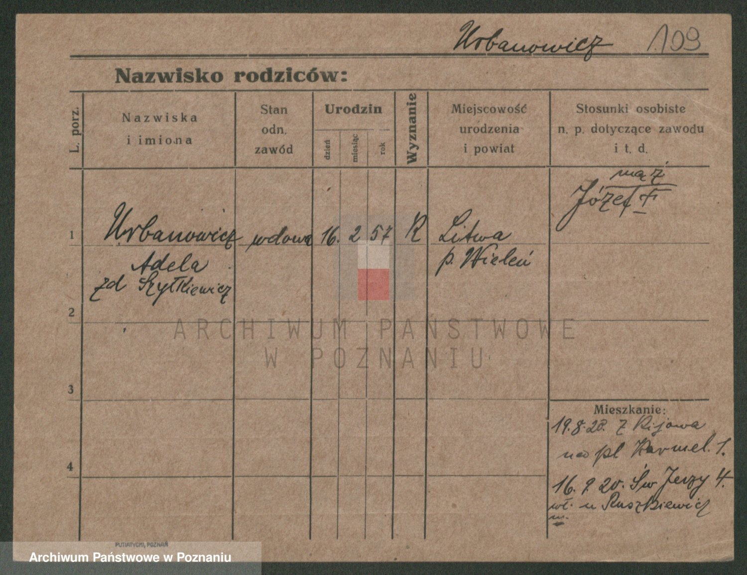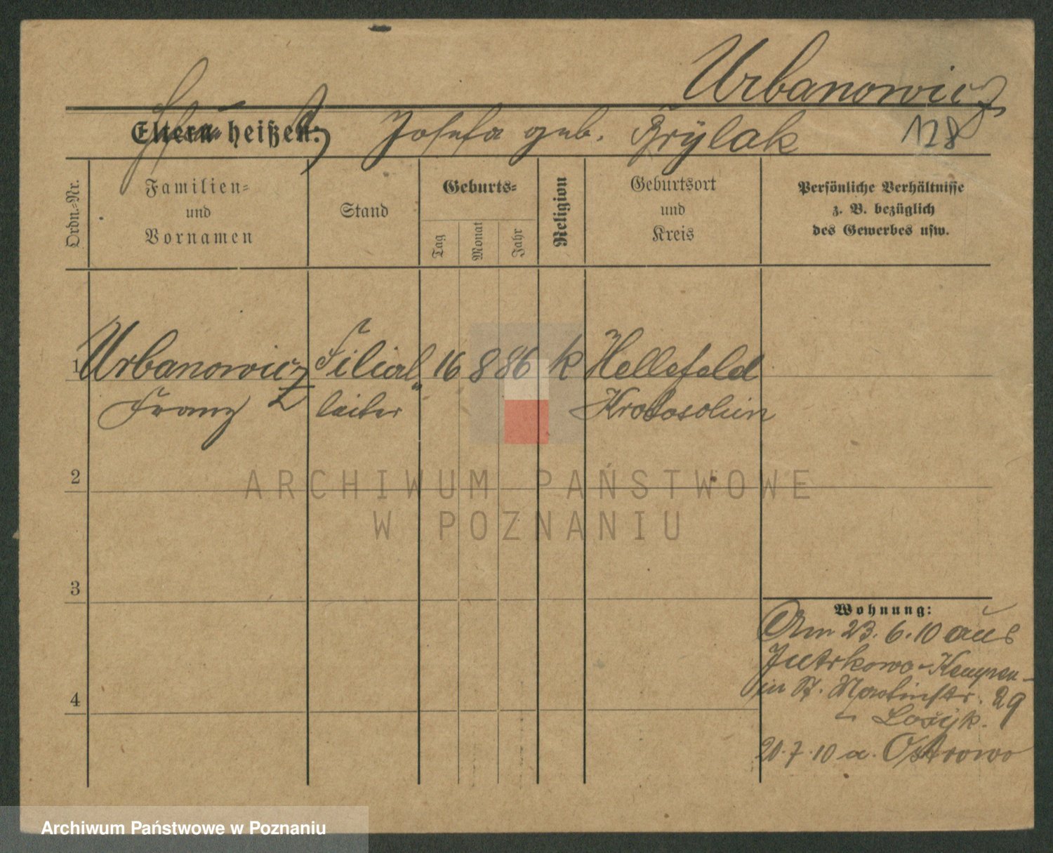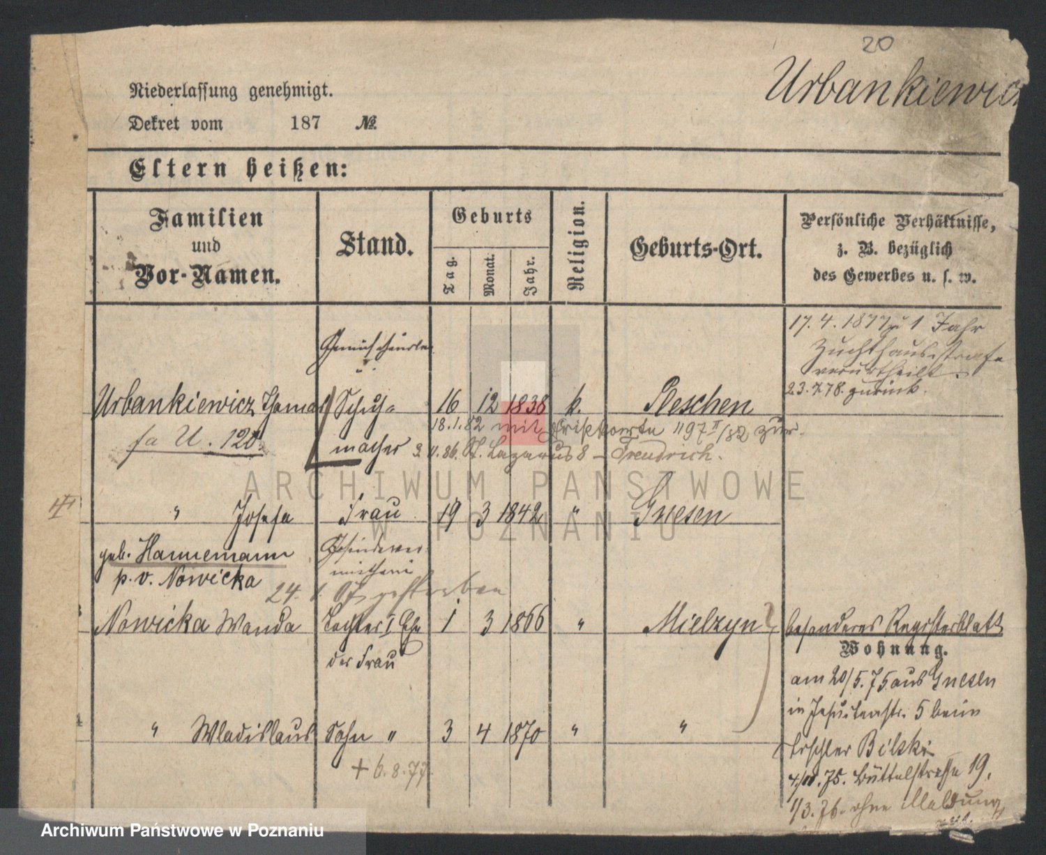 Urbankiewicz z d. Hannemann I voto Nowicka, Josefa