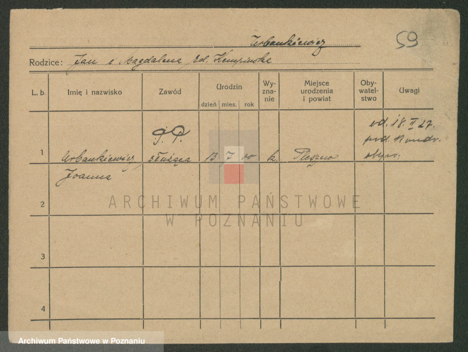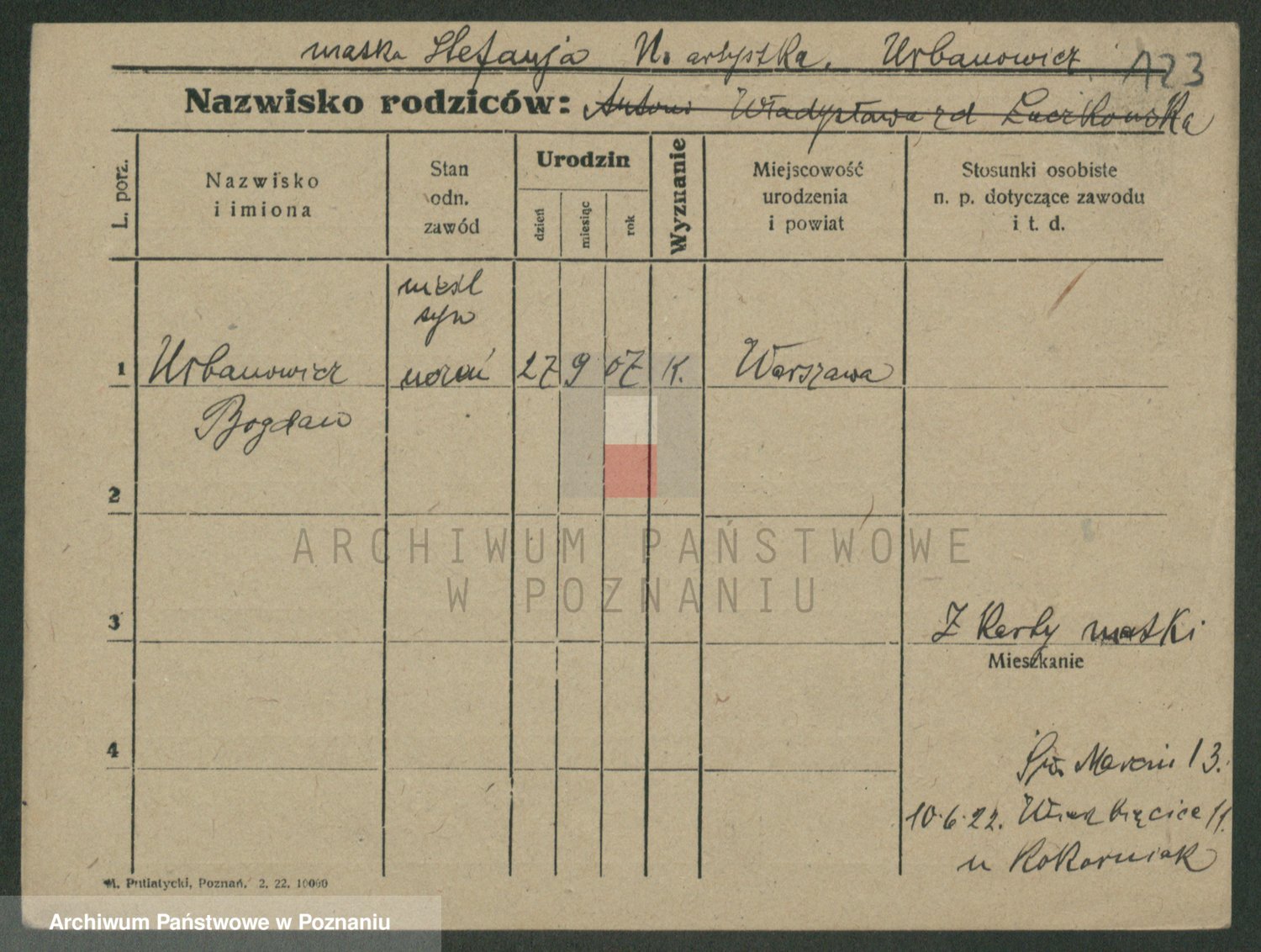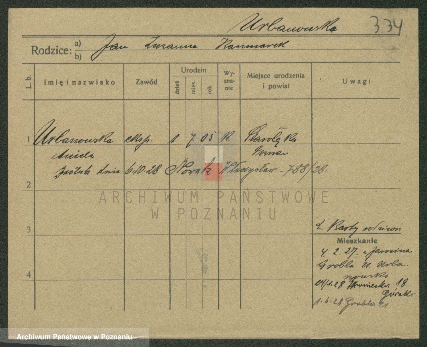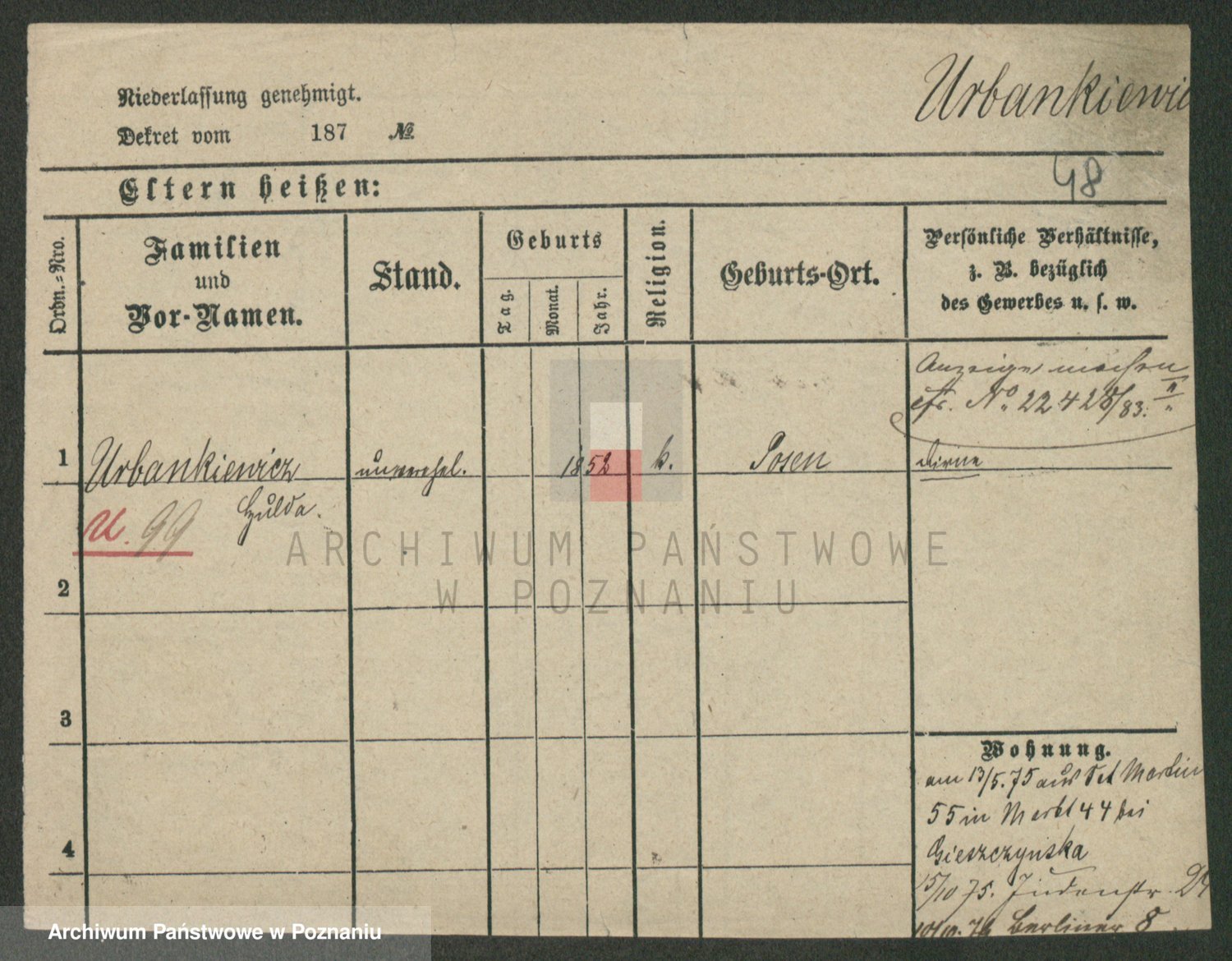 Urbankiewicz z d. Hannemann I voto Nowicka, Josefa