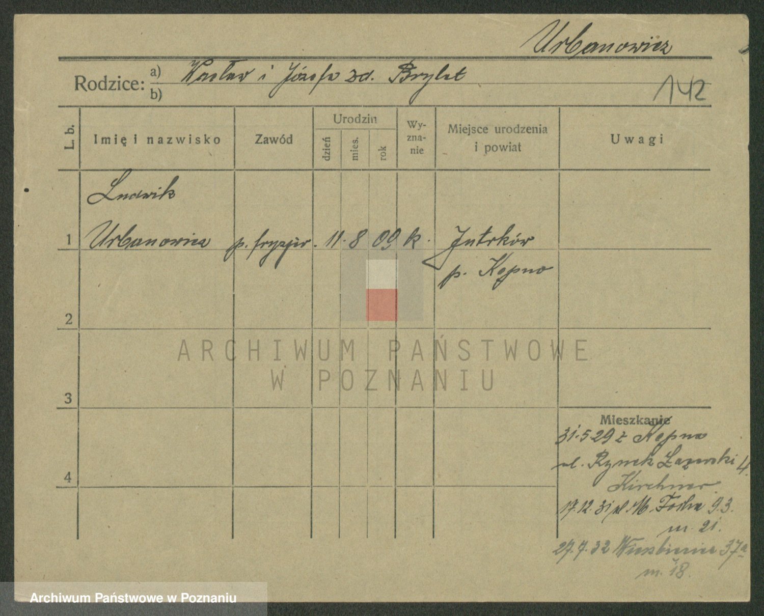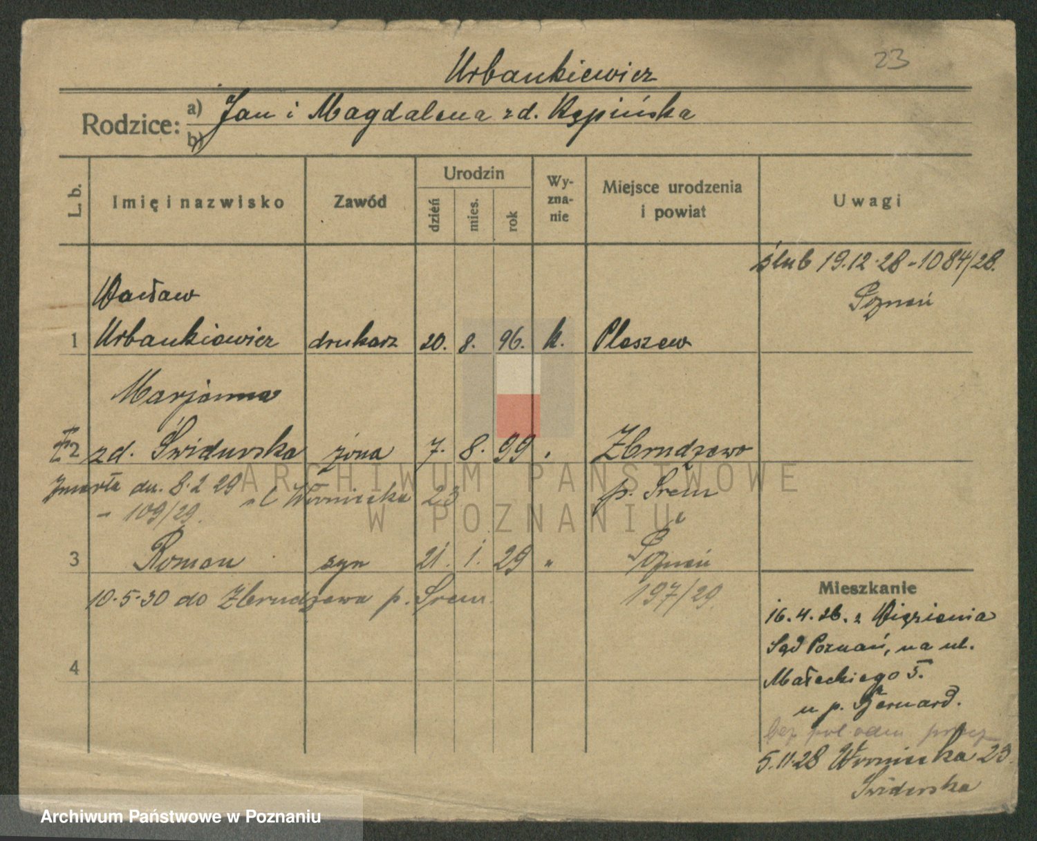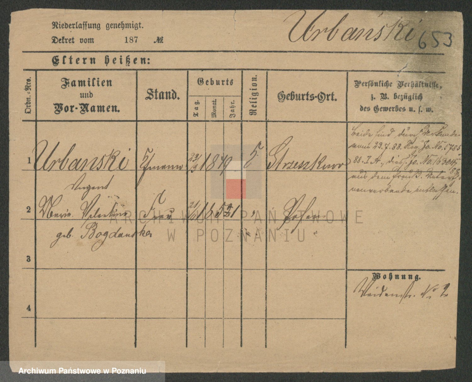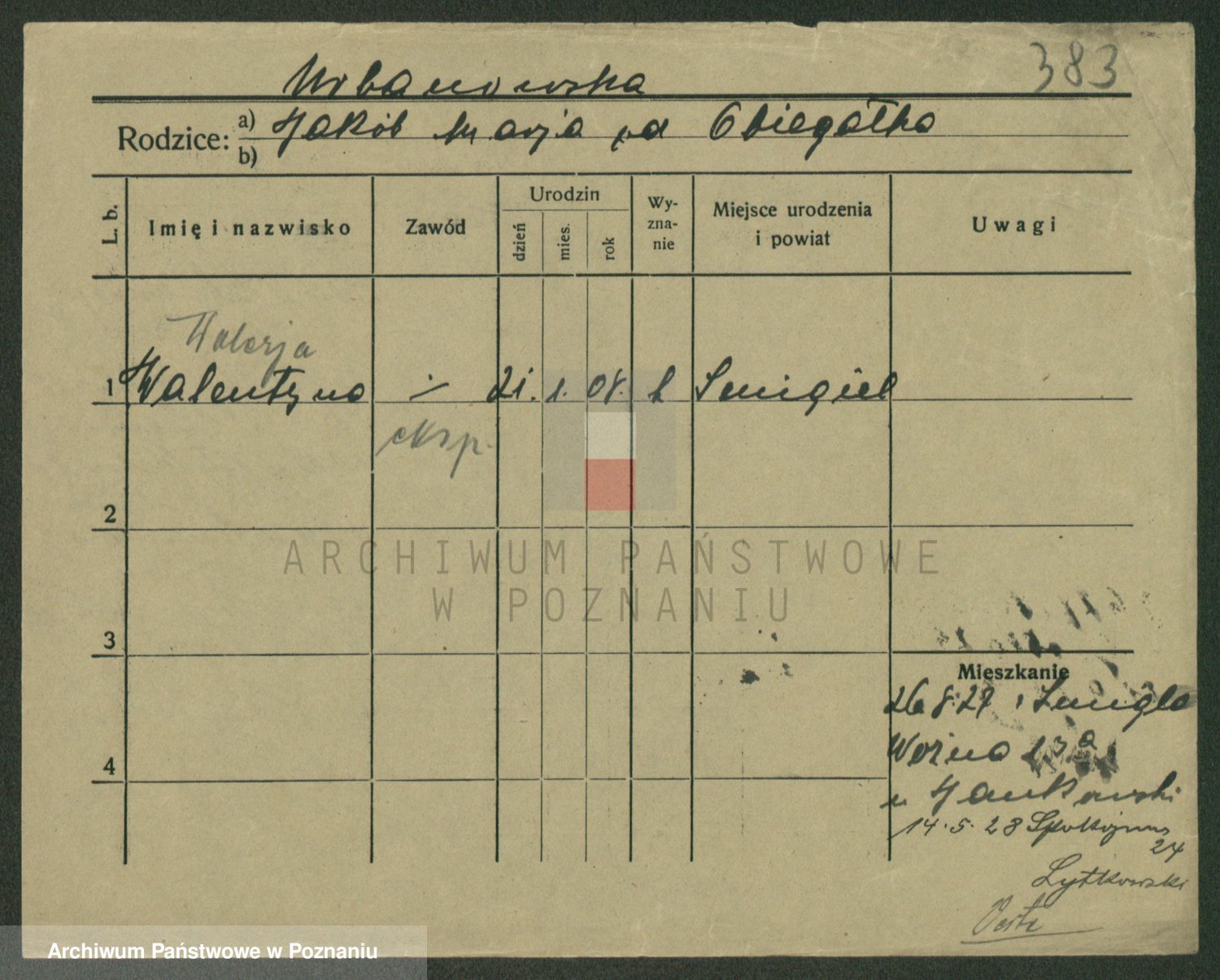 Urbankiewicz z d. Hannemann I voto Nowicka, Josefa