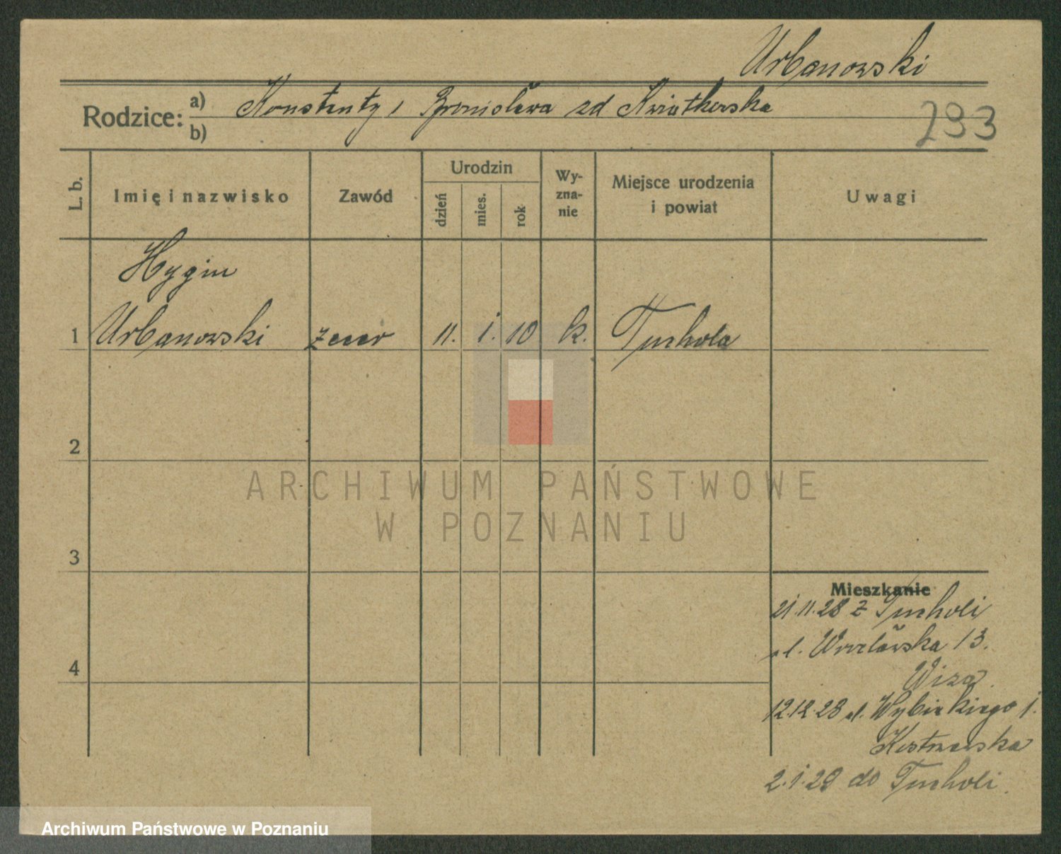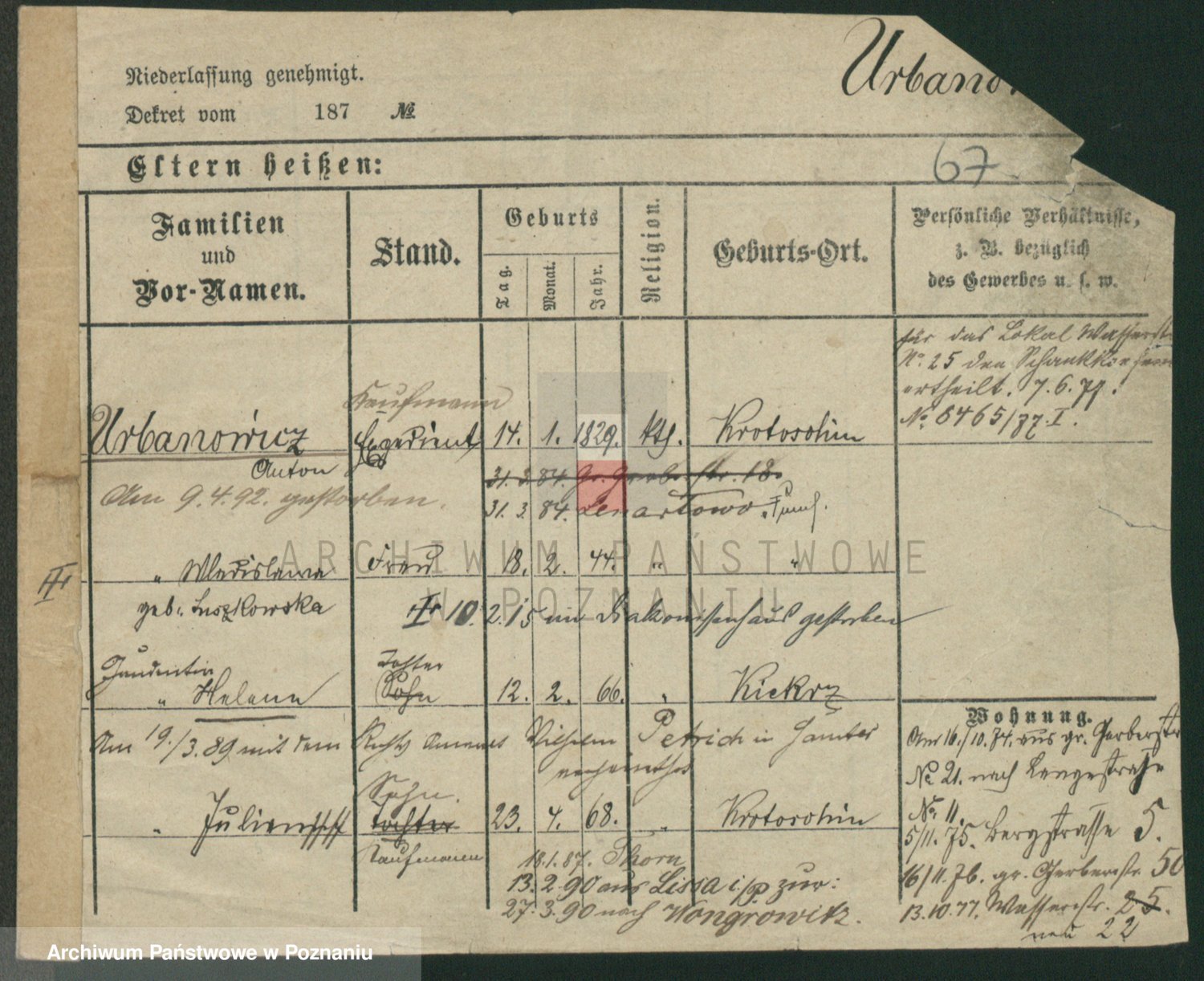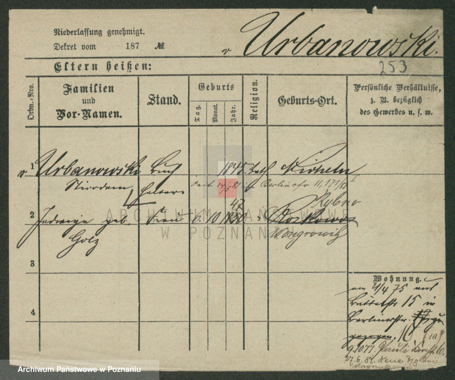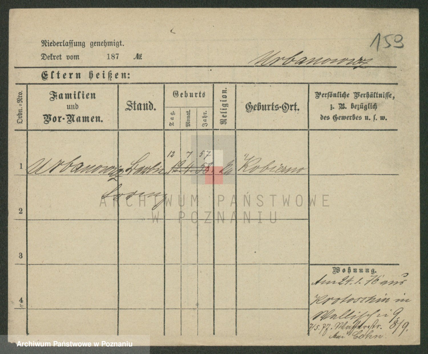 Urbankiewicz z d. Hannemann I voto Nowicka, Josefa