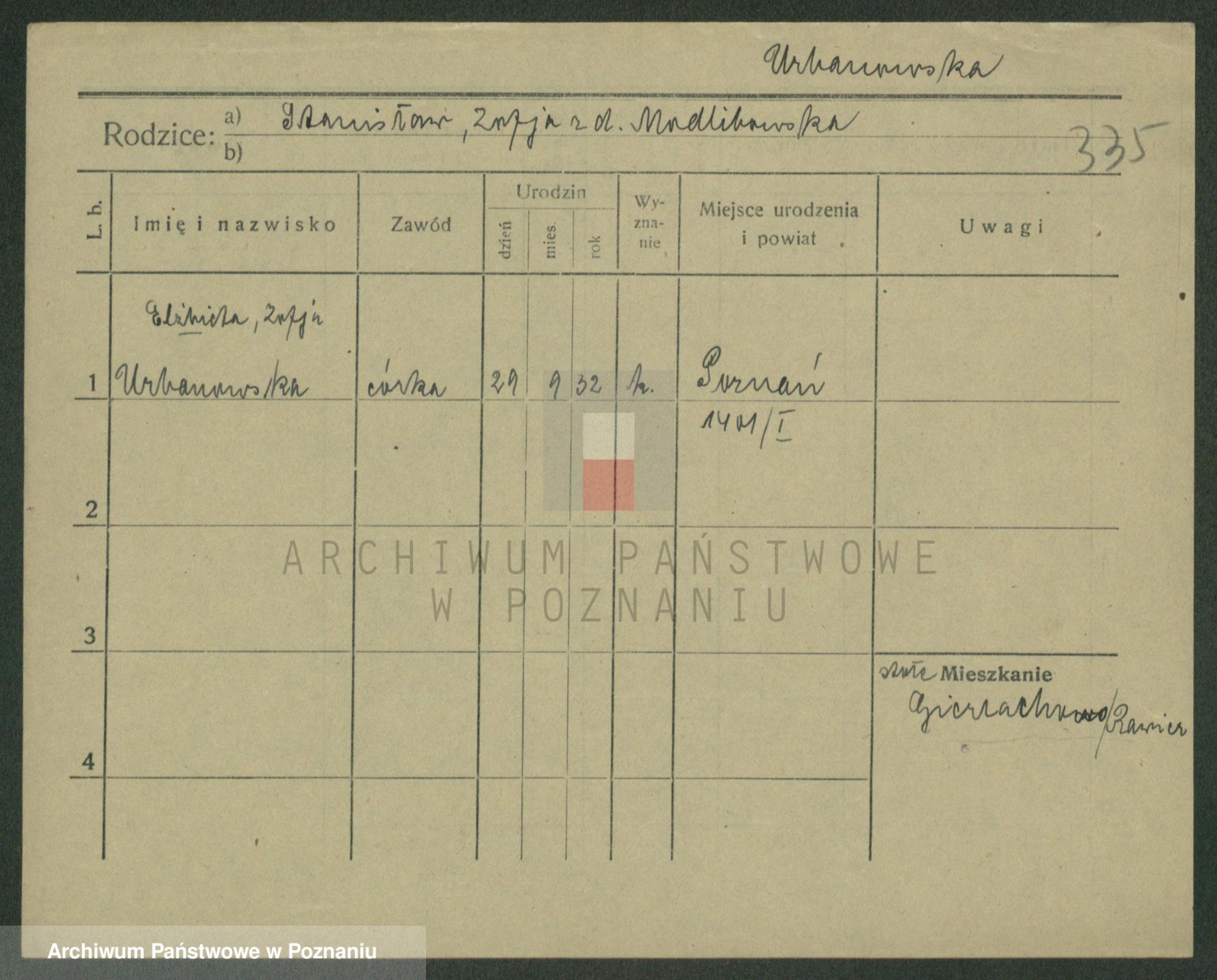 Urbańska z d. Zwiernik, Eleonora