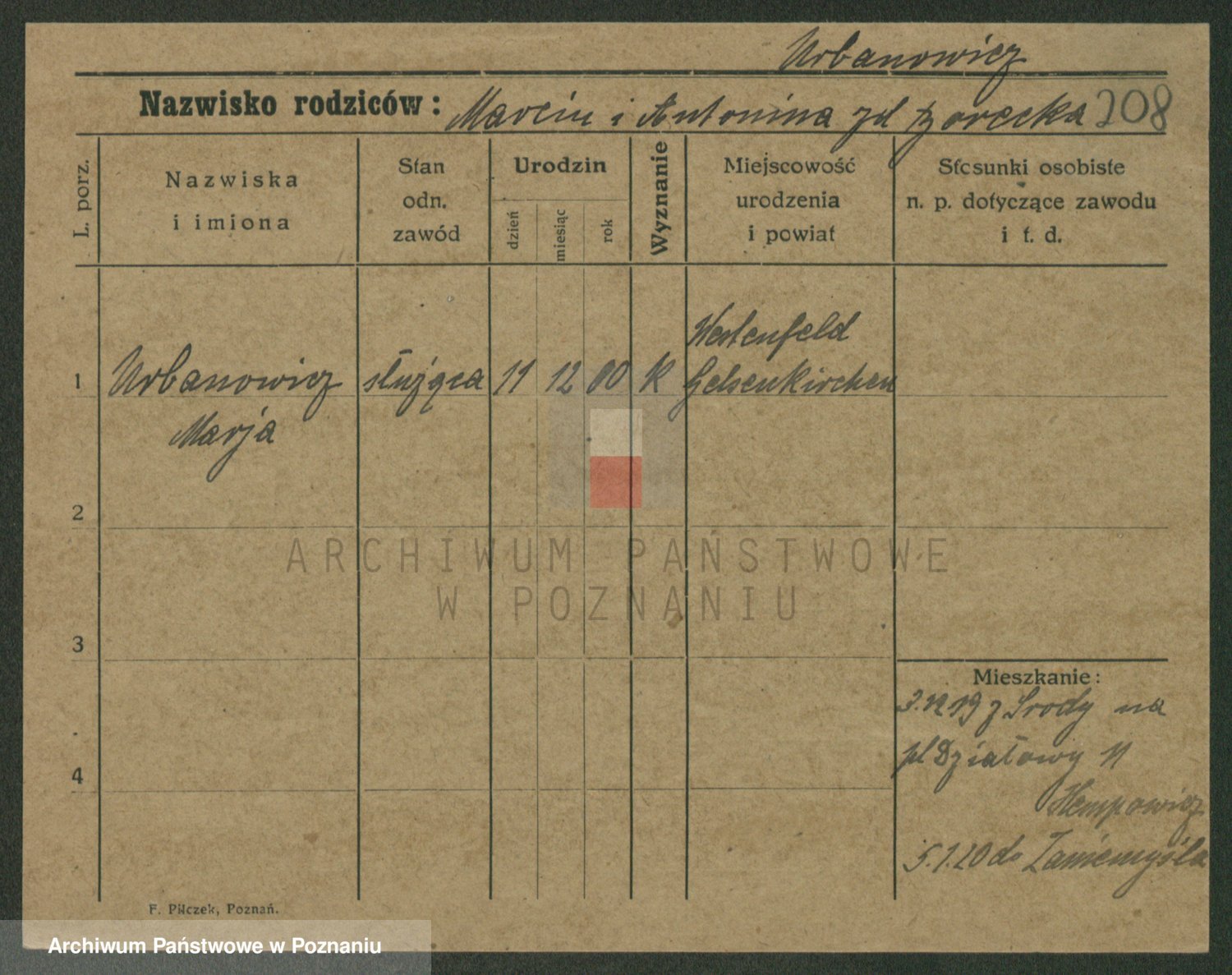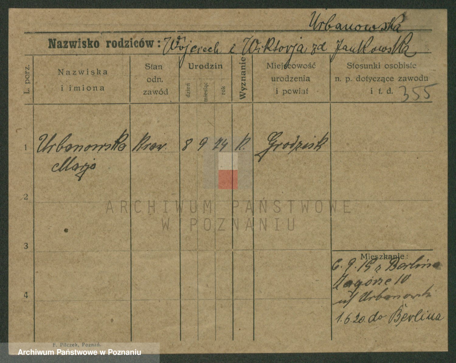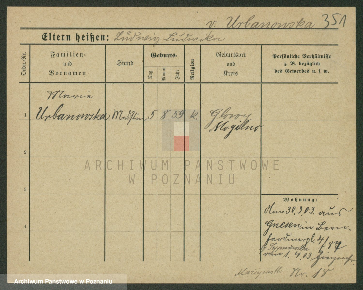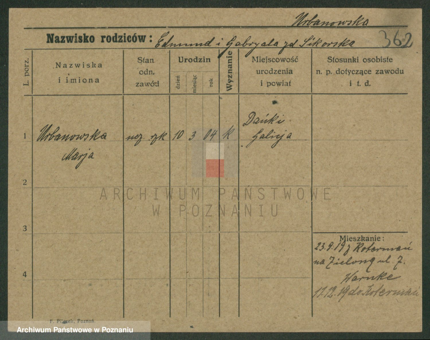 Urbanski z d. Pergowska, Marie
