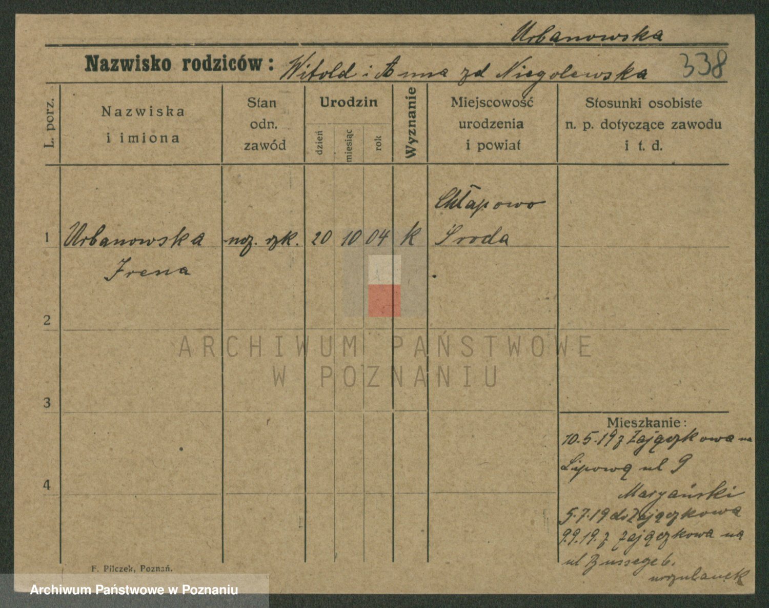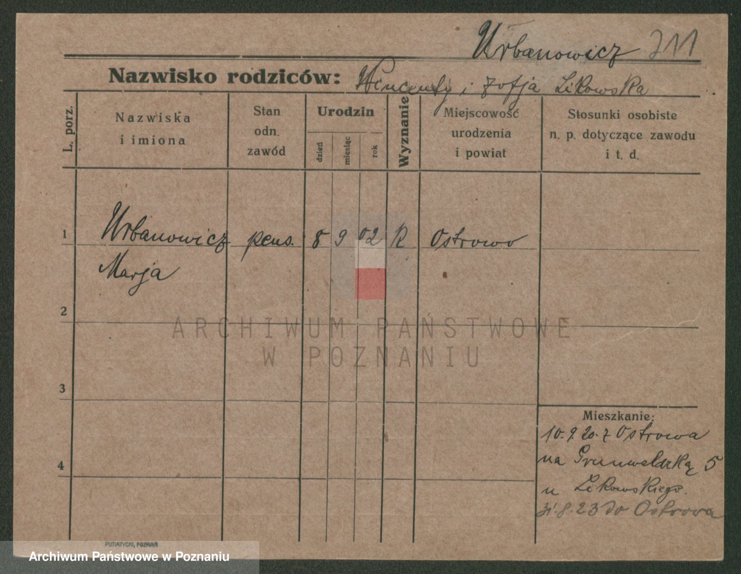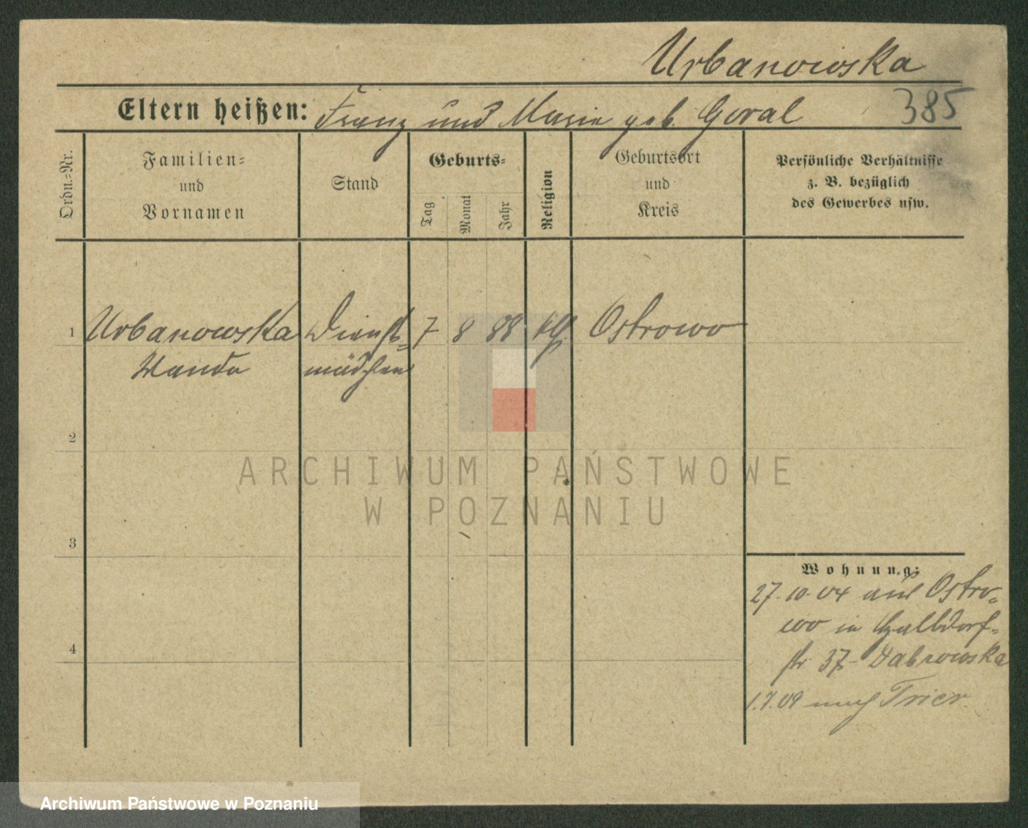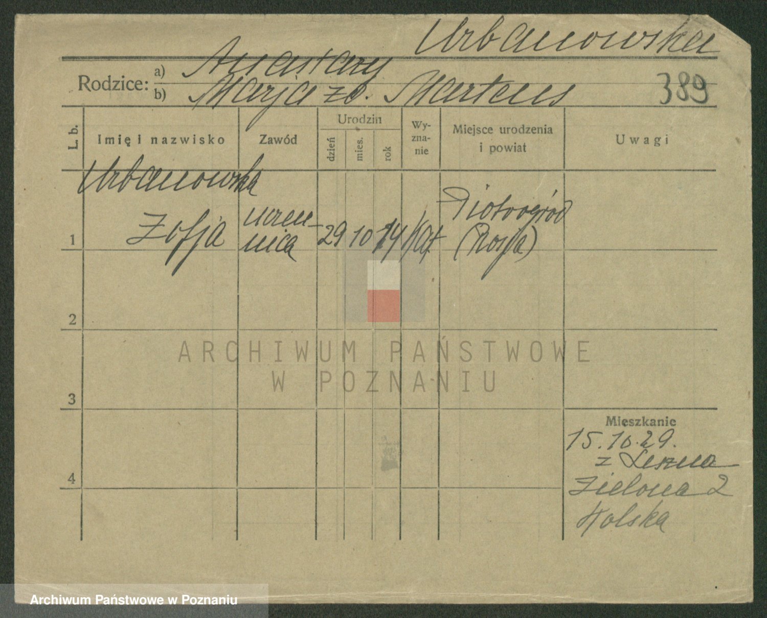 Urbanski z d. Pergowska, Marie