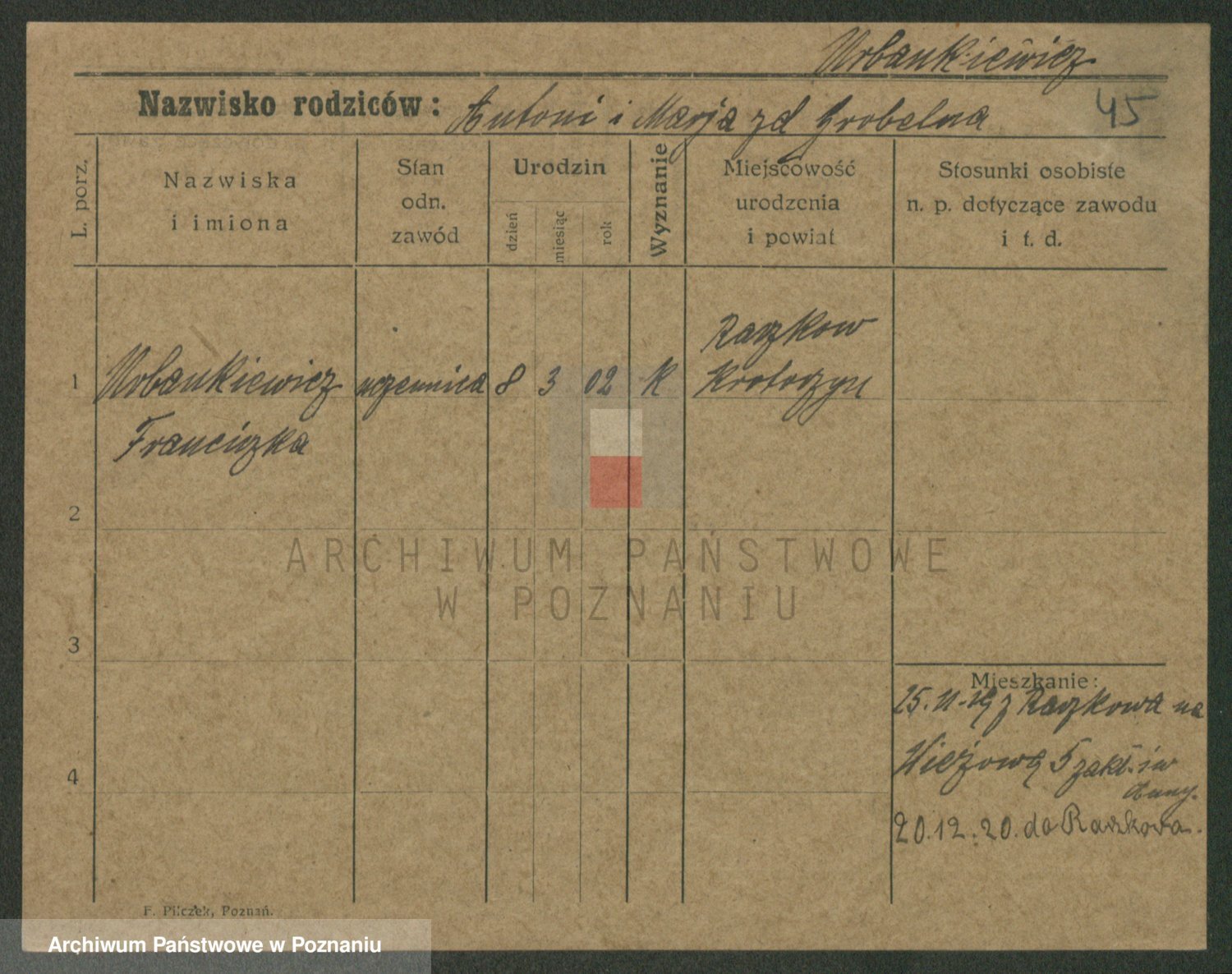 Urbankiewicz, Franciszka