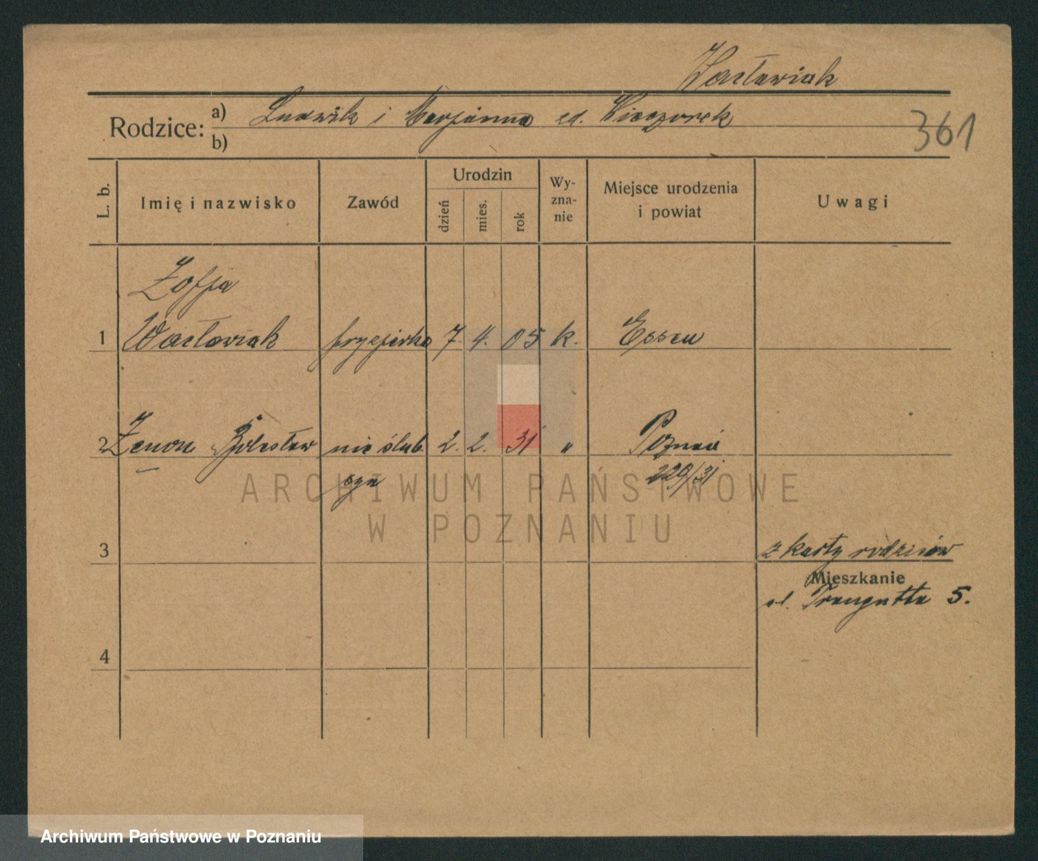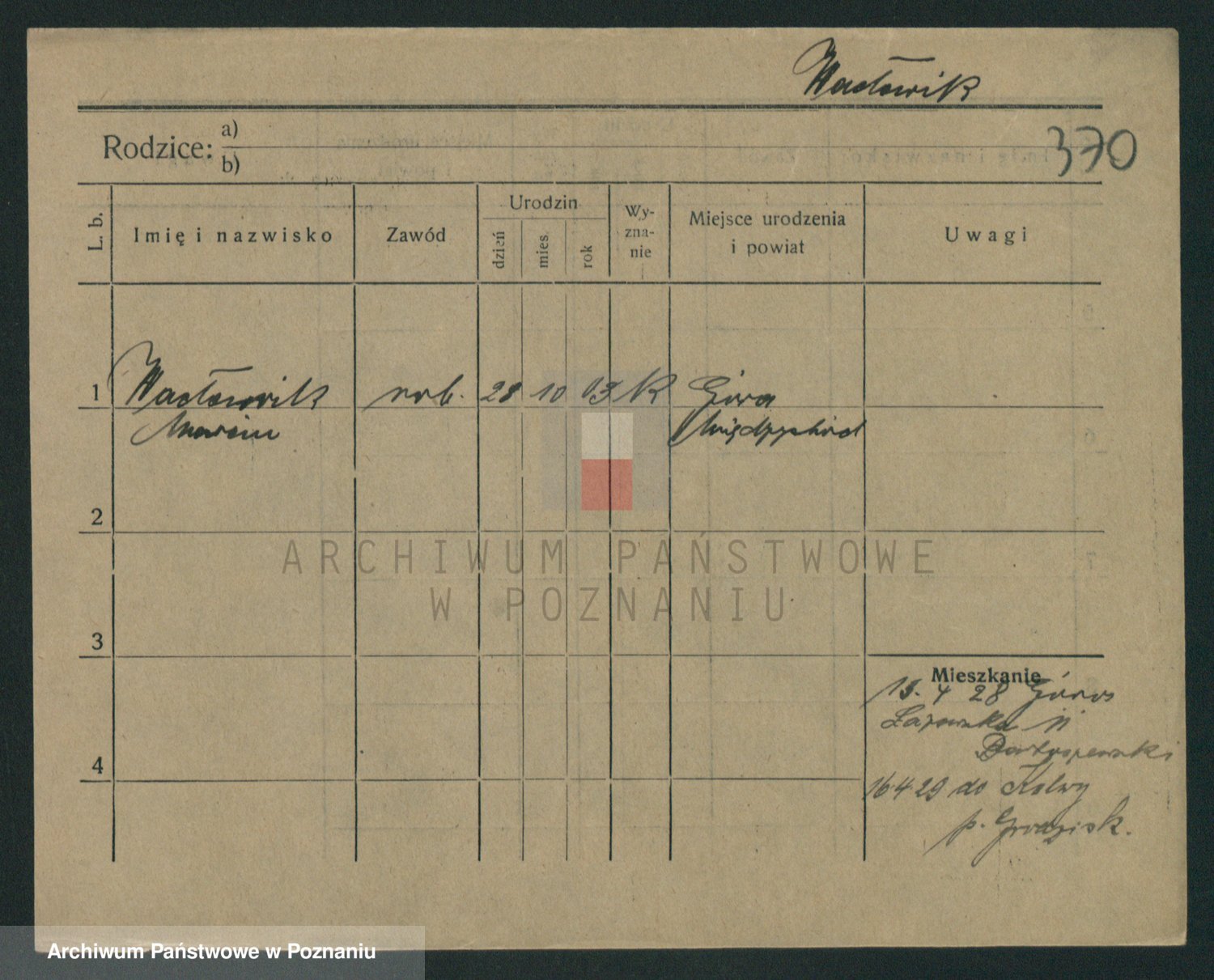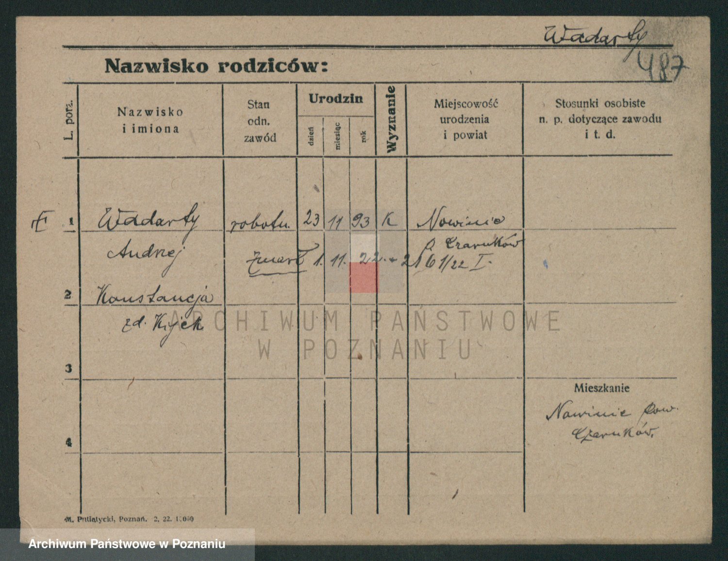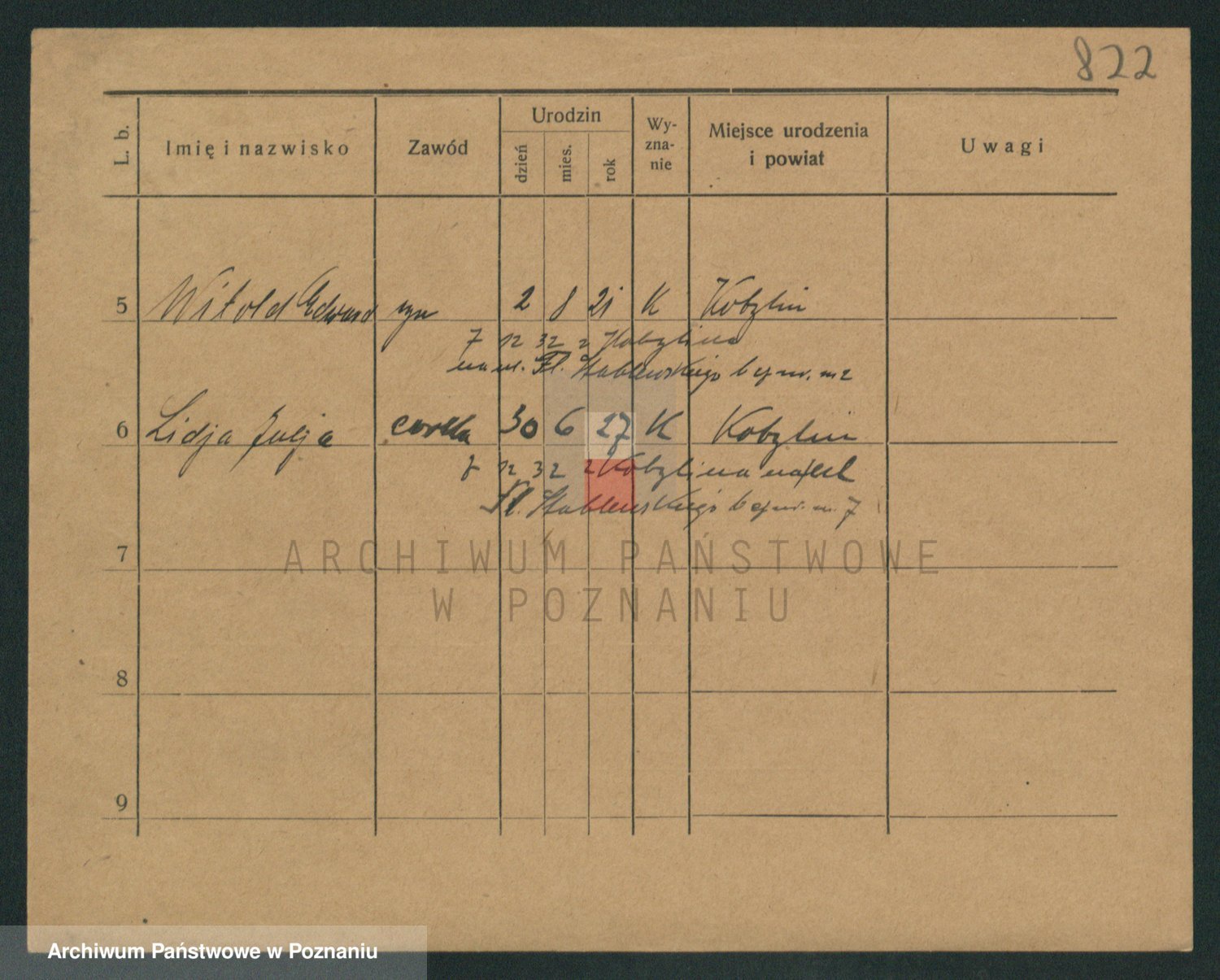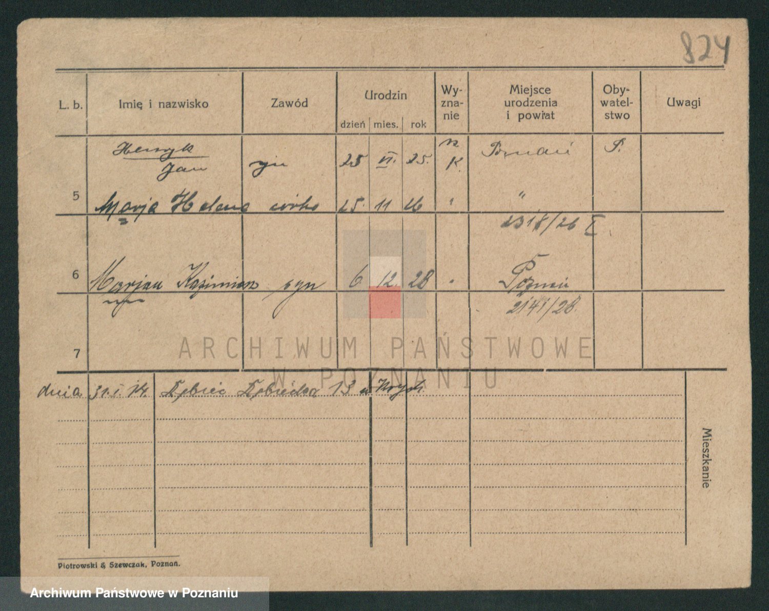Podgląd karty osobowej dostępny jest po kliknięciu na nazwisko lub ikonkę karty. Można dokonywać powiększenia (ikony na górze) lub przechodzić między kolejnymi skanami (strzałki po bokach).