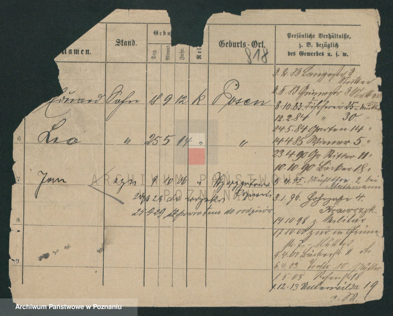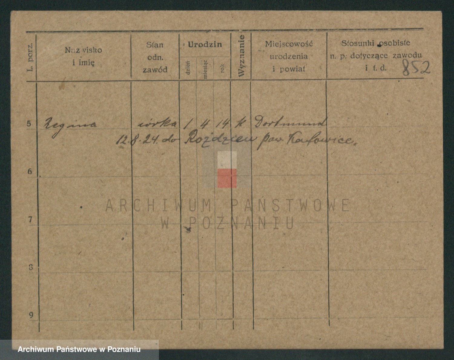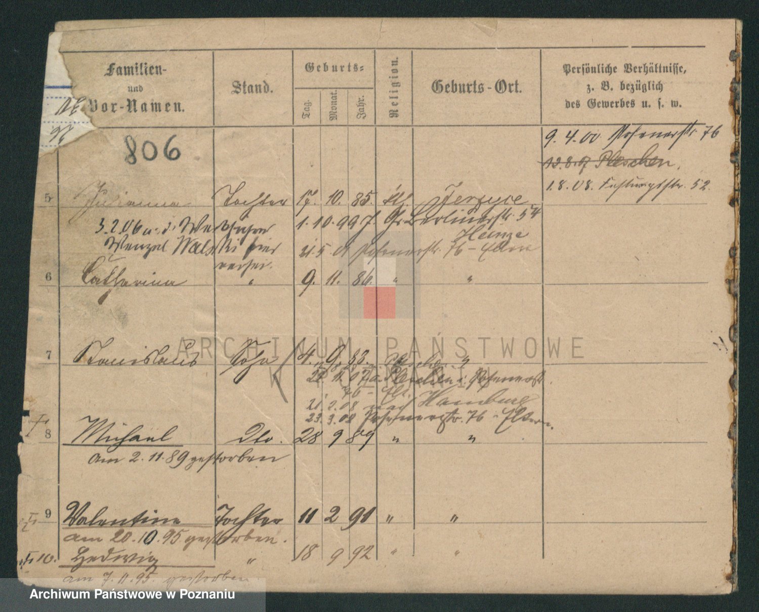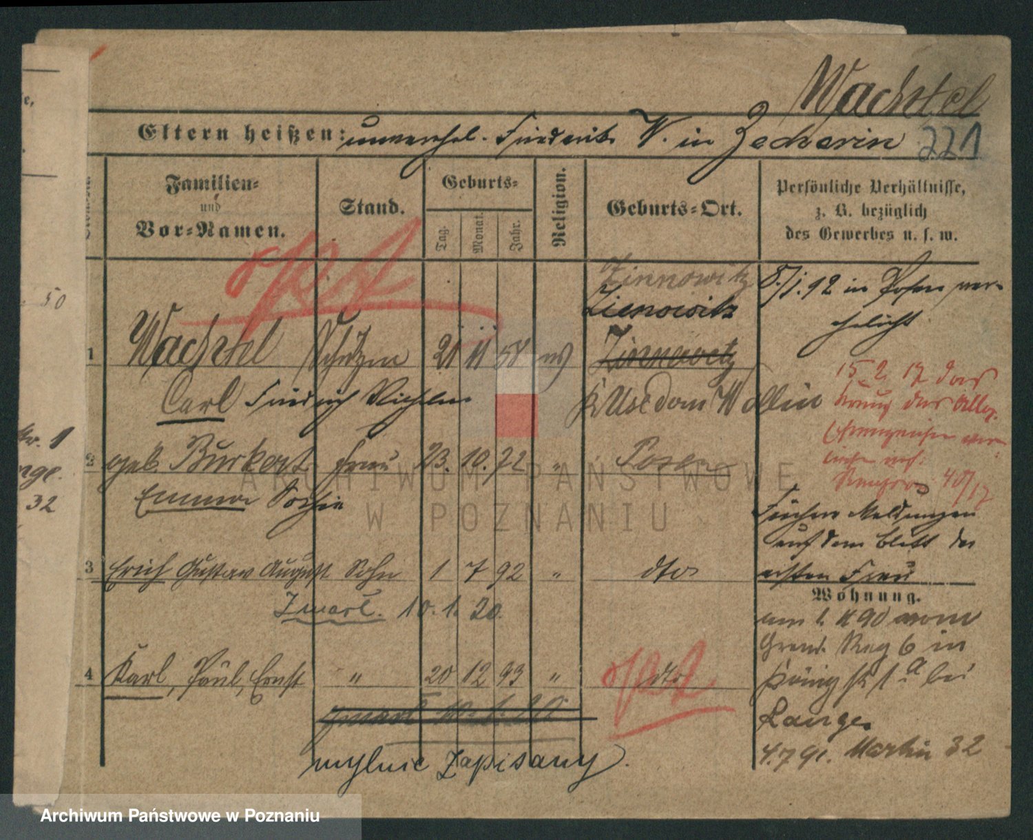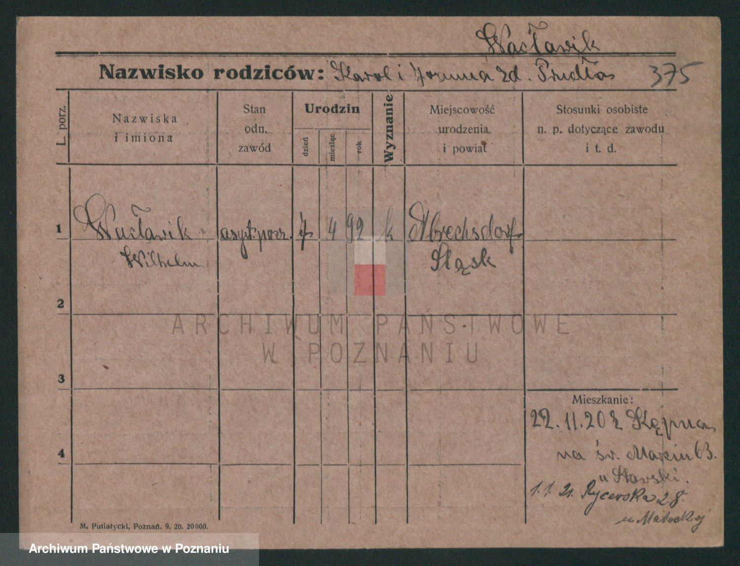 Podgląd karty osobowej dostępny jest po kliknięciu na nazwisko lub ikonkę karty. Można dokonywać powiększenia (ikony na górze) lub przechodzić między kolejnymi skanami (strzałki po bokach).