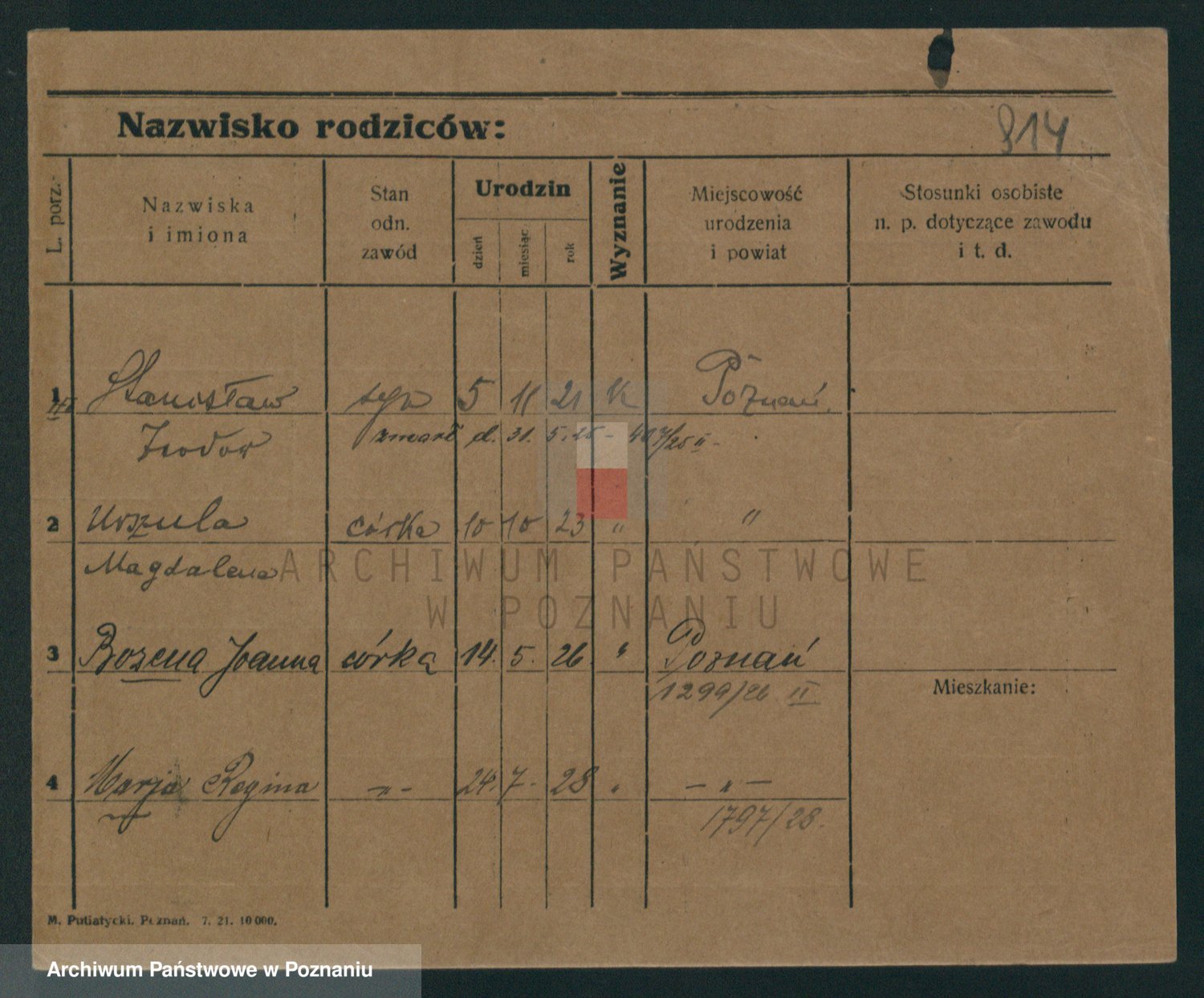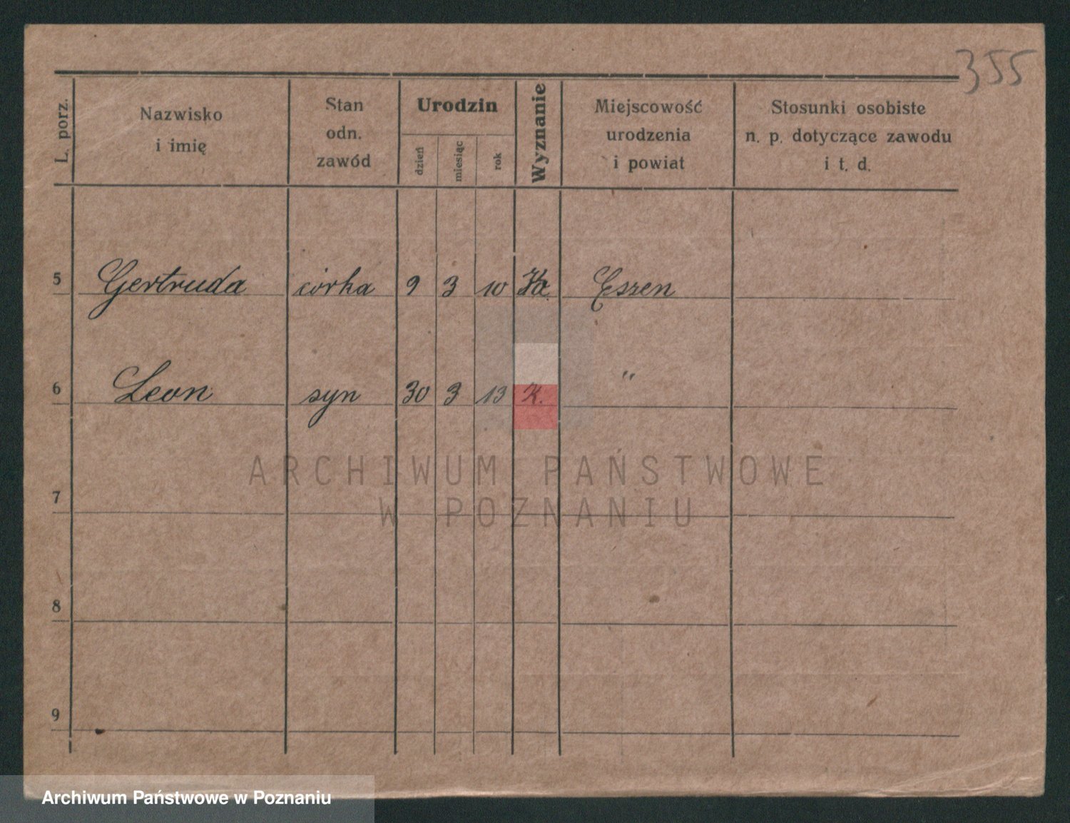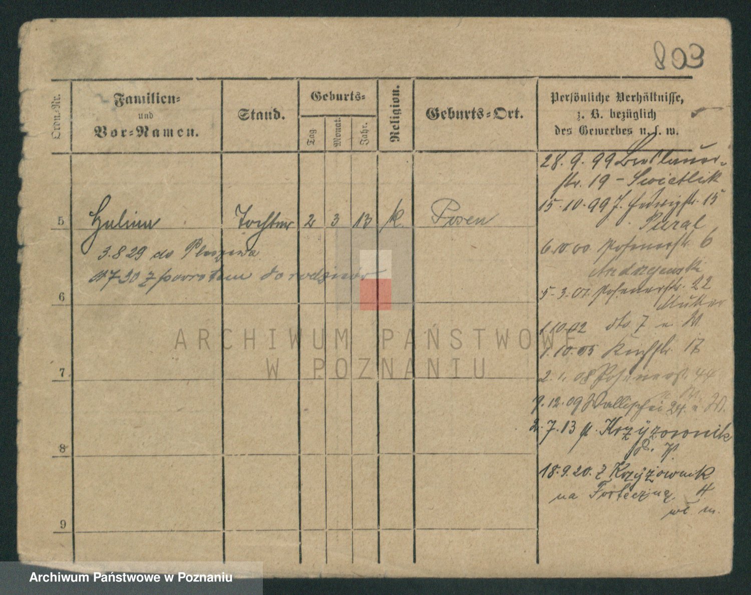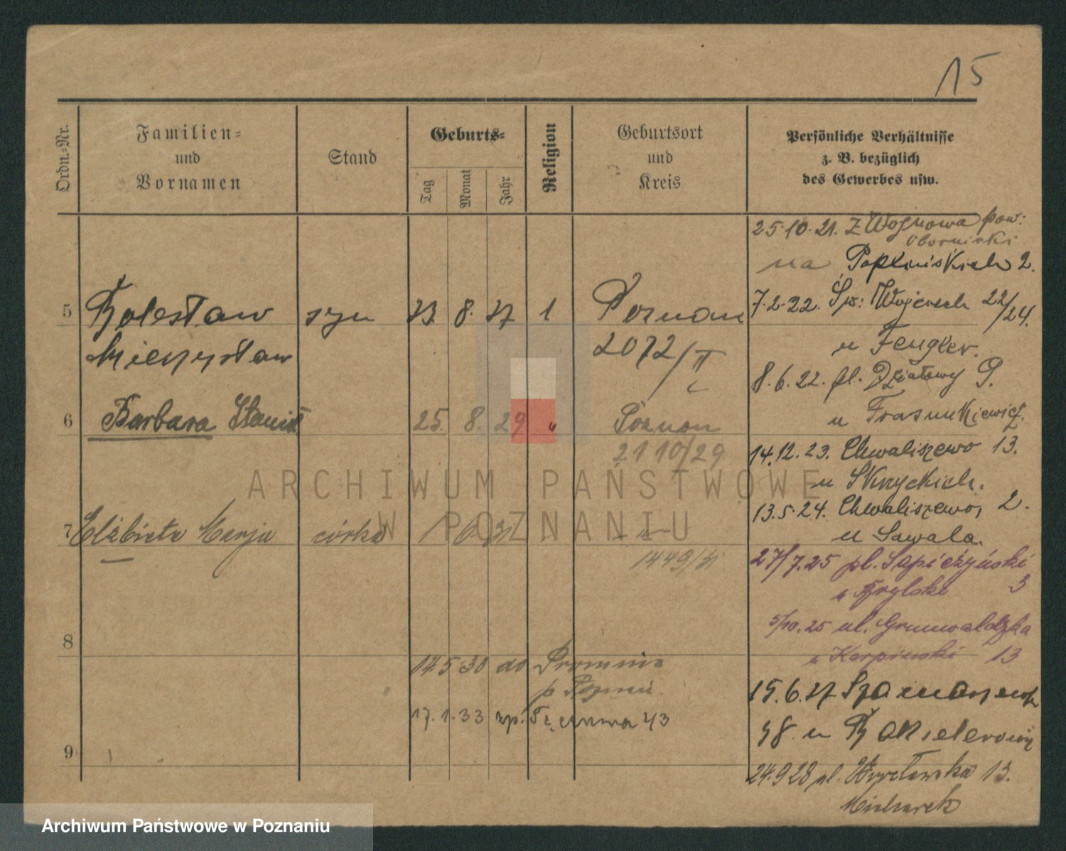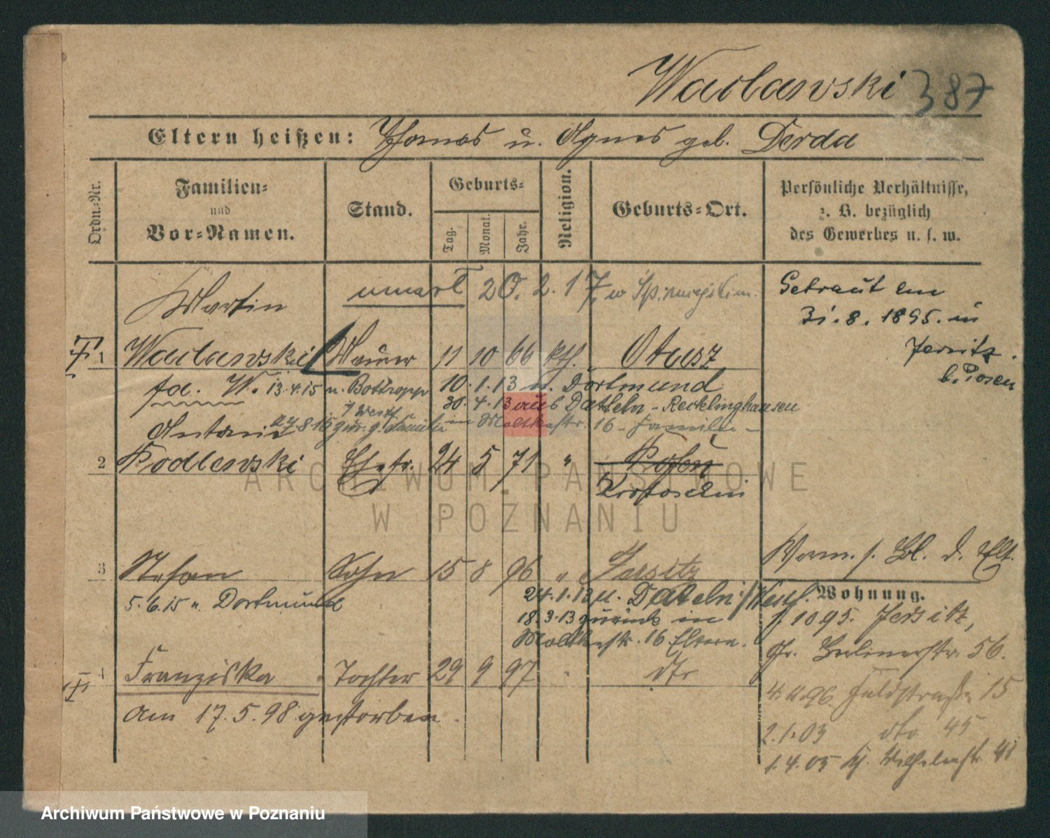 Podgląd karty osobowej dostępny jest po kliknięciu na nazwisko lub ikonkę karty. Można dokonywać powiększenia (ikony na górze) lub przechodzić między kolejnymi skanami (strzałki po bokach).